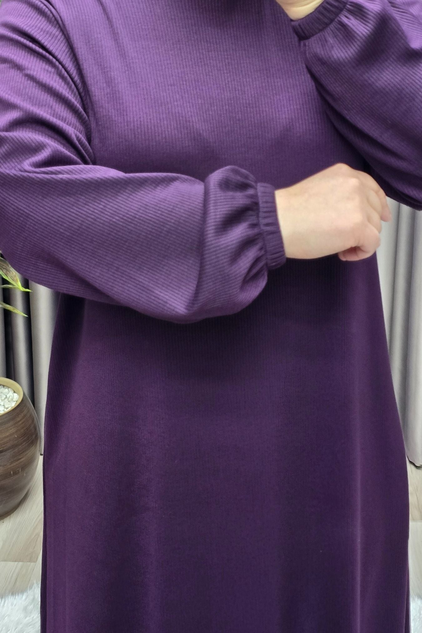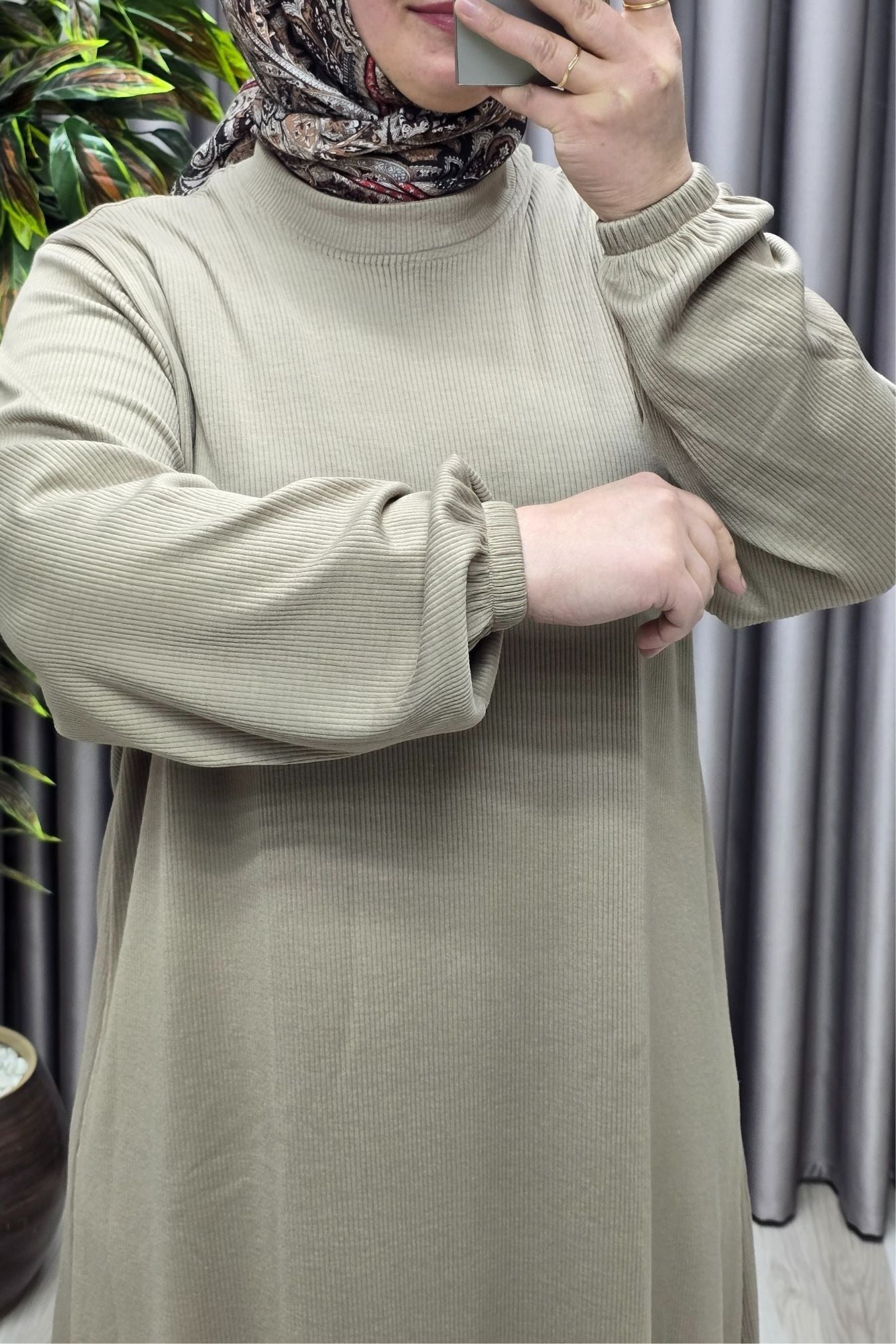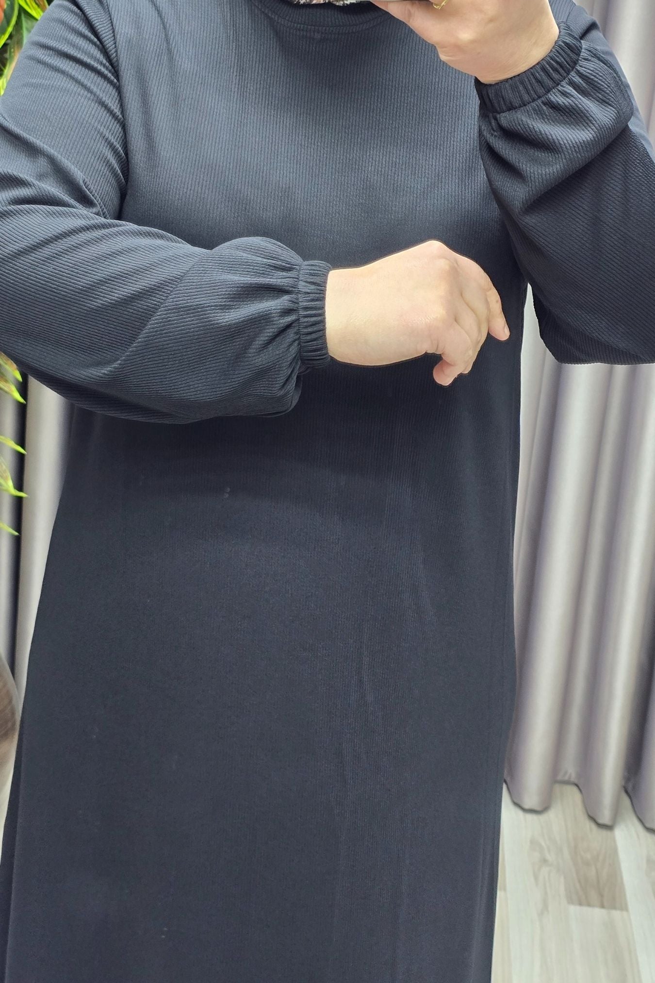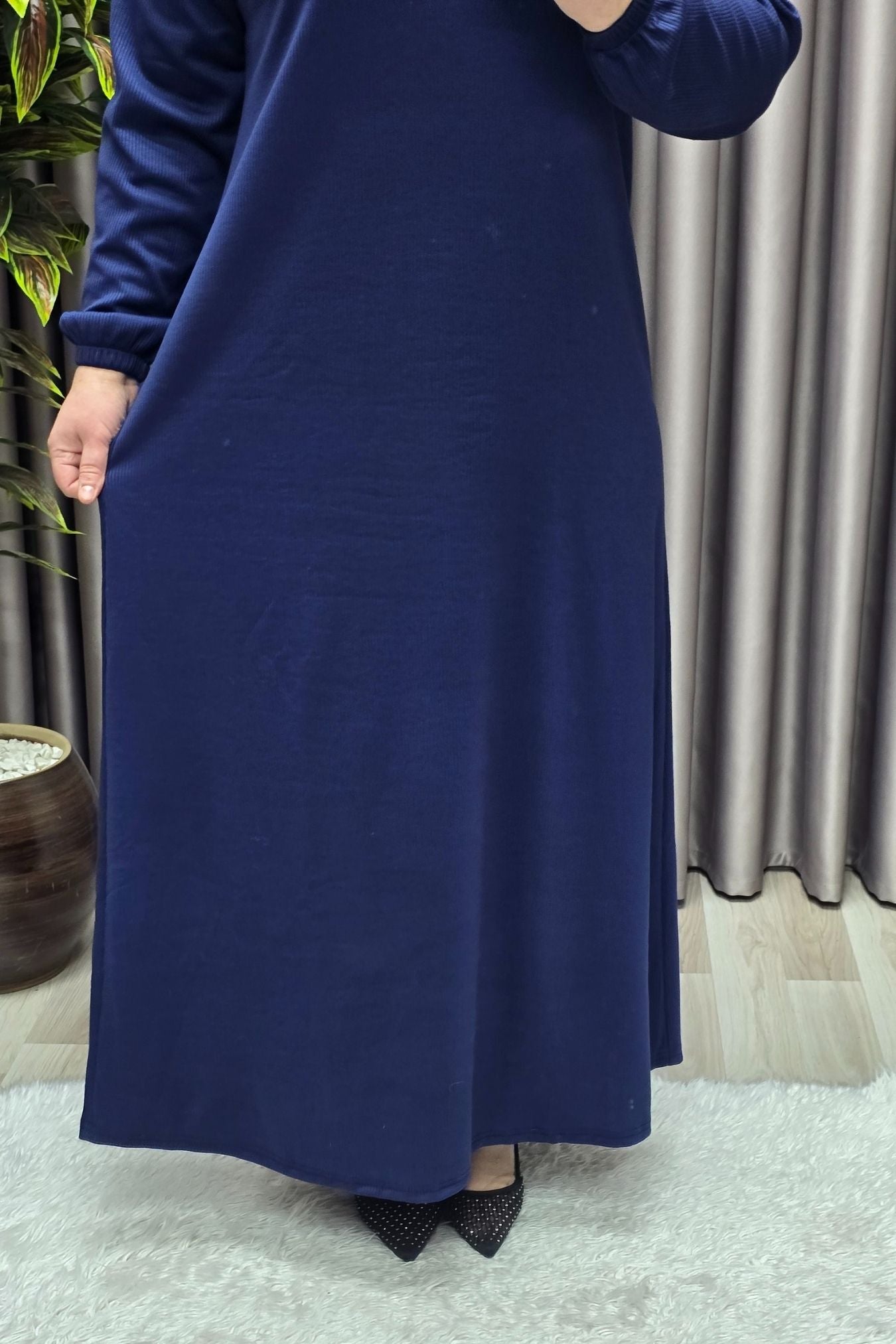 Kadın Büyük Beden Hakim Yaka Kolları Büzgülü Fitilli Nevra Elbise