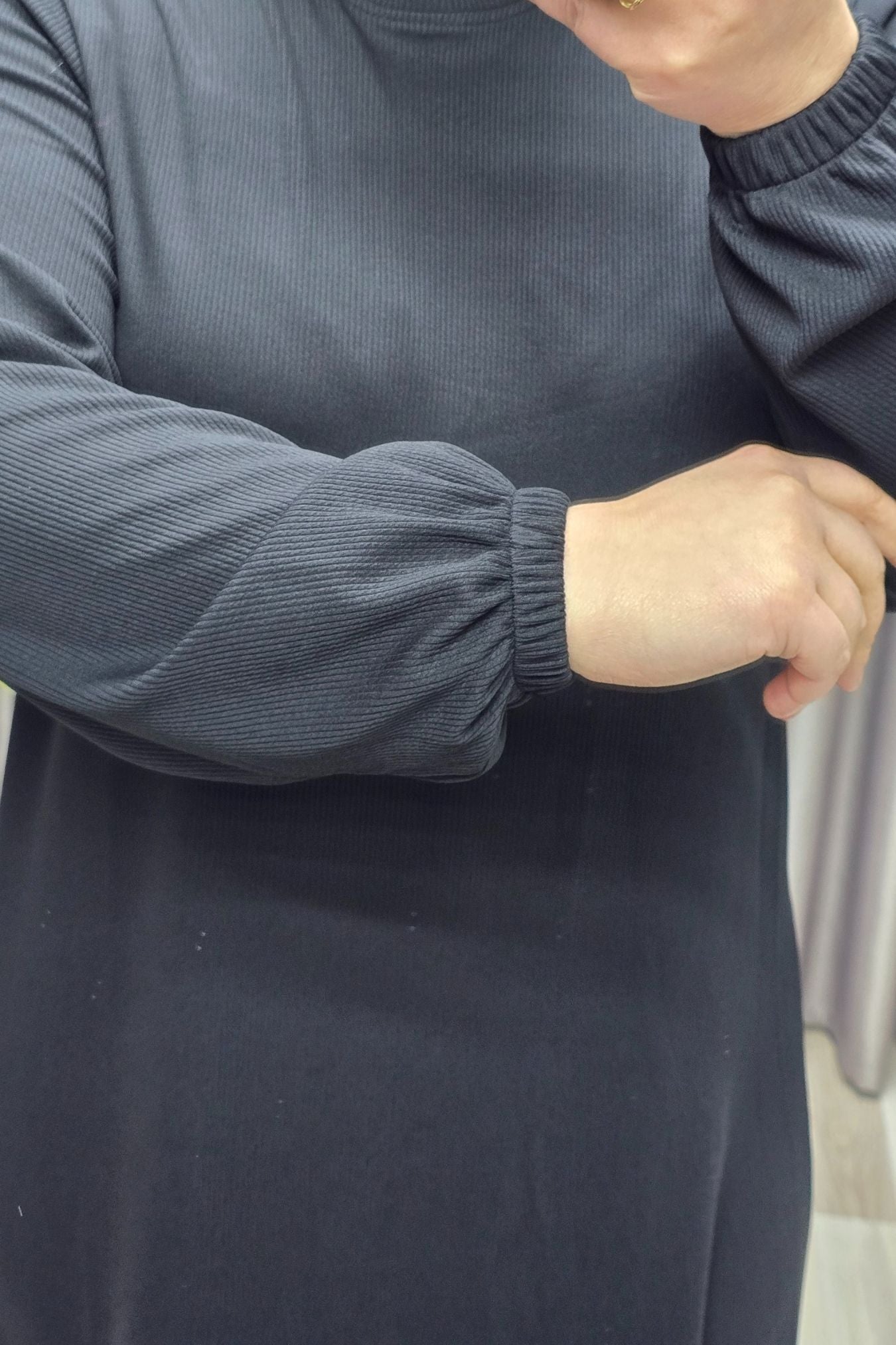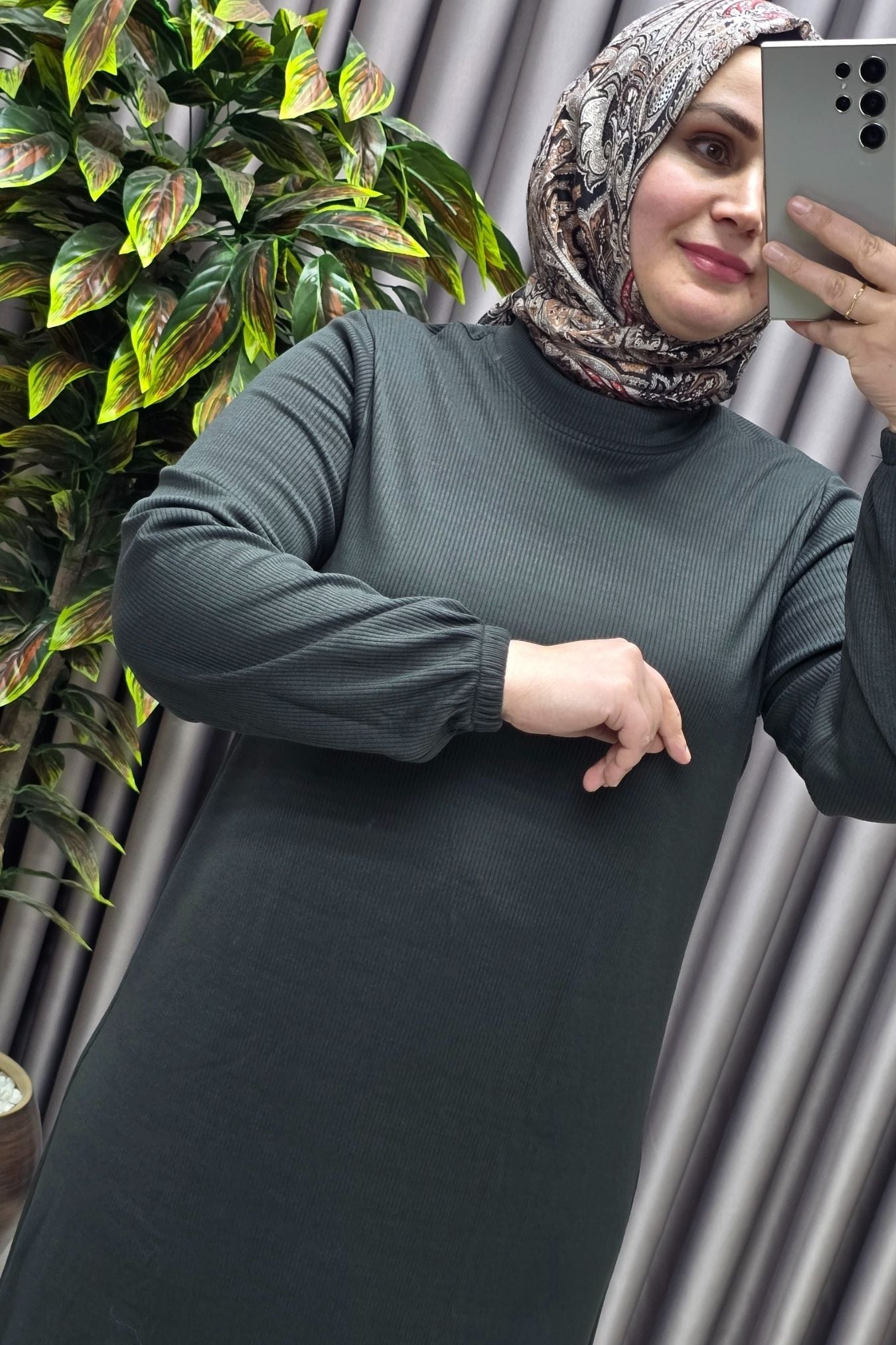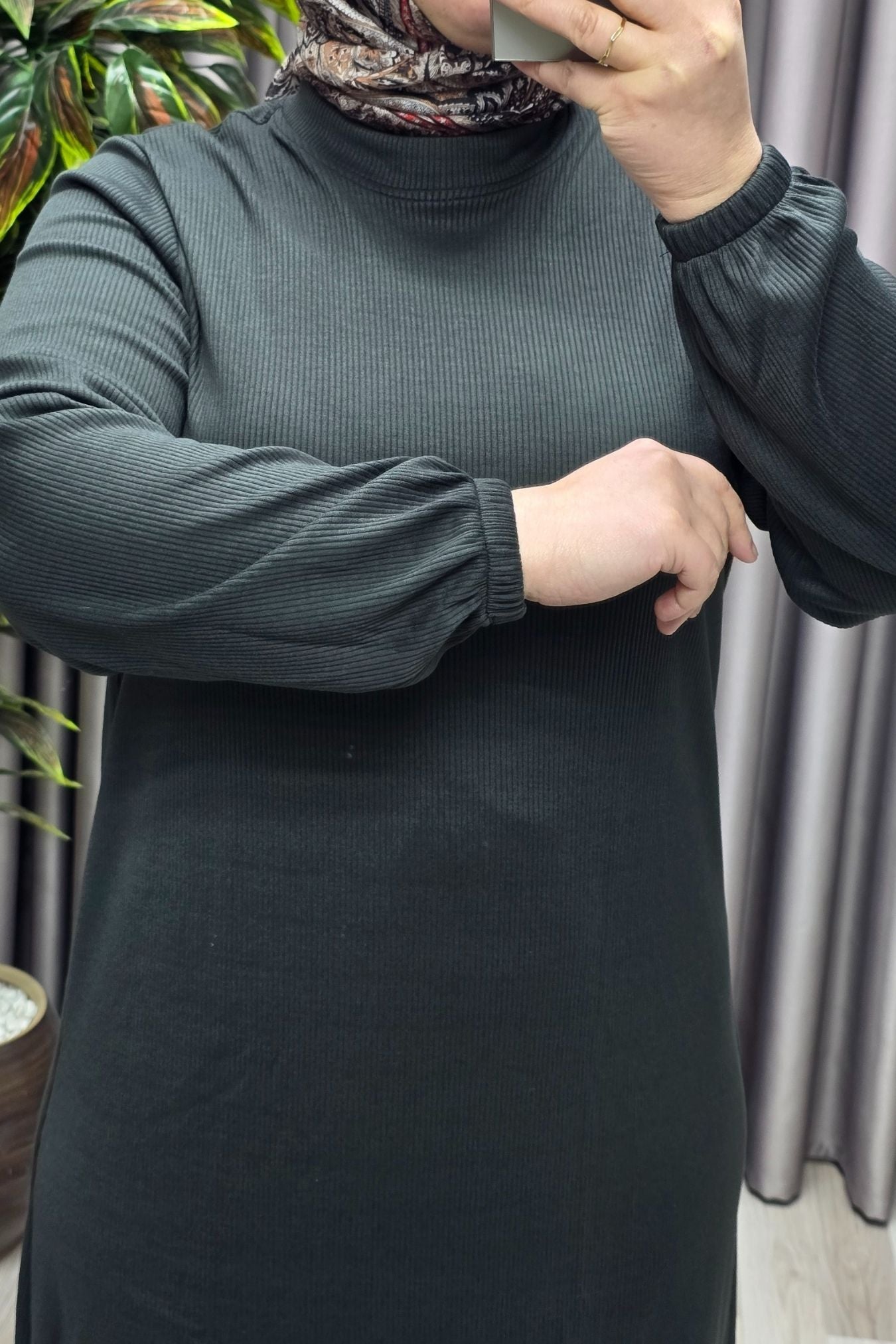 Kadın Büyük Beden Hakim Yaka Kolları Büzgülü Fitilli Nevra Elbise