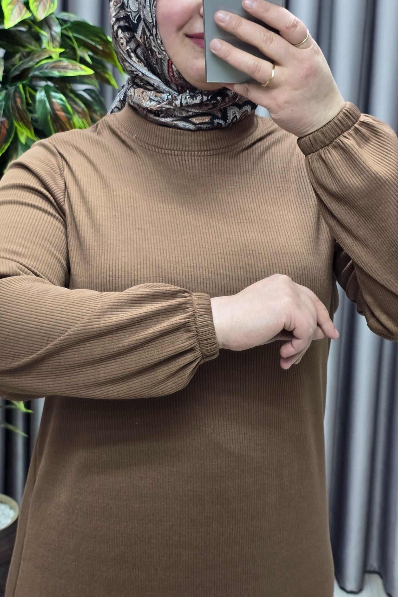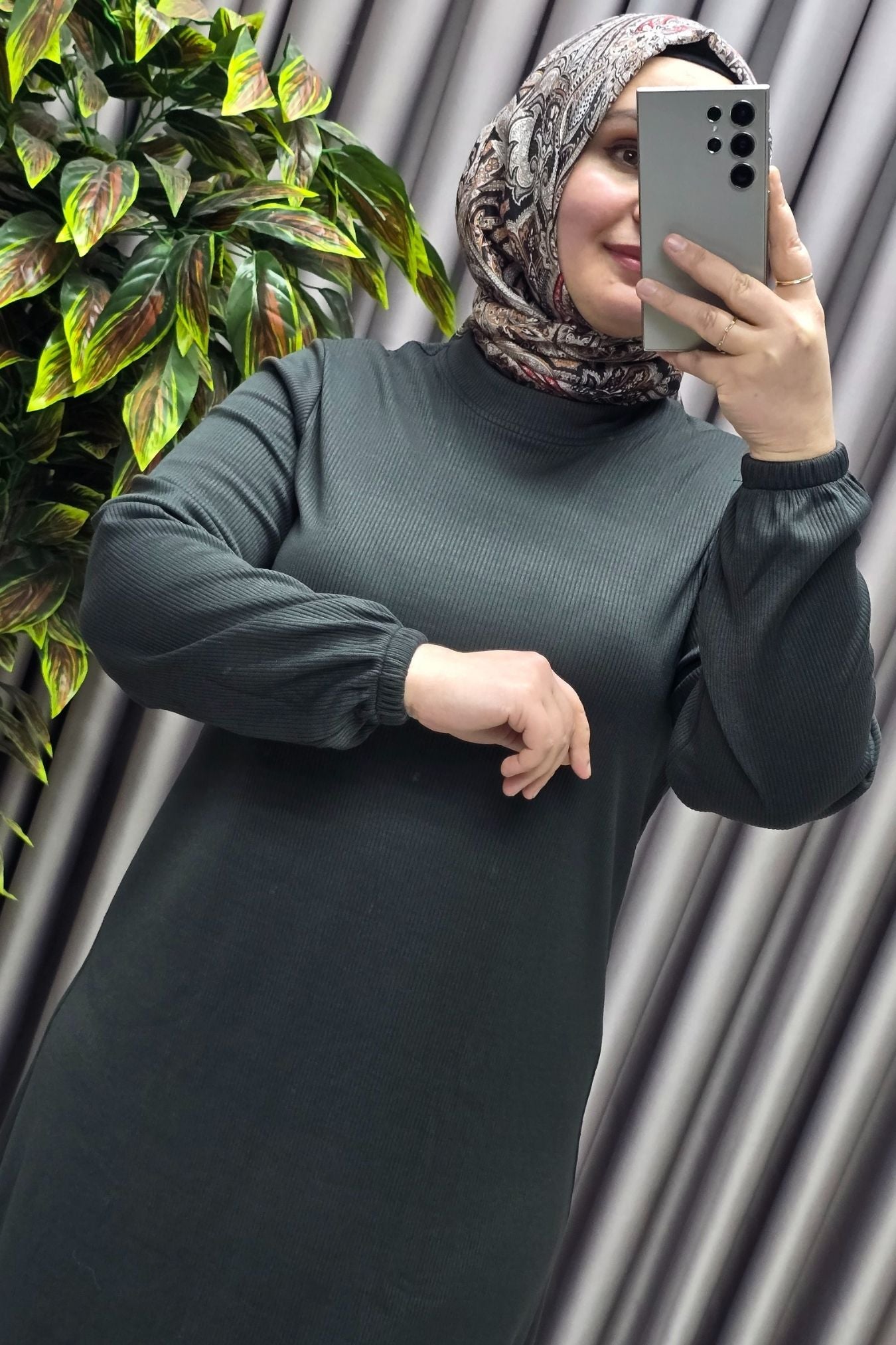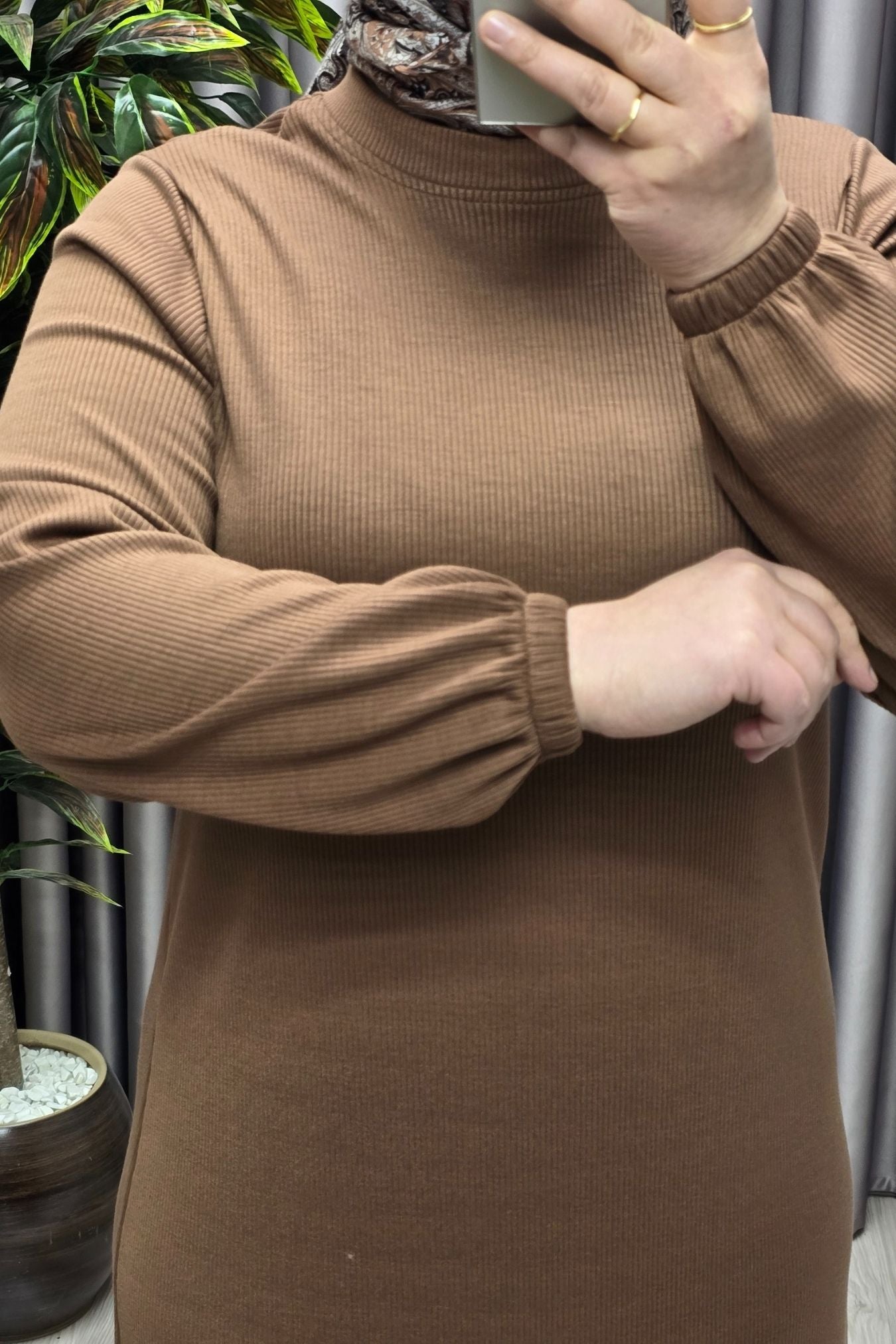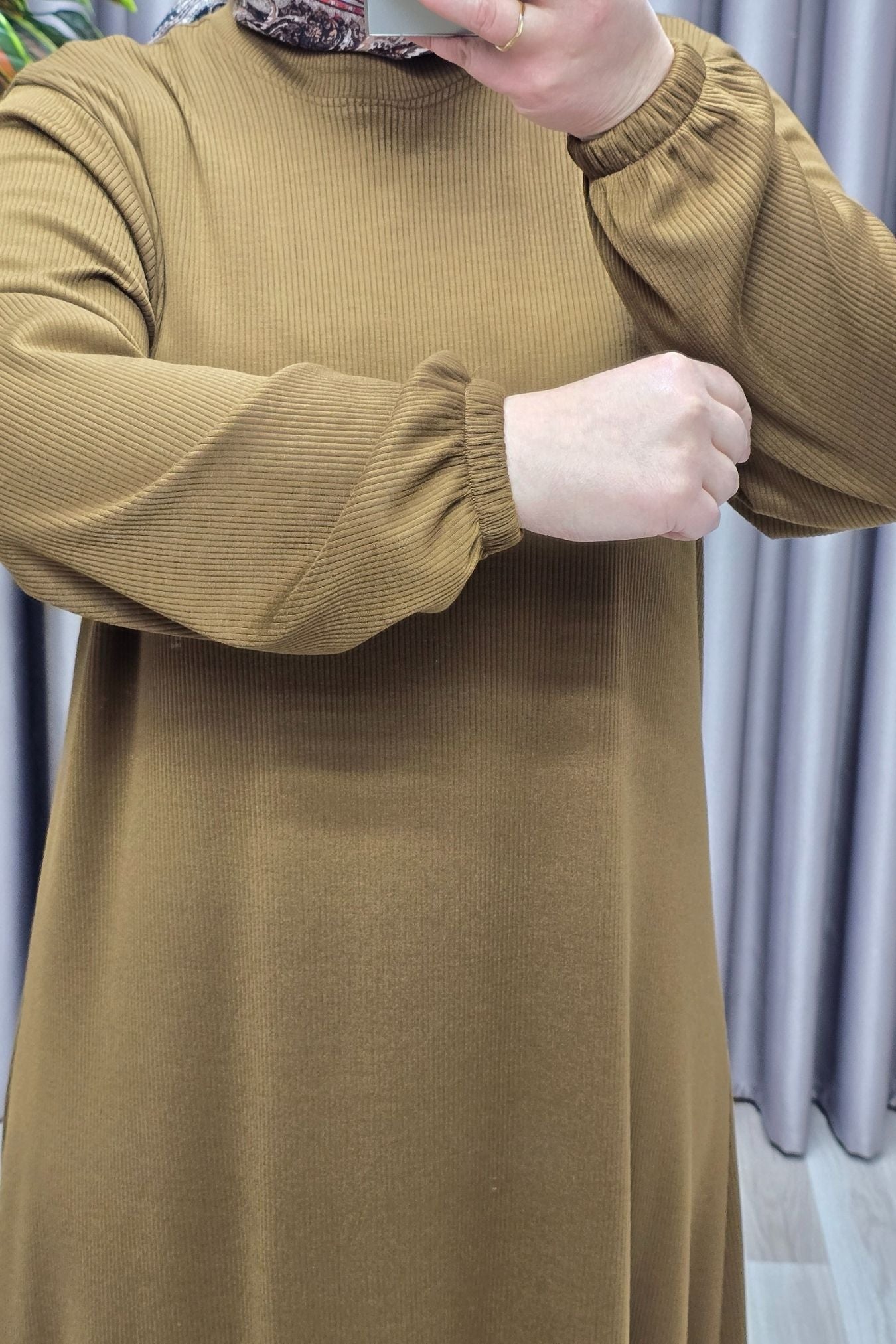 Kadın Büyük Beden Hakim Yaka Kolları Büzgülü Fitilli Nevra Elbise