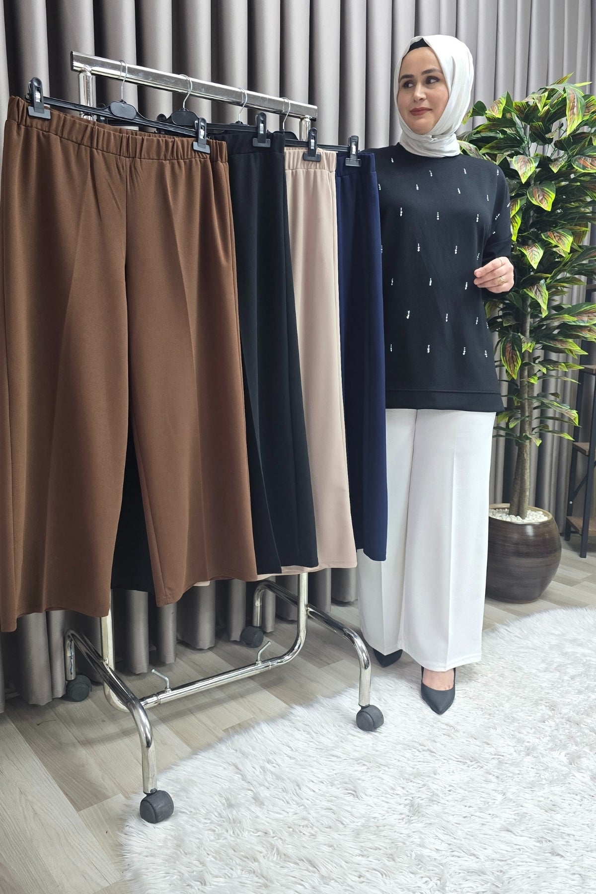 Kadın Giyim Büyük Beden Bol Paça Scuba Pantolon