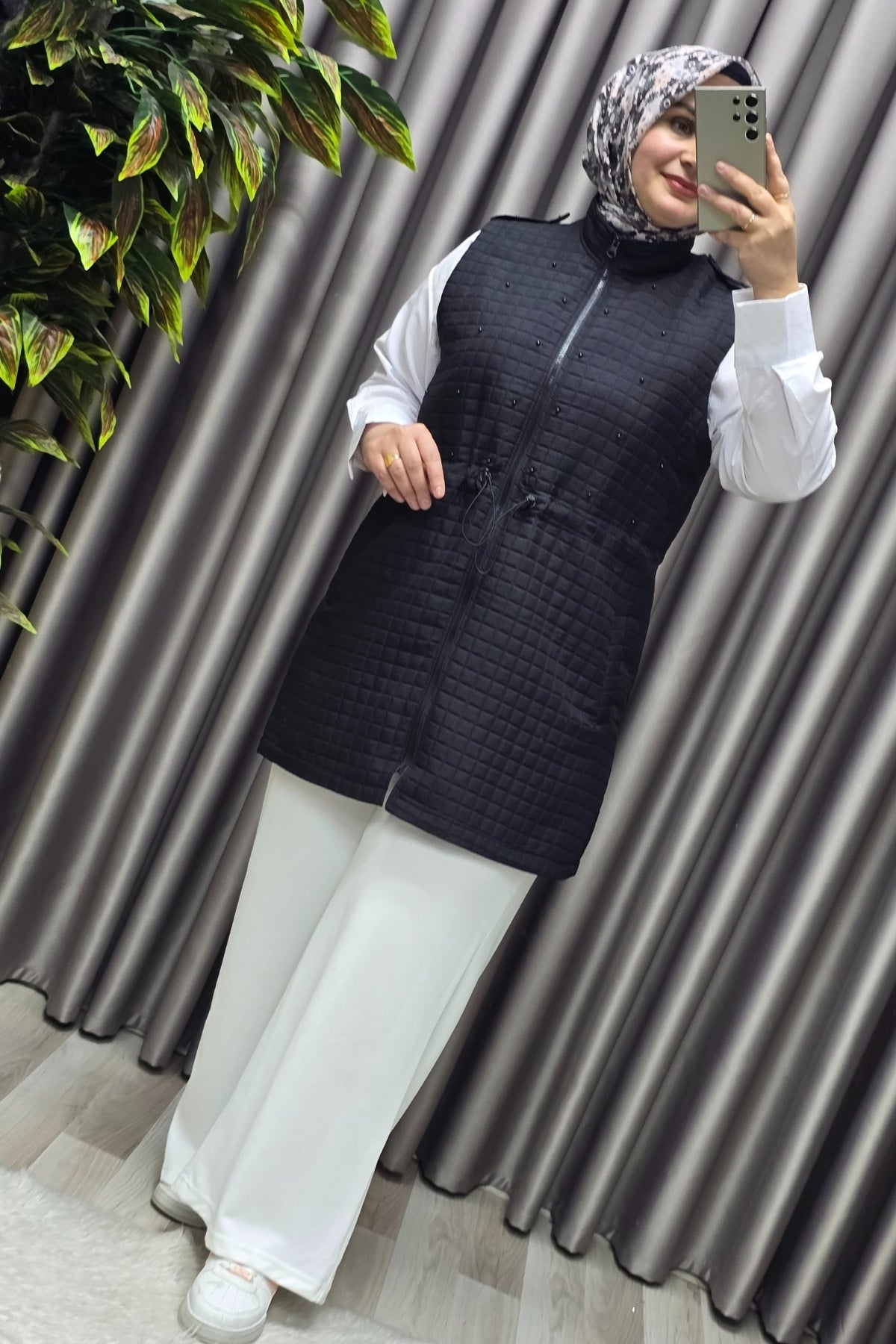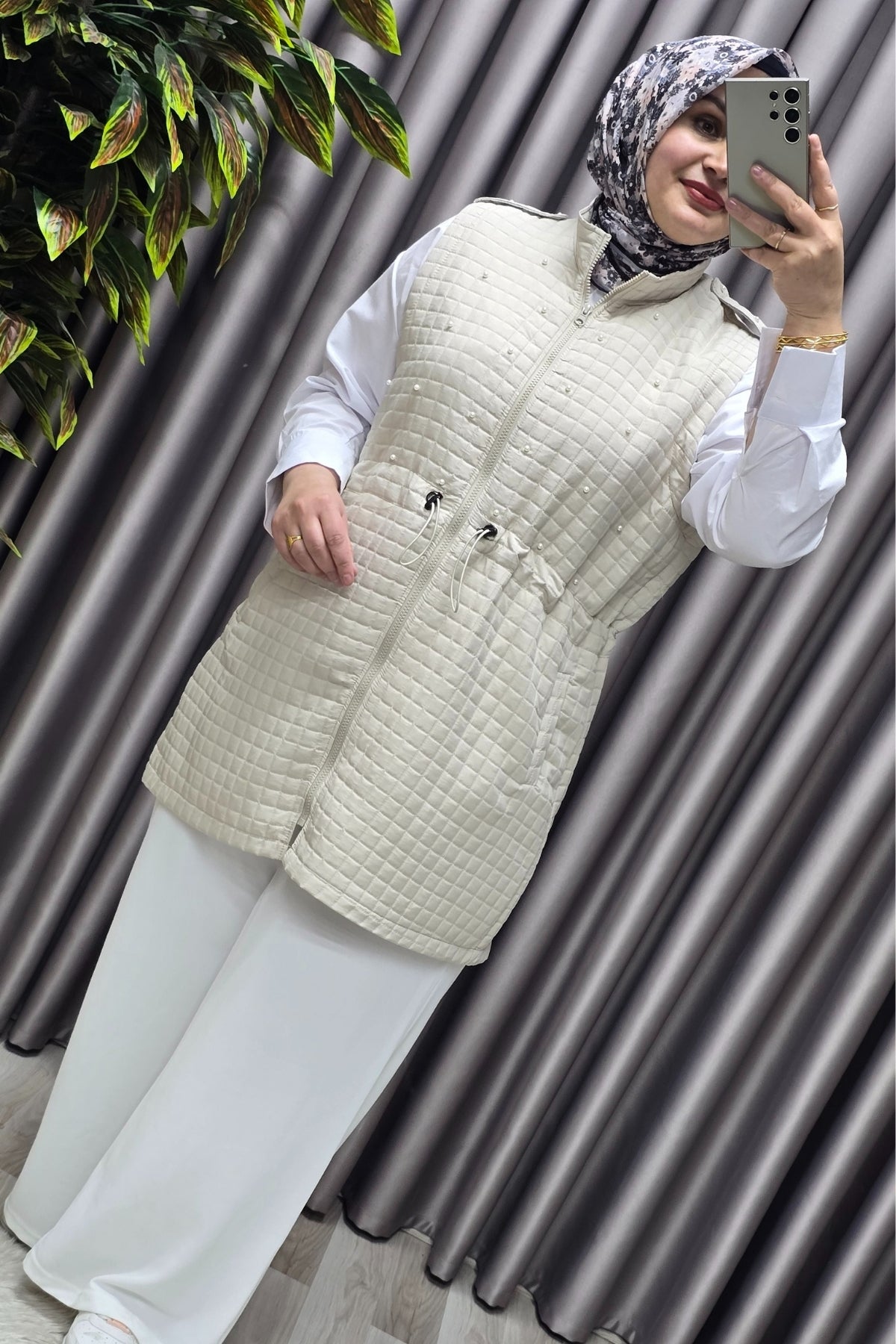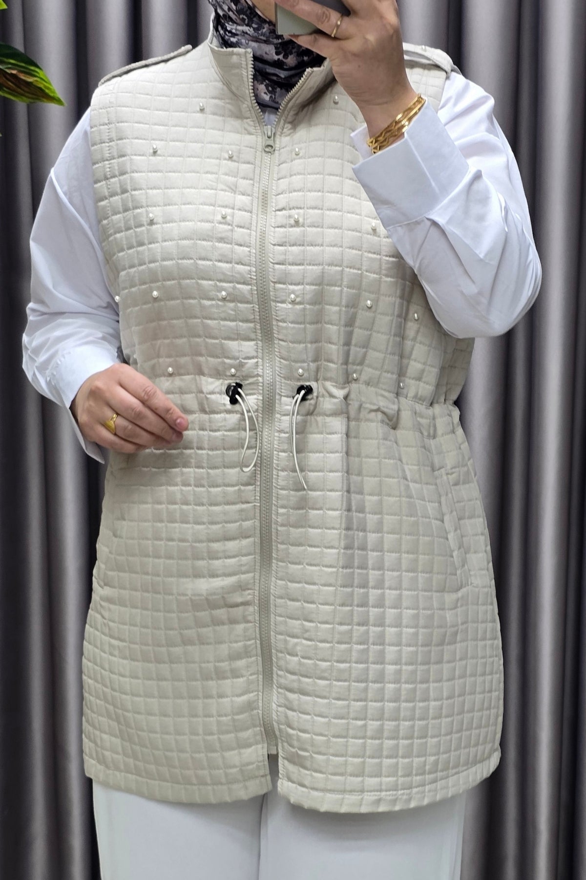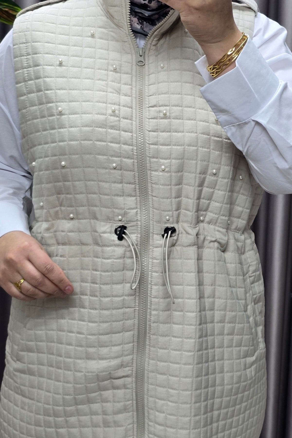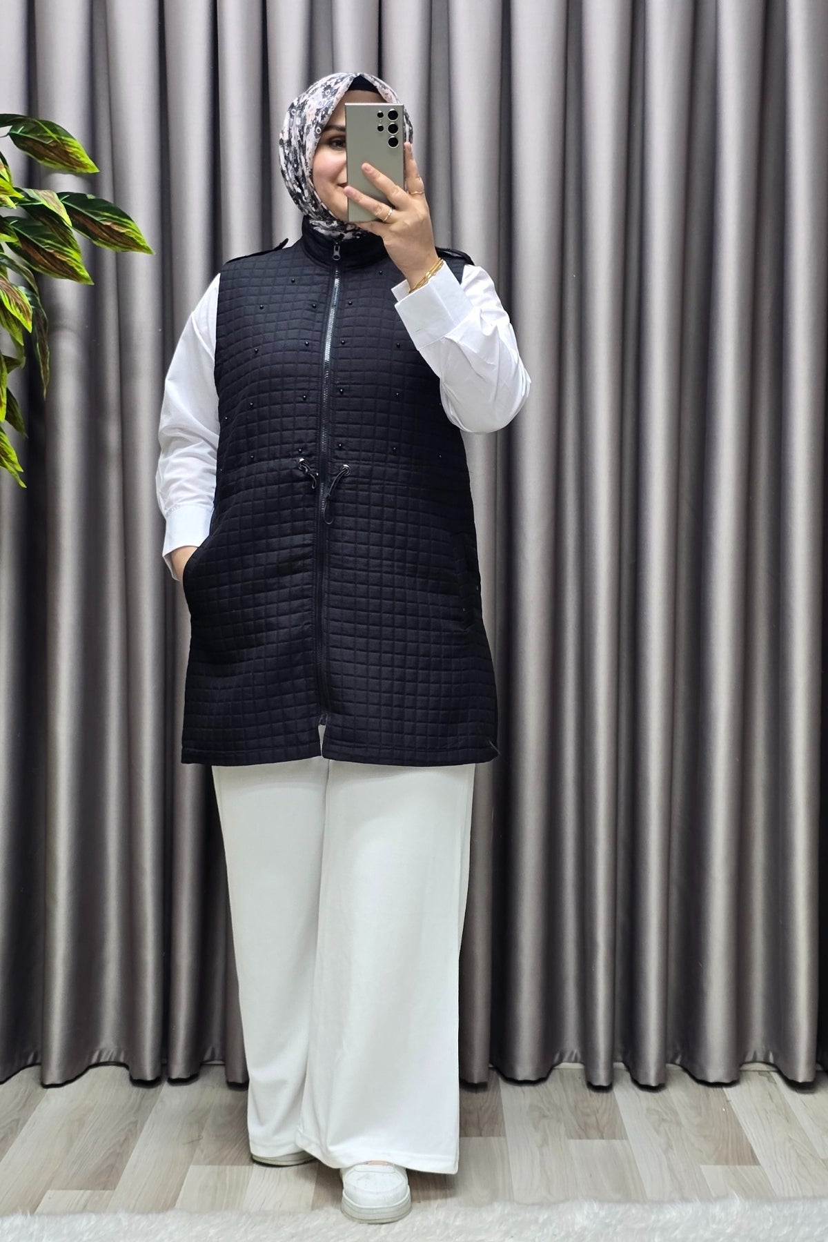 Kadın Giyim Büyük Beden İnci Detay Kapitone Yelek