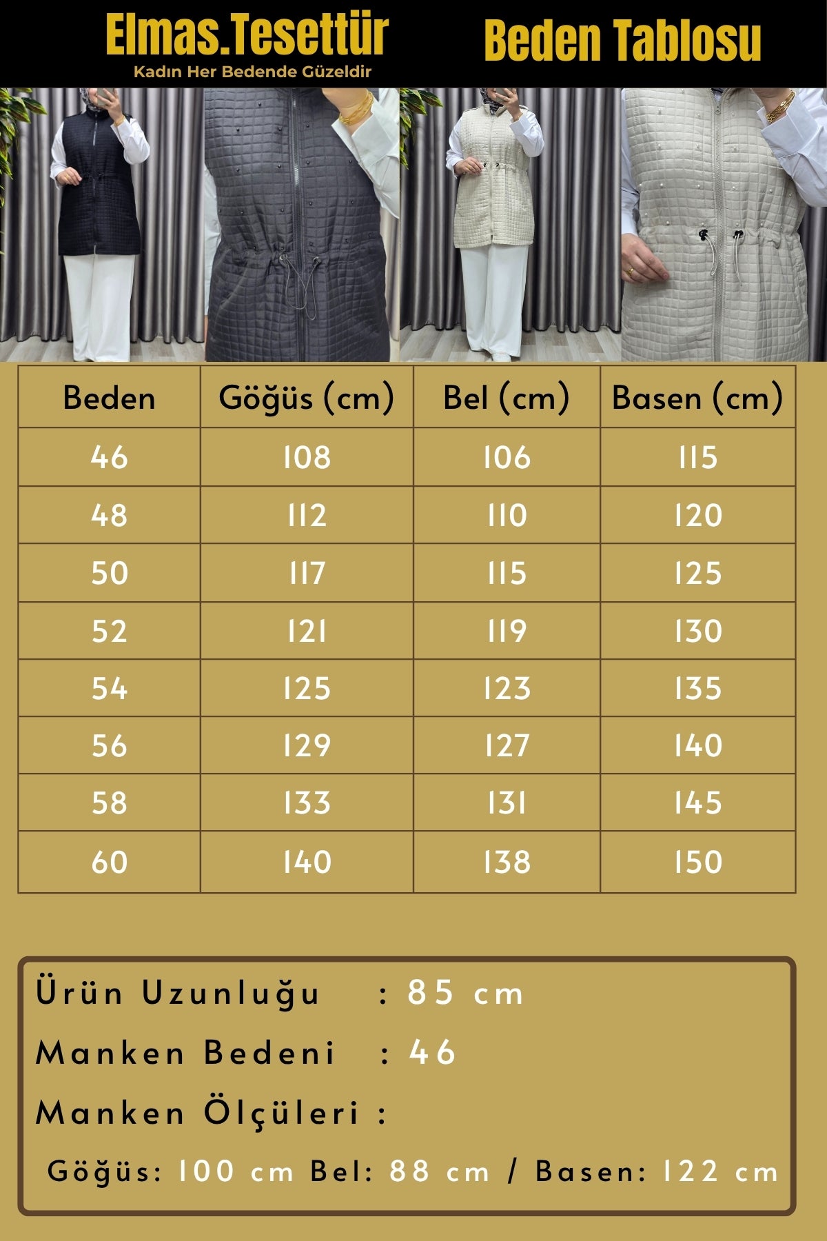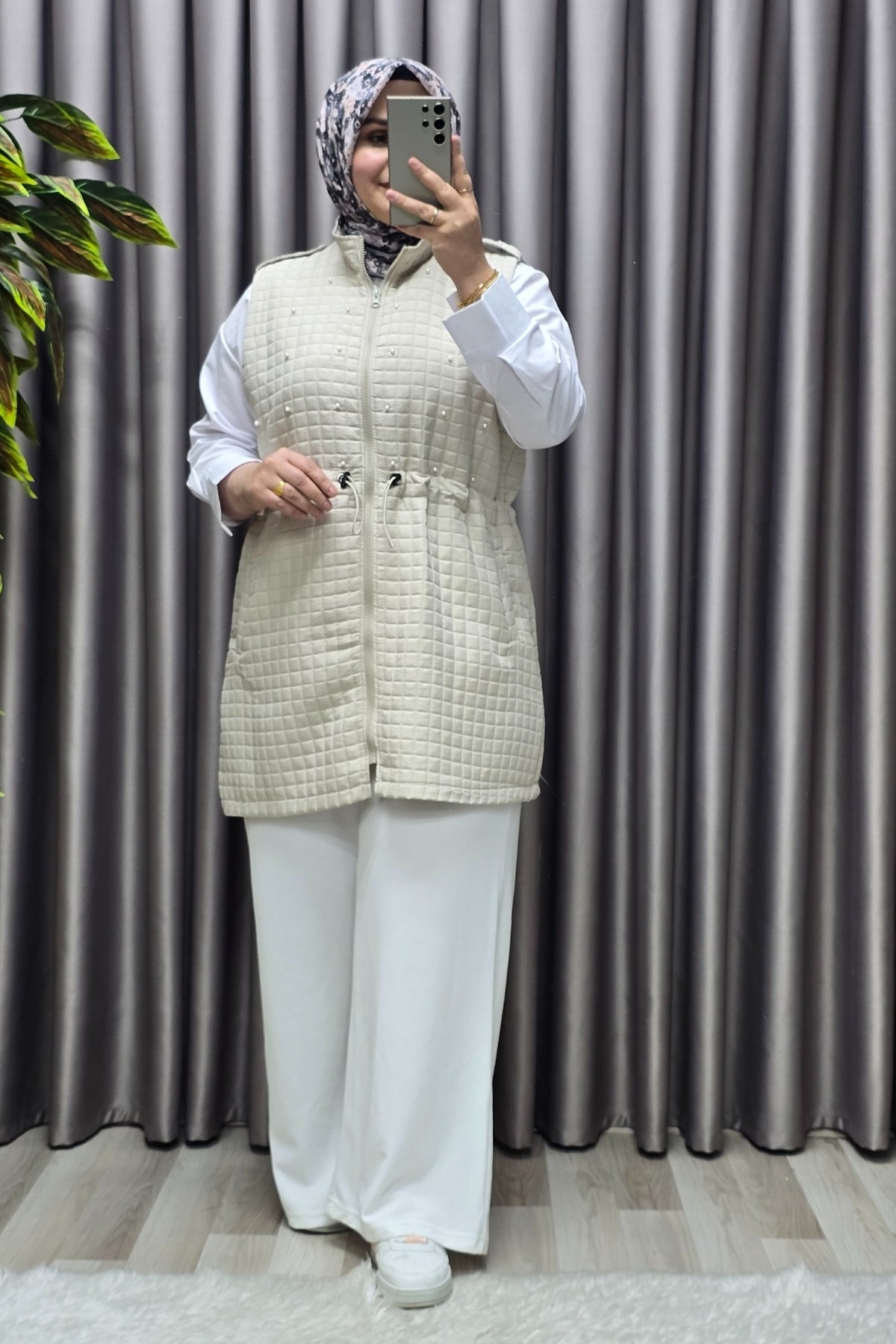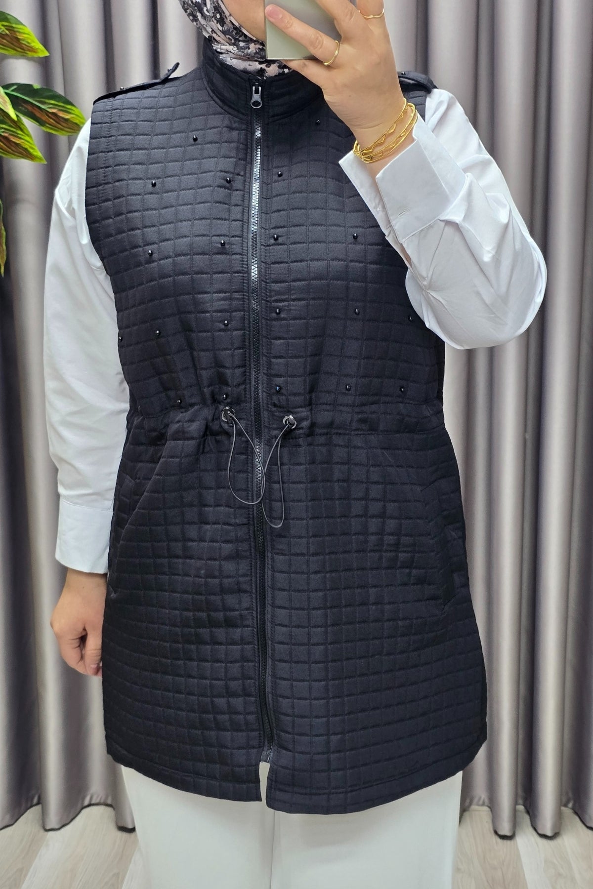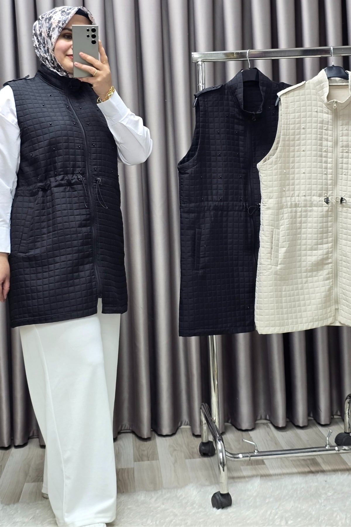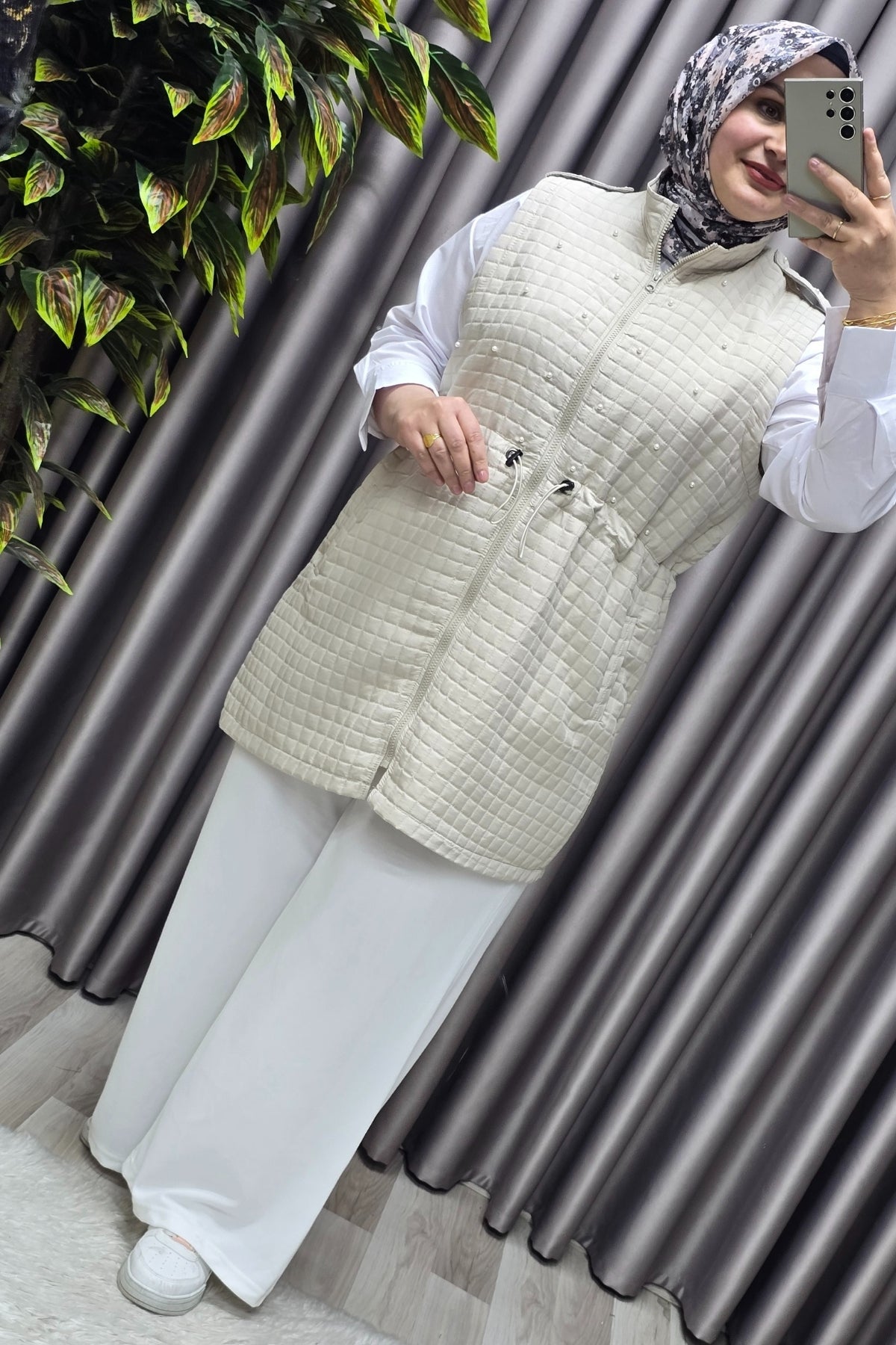 Kadın Giyim Büyük Beden İnci Detay Kapitone Yelek