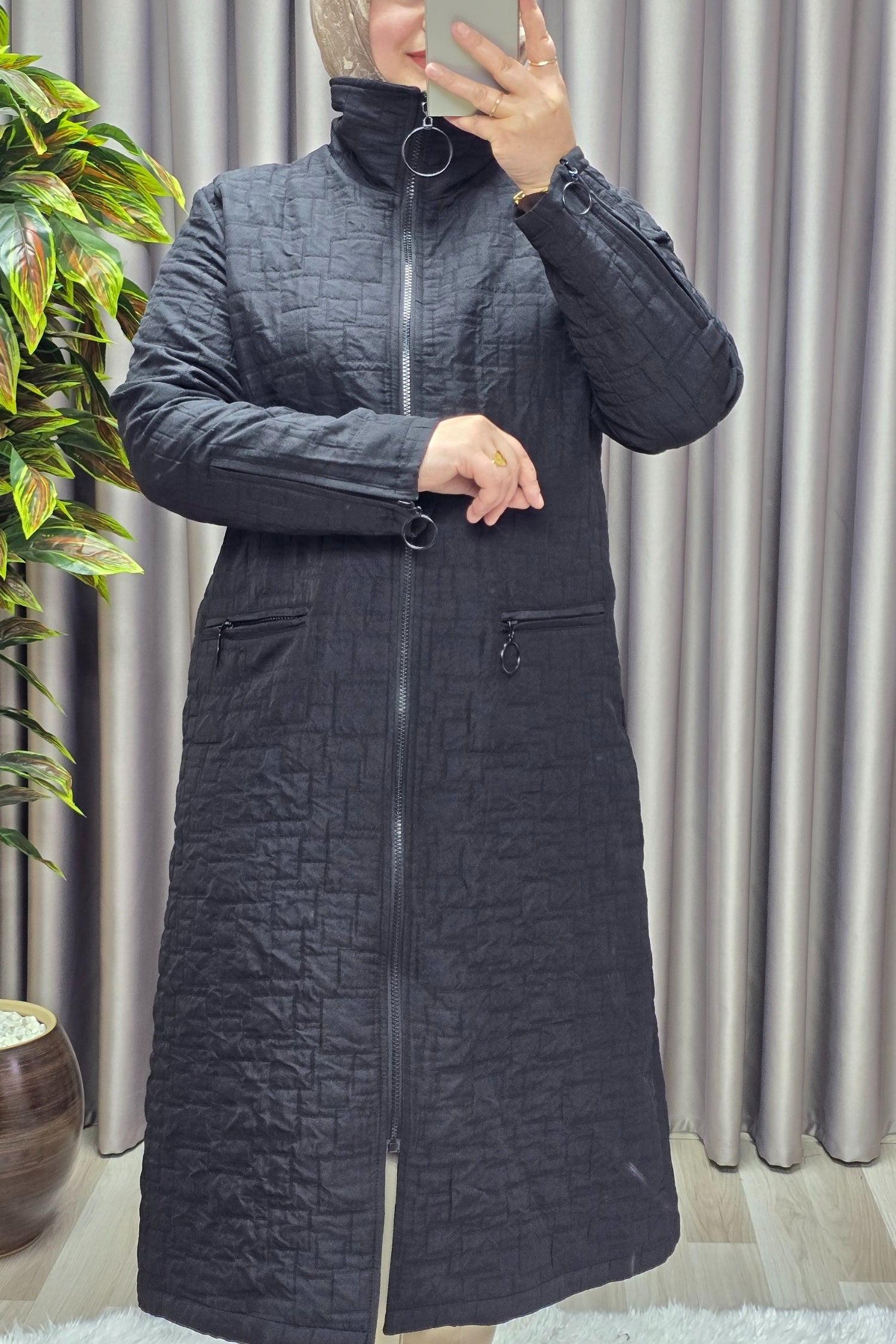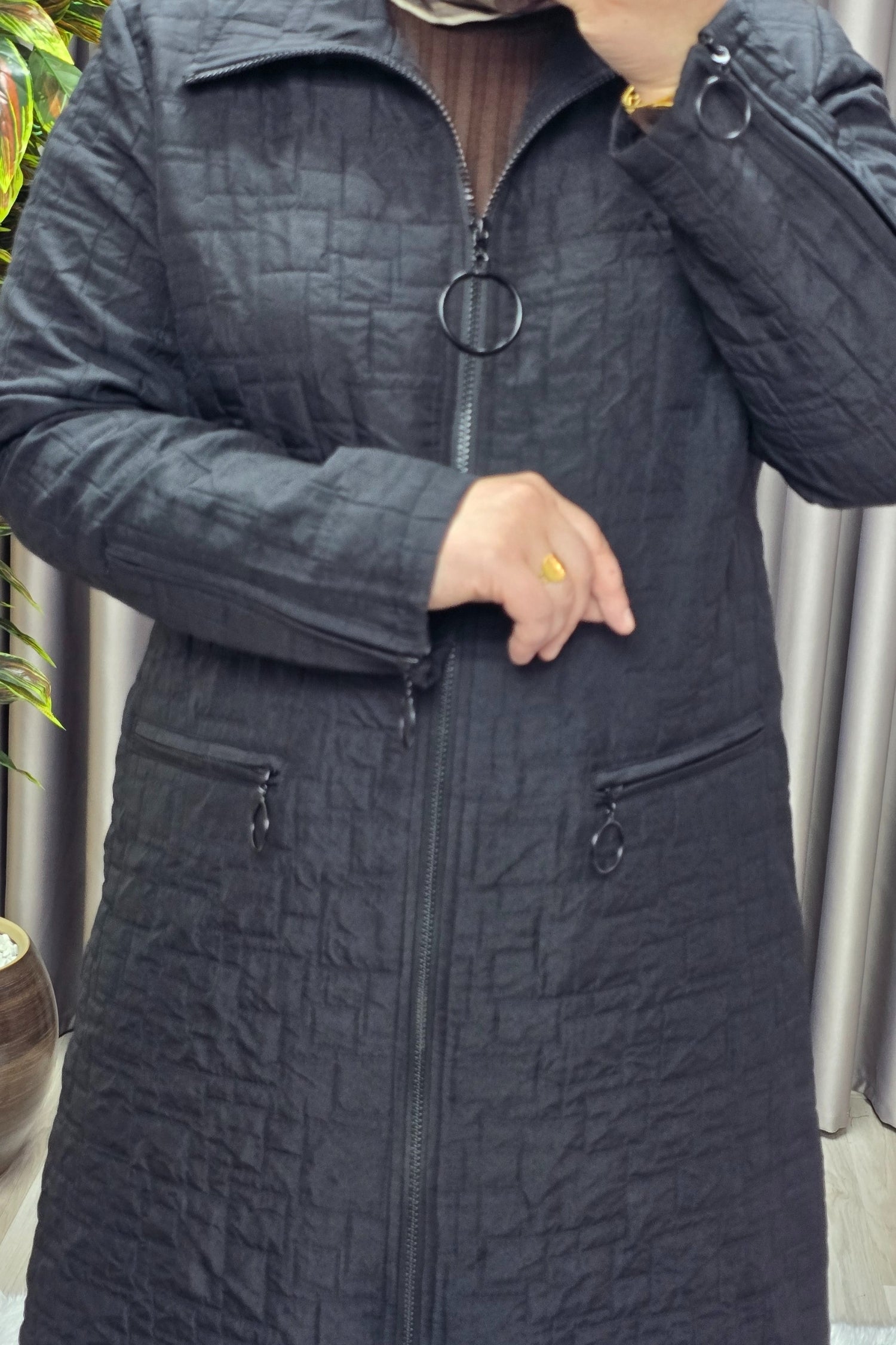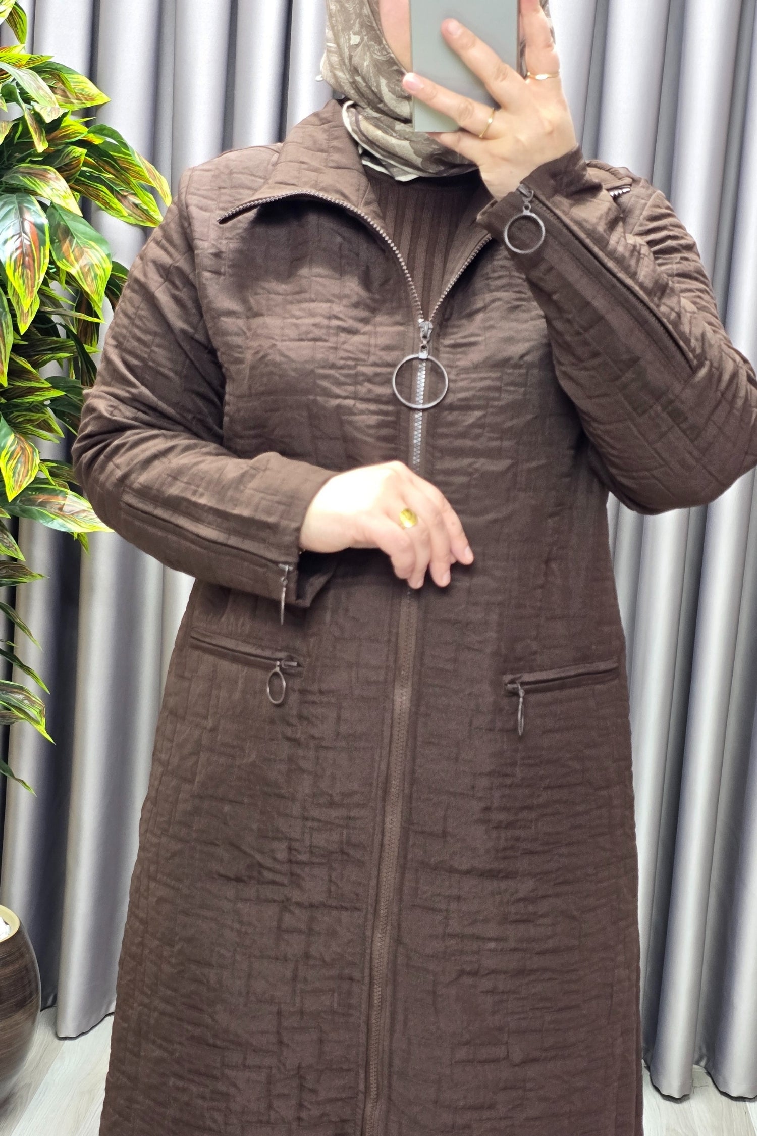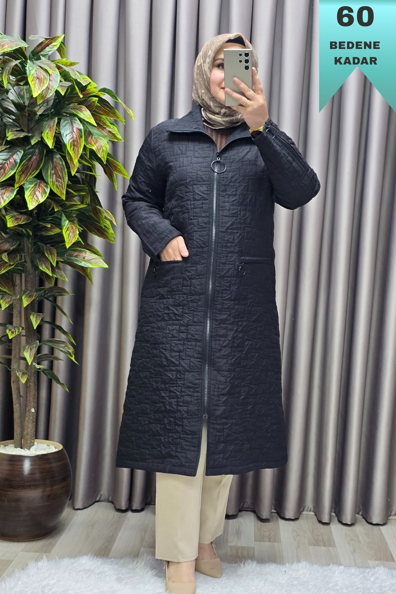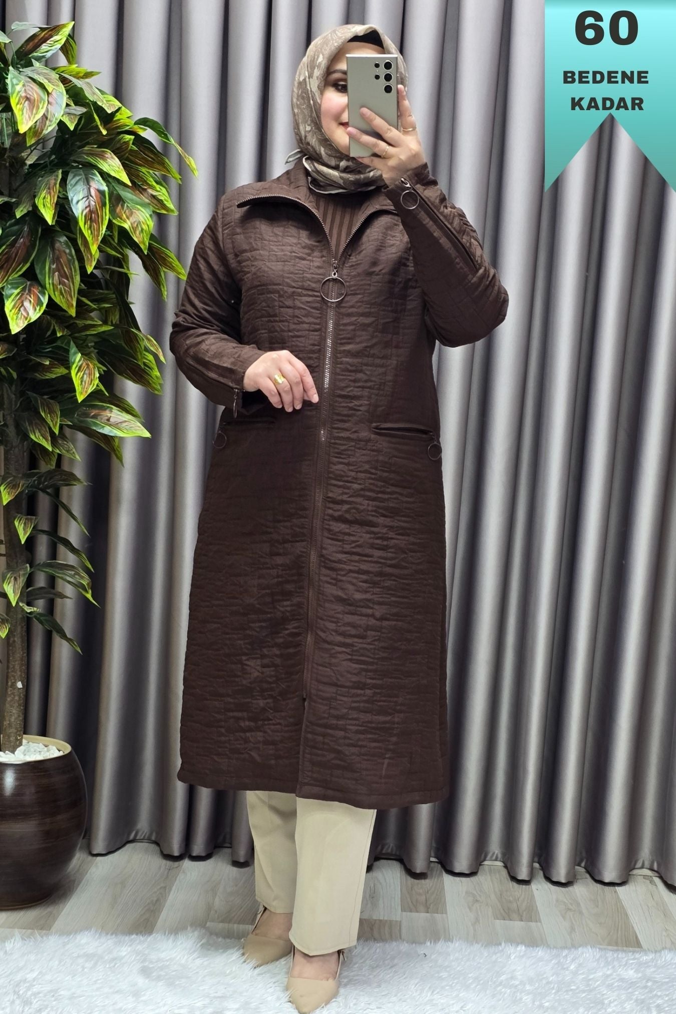 Kadın Giyim Büyük Beden Kapitone Kolu Fermuarlı Kap