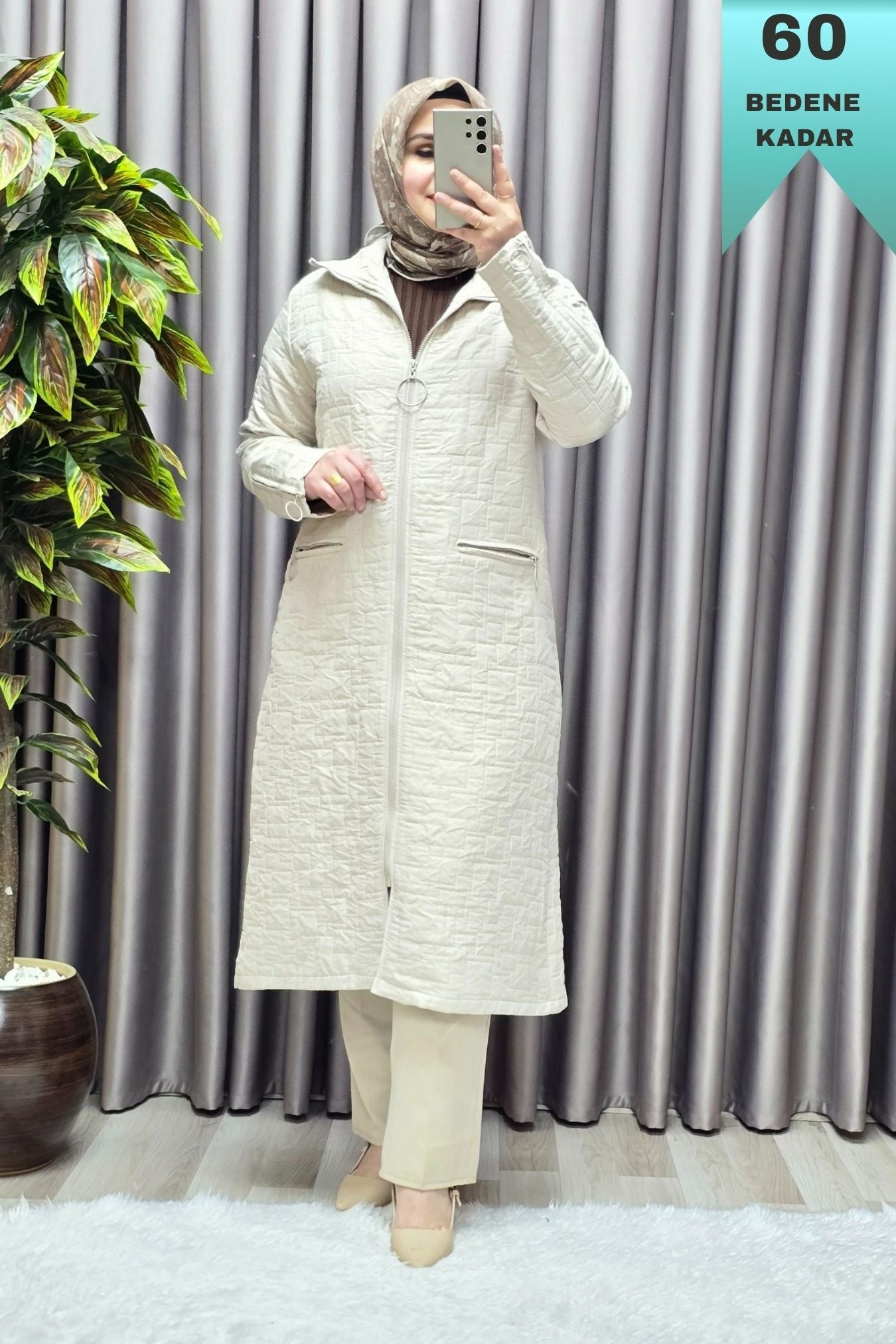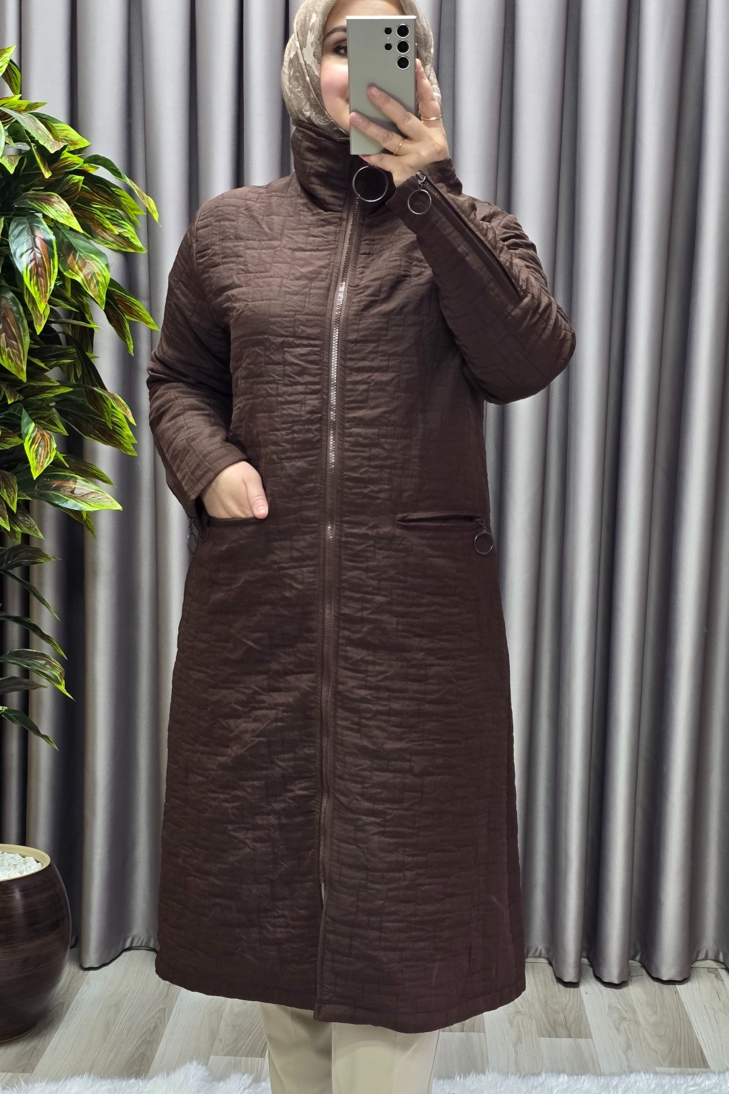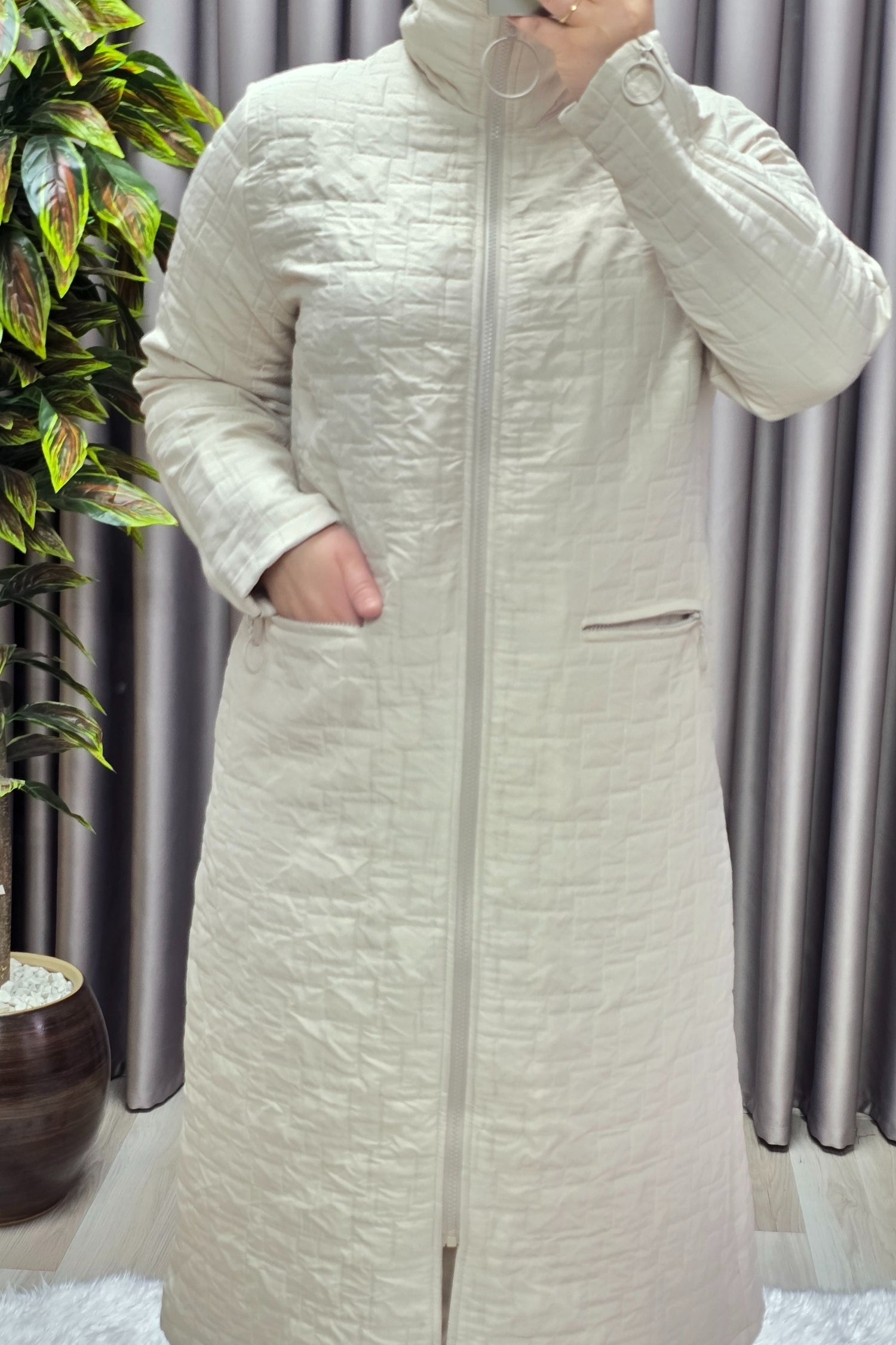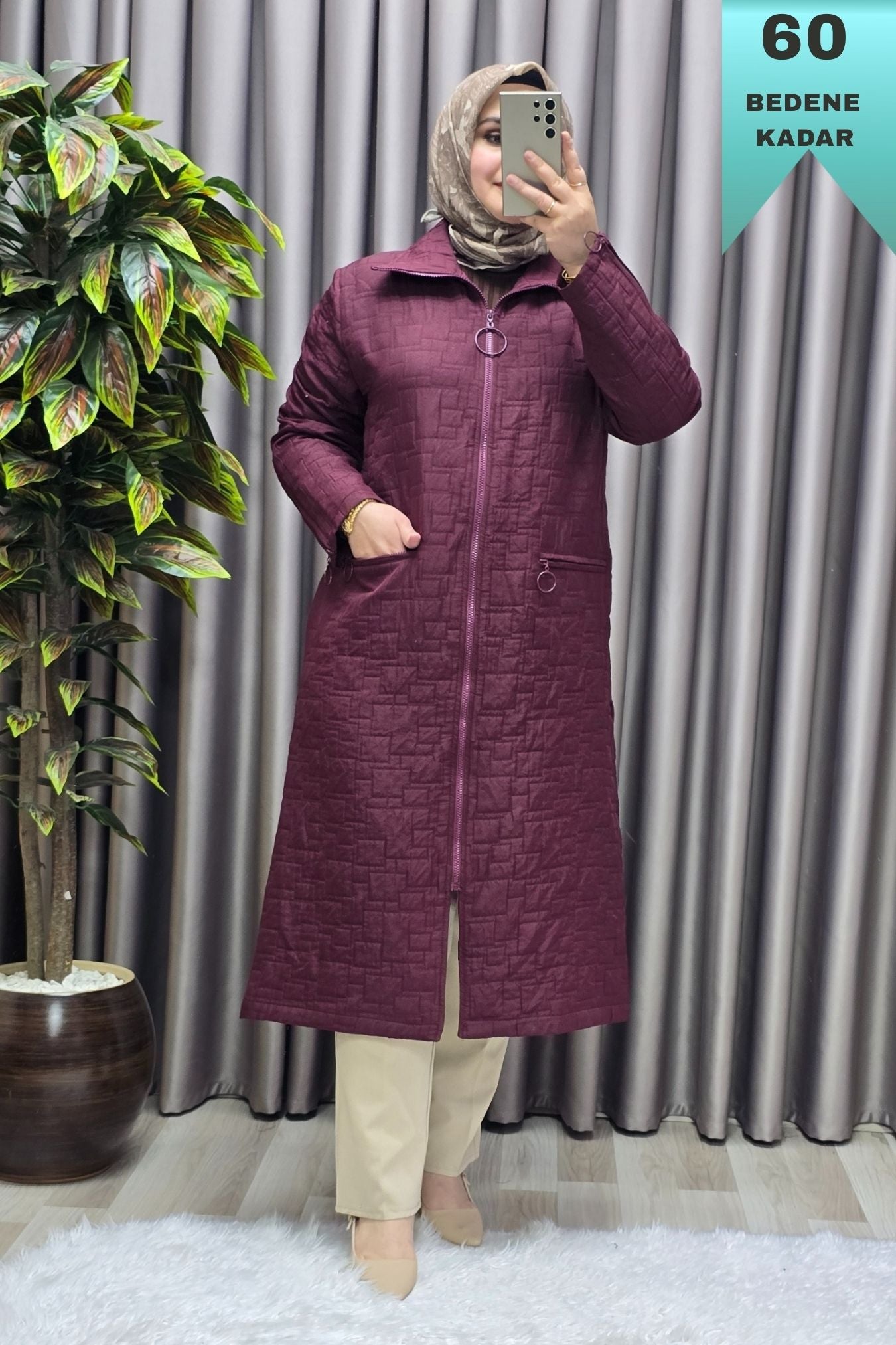 Kadın Giyim Büyük Beden Kapitone Kolu Fermuarlı Kap