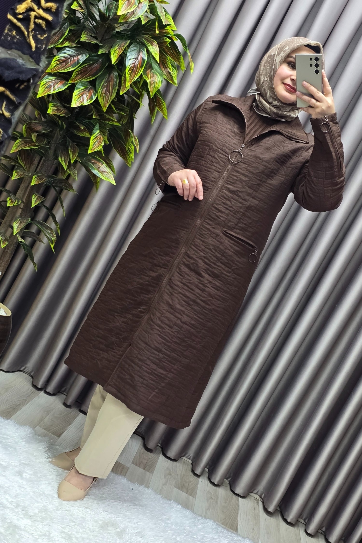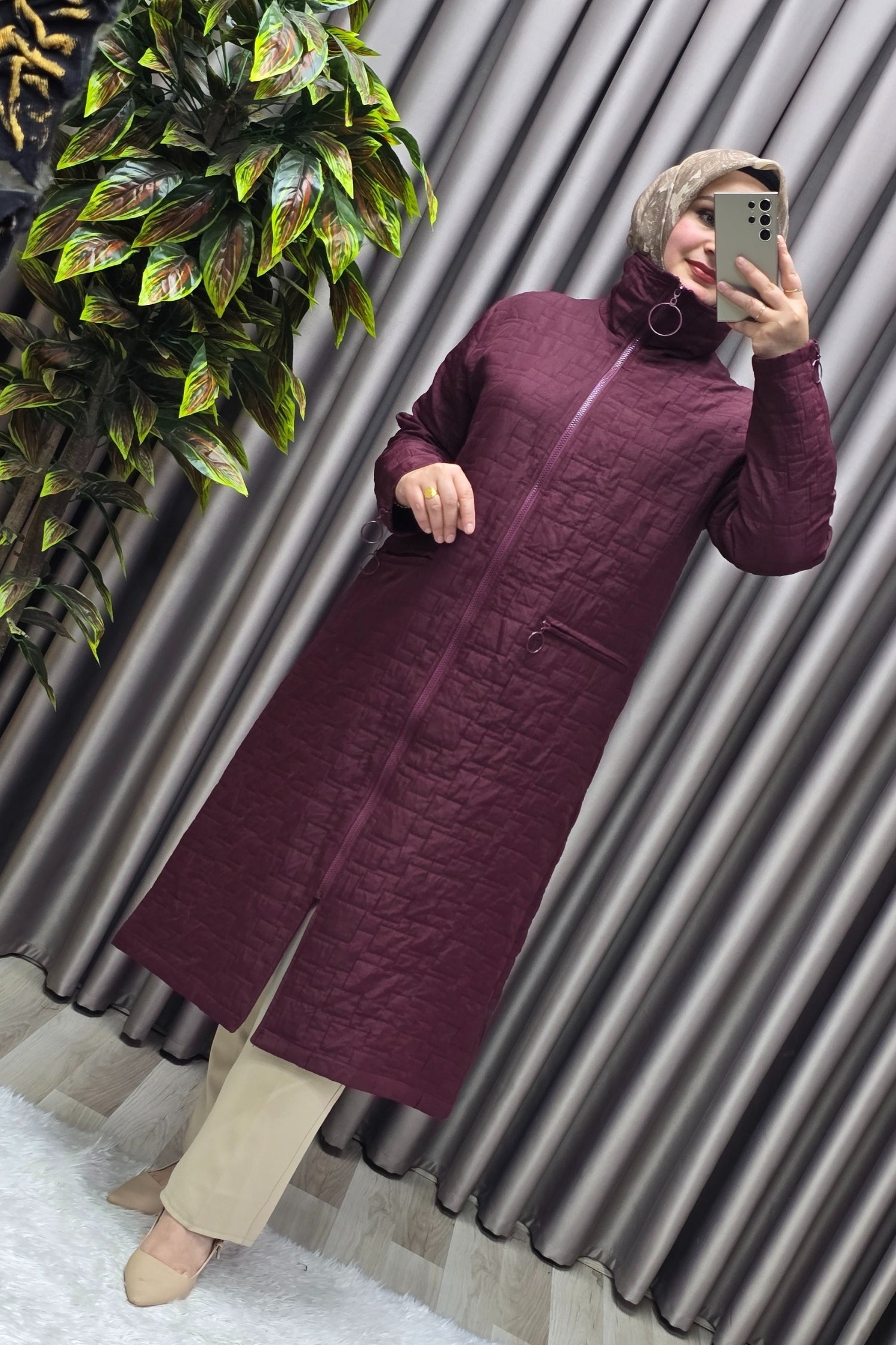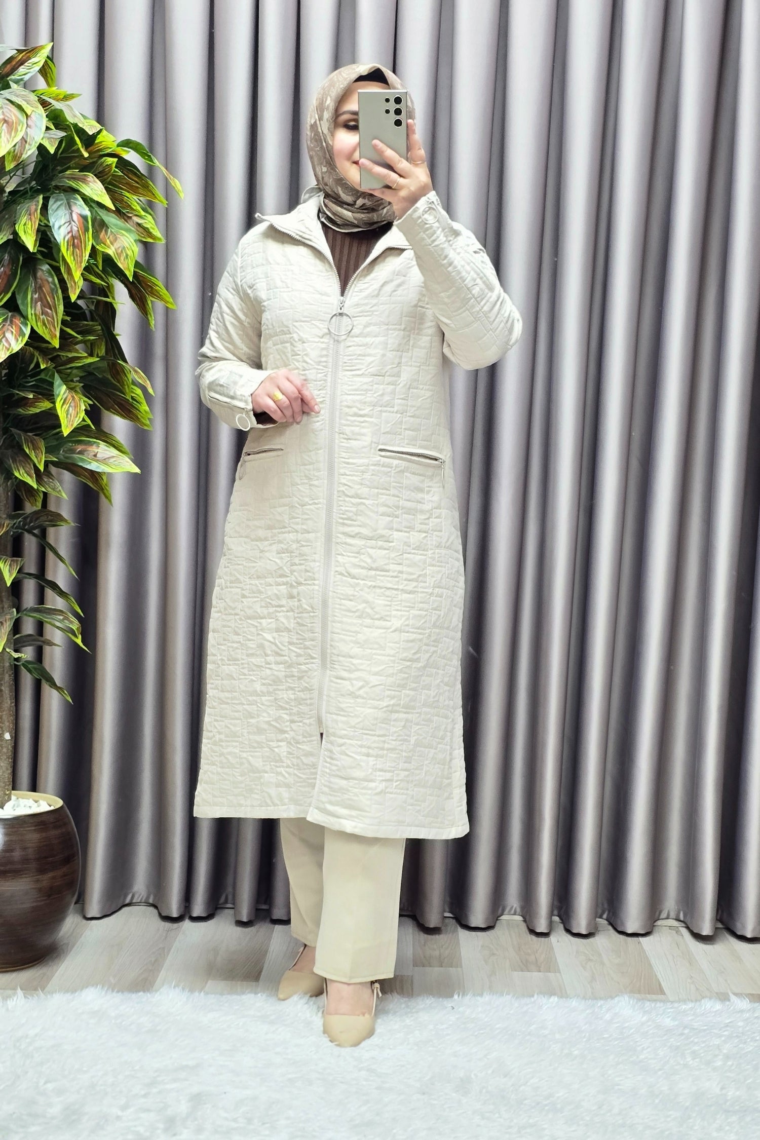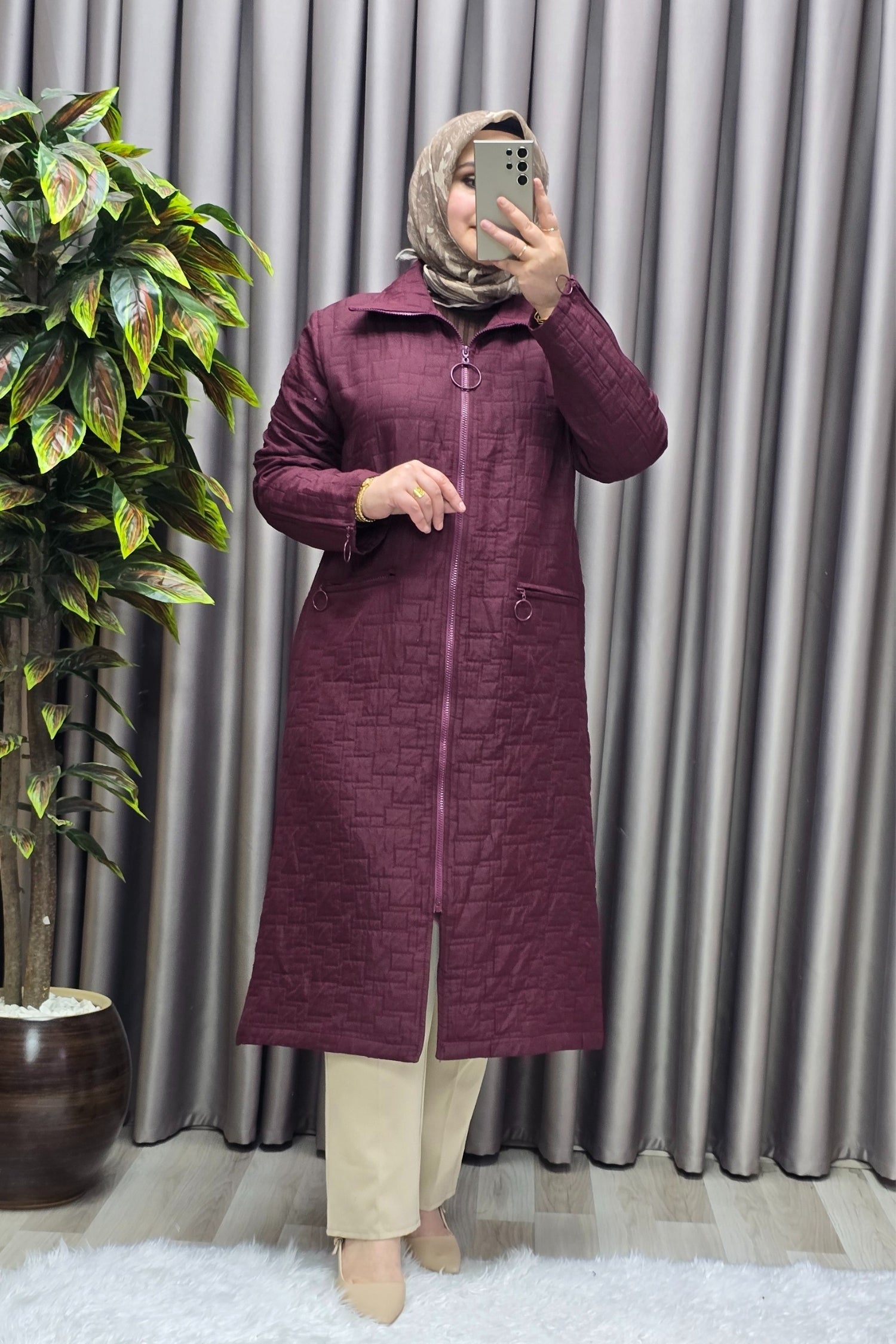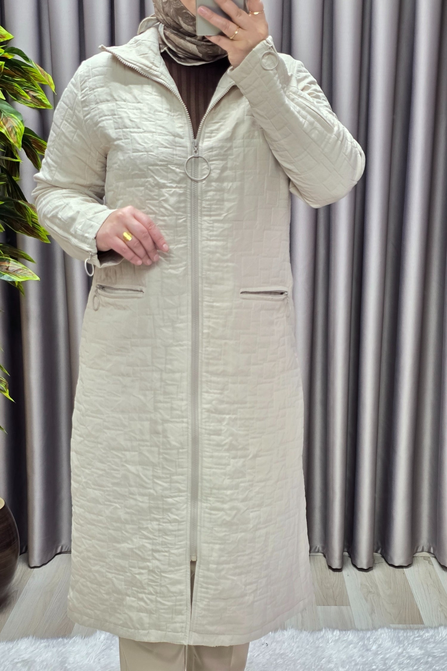 Kadın Giyim Büyük Beden Kapitone Kolu Fermuarlı Kap