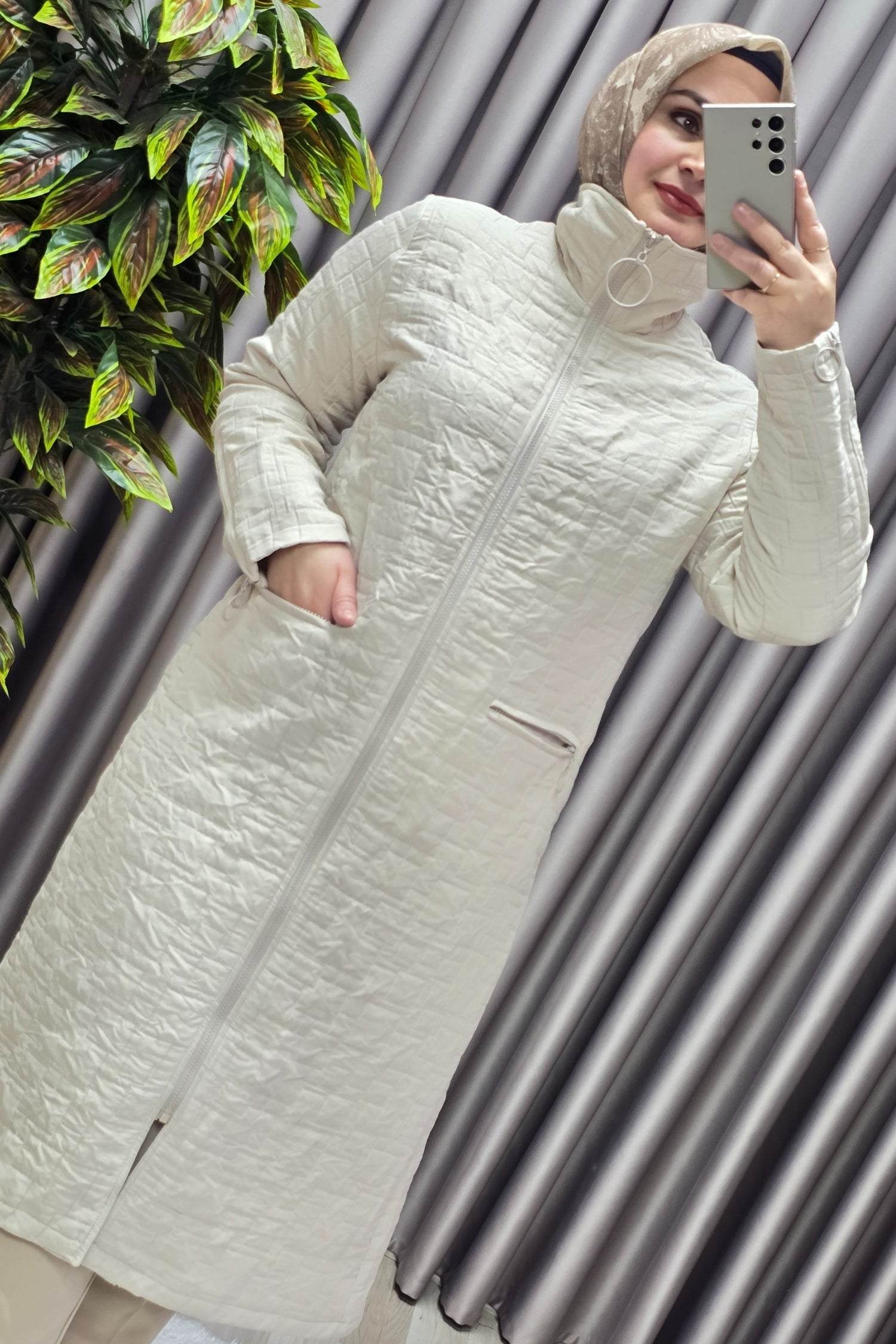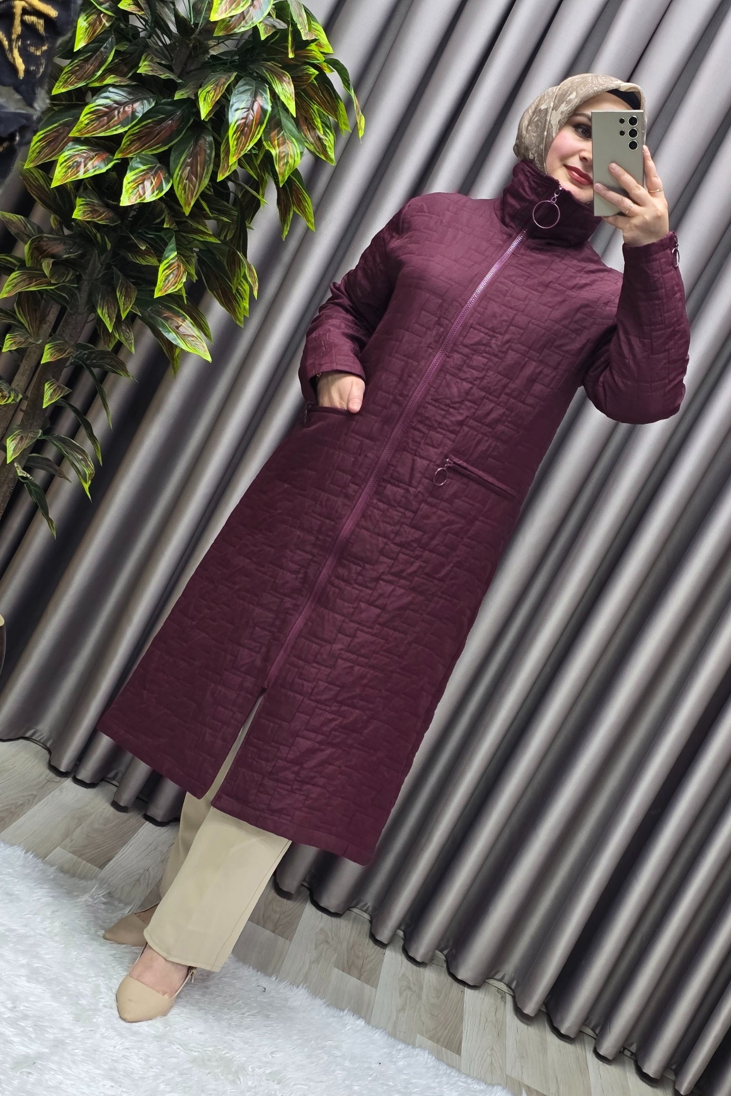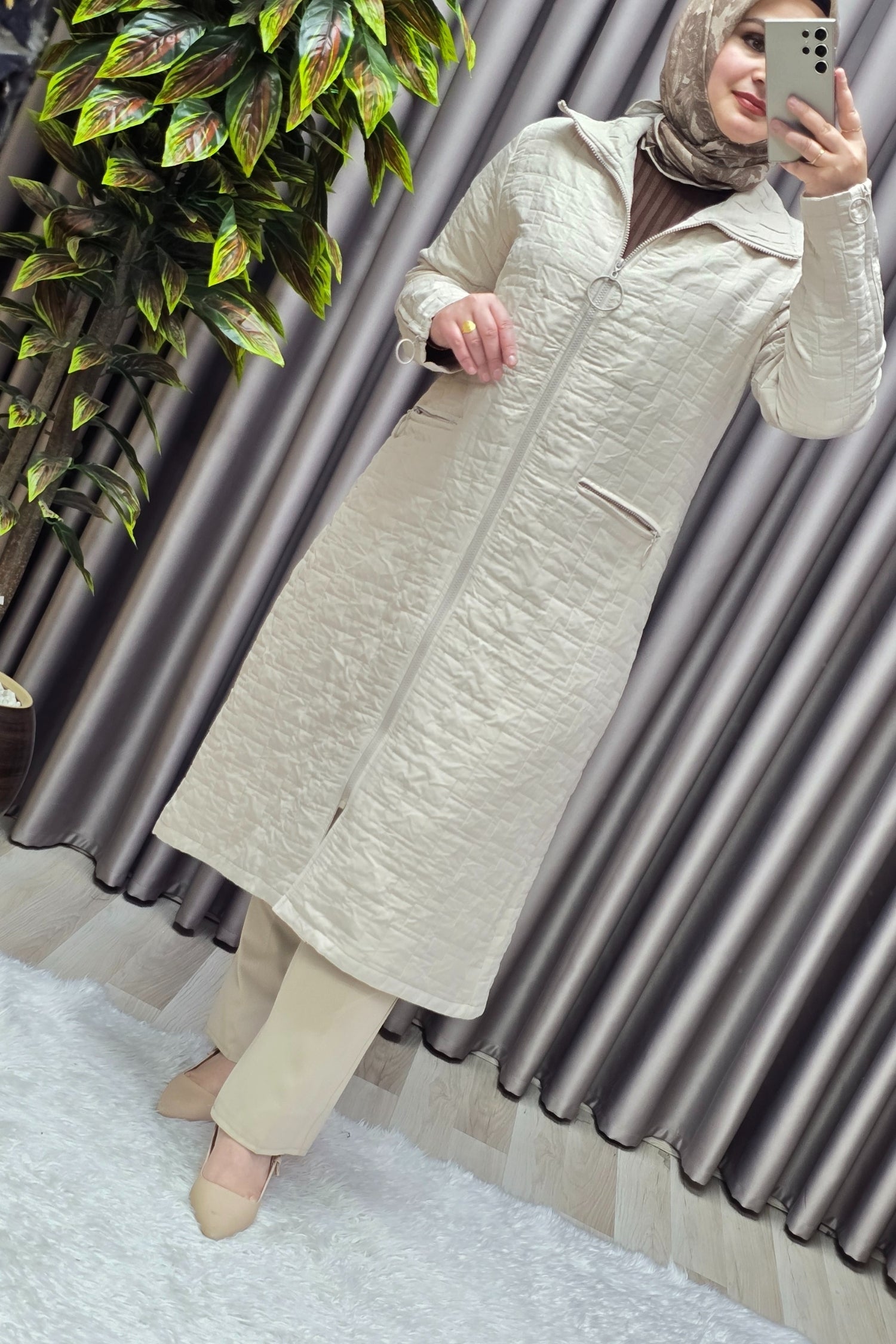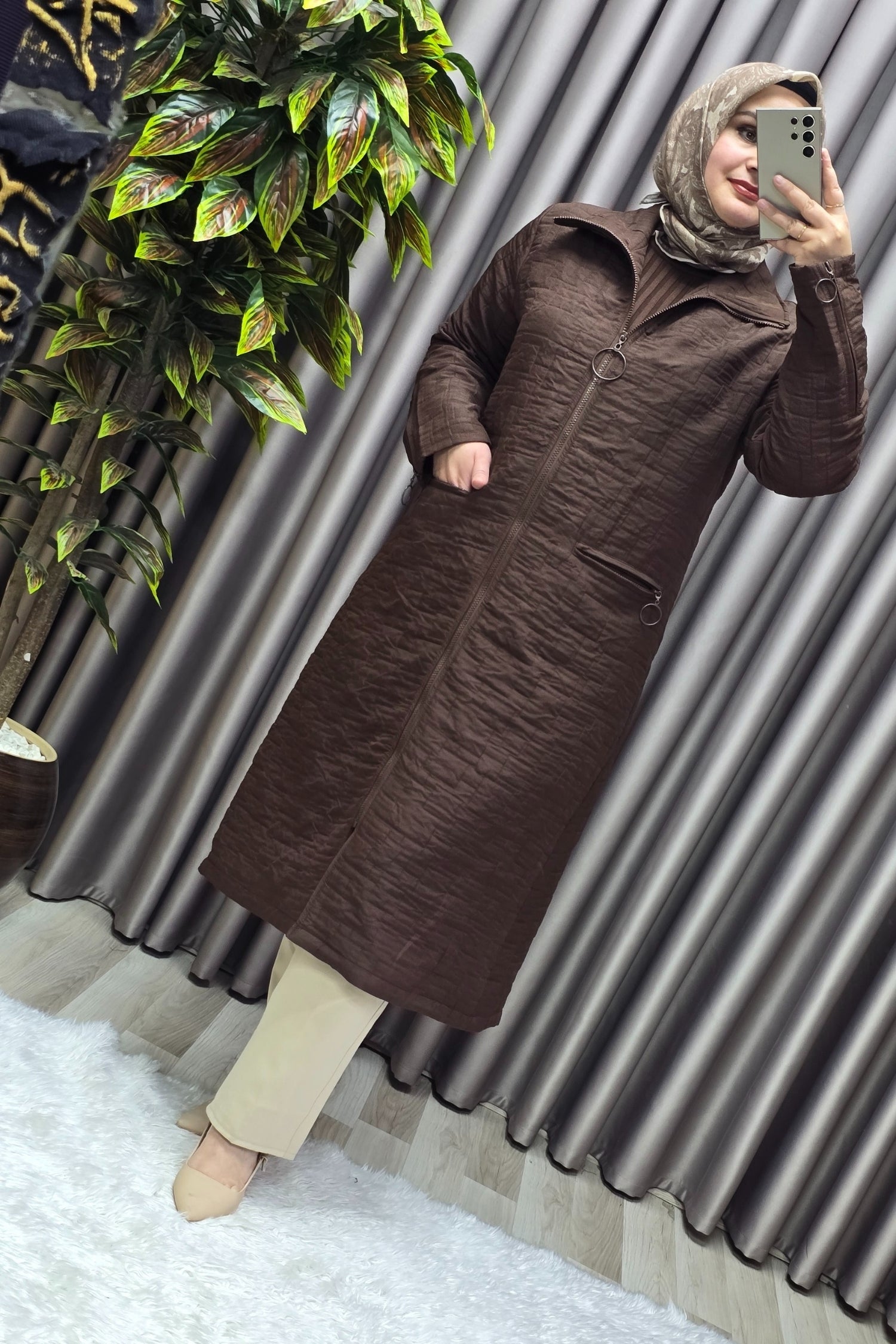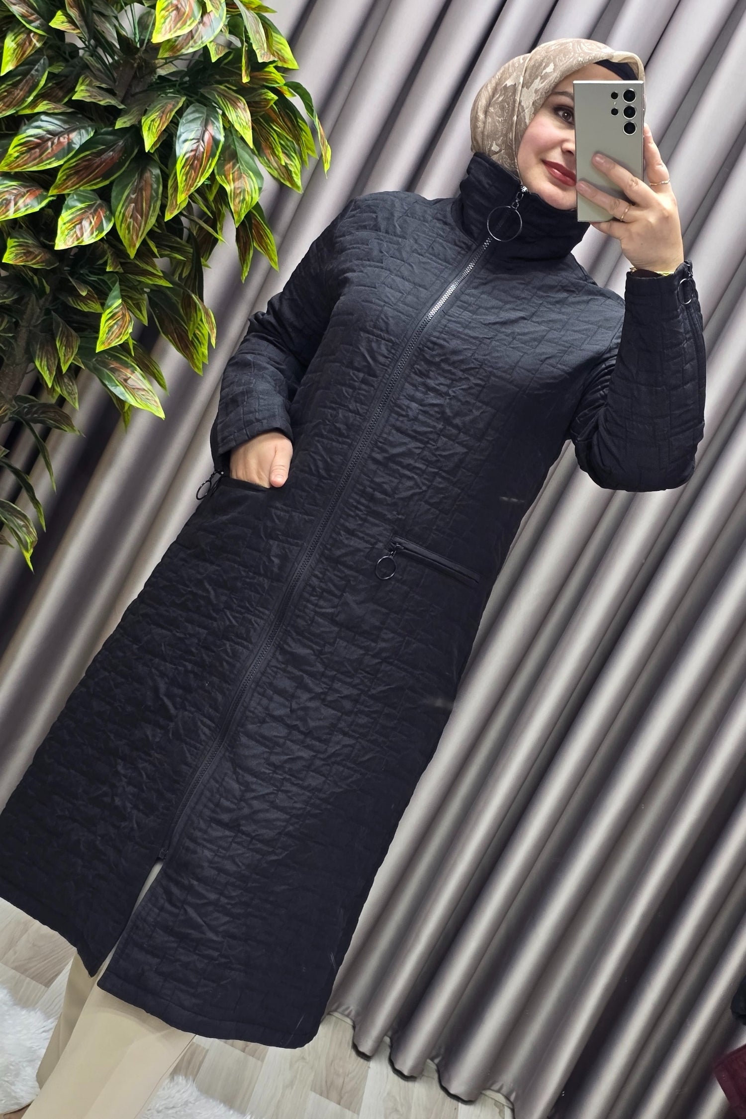 Kadın Giyim Büyük Beden Kapitone Kolu Fermuarlı Kap