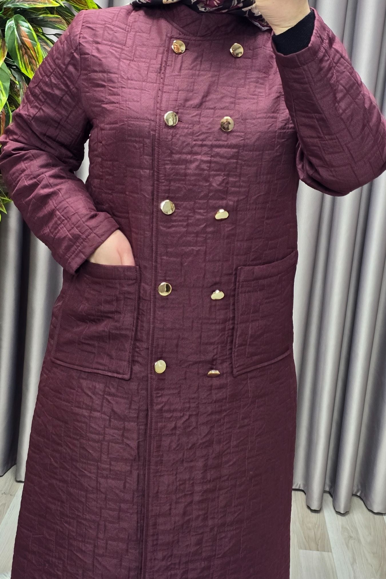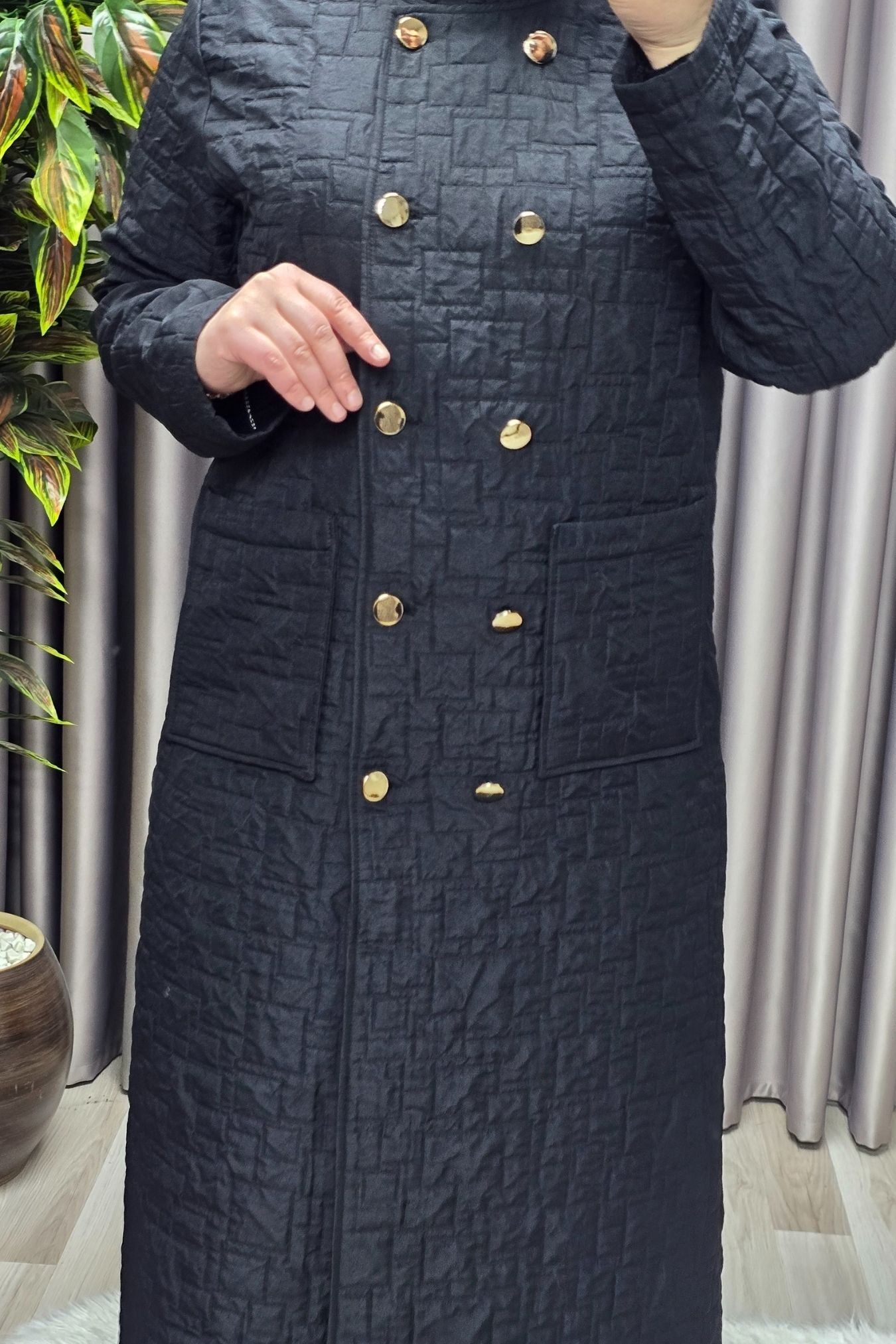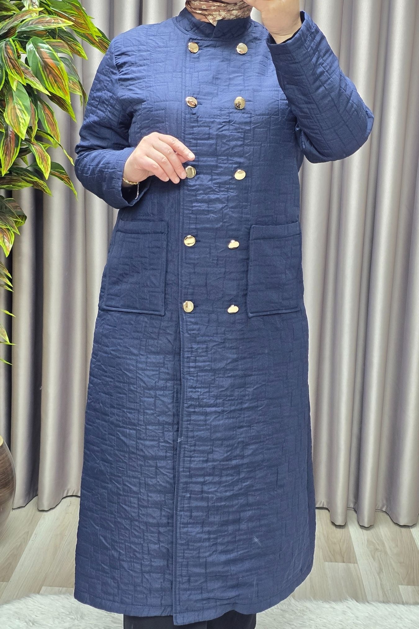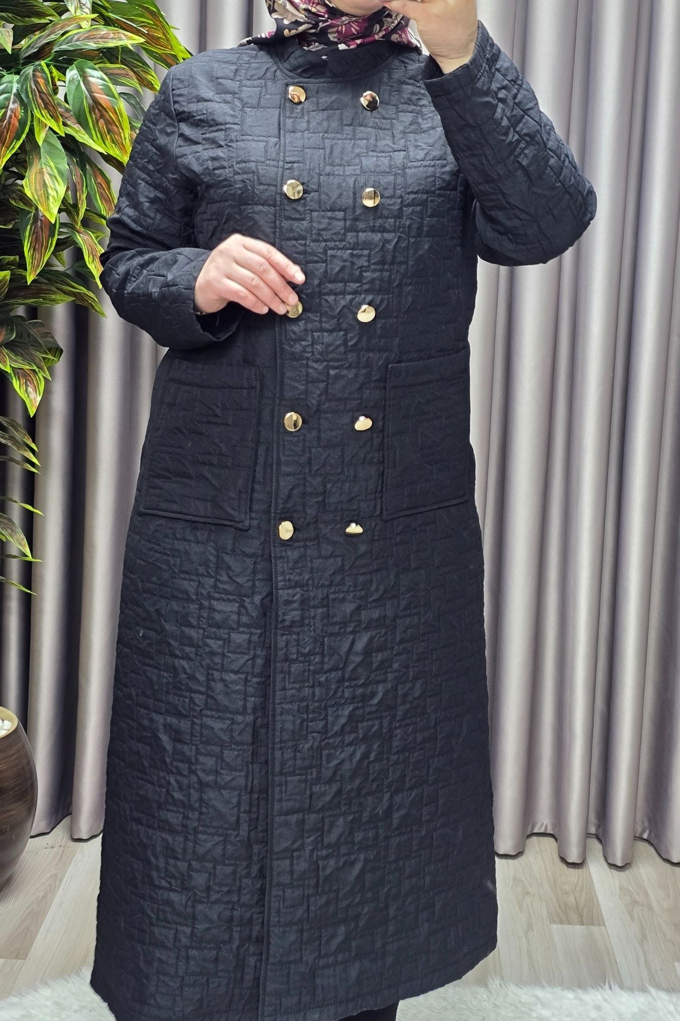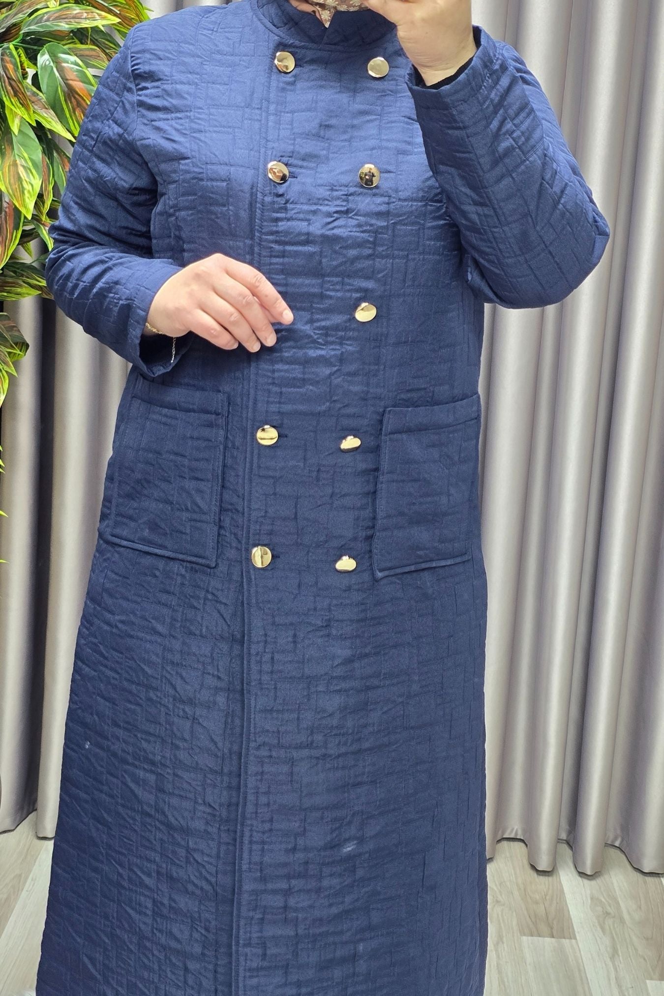 Kadın Giyim Büyük Beden Kapitone Metal Düğmeli Kruvaze Kap