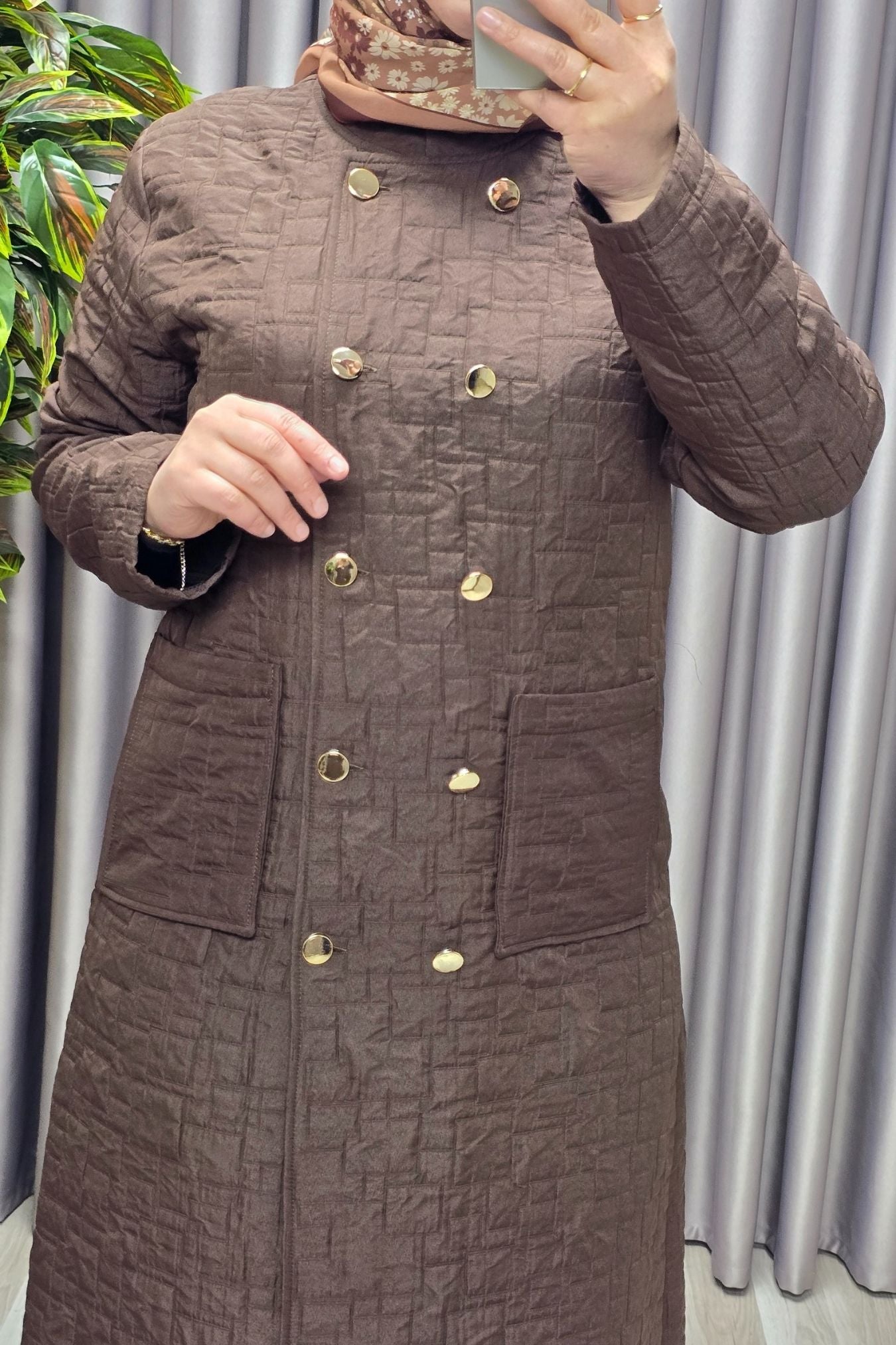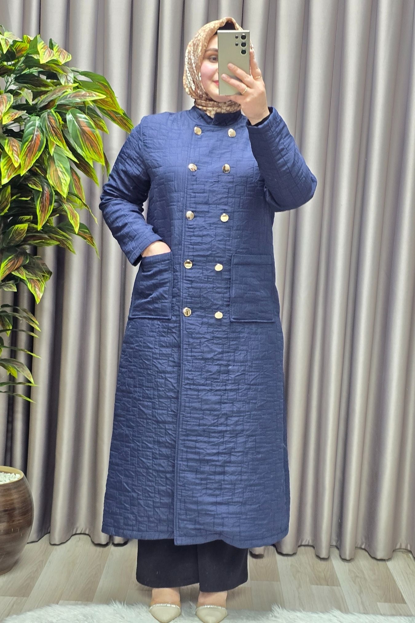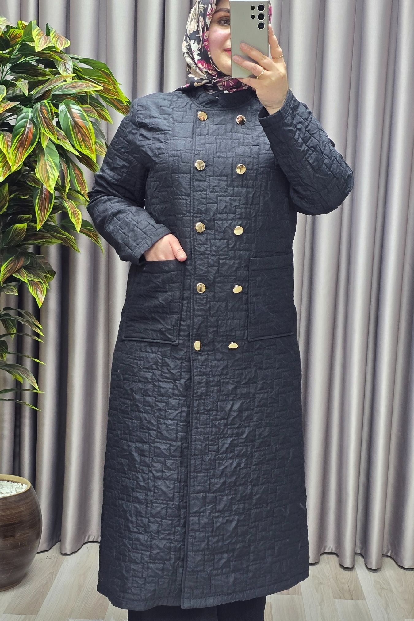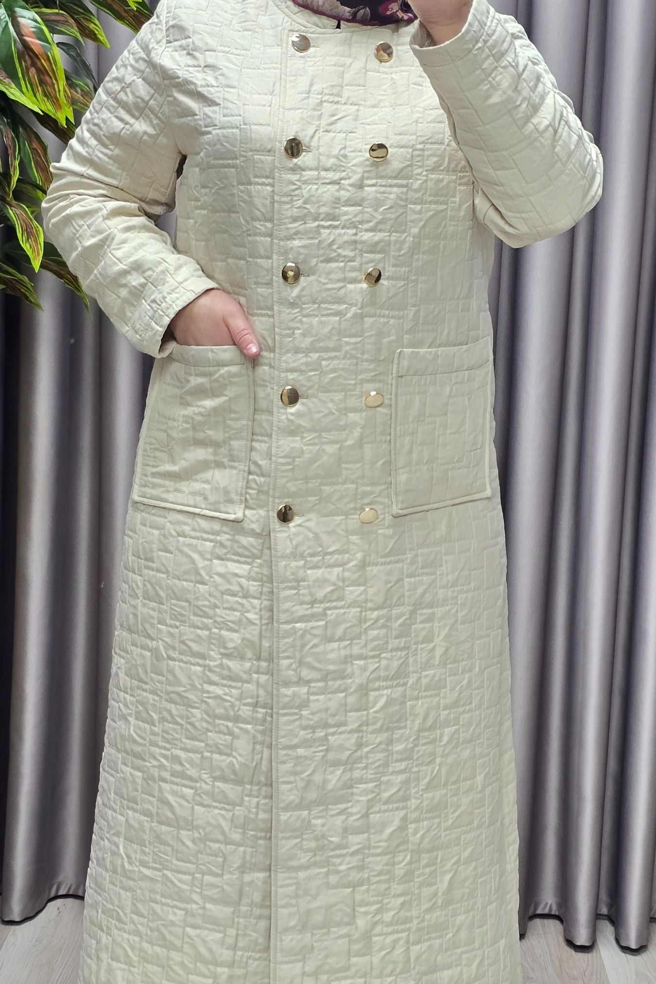 Kadın Giyim Büyük Beden Kapitone Metal Düğmeli Kruvaze Kap