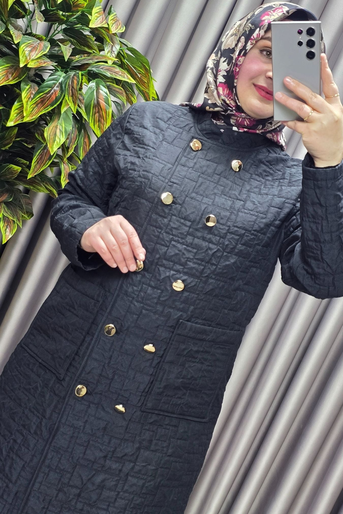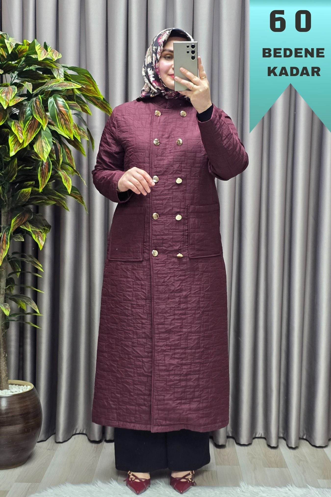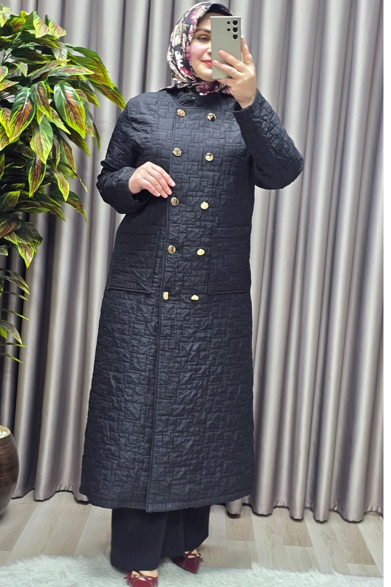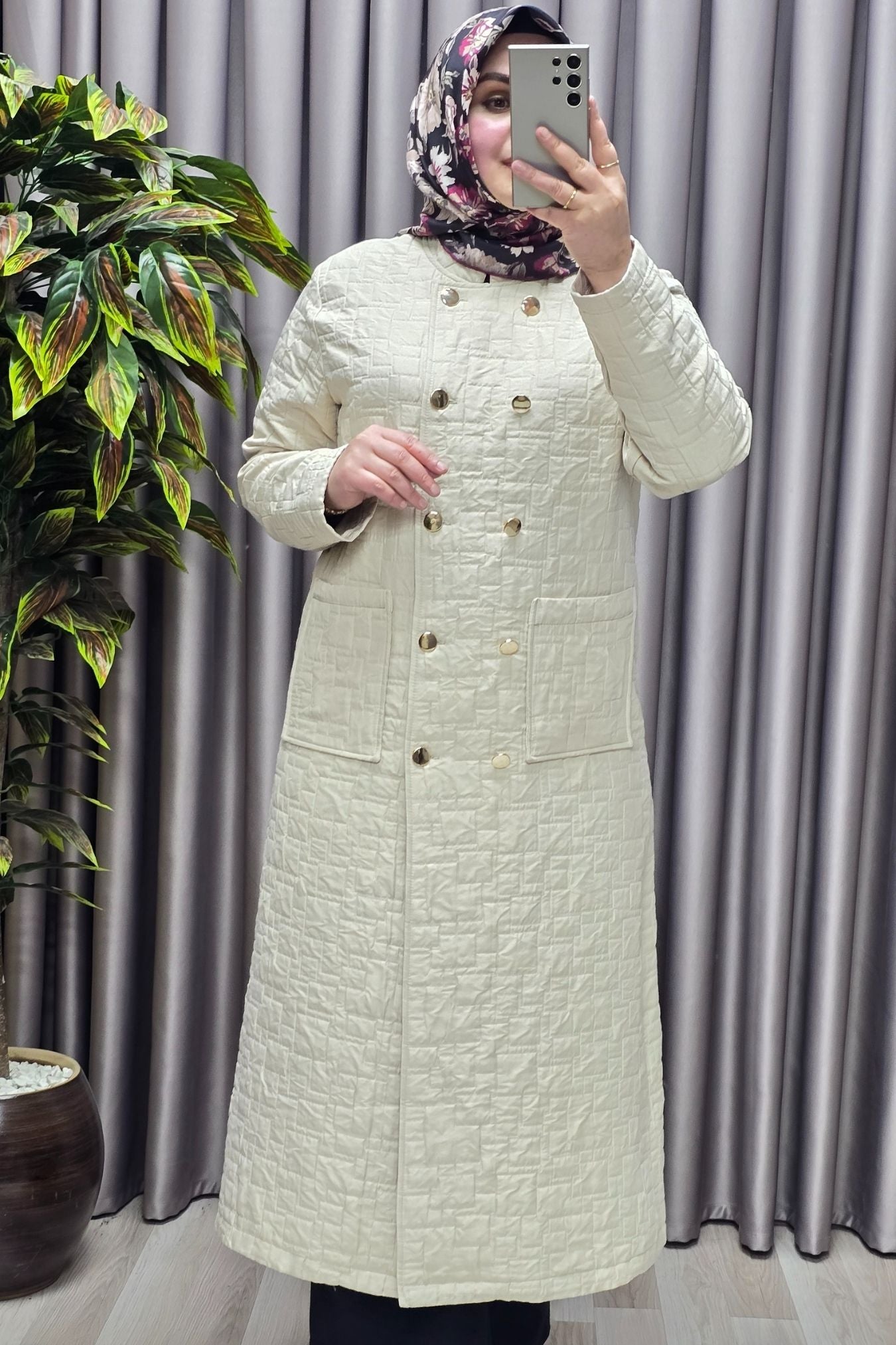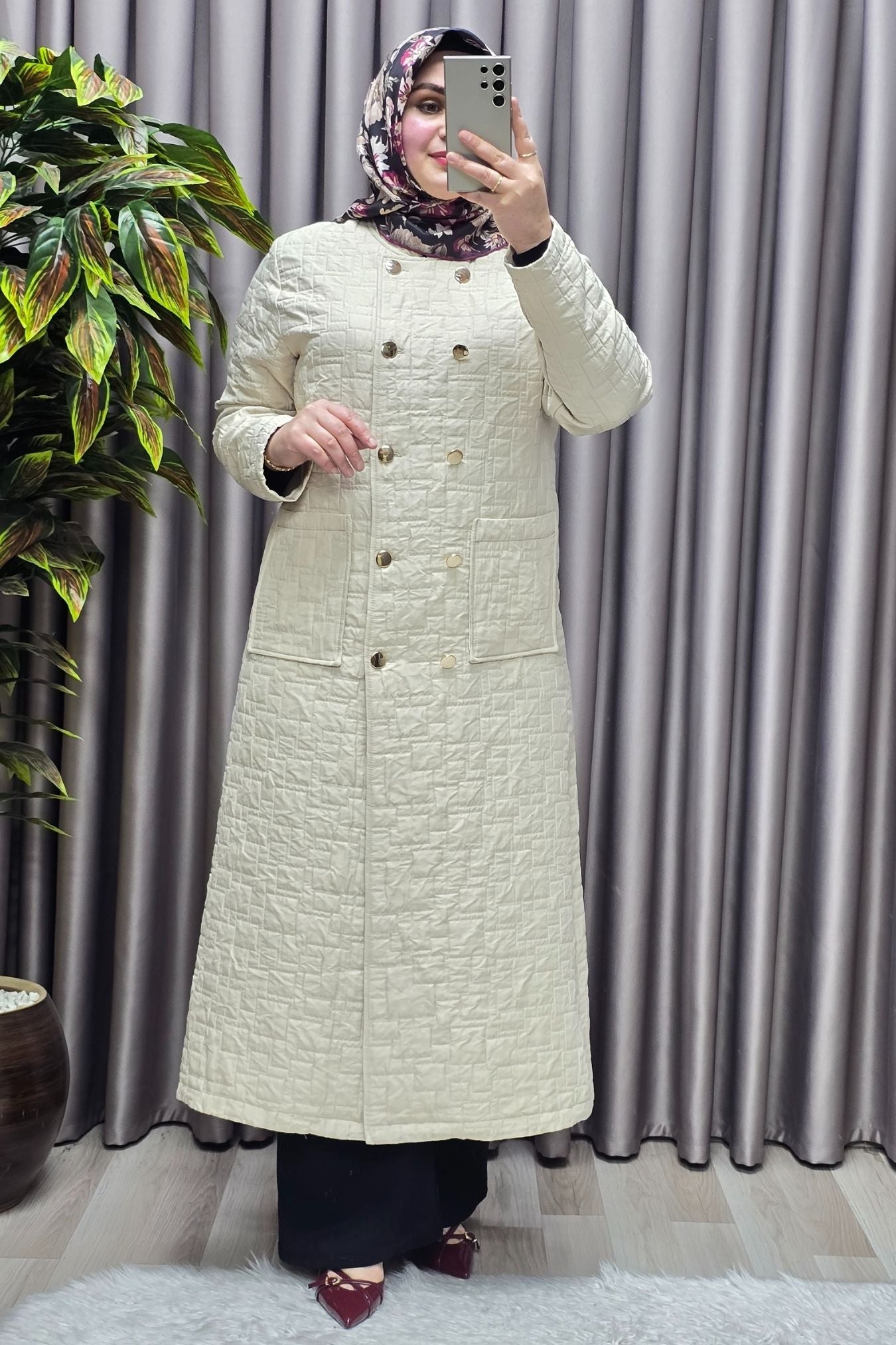 Kadın Giyim Büyük Beden Kapitone Metal Düğmeli Kruvaze Kap