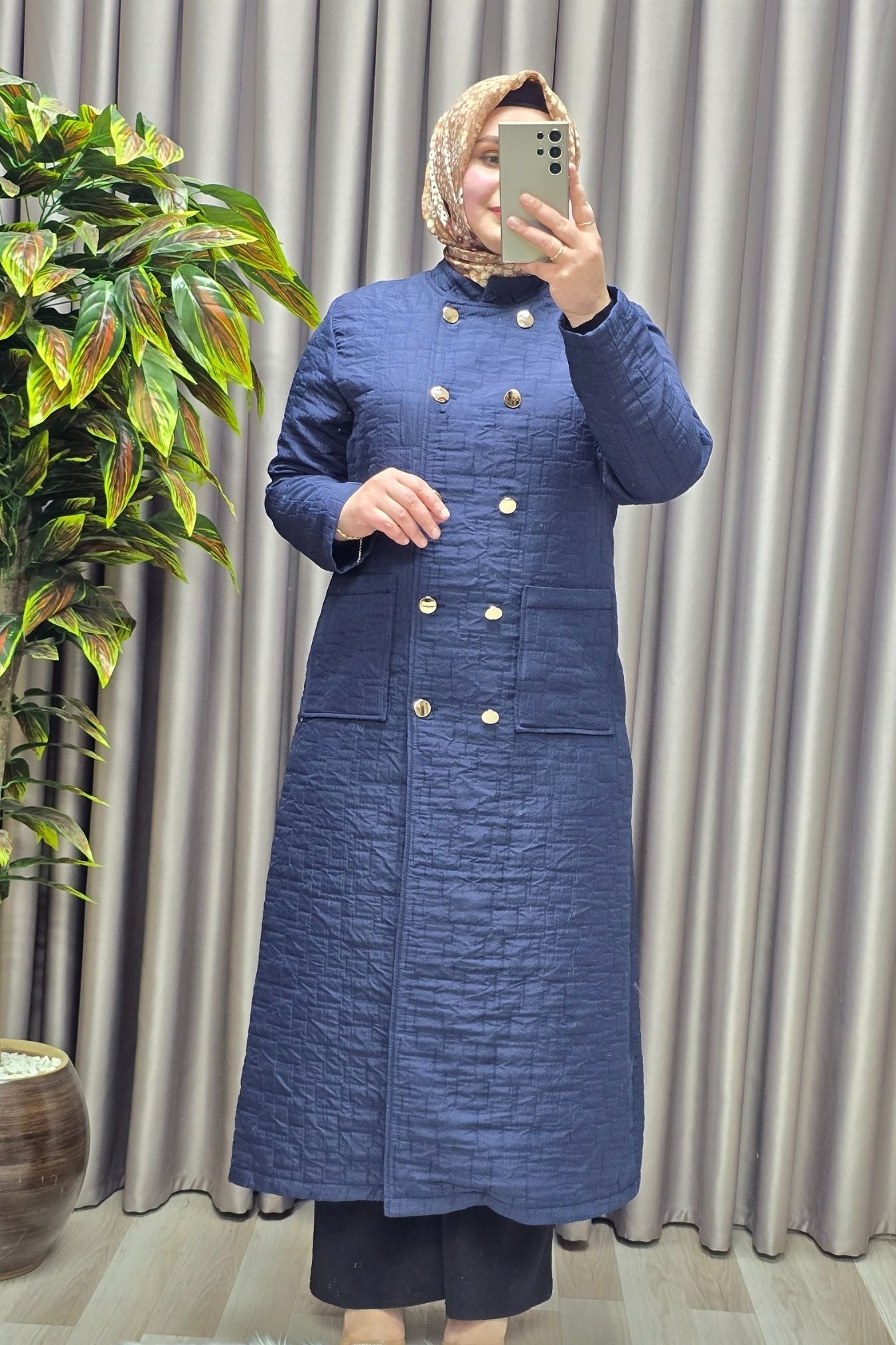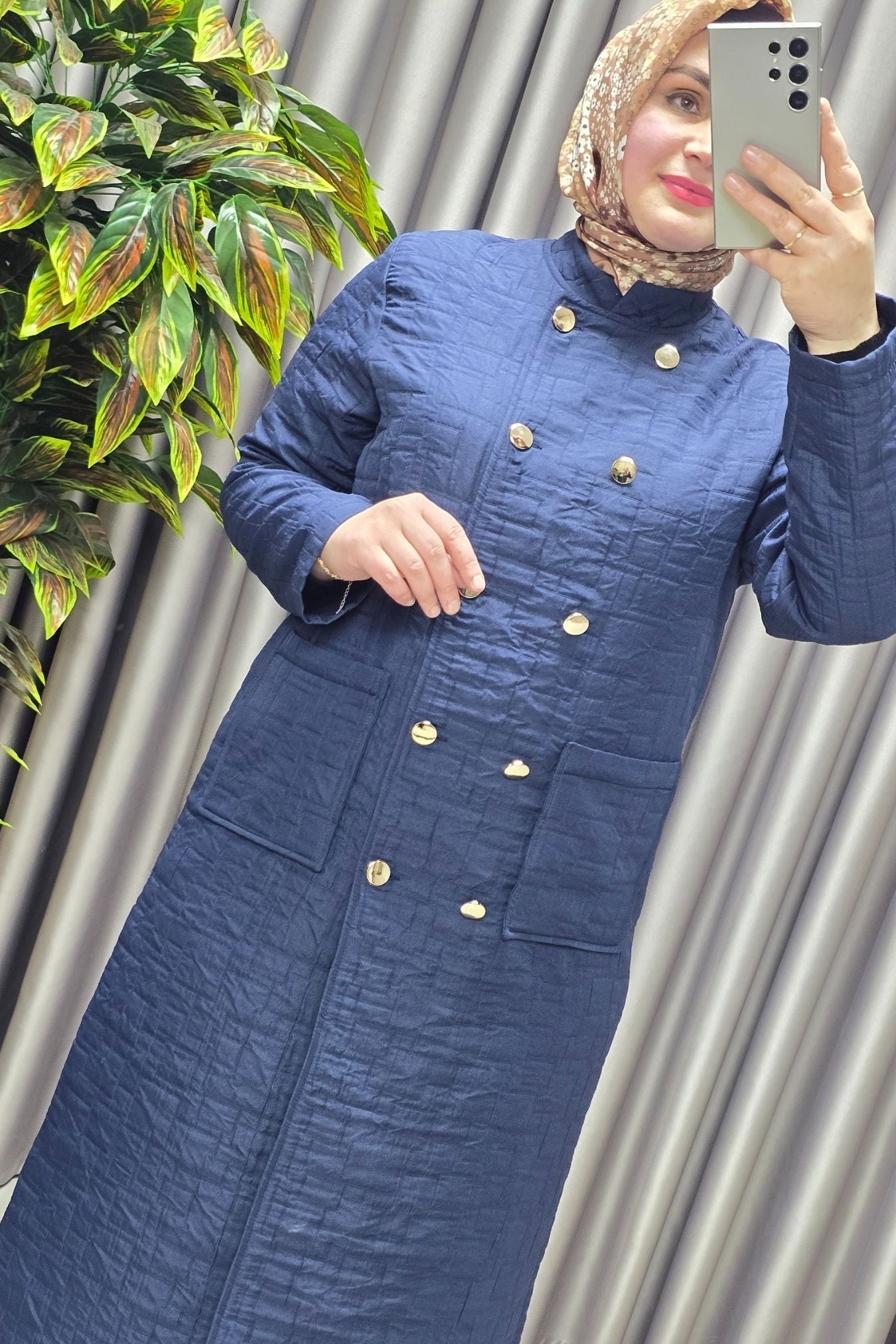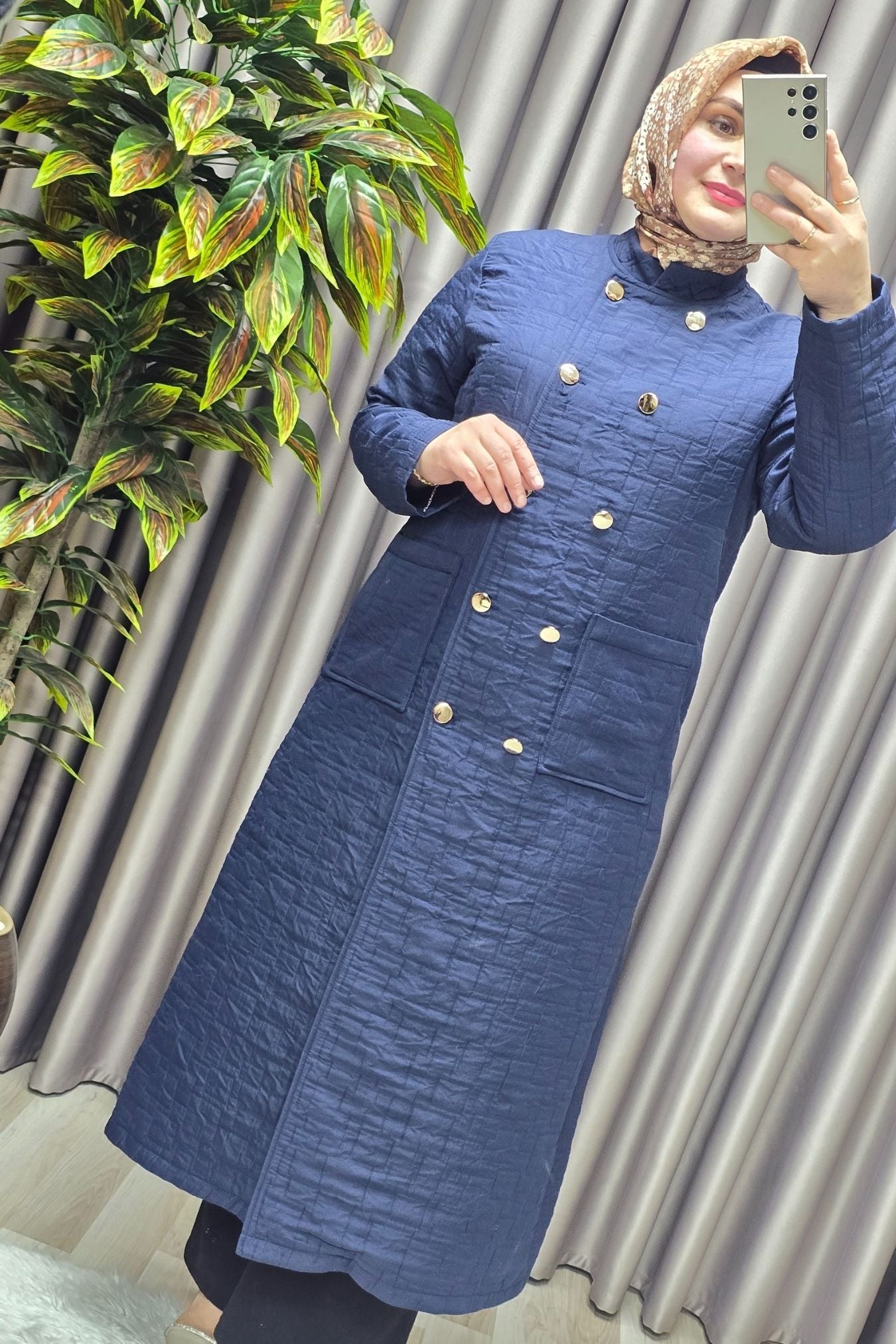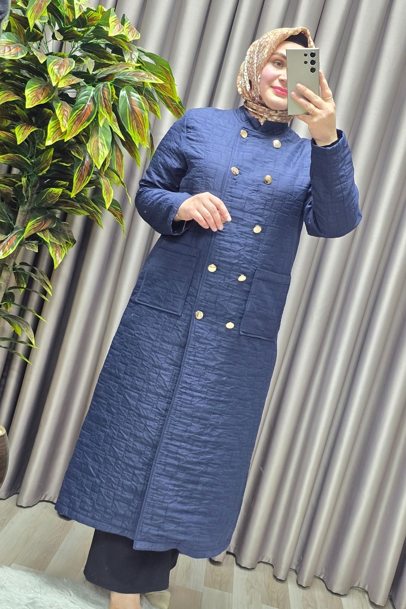 Kadın Giyim Büyük Beden Kapitone Metal Düğmeli Kruvaze Kap