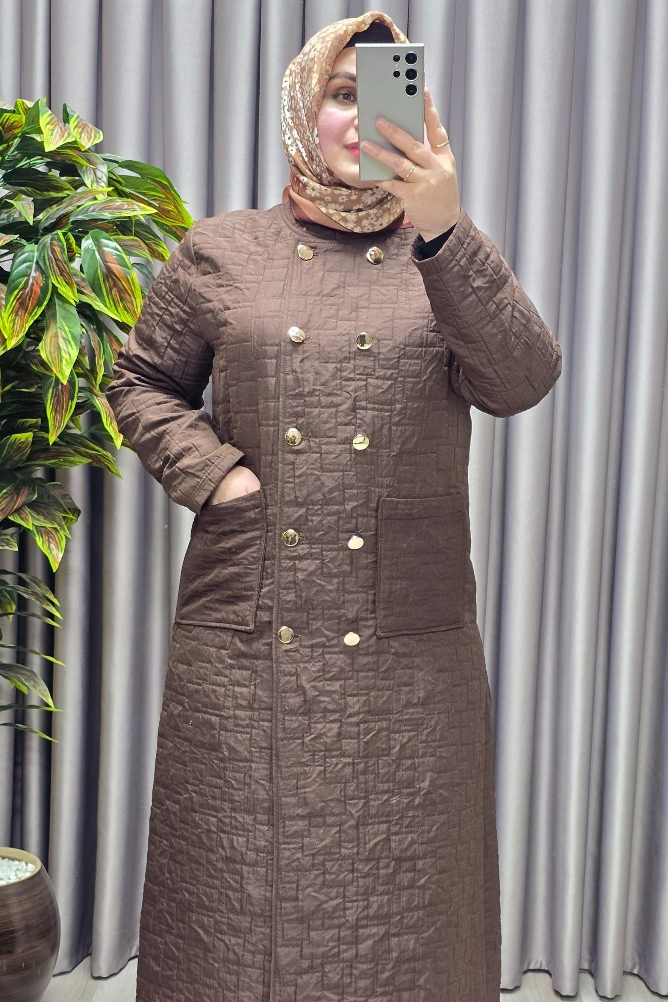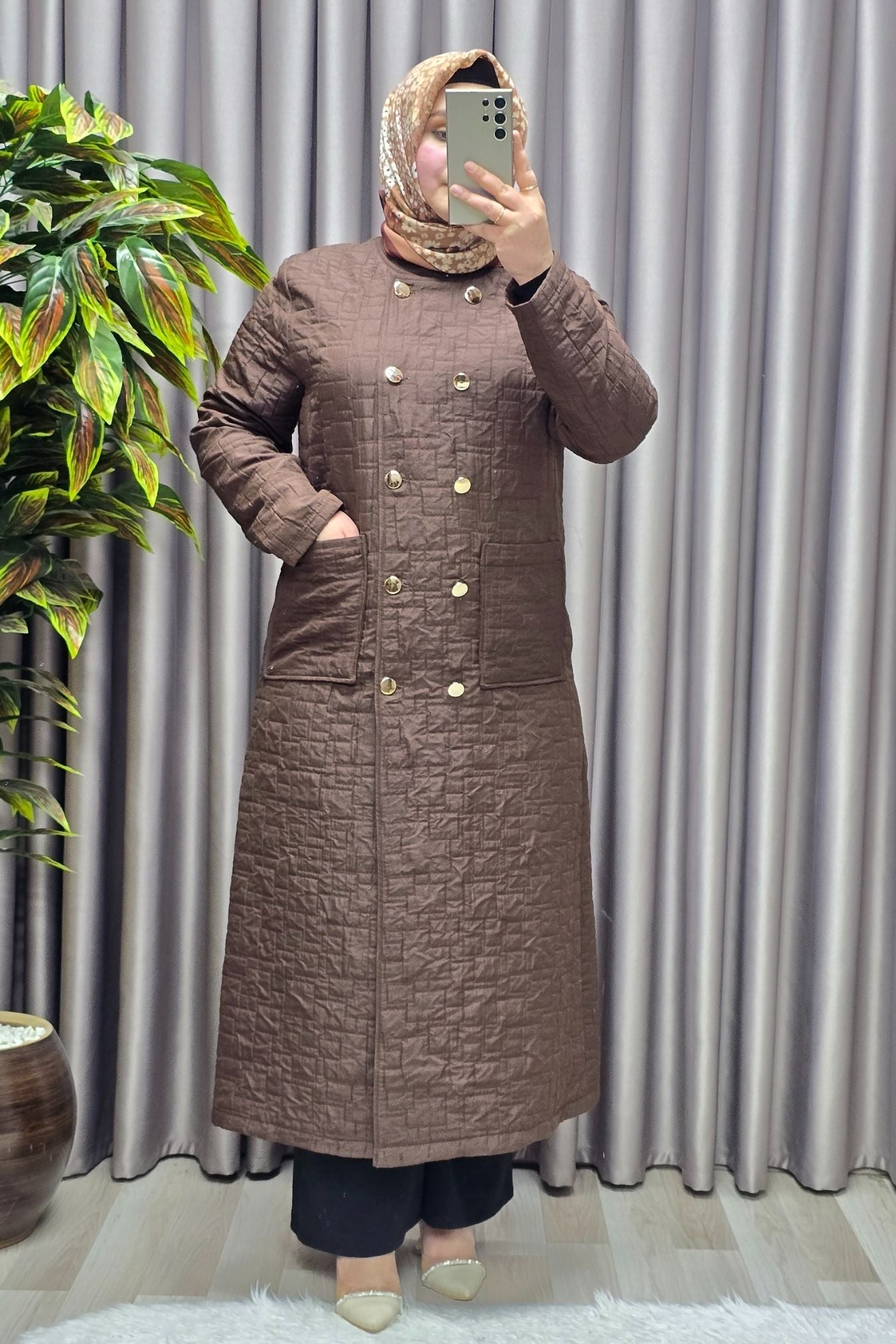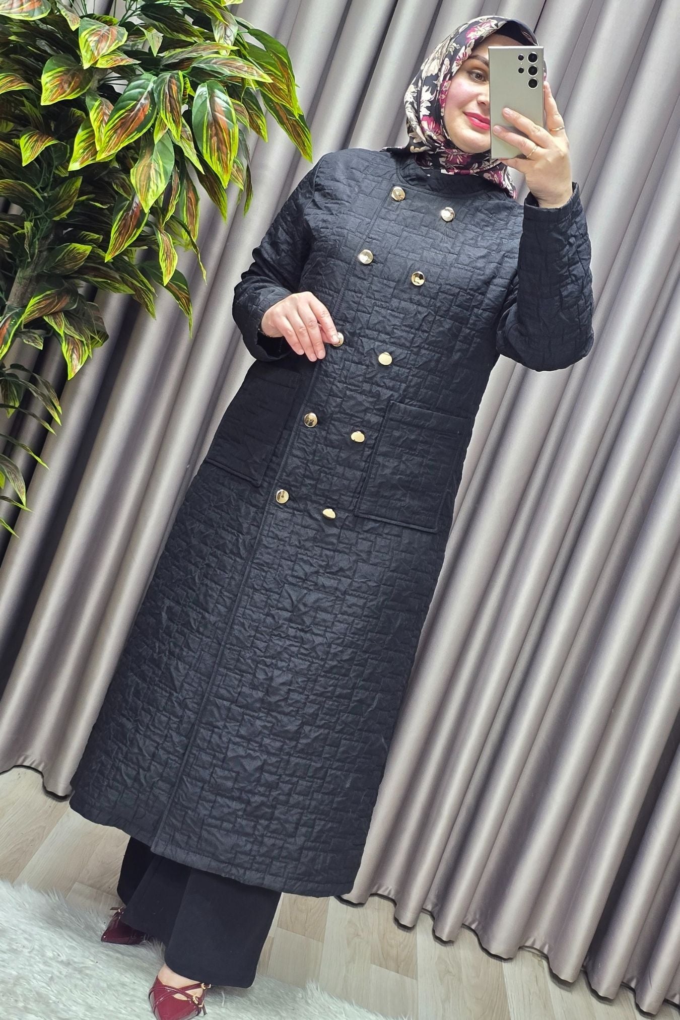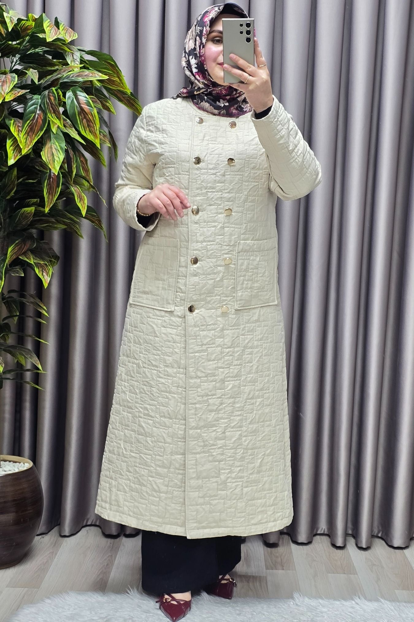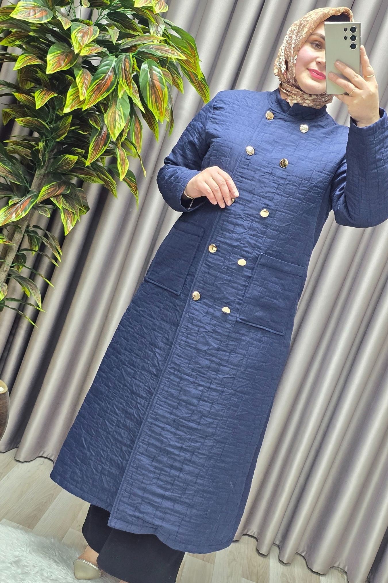 Kadın Giyim Büyük Beden Kapitone Metal Düğmeli Kruvaze Kap