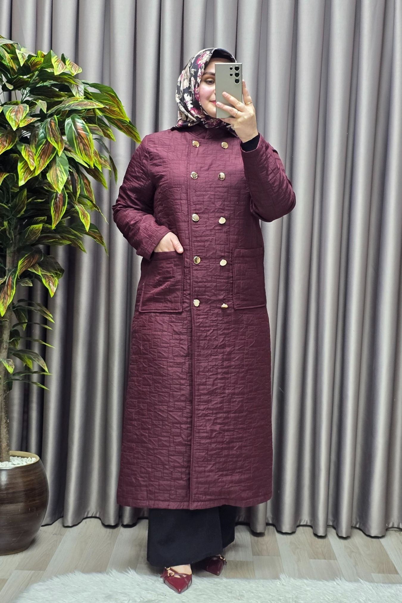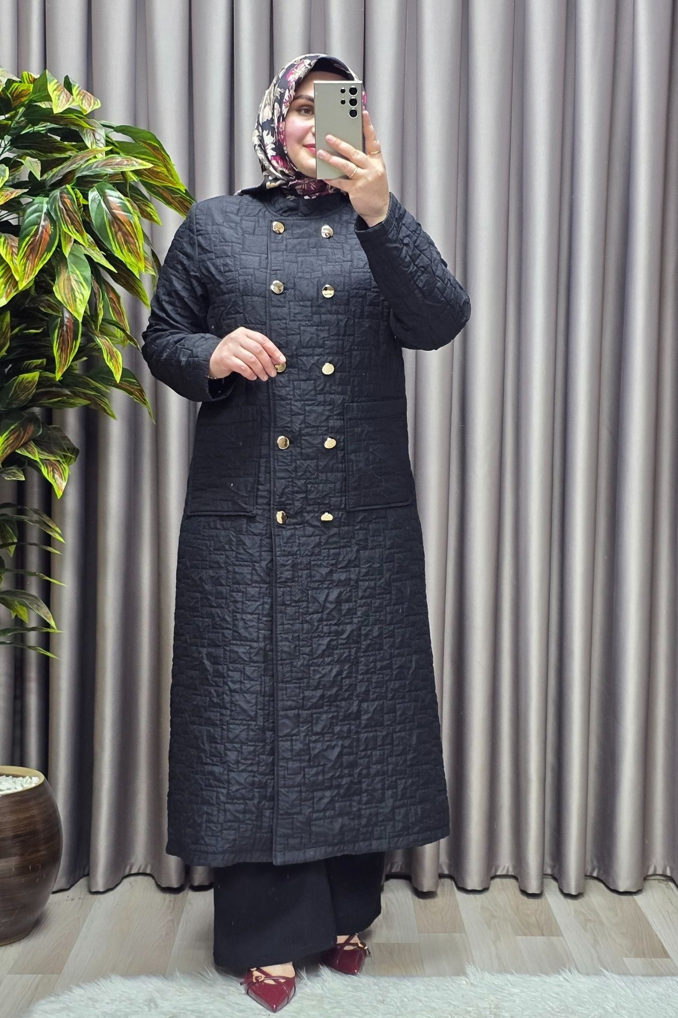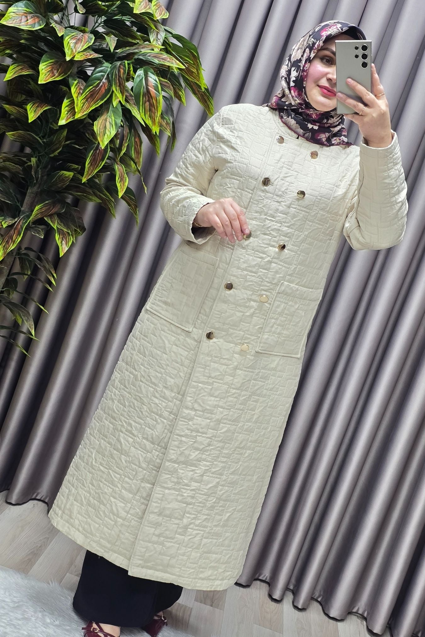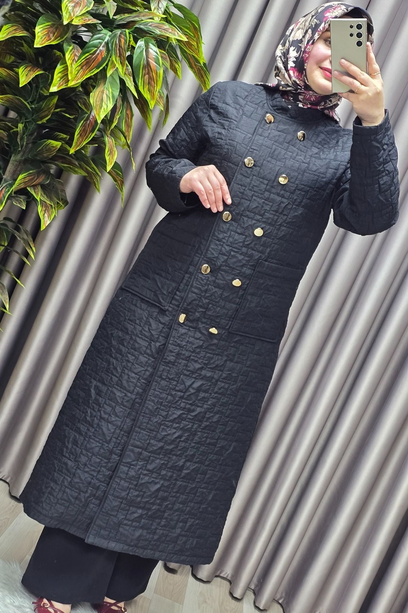 Kadın Giyim Büyük Beden Kapitone Metal Düğmeli Kruvaze Kap