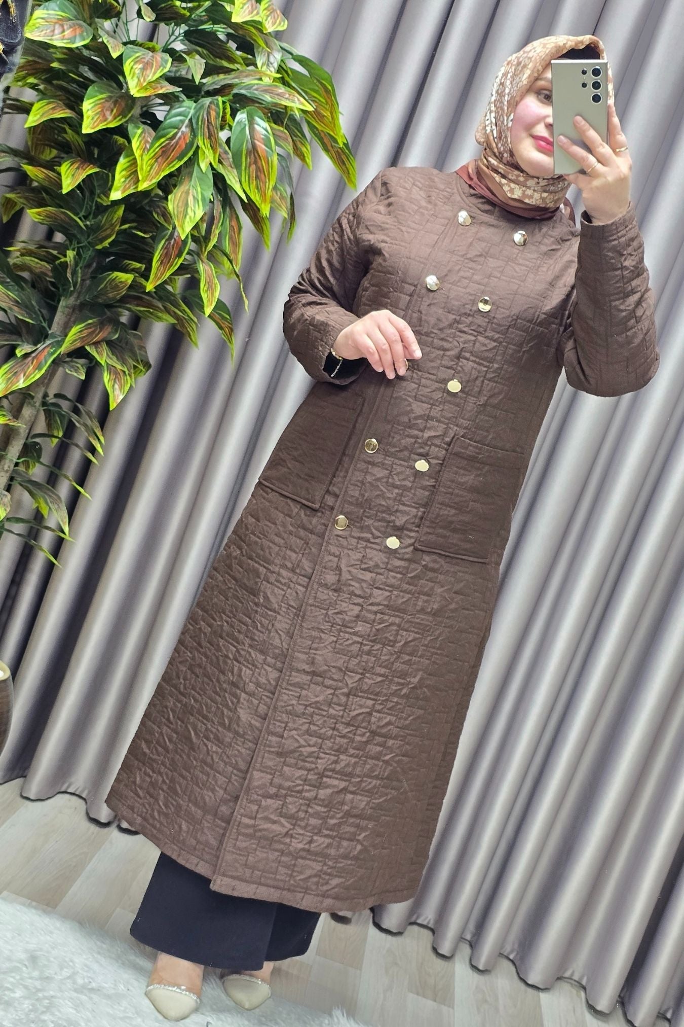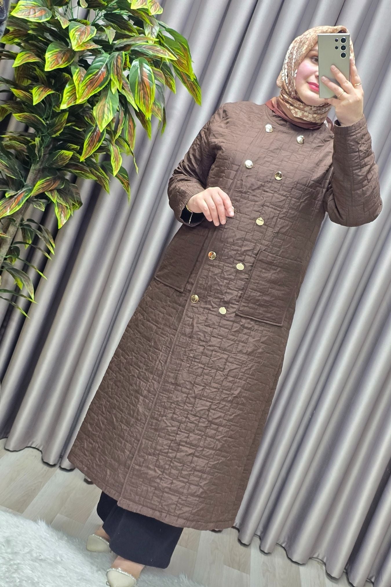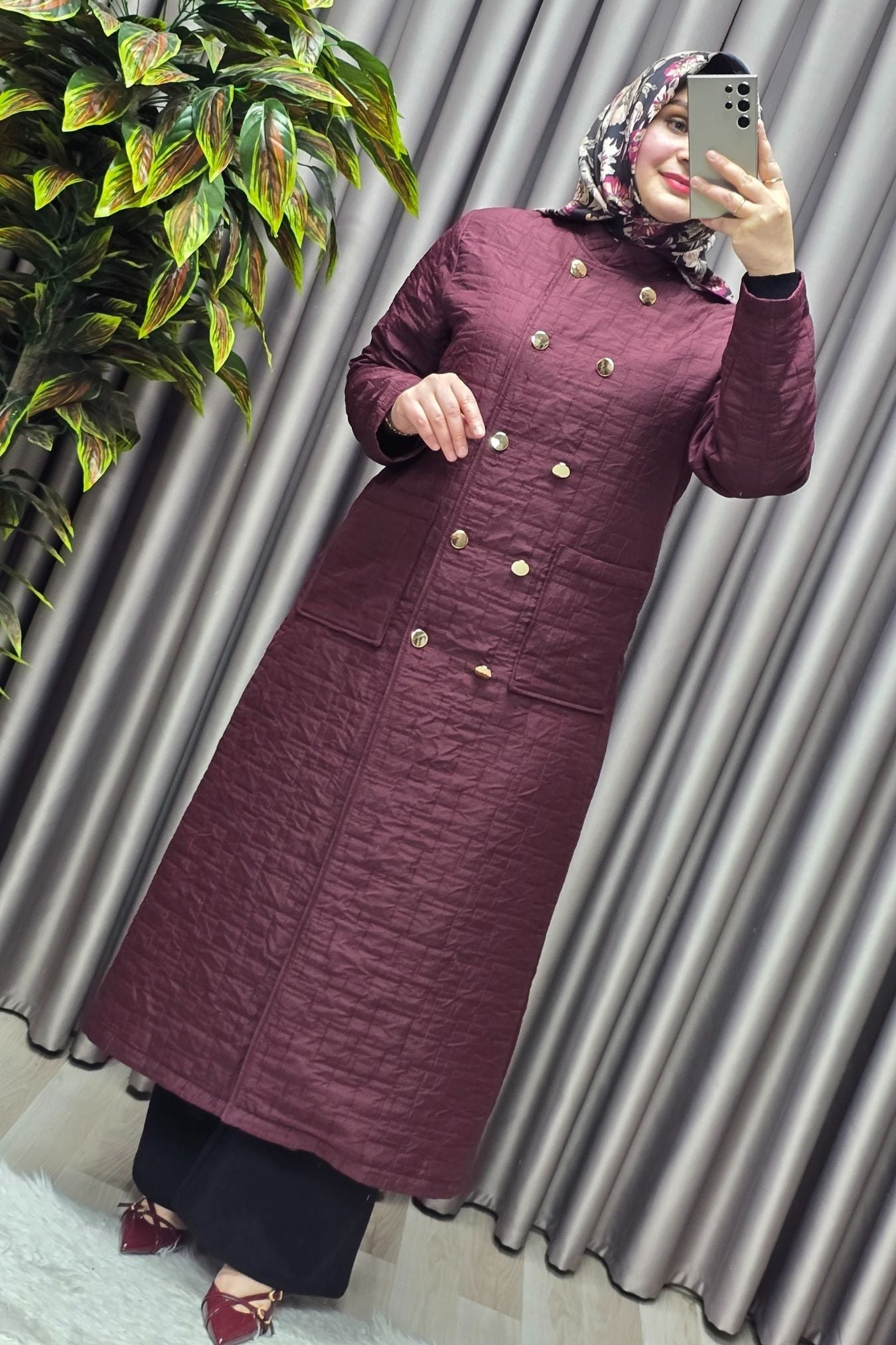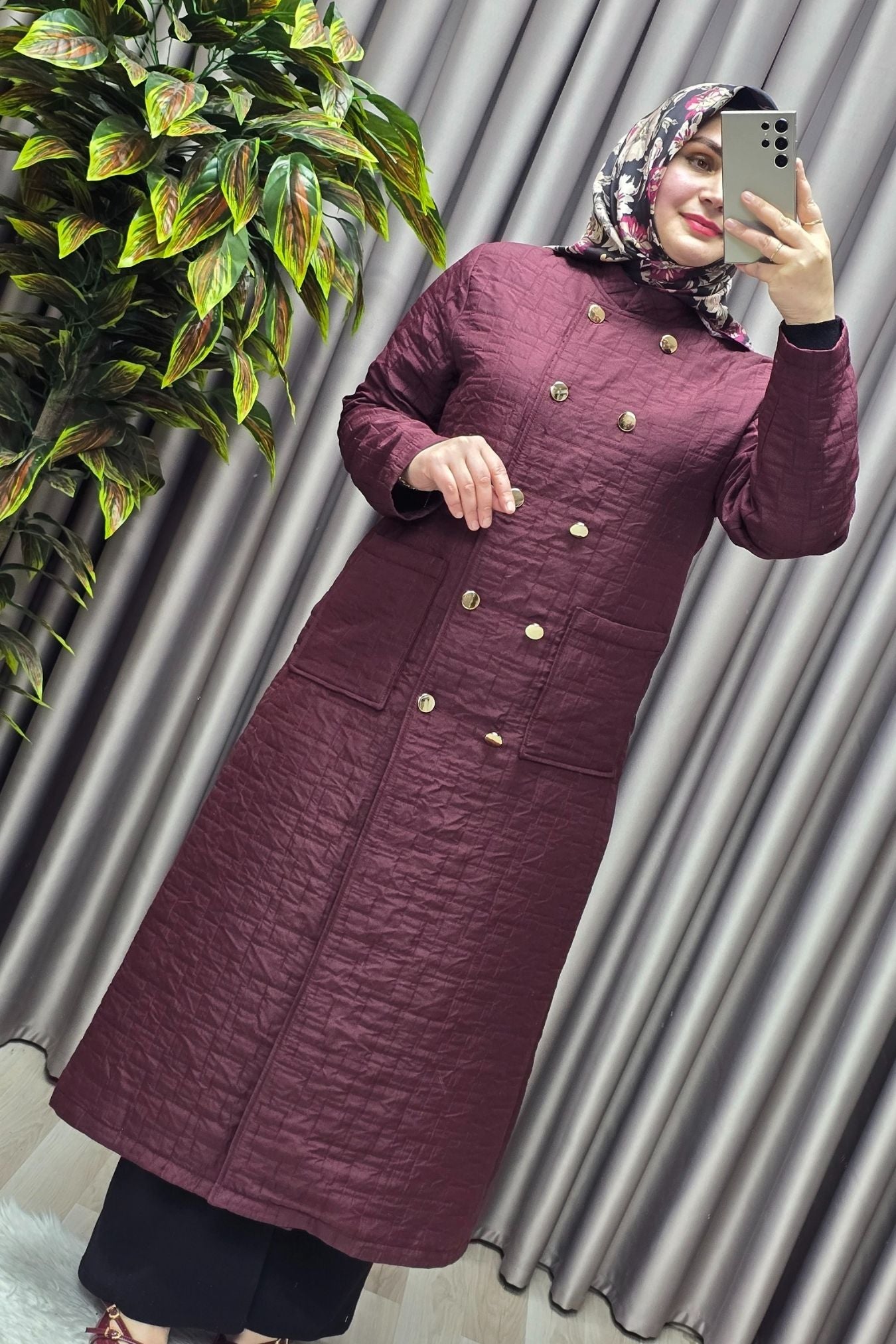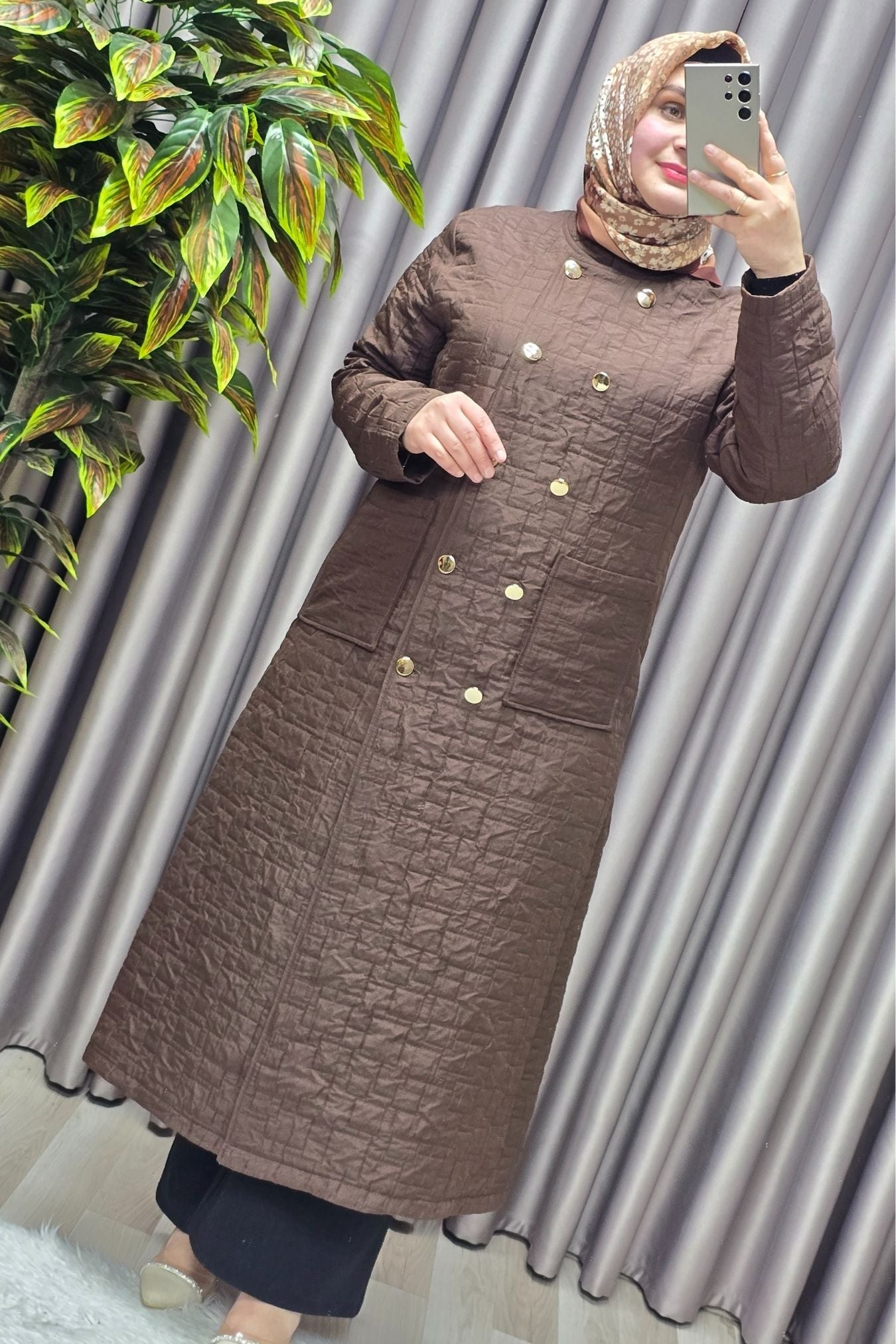 Kadın Giyim Büyük Beden Kapitone Metal Düğmeli Kruvaze Kap