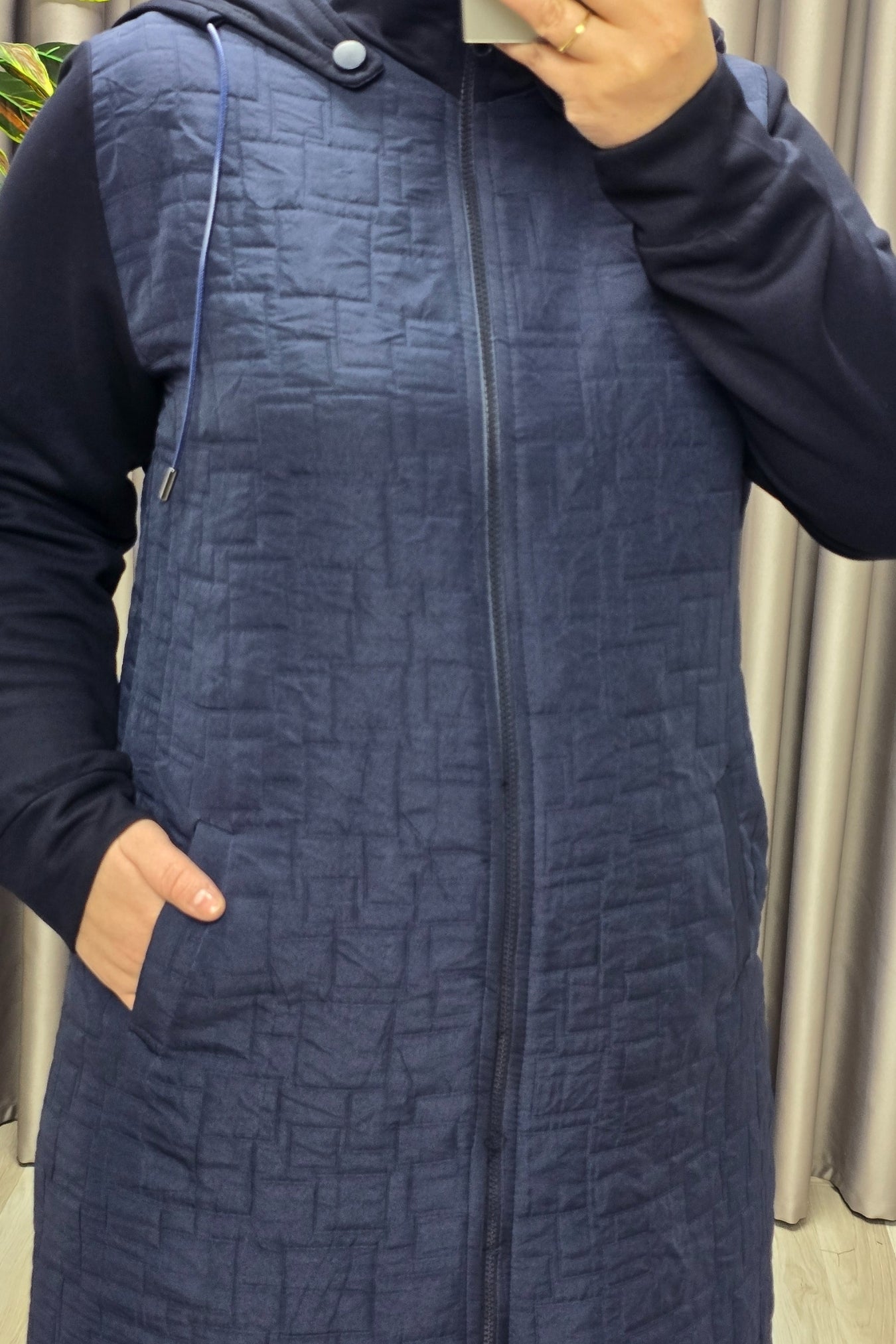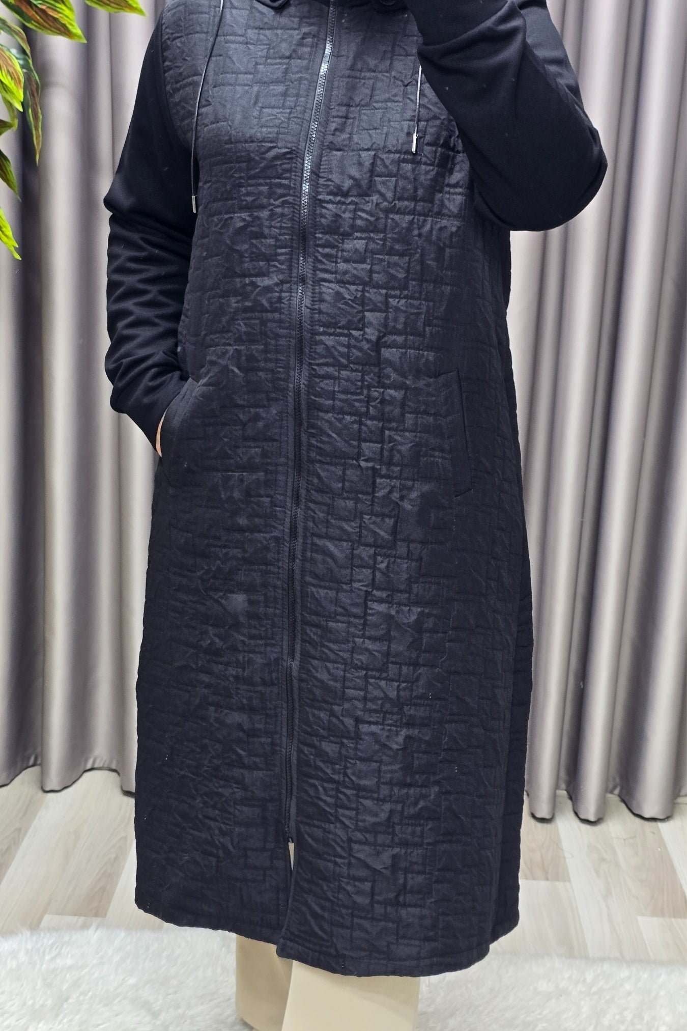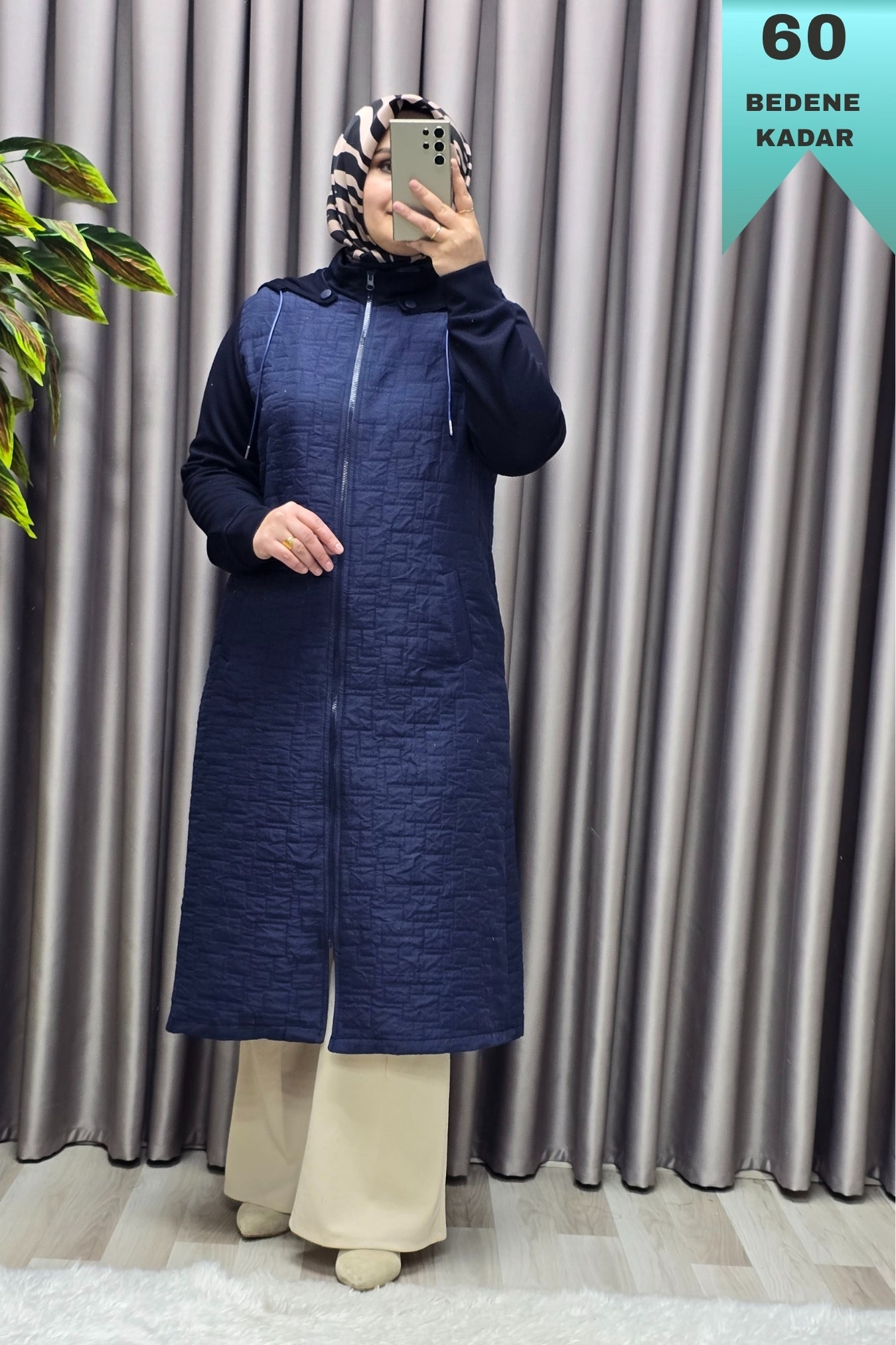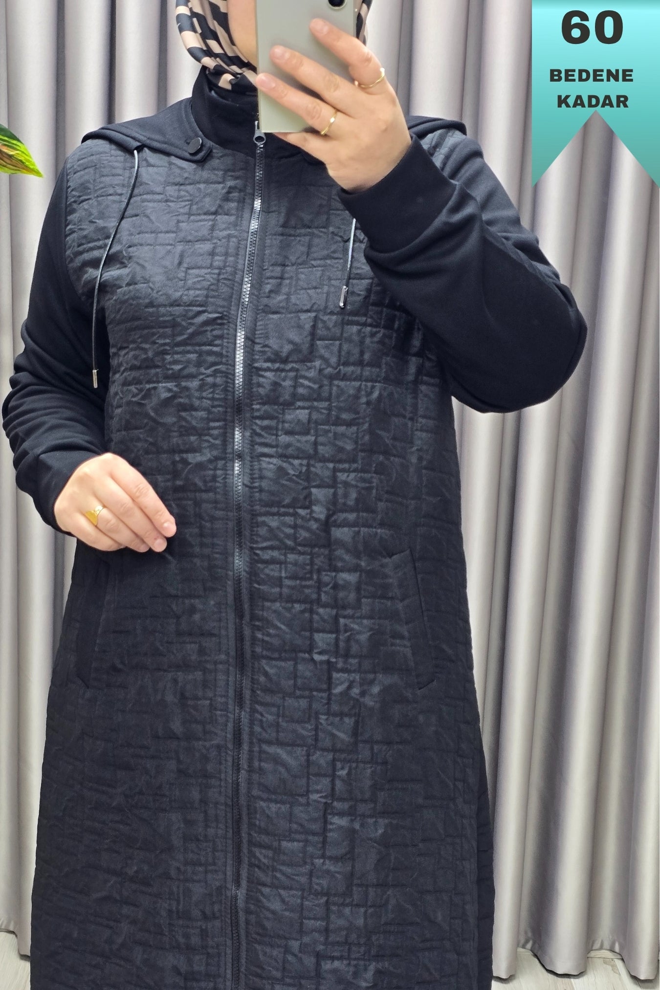 Kadın Giyim Büyük Beden Kapşonlu Polarlı Kapitone Kap