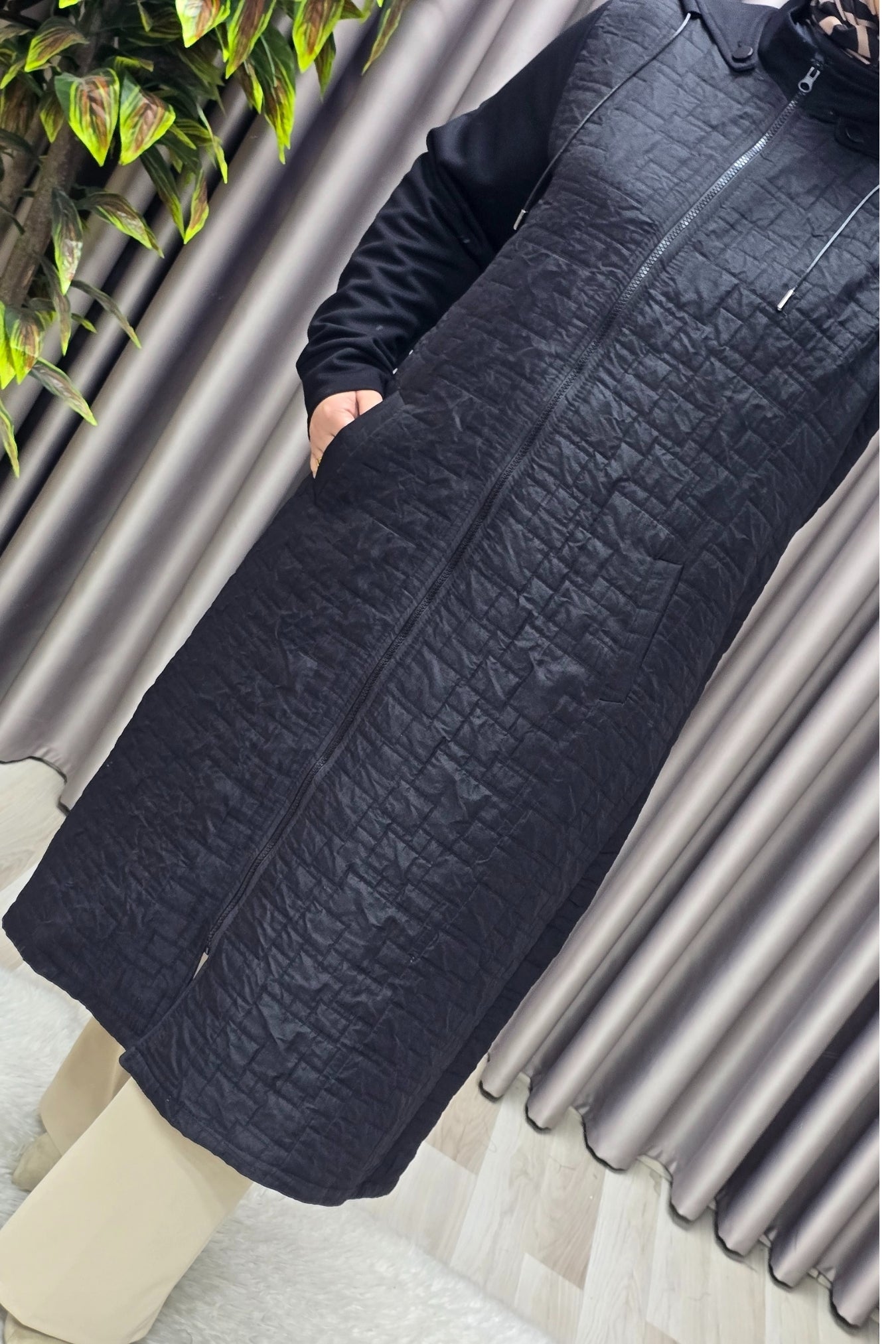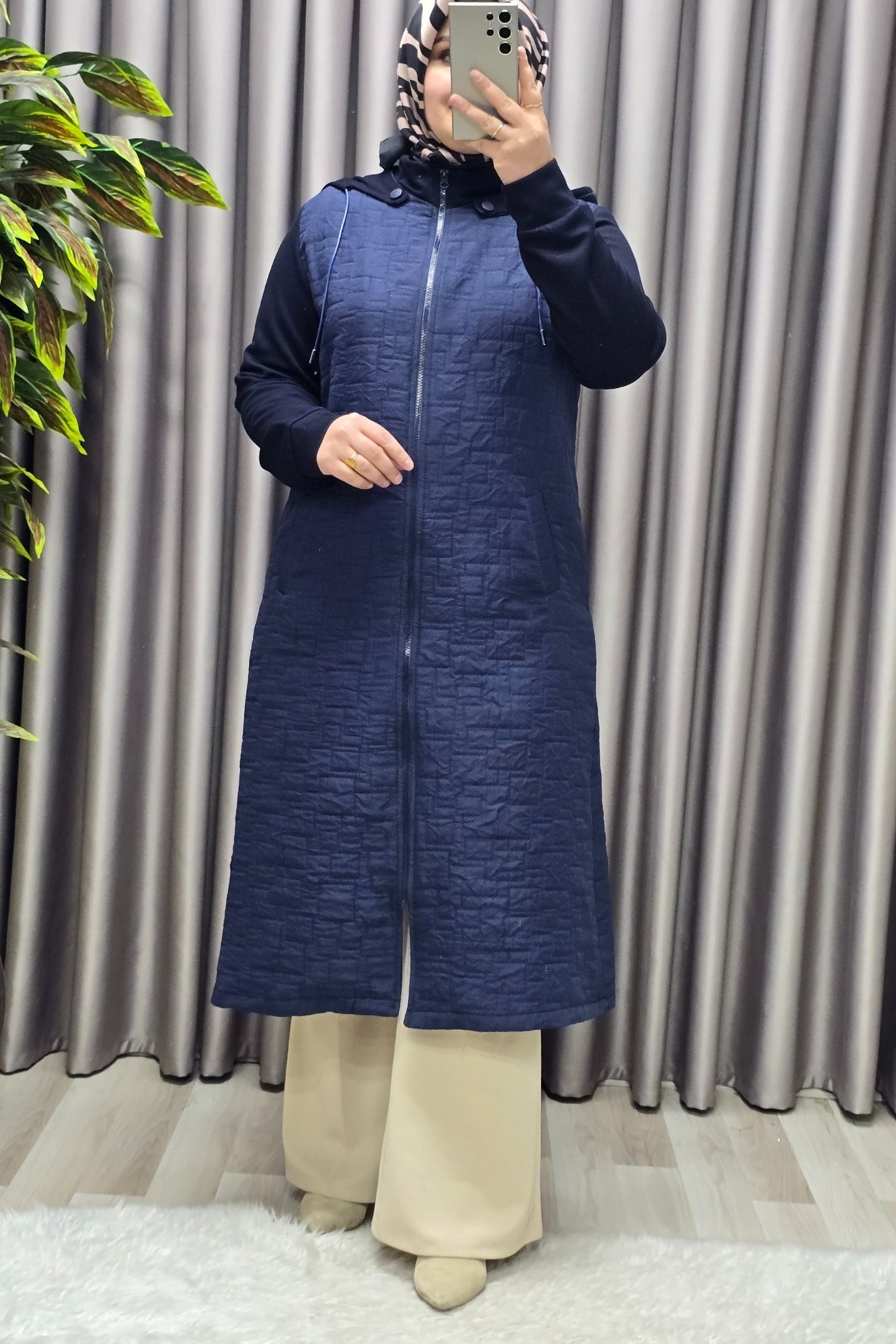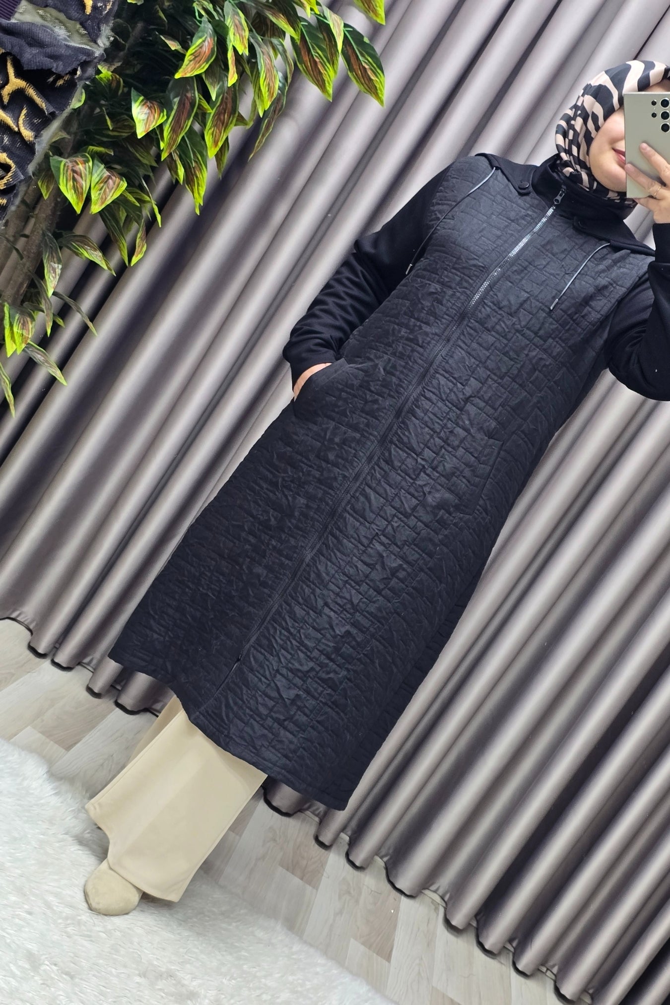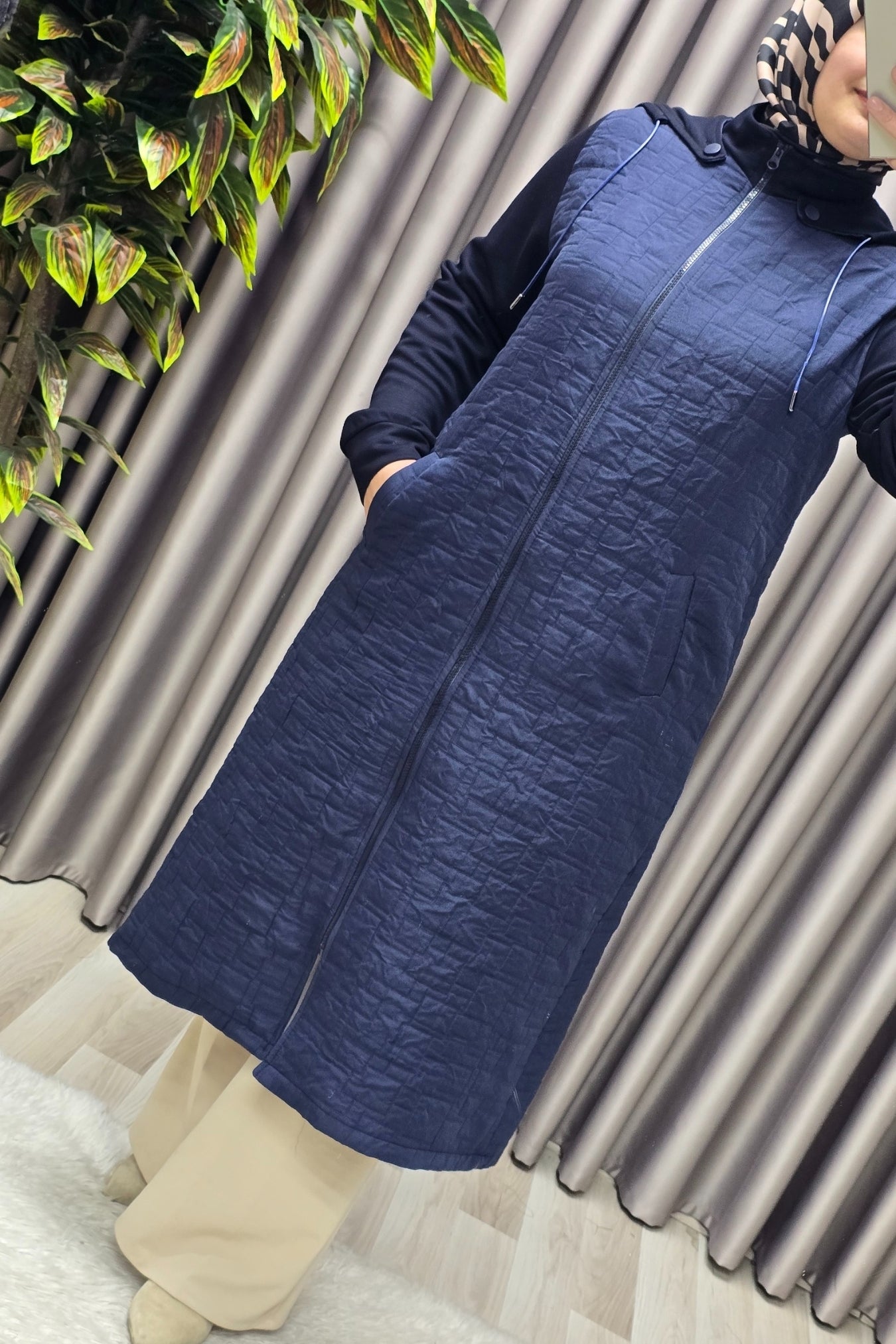 Kadın Giyim Büyük Beden Kapşonlu Polarlı Kapitone Kap