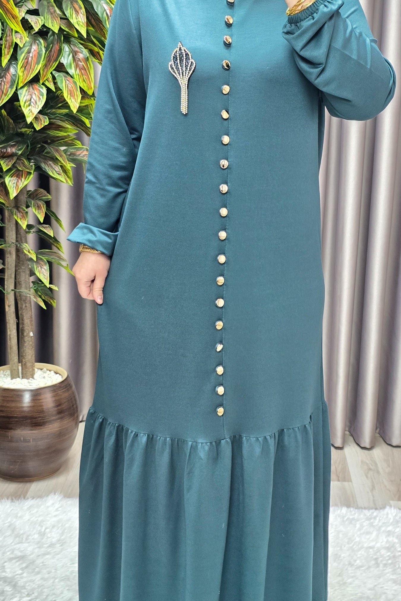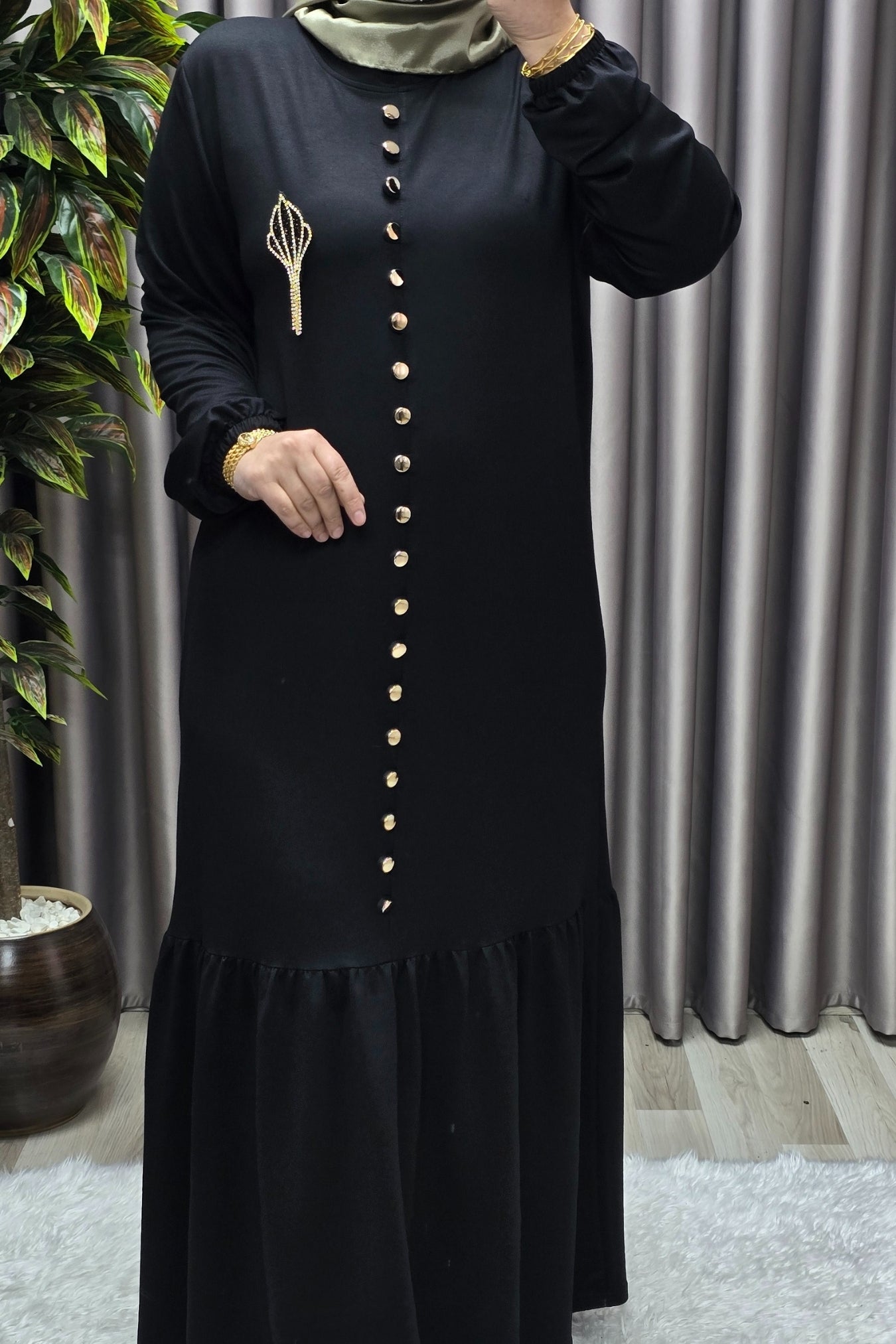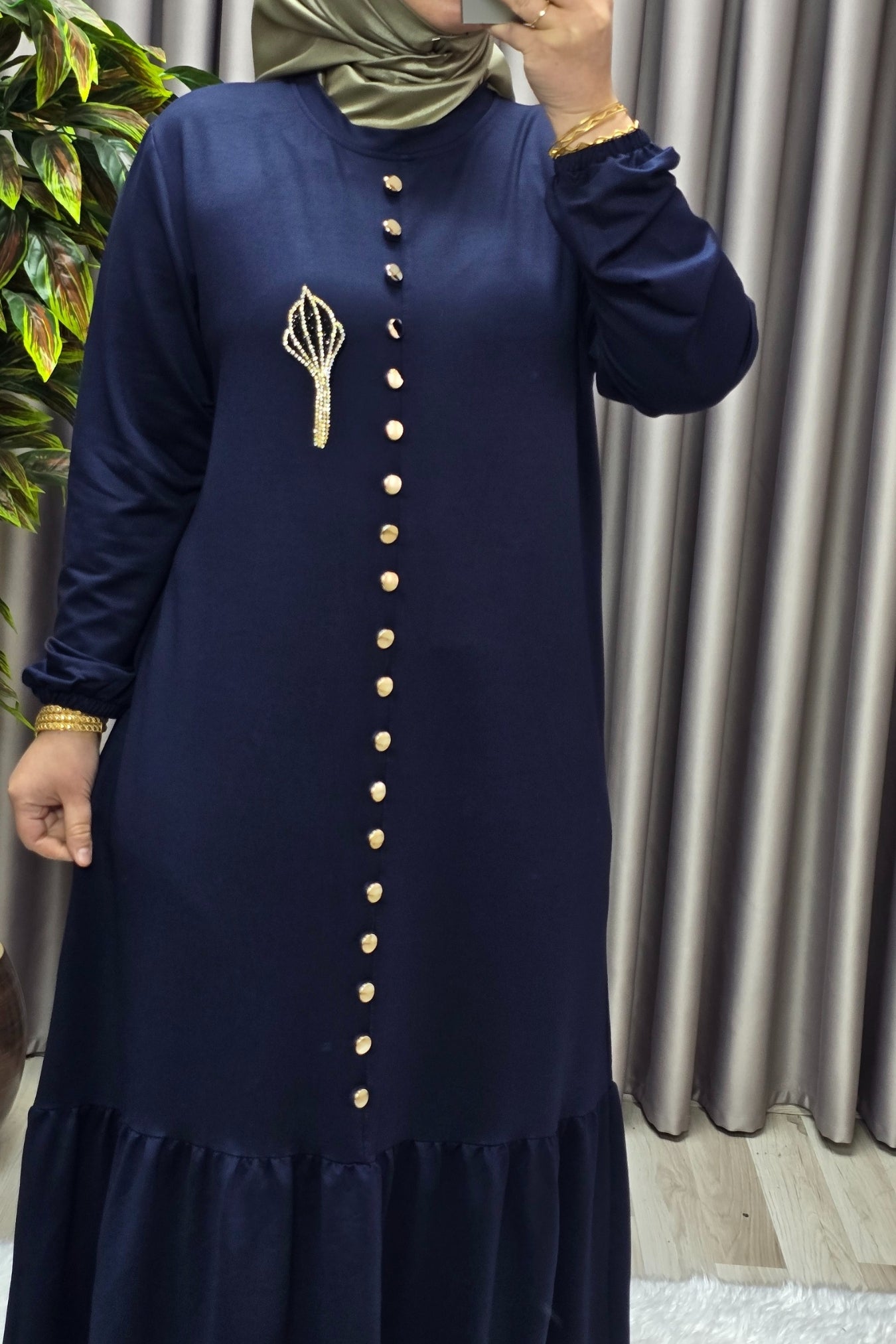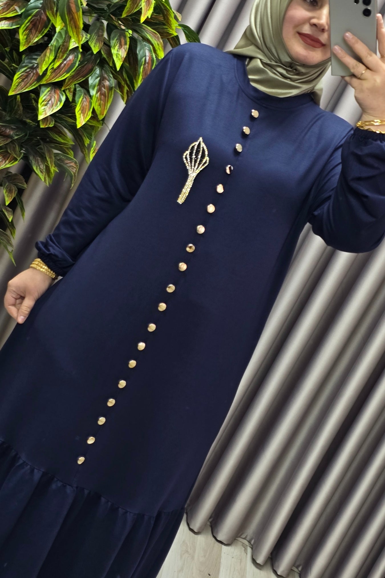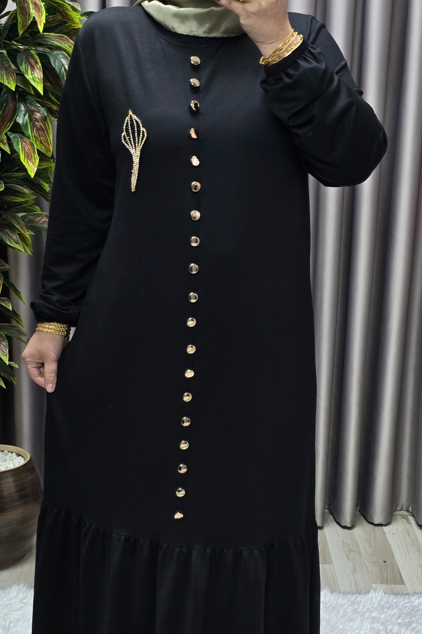 Kadın Giyim Büyük Beden Kristal Düğmeli Elbise