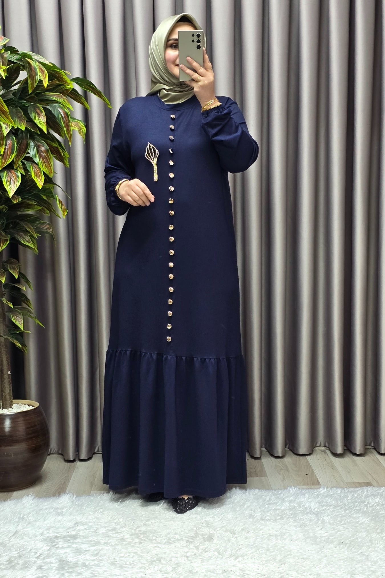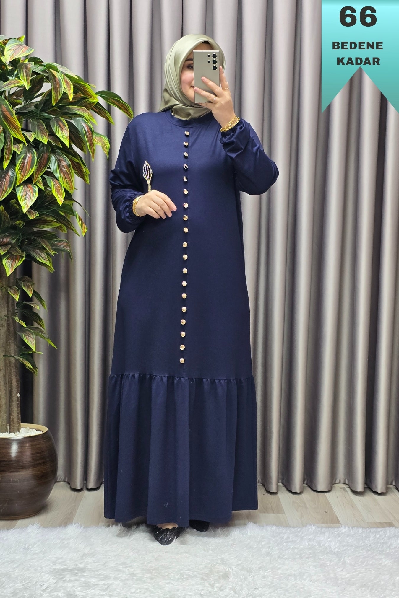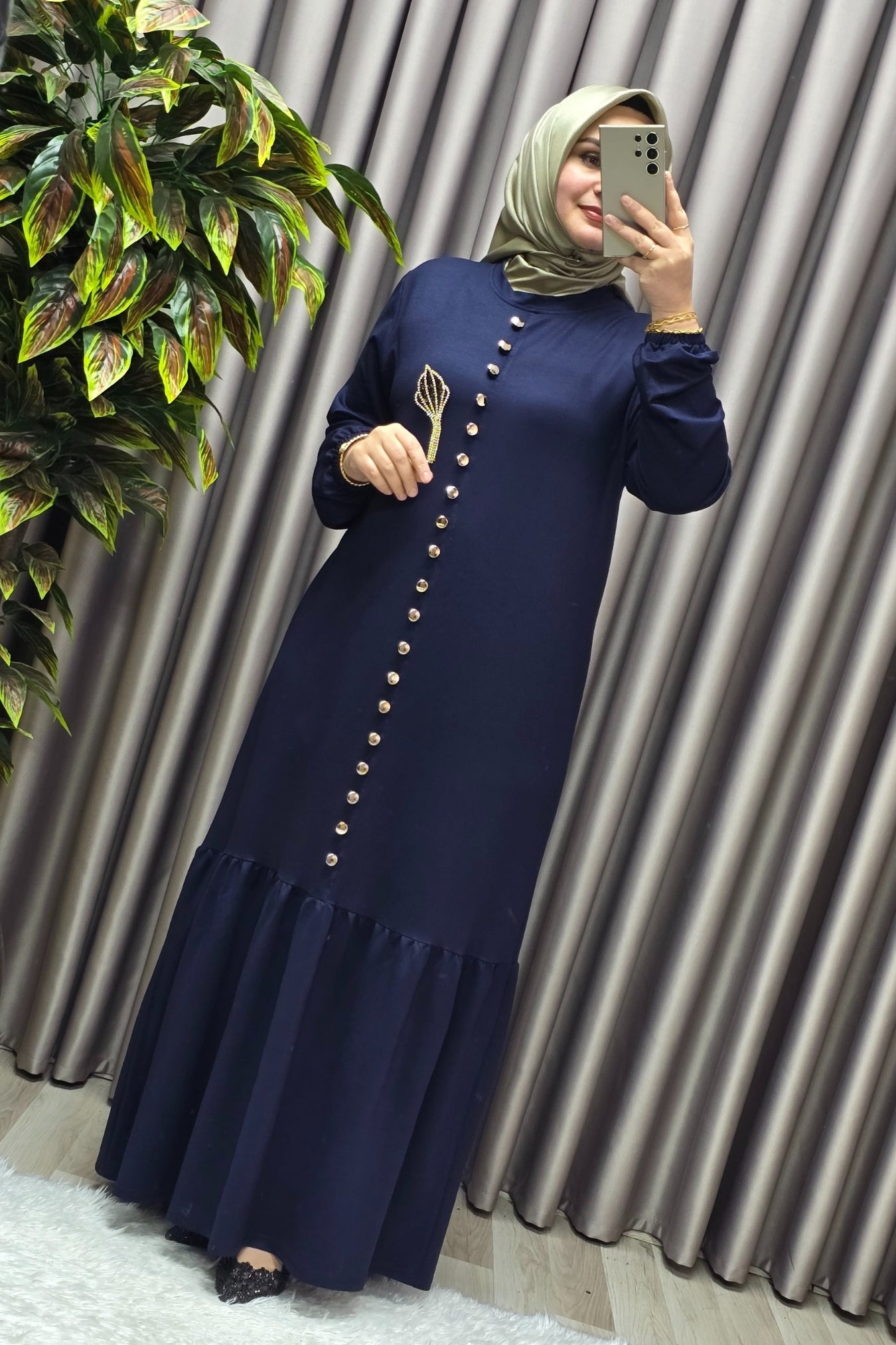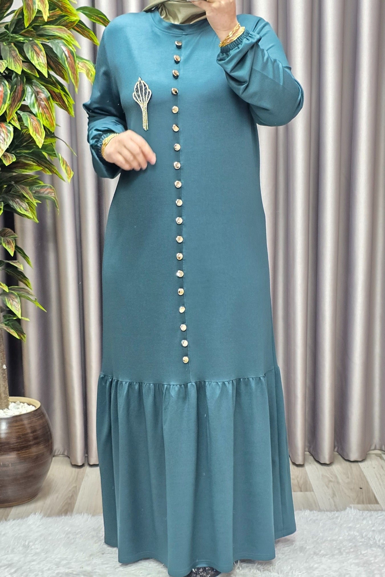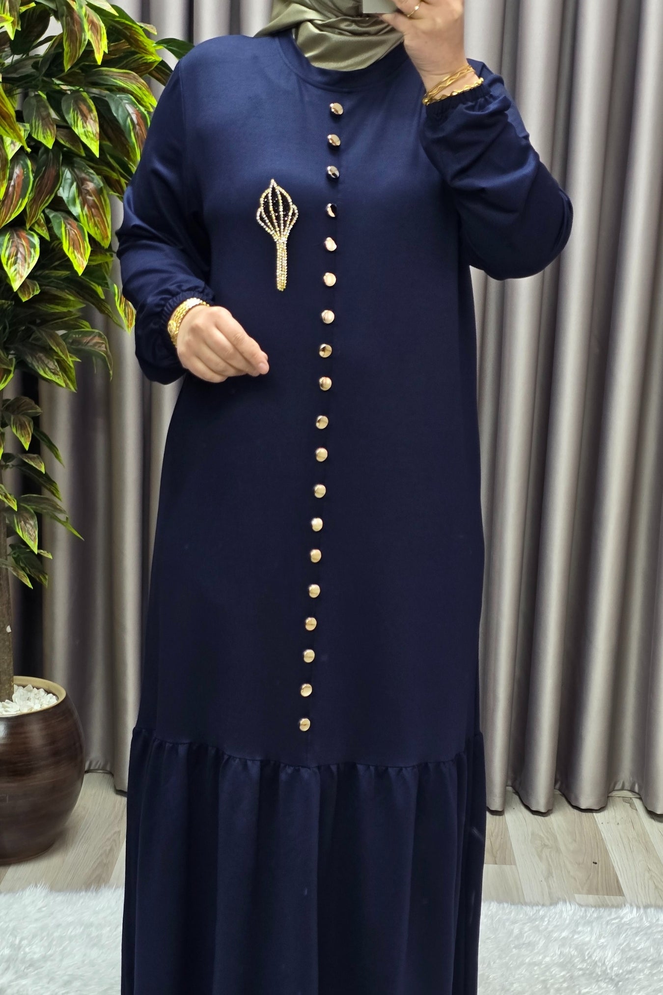 Kadın Giyim Büyük Beden Kristal Düğmeli Elbise