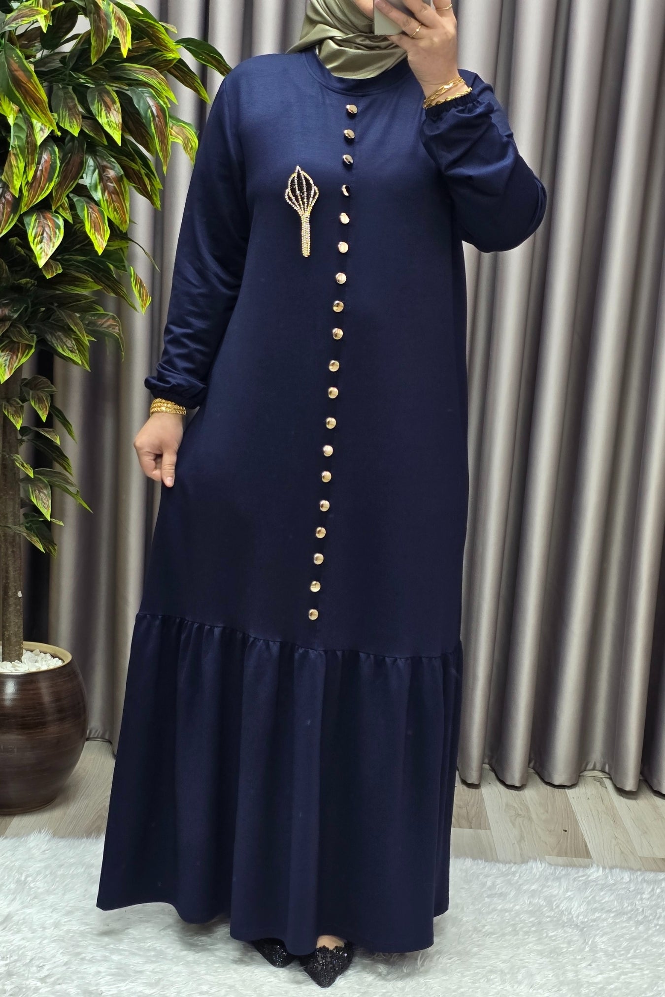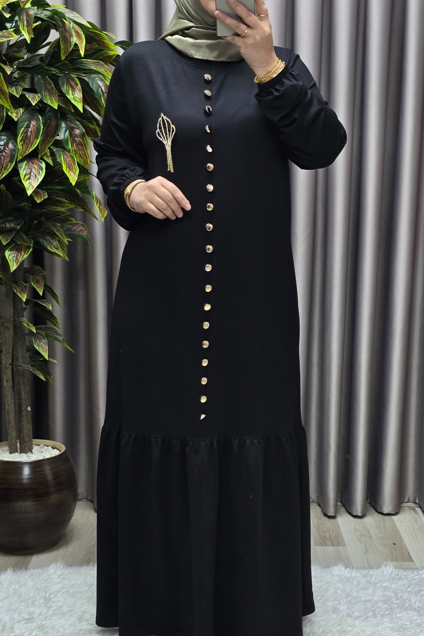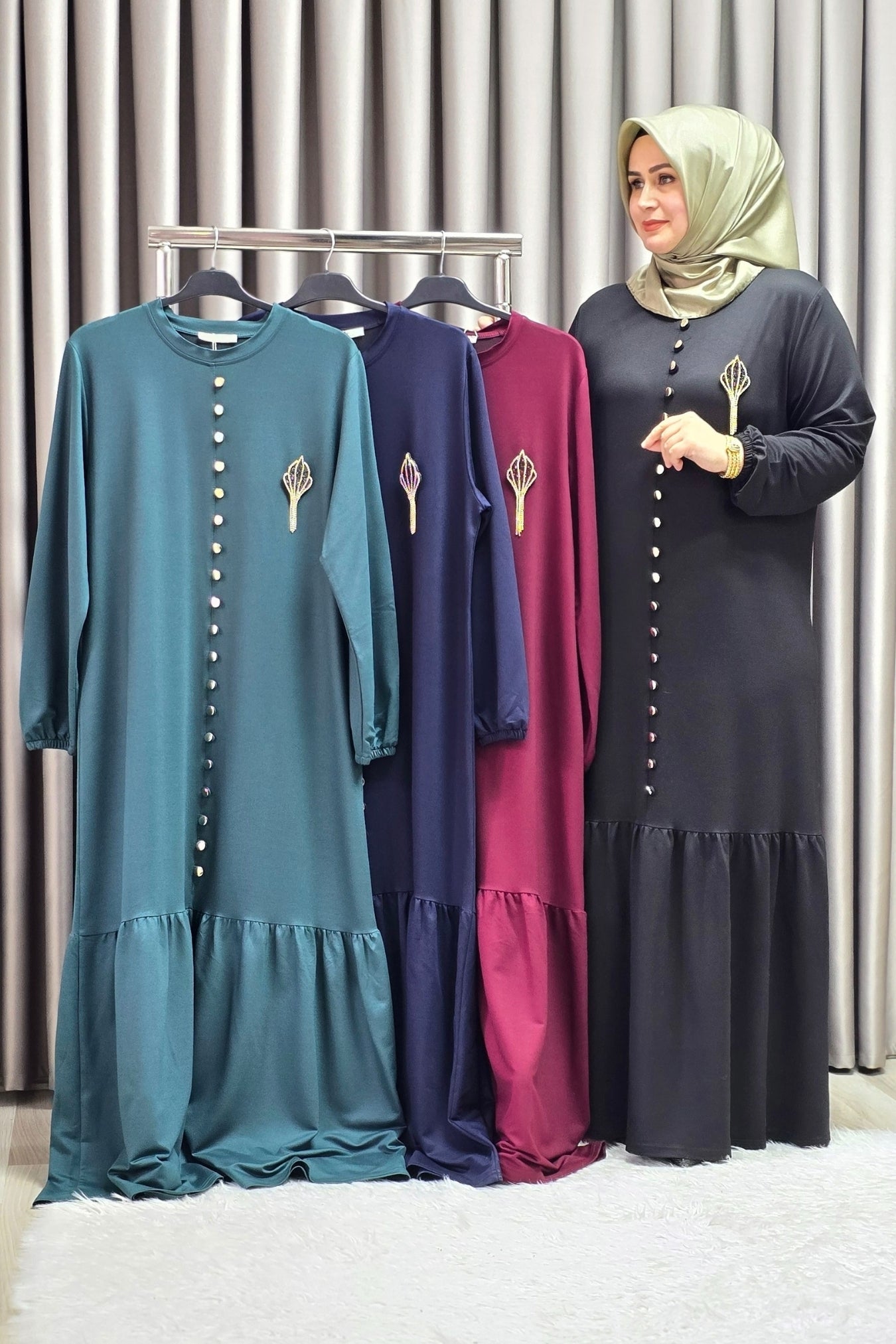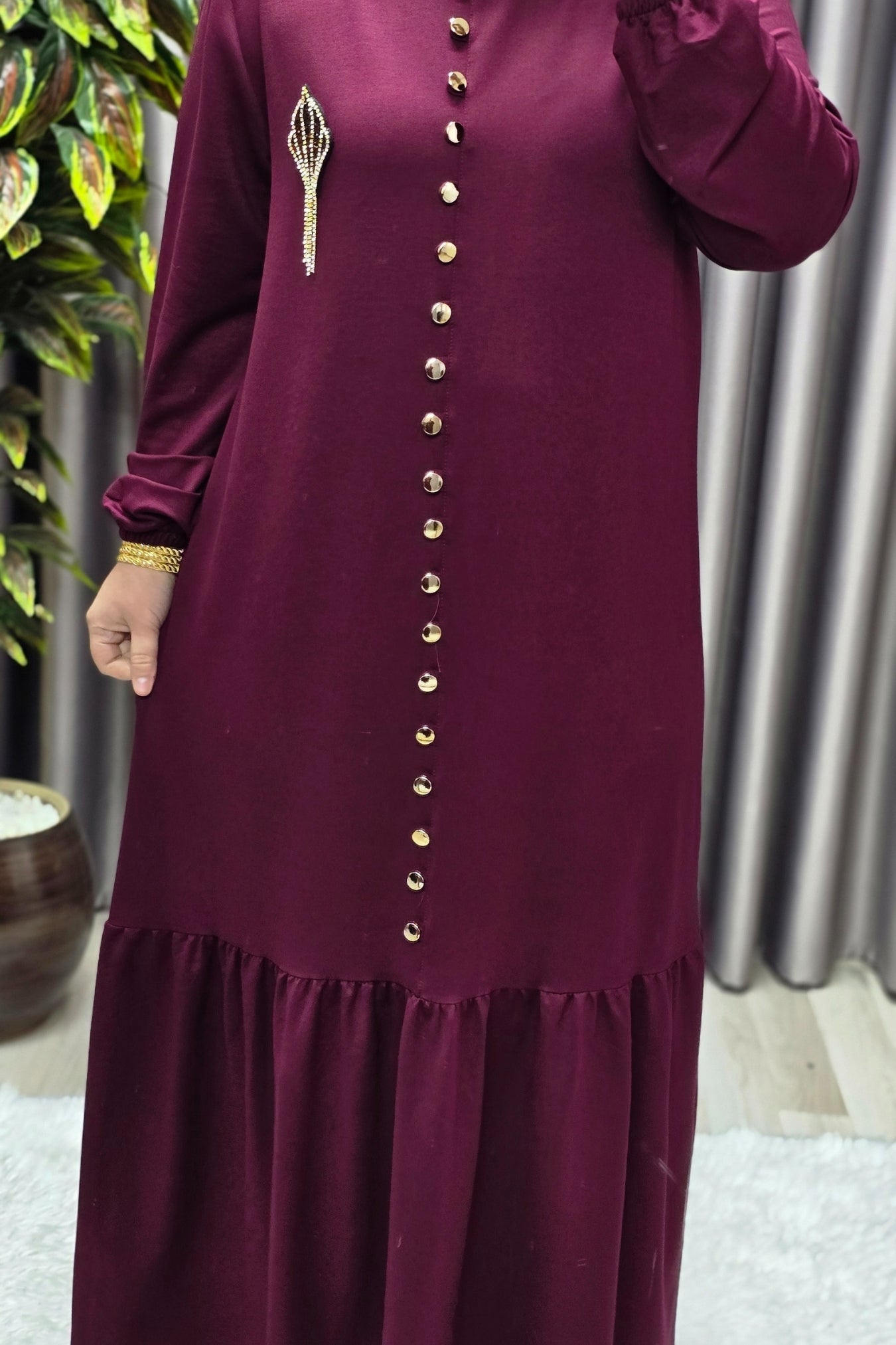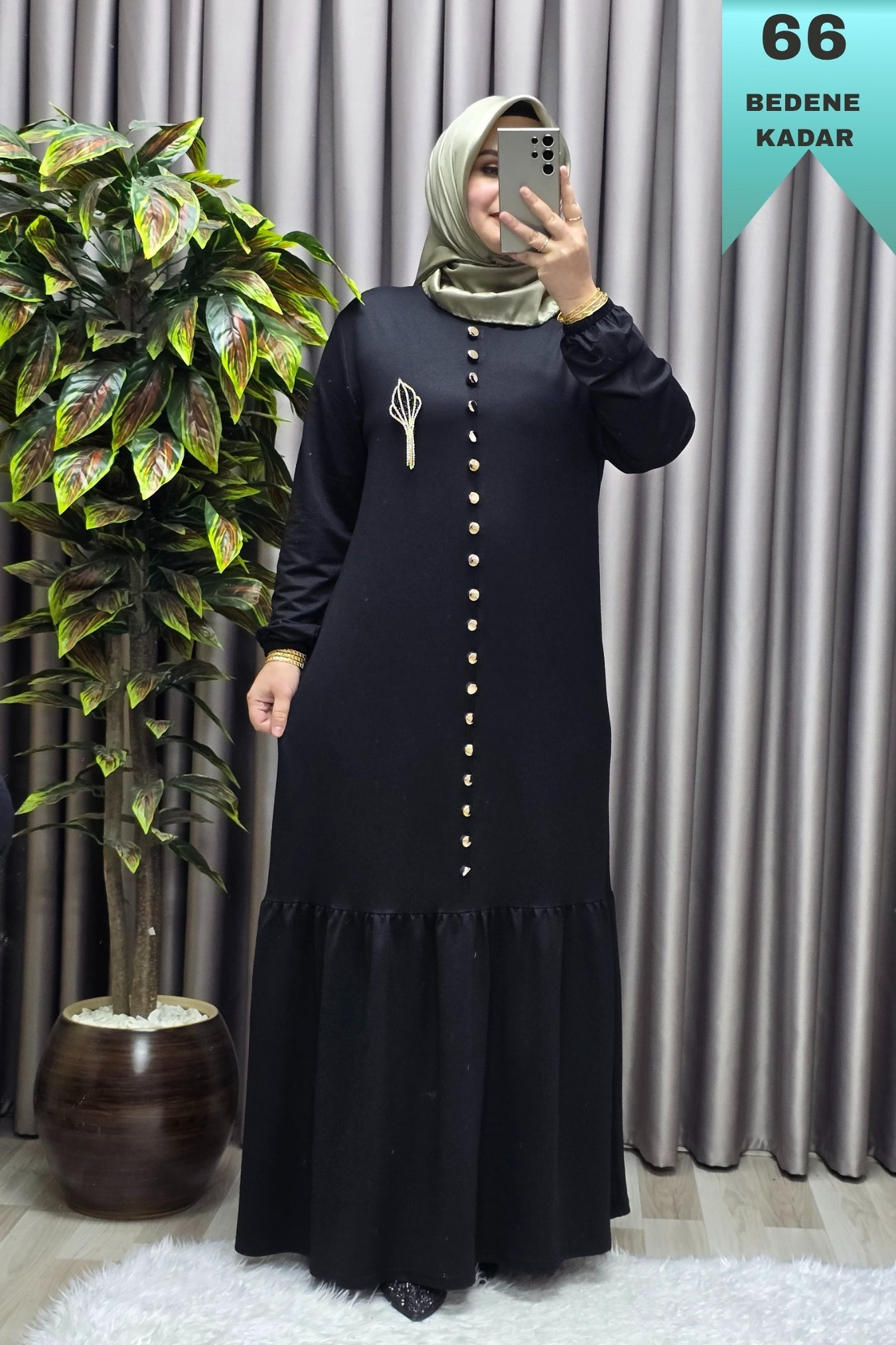 Kadın Giyim Büyük Beden Kristal Düğmeli Elbise