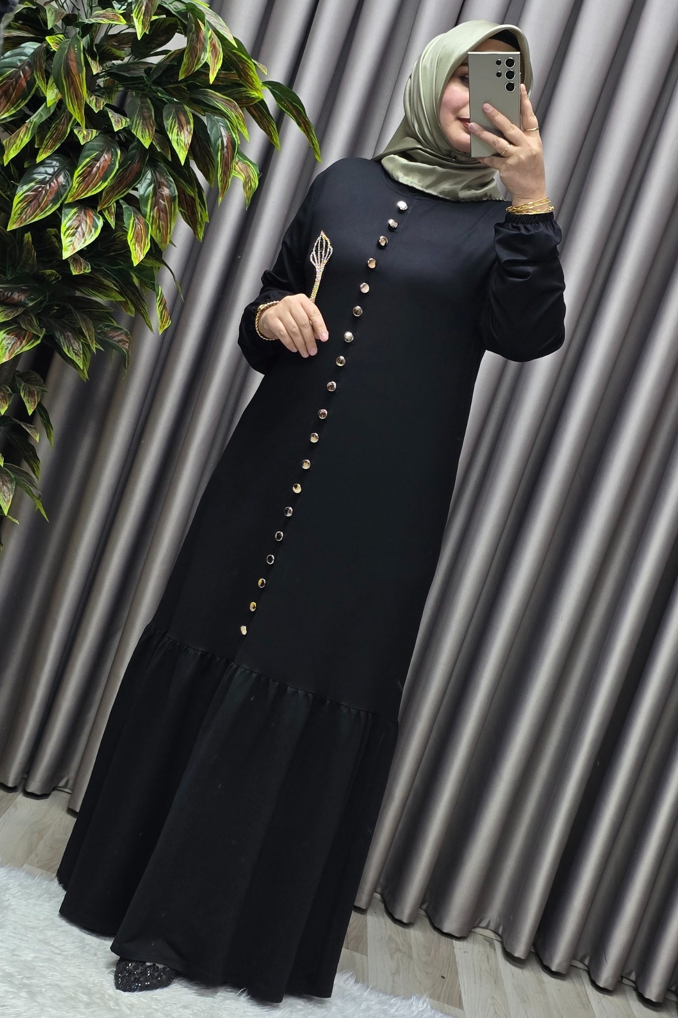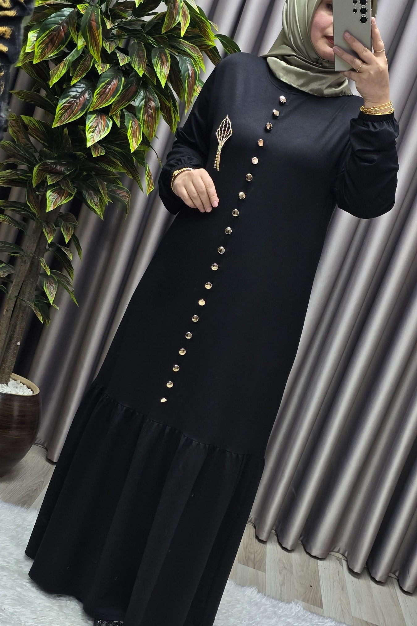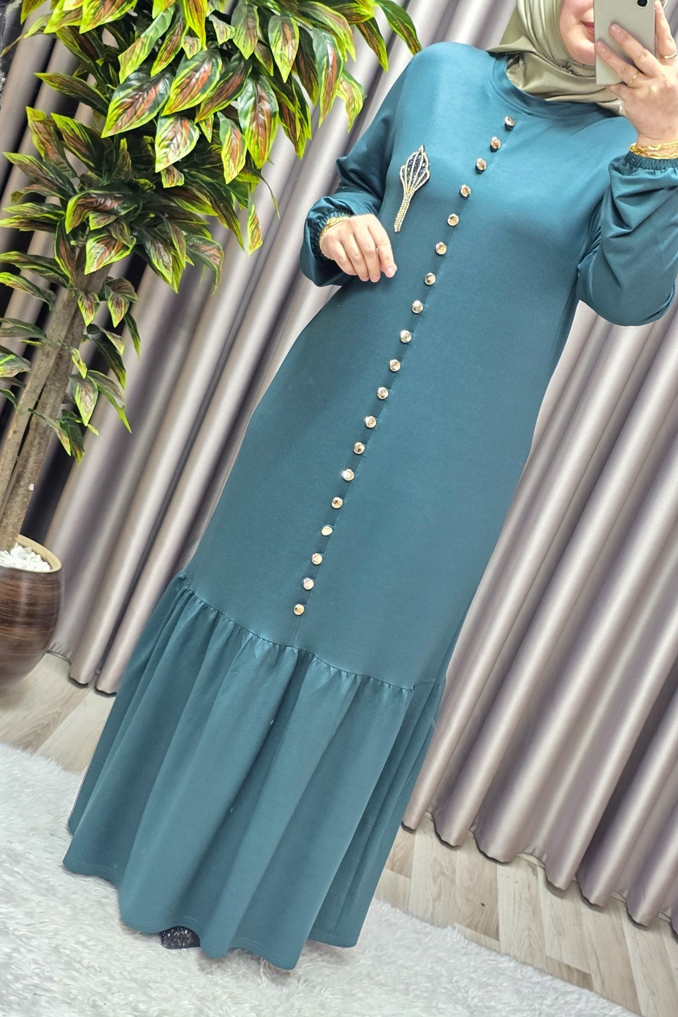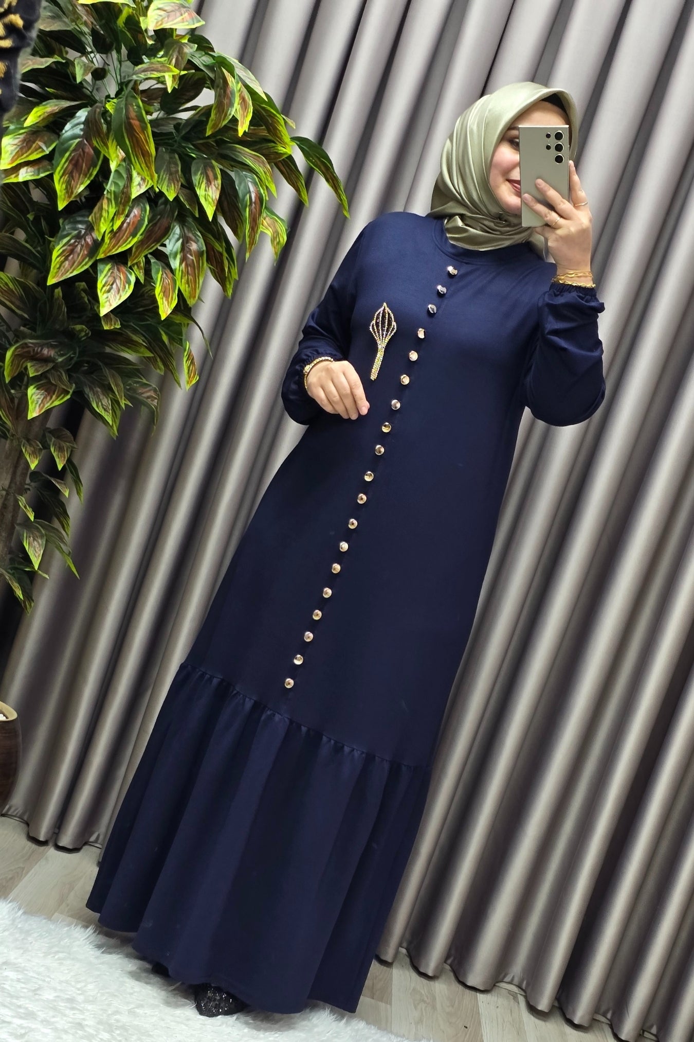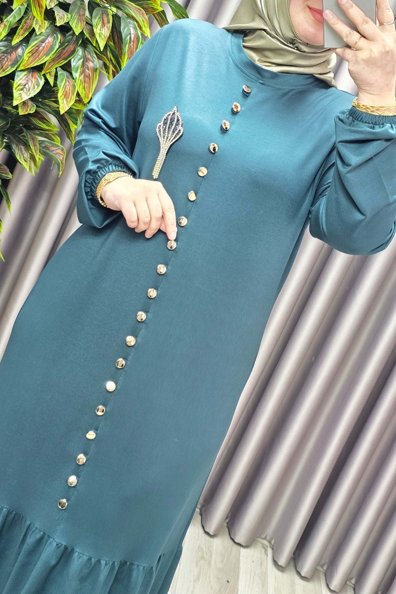 Kadın Giyim Büyük Beden Kristal Düğmeli Elbise