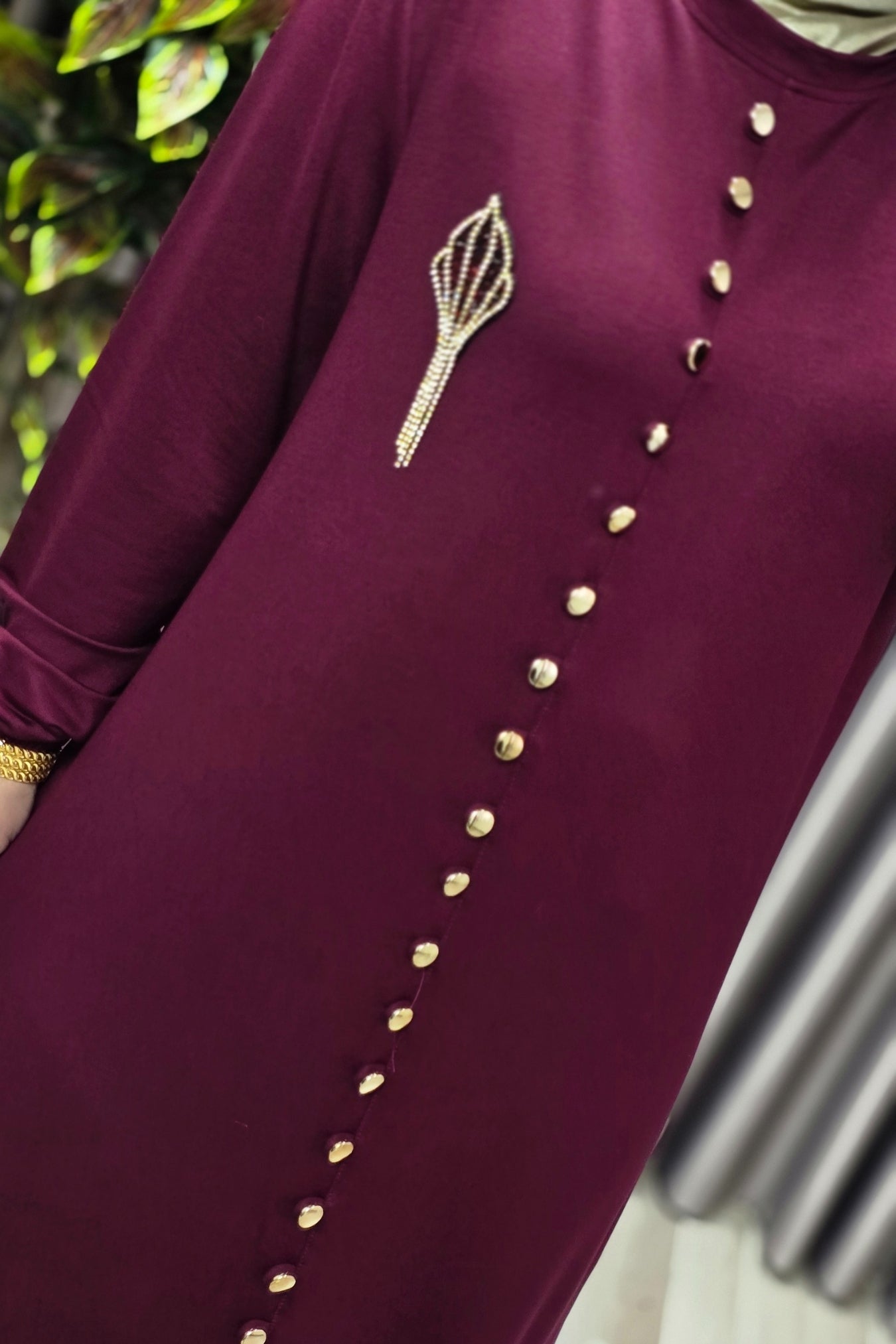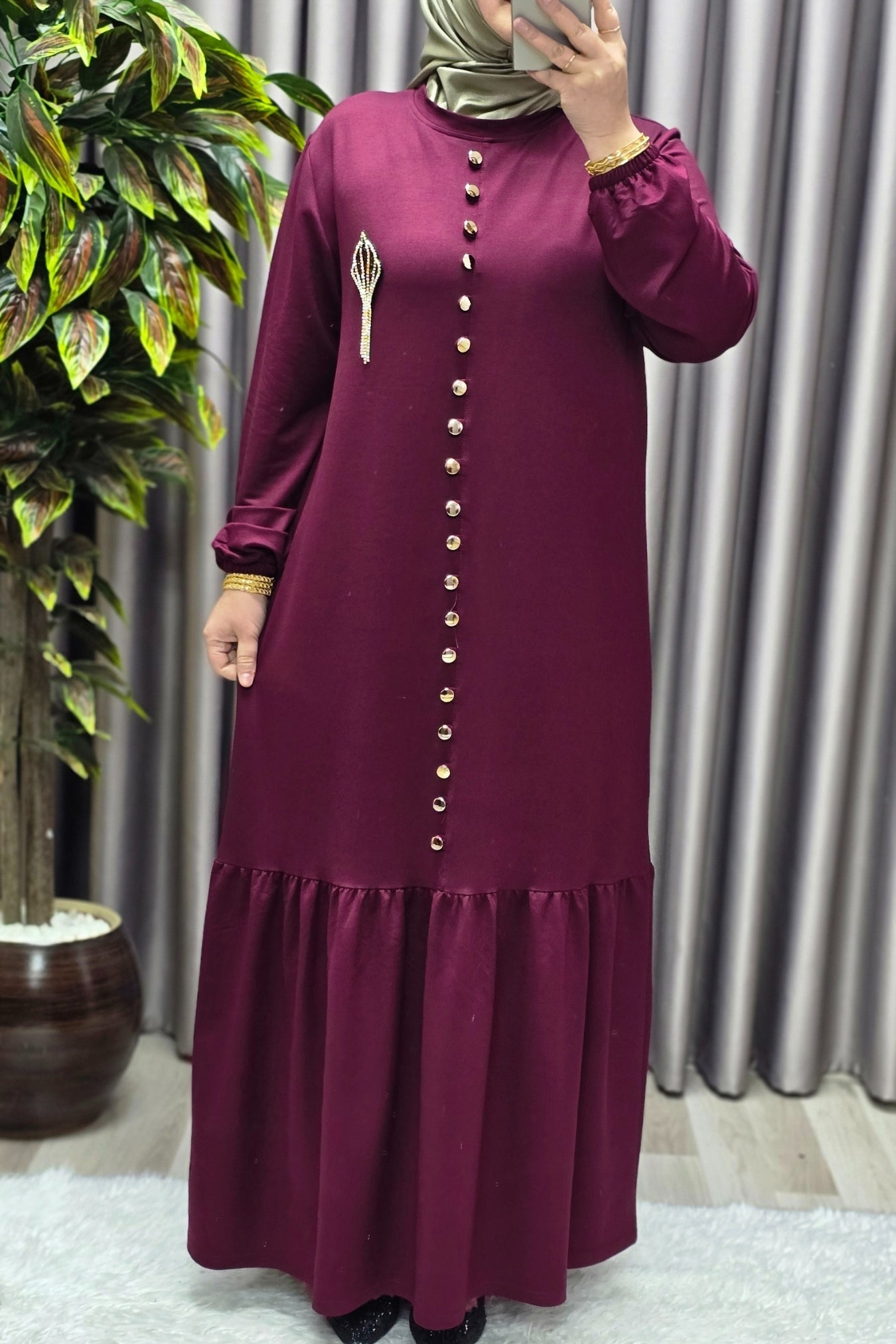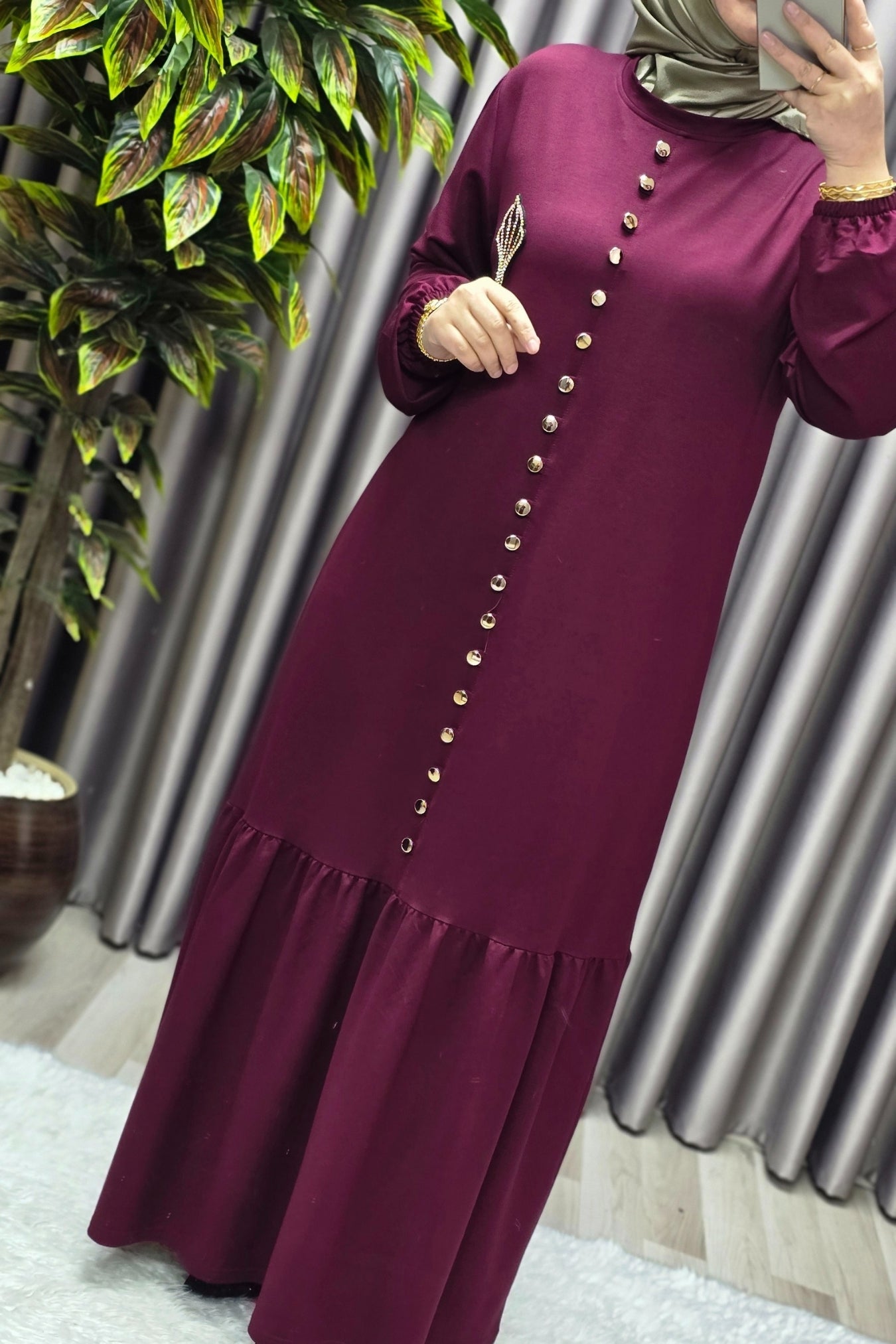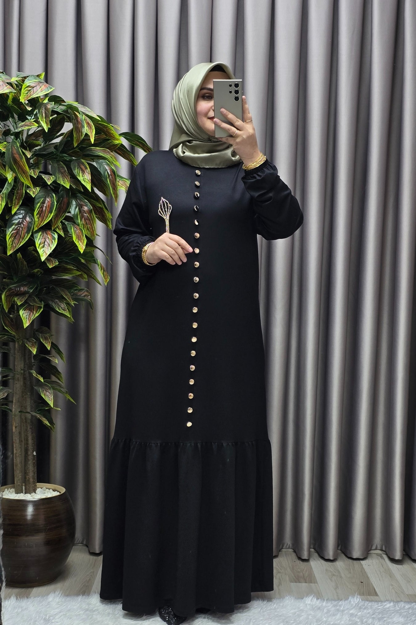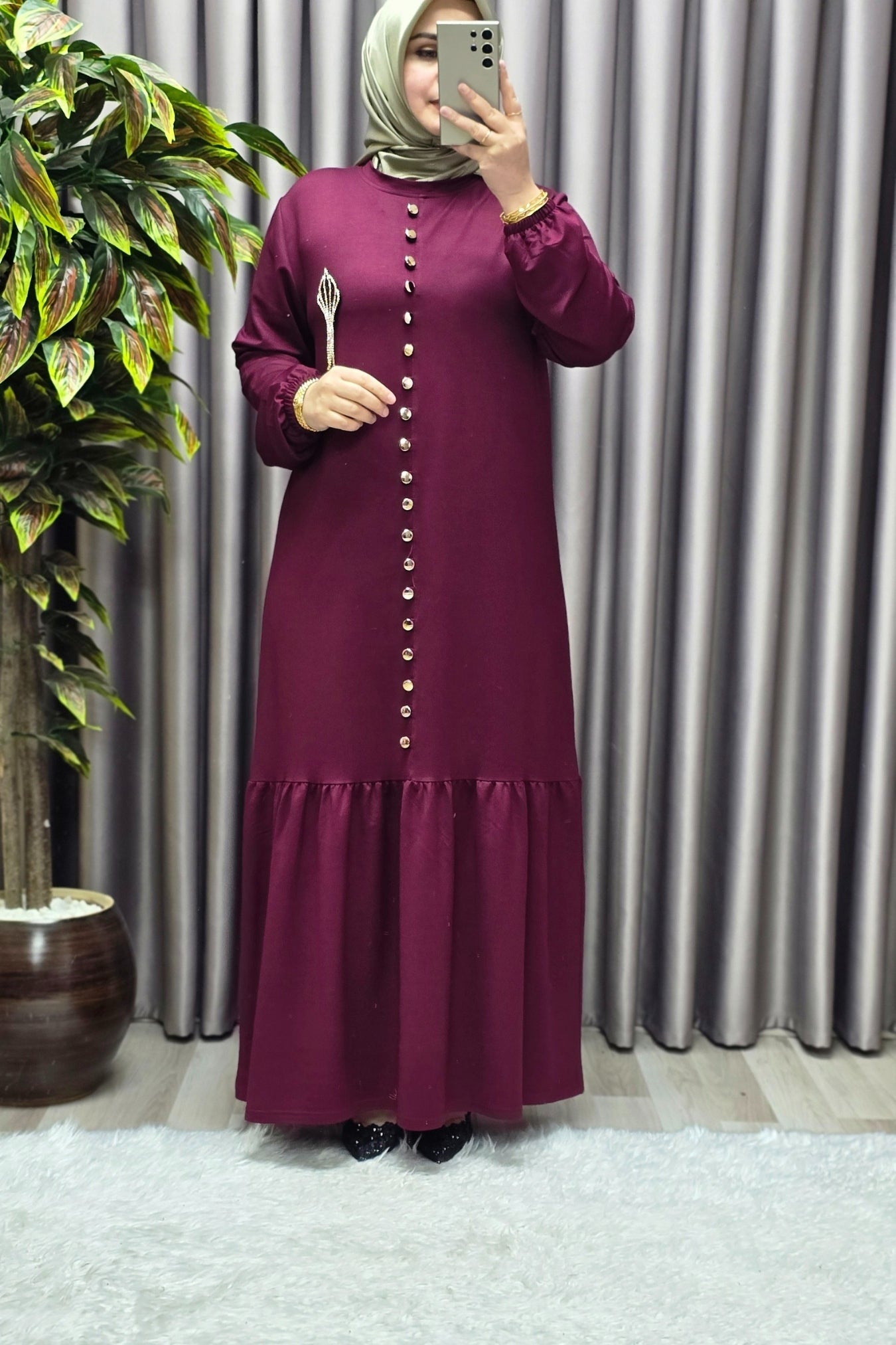 Kadın Giyim Büyük Beden Kristal Düğmeli Elbise