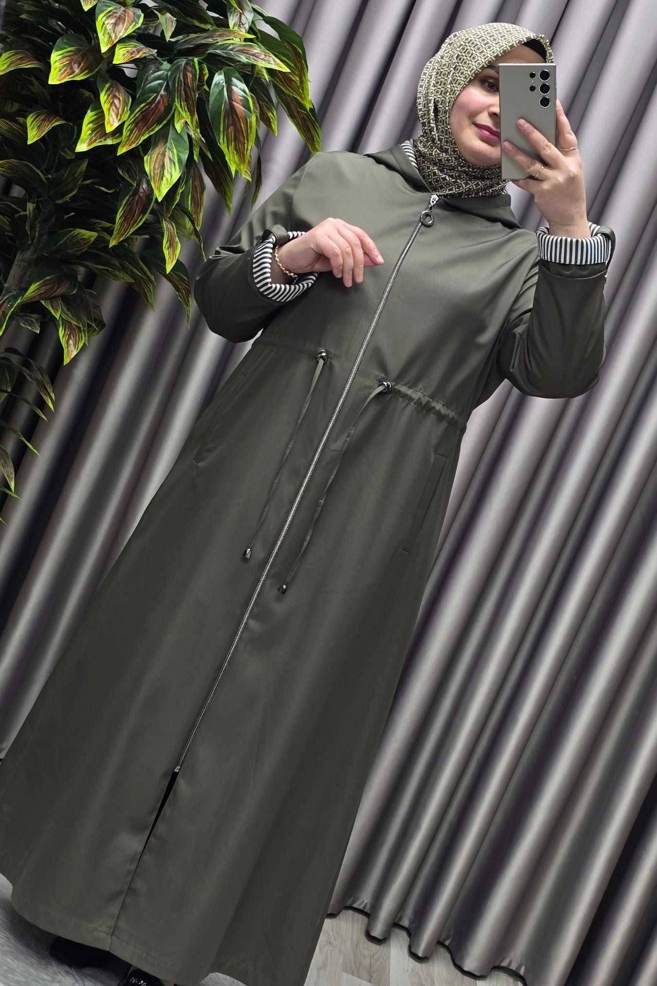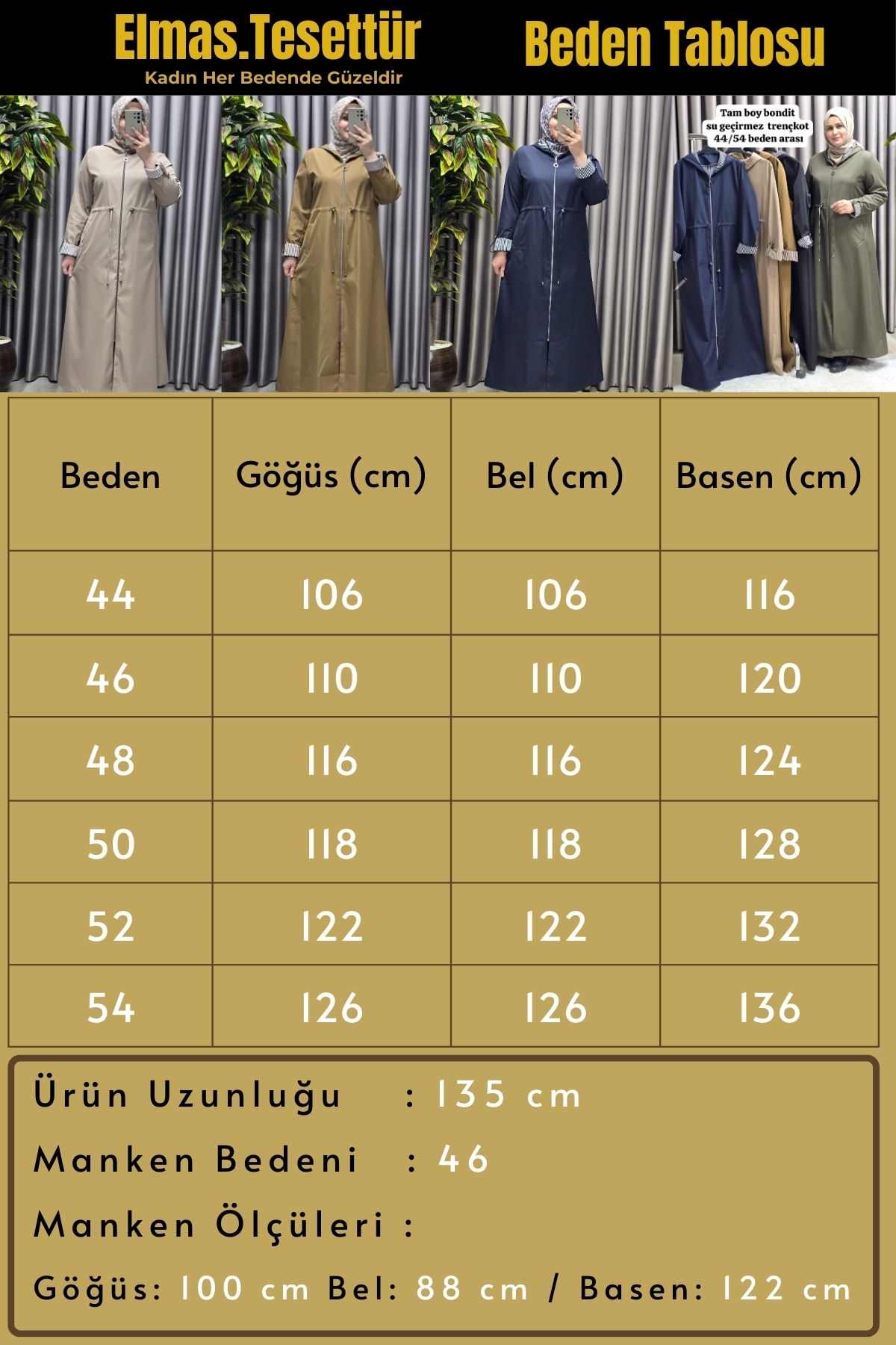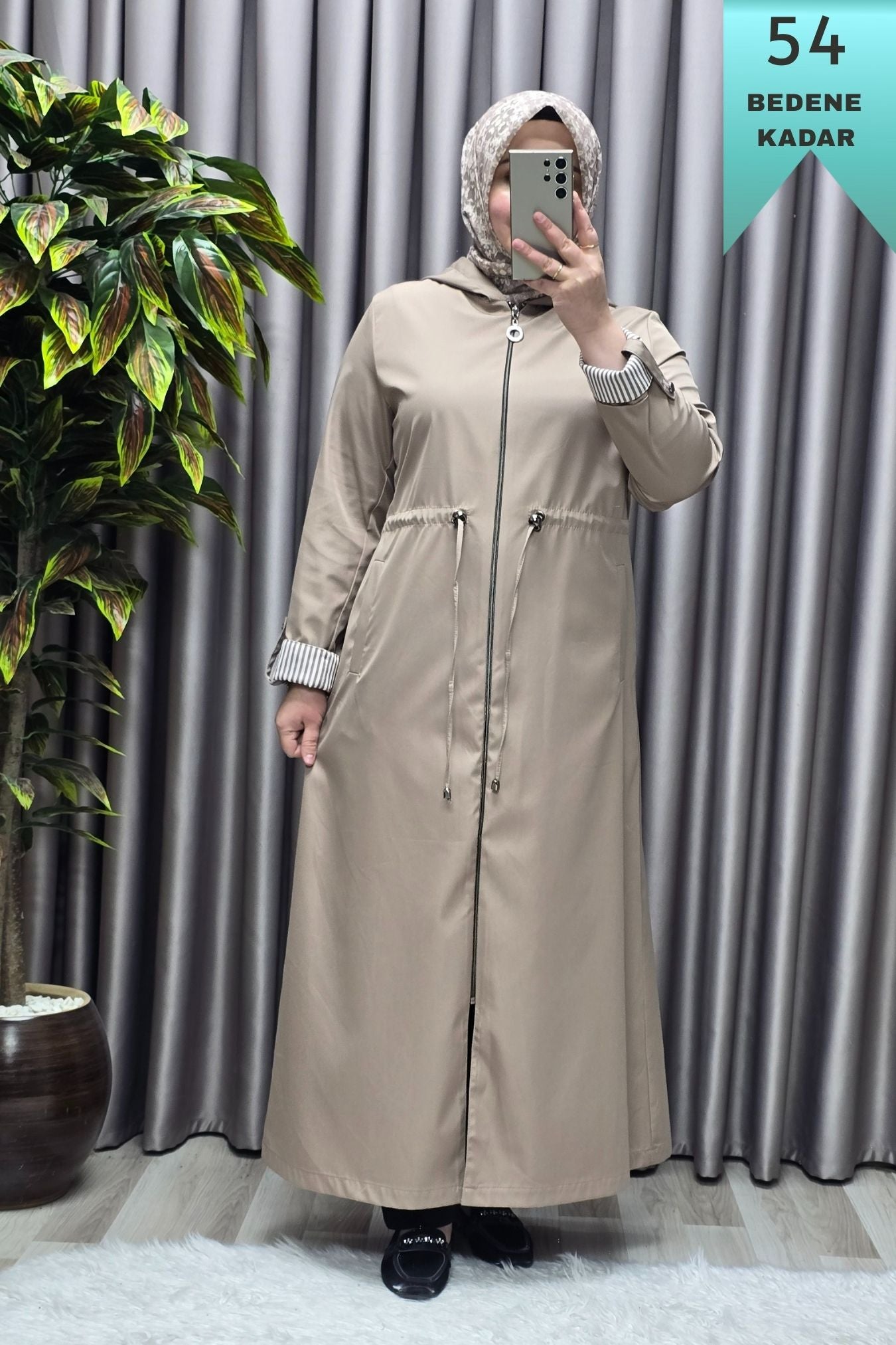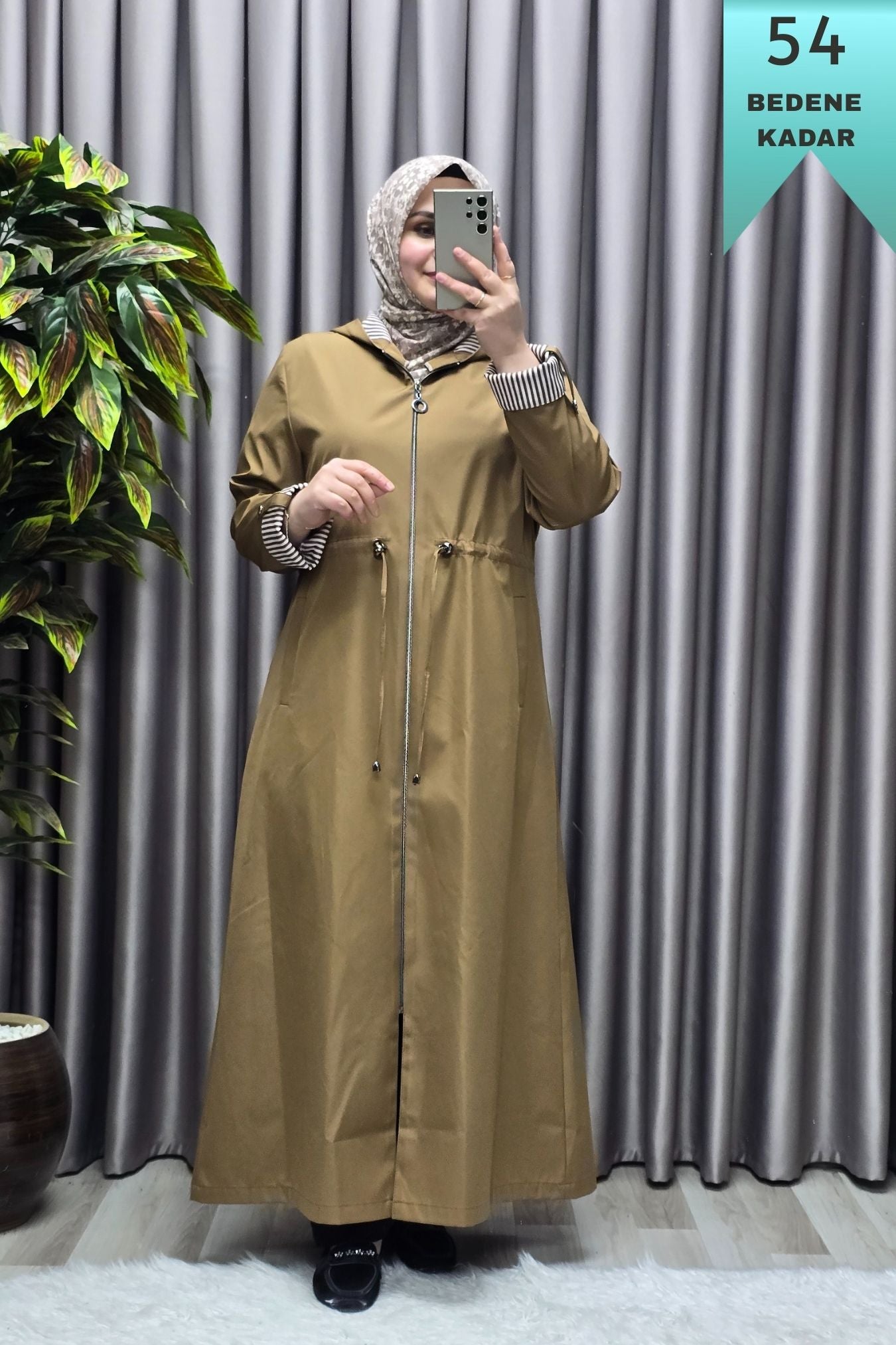 Kadın Giyim Büyük Beden Su Geçirmez Tam Boy Mevsimlik Spor Tesettür Pardesü