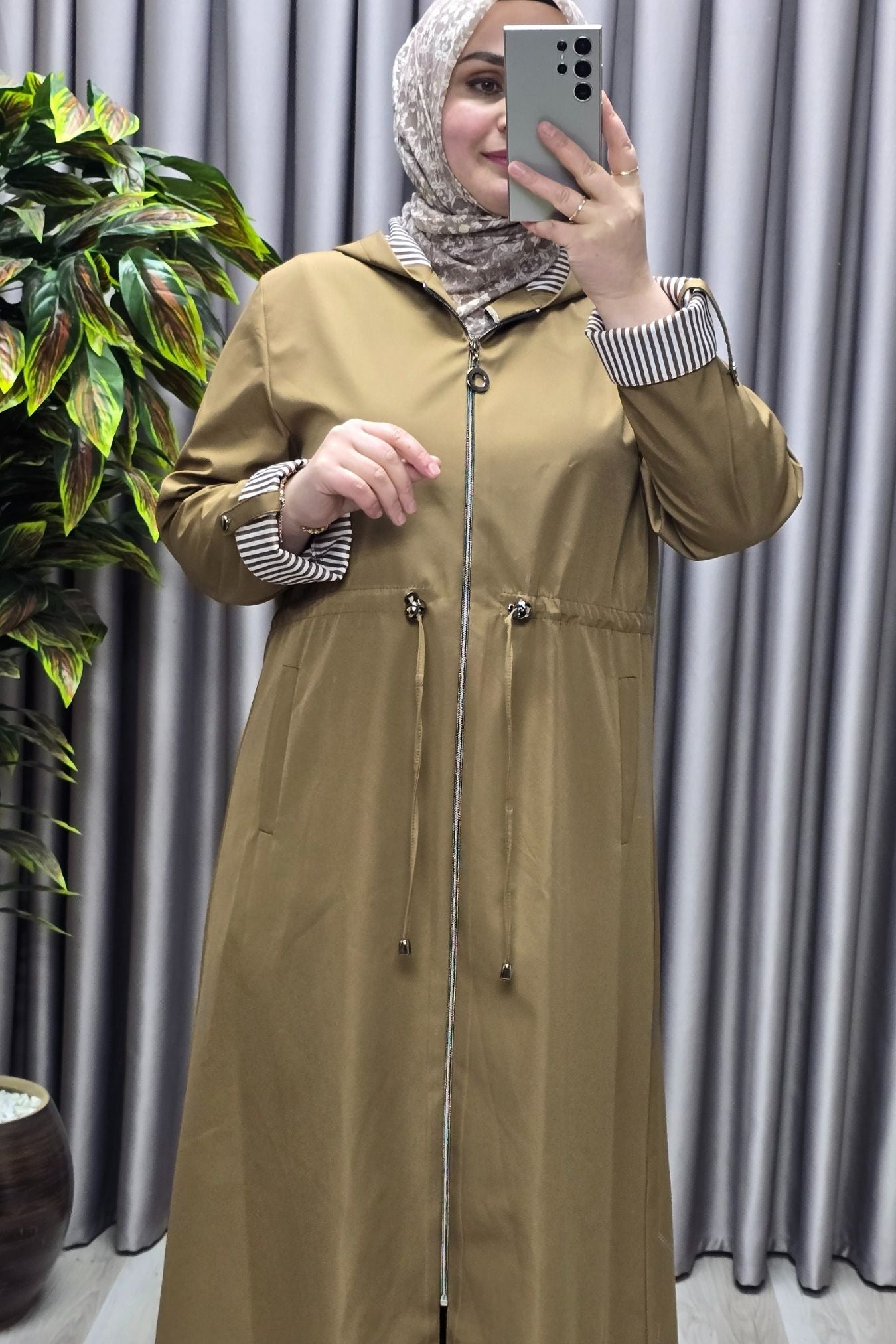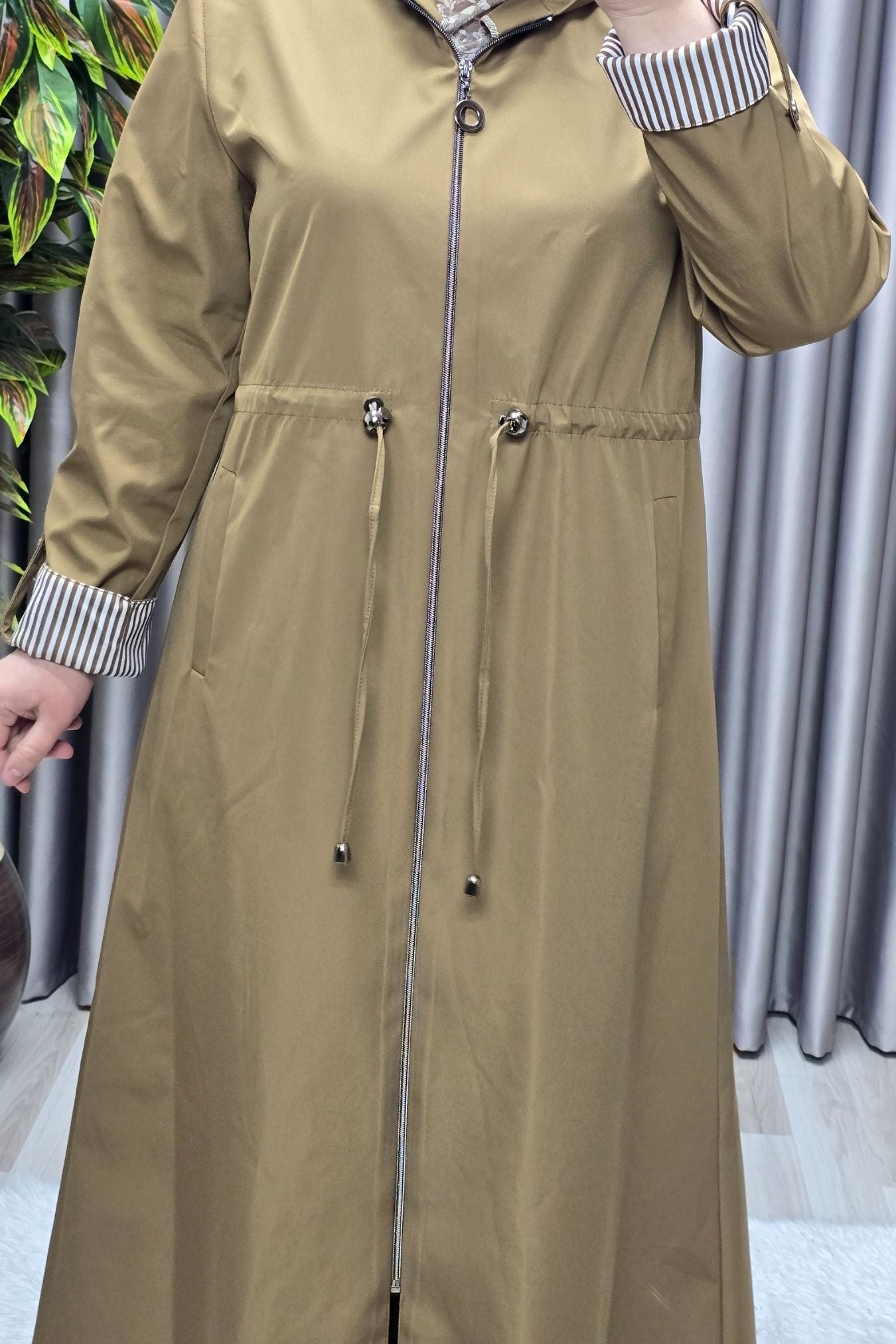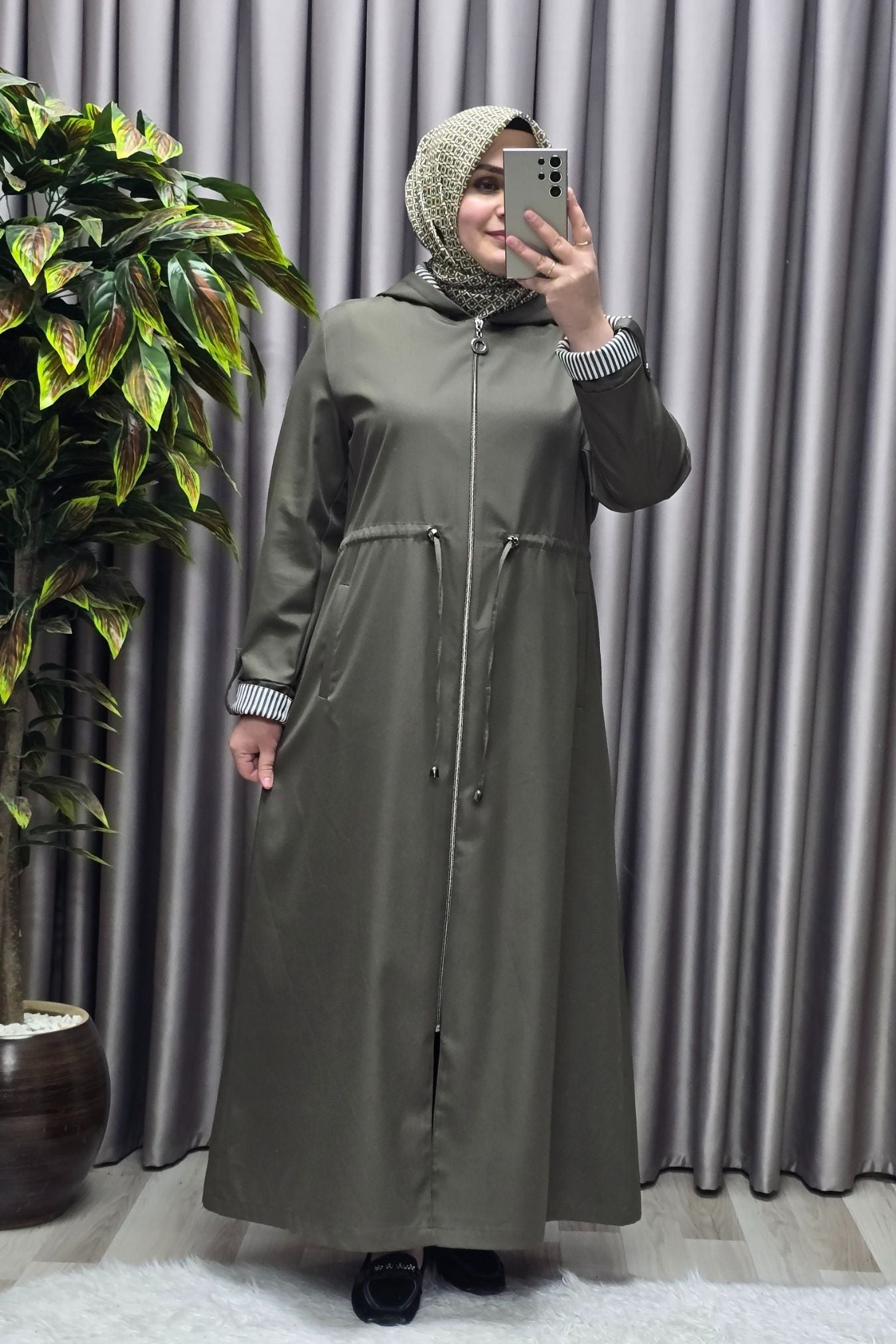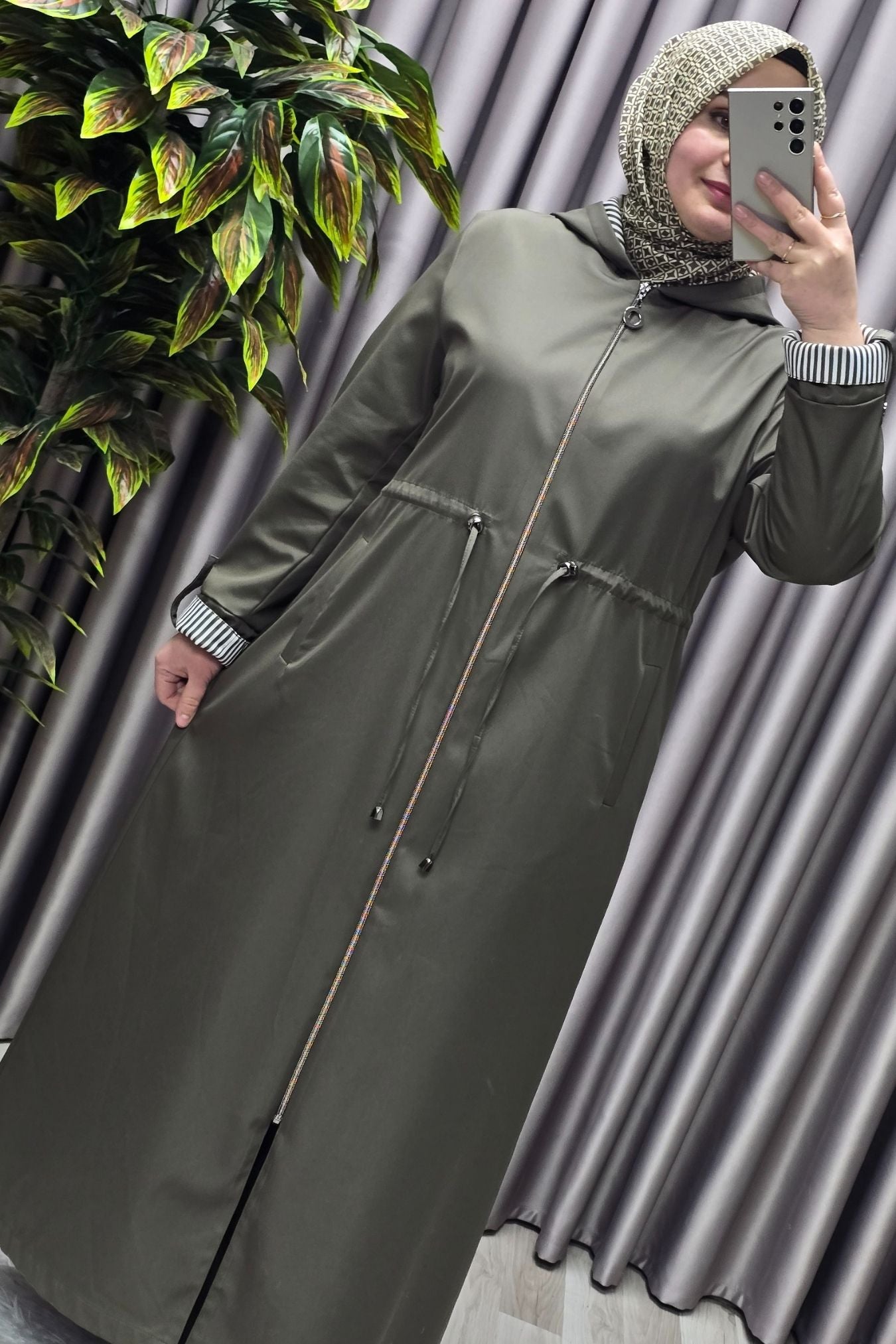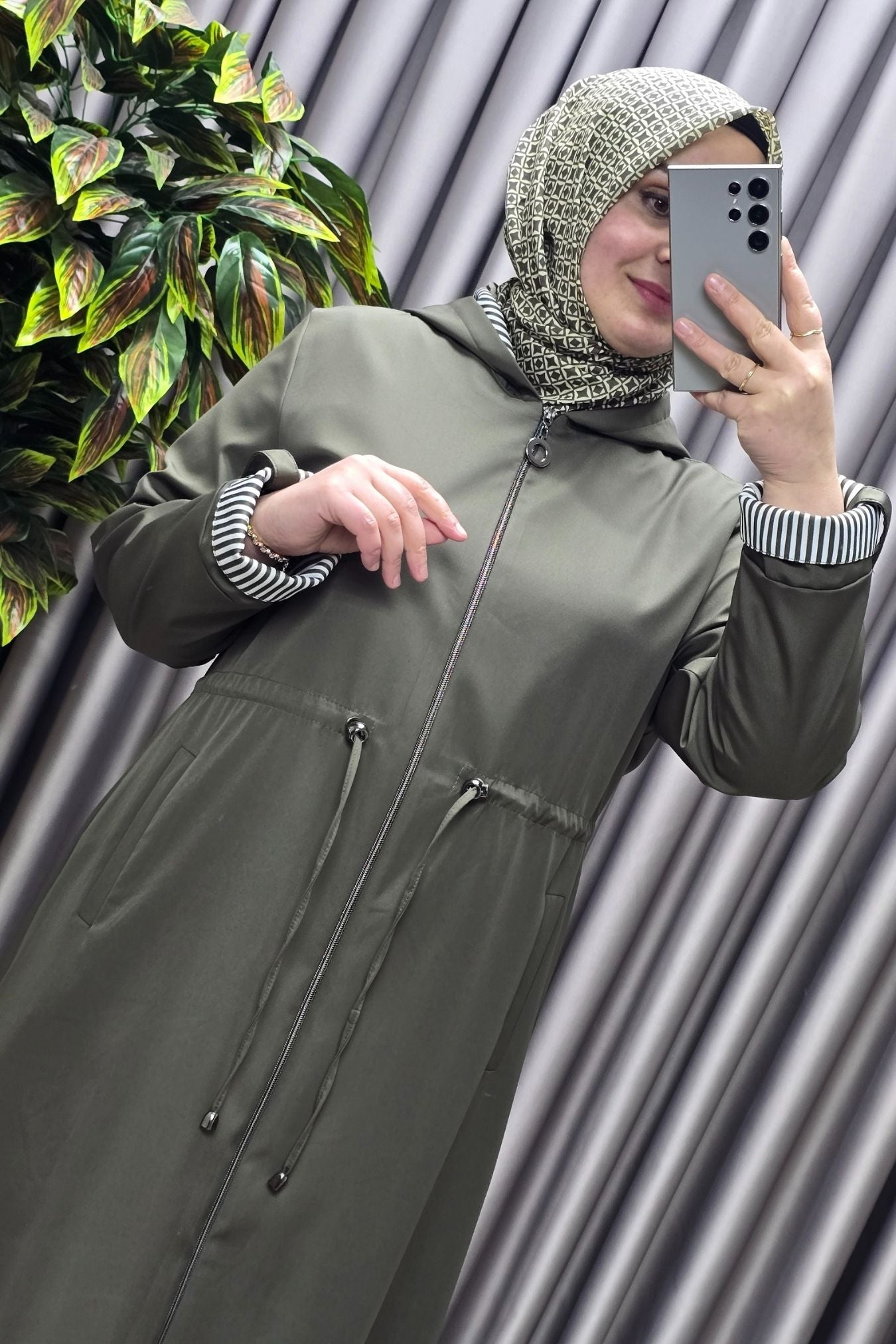 Kadın Giyim Büyük Beden Su Geçirmez Tam Boy Mevsimlik Spor Tesettür Pardesü