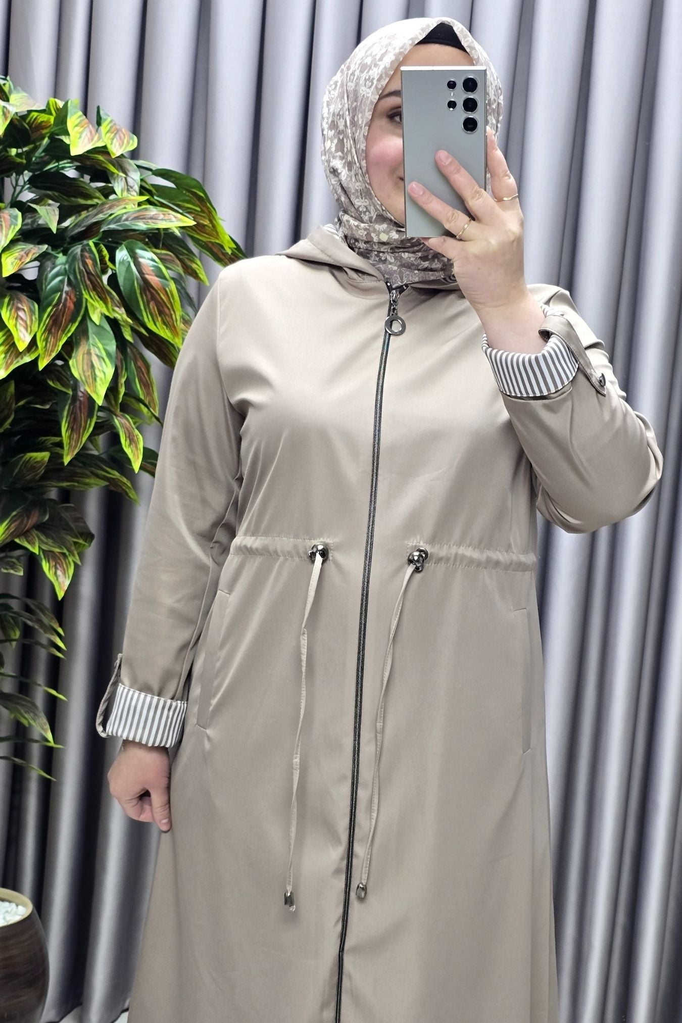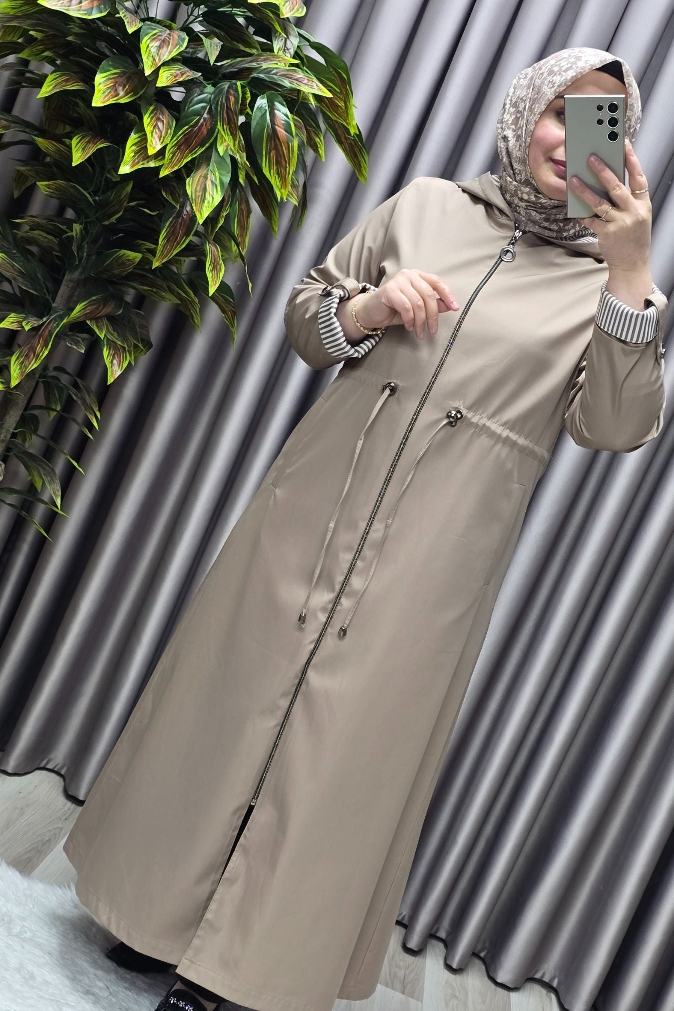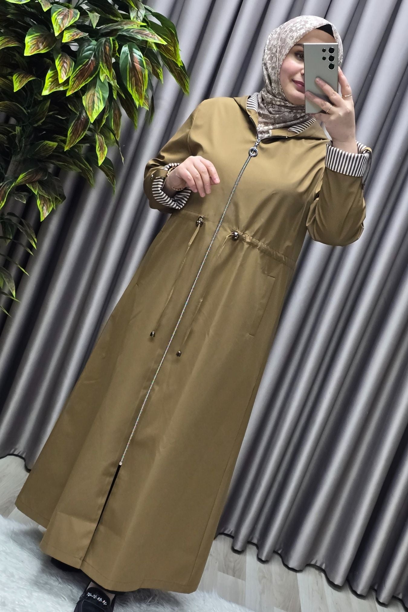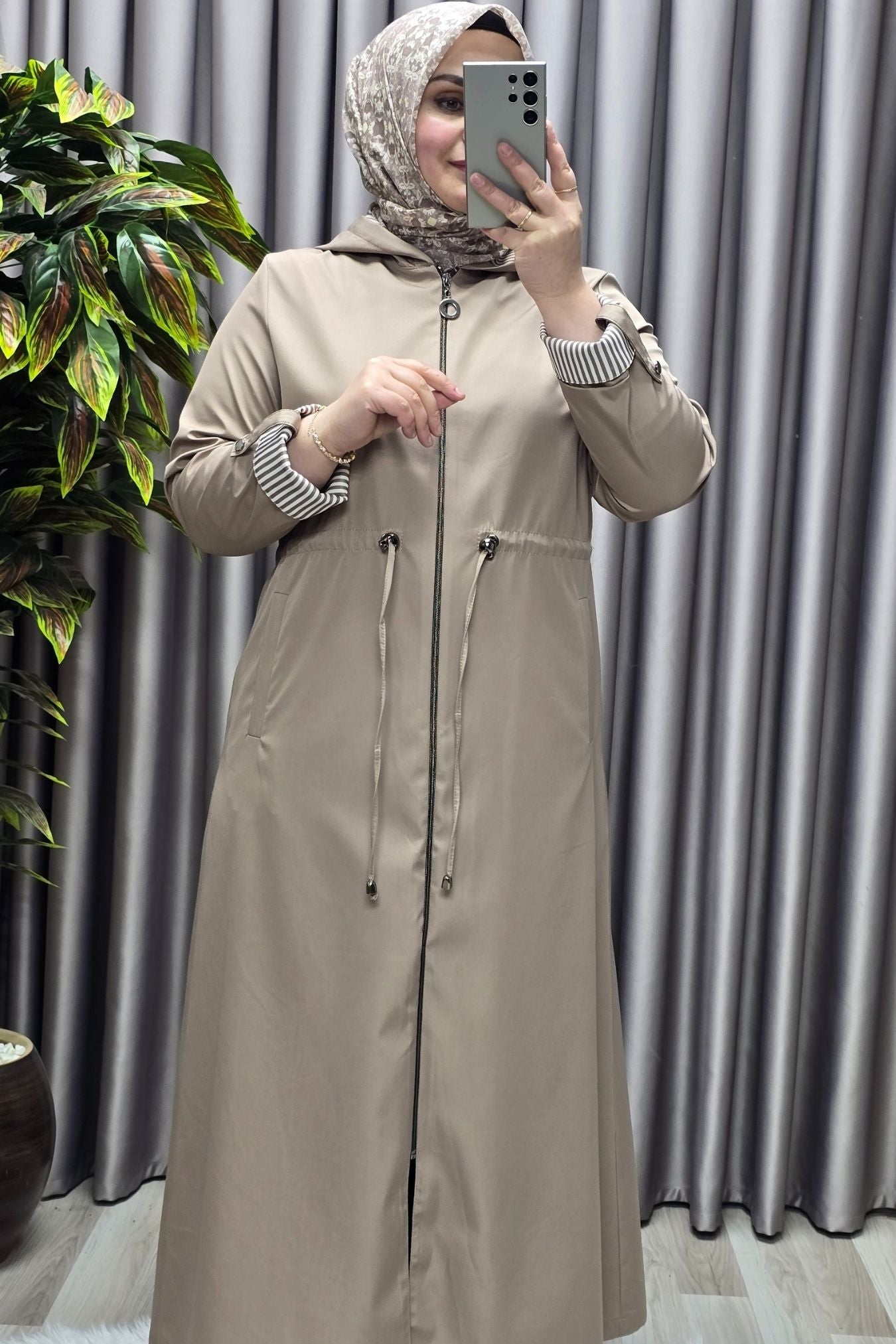Kadın Giyim Büyük Beden Su Geçirmez Tam Boy Mevsimlik Spor Tesettür Pardesü
