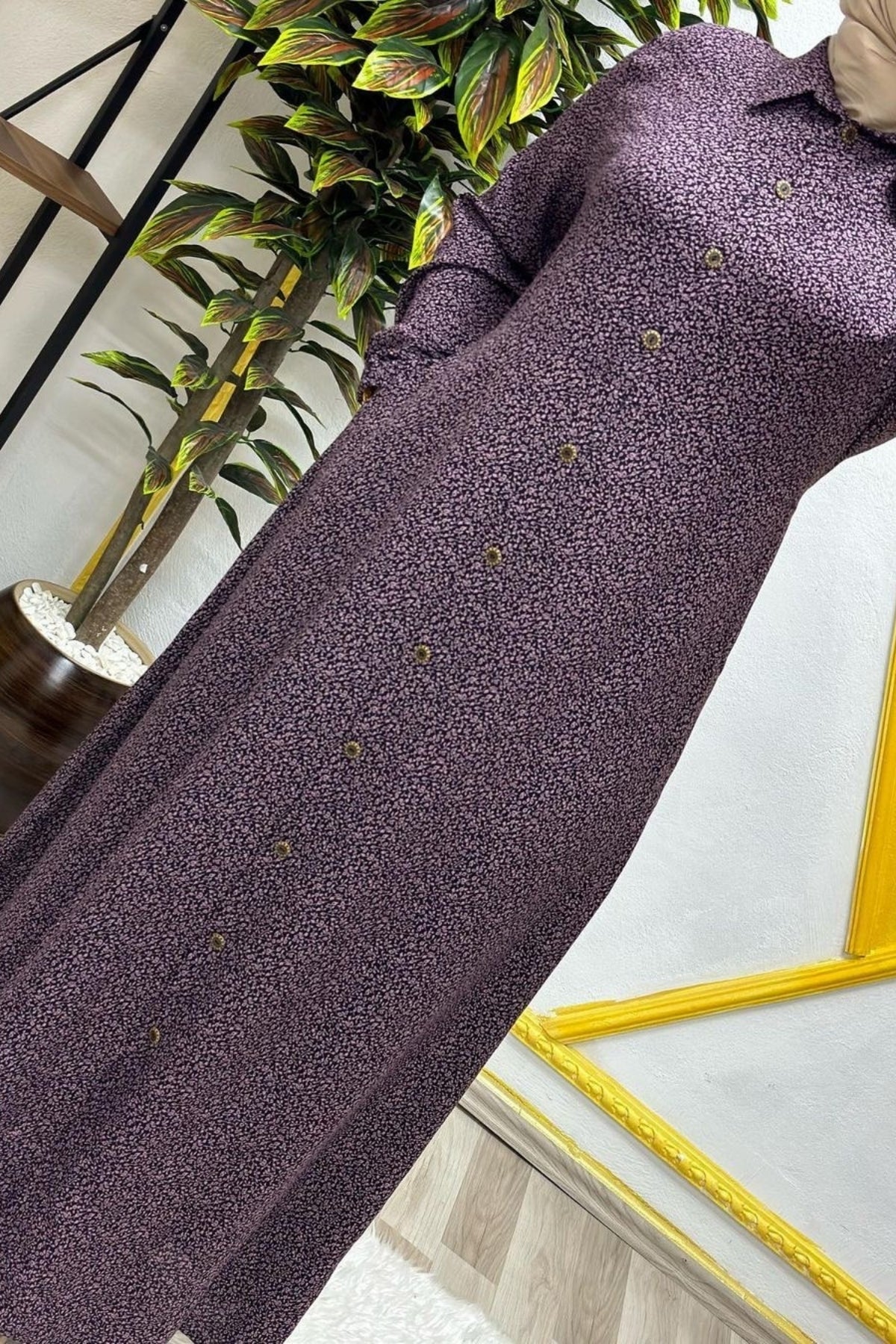 Kadın Tesettür Büyük Beden Giyim Çıtır Desen Gömlek Elbise
