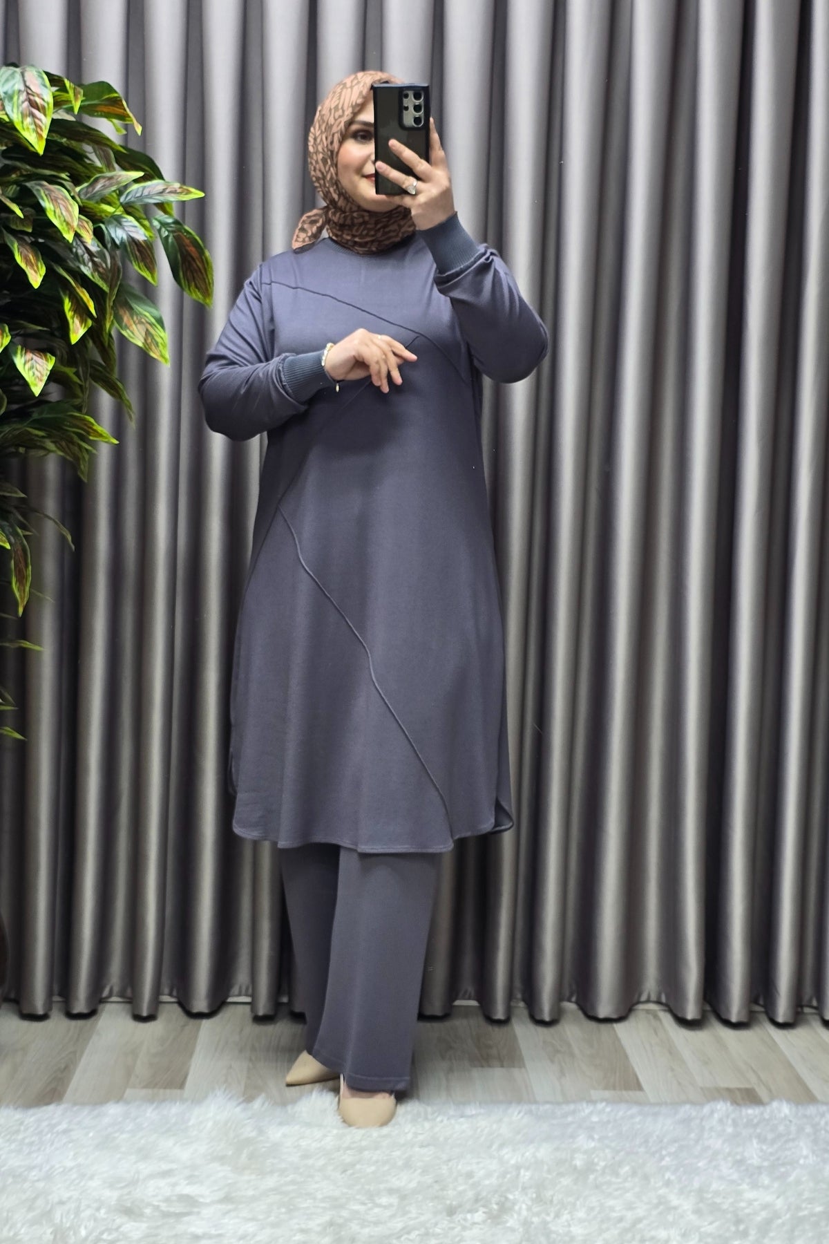 Kadın Tesettür Büyük Beden Giyim Nervürlü İkili Takım