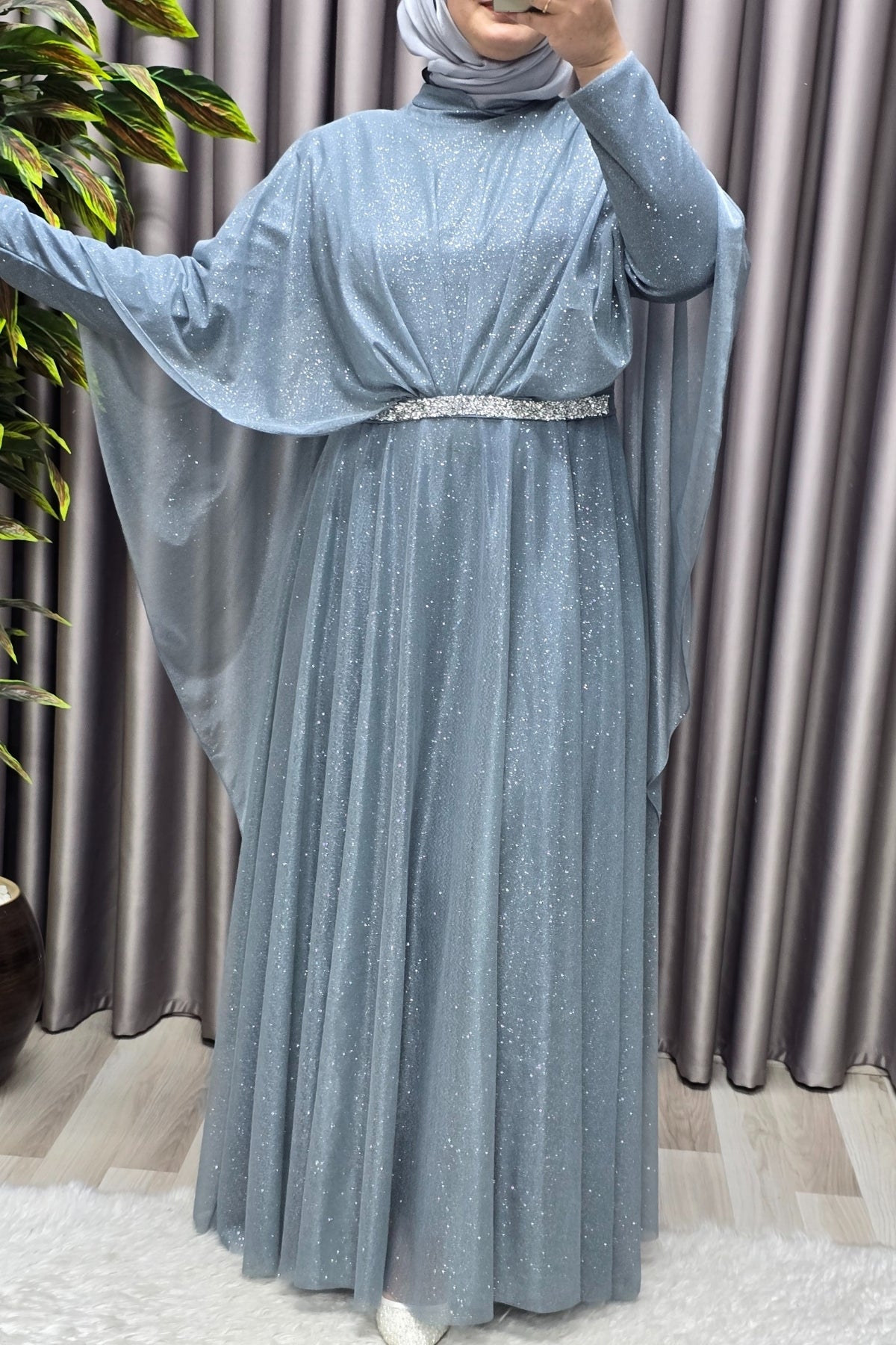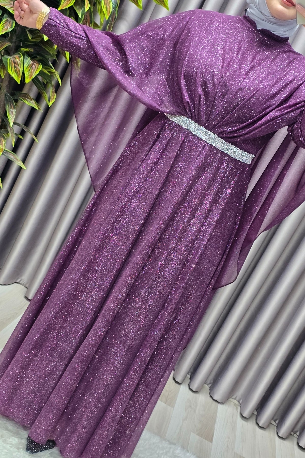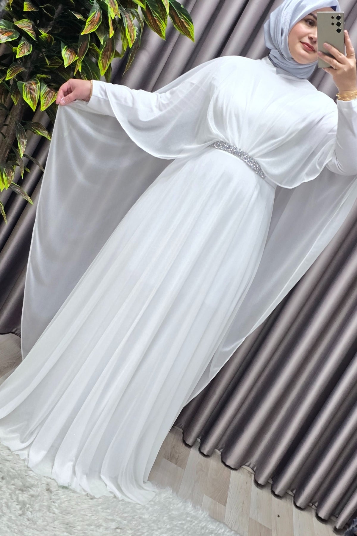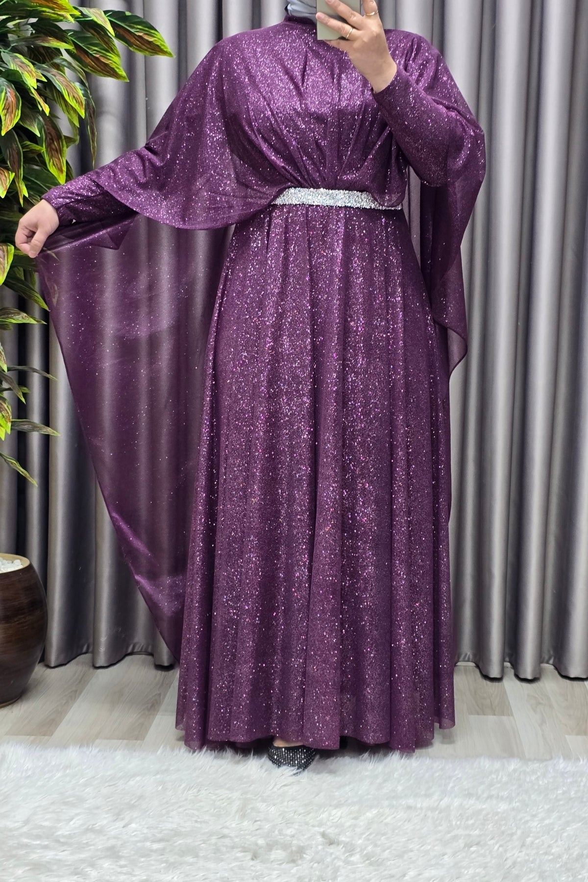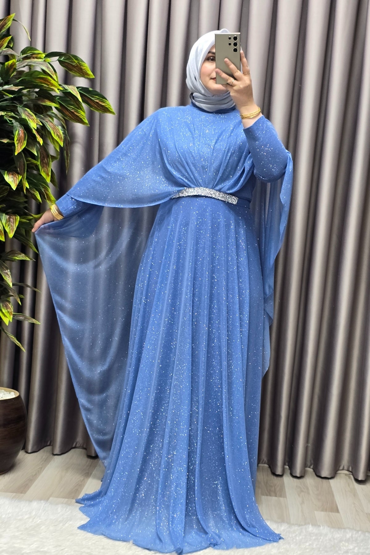 - Zarif renkleriyle göz alıcı bir görünüm sunan bu pelerinli abiye, her özel anınızda şıklığınızı tamamlar.