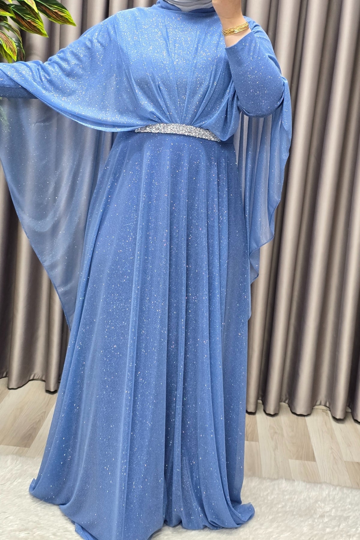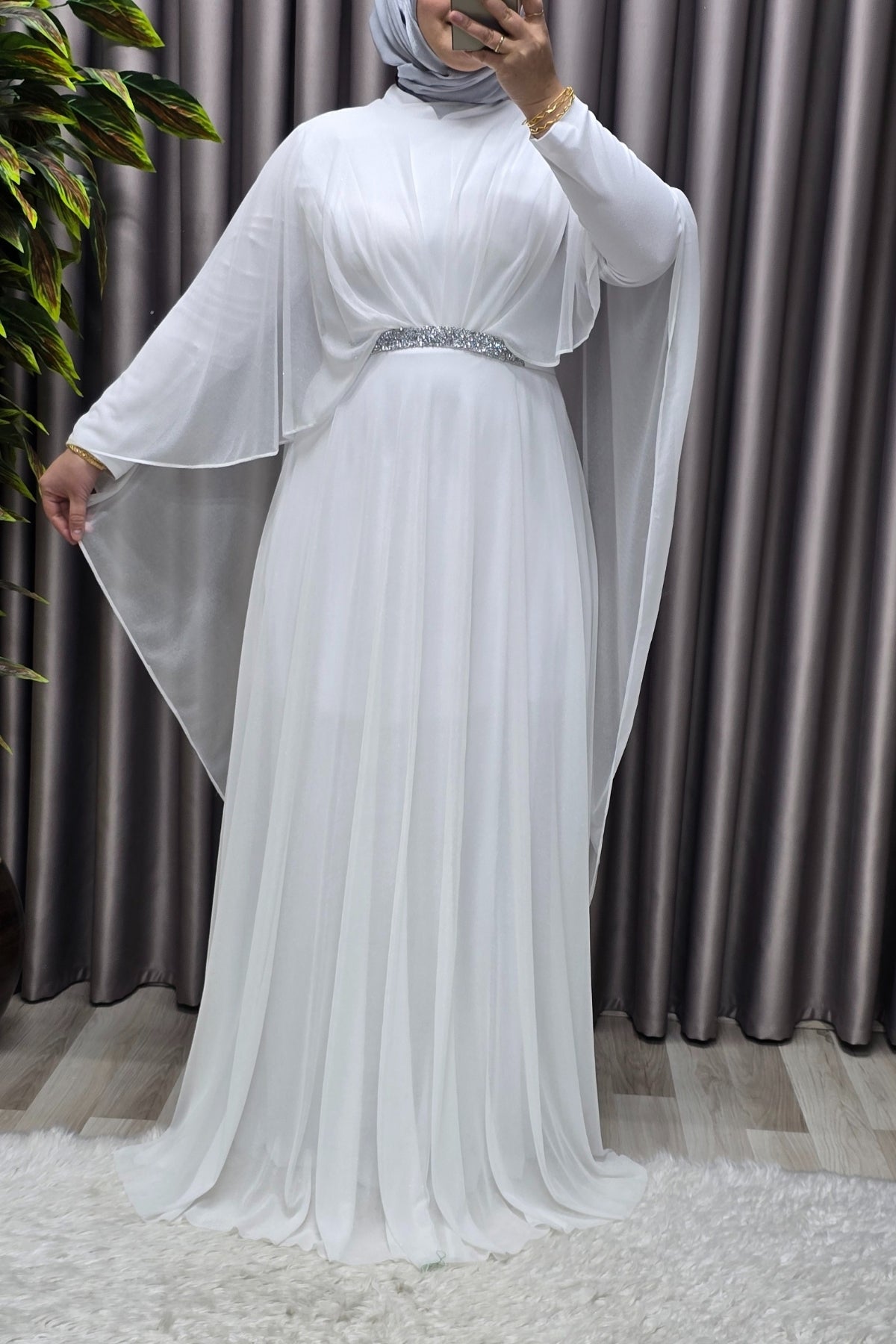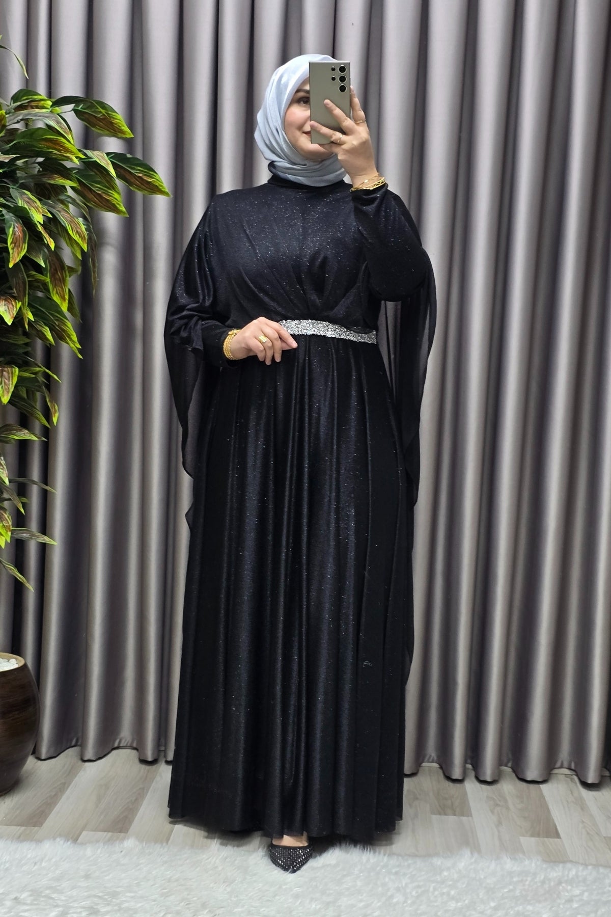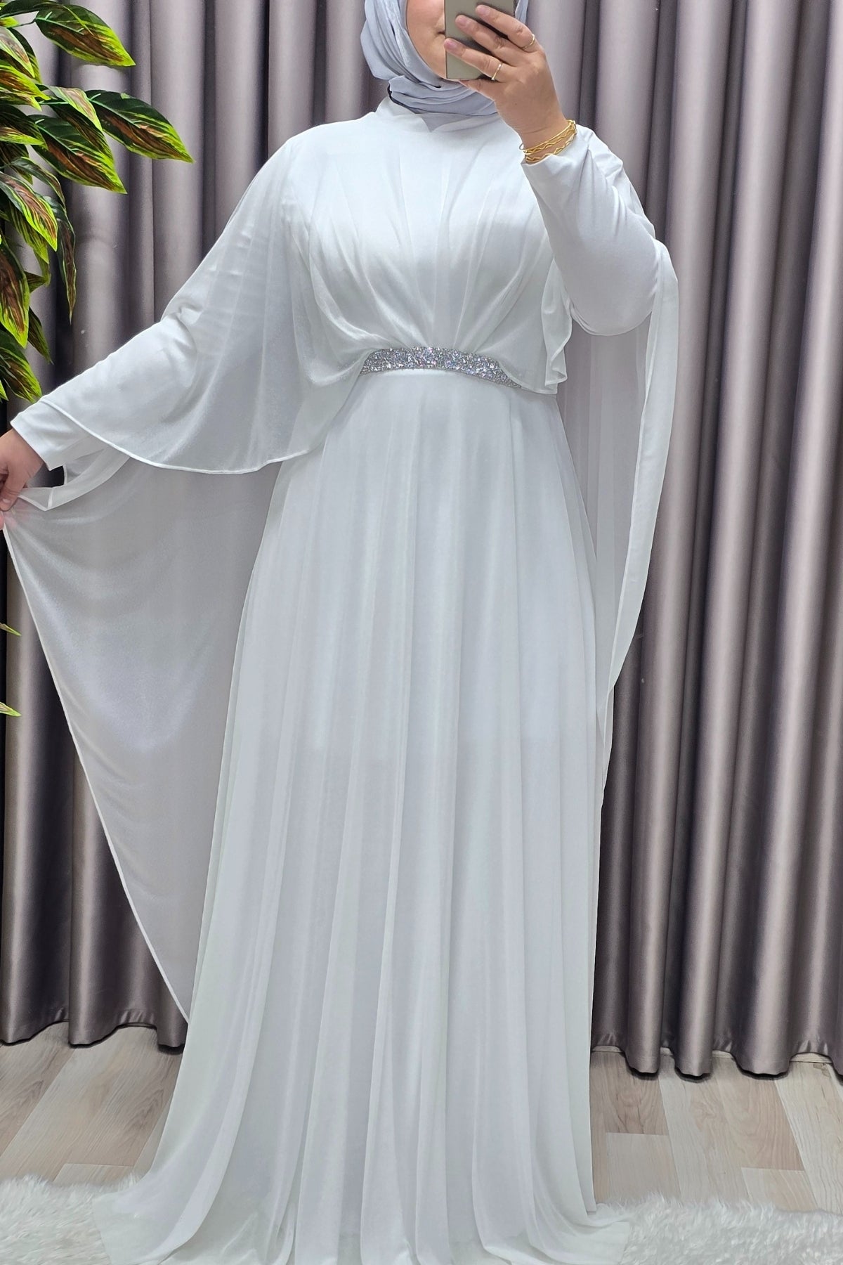 - Zarif renkleriyle göz alıcı bir görünüm sunan bu pelerinli abiye, her özel anınızda şıklığınızı tamamlar.