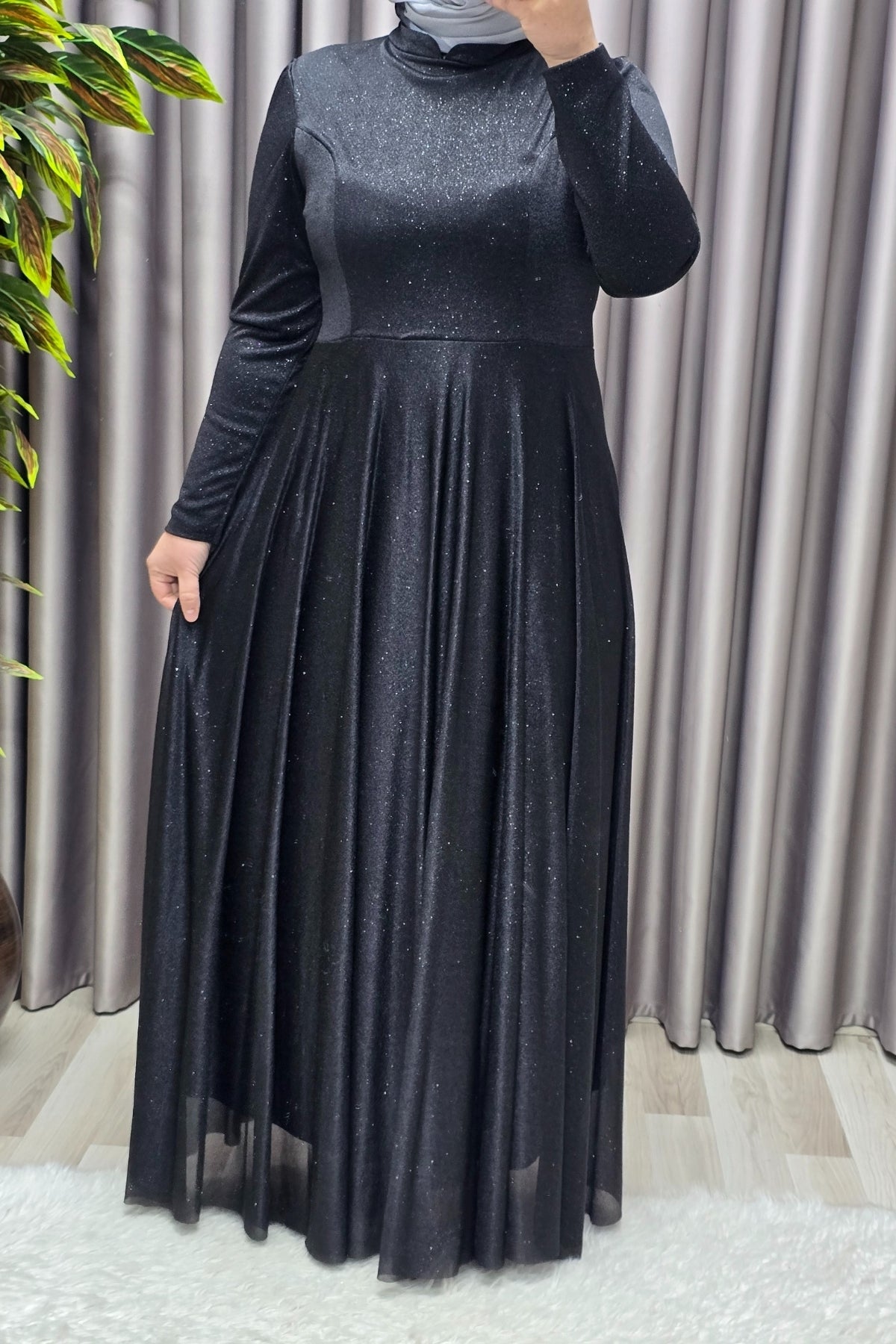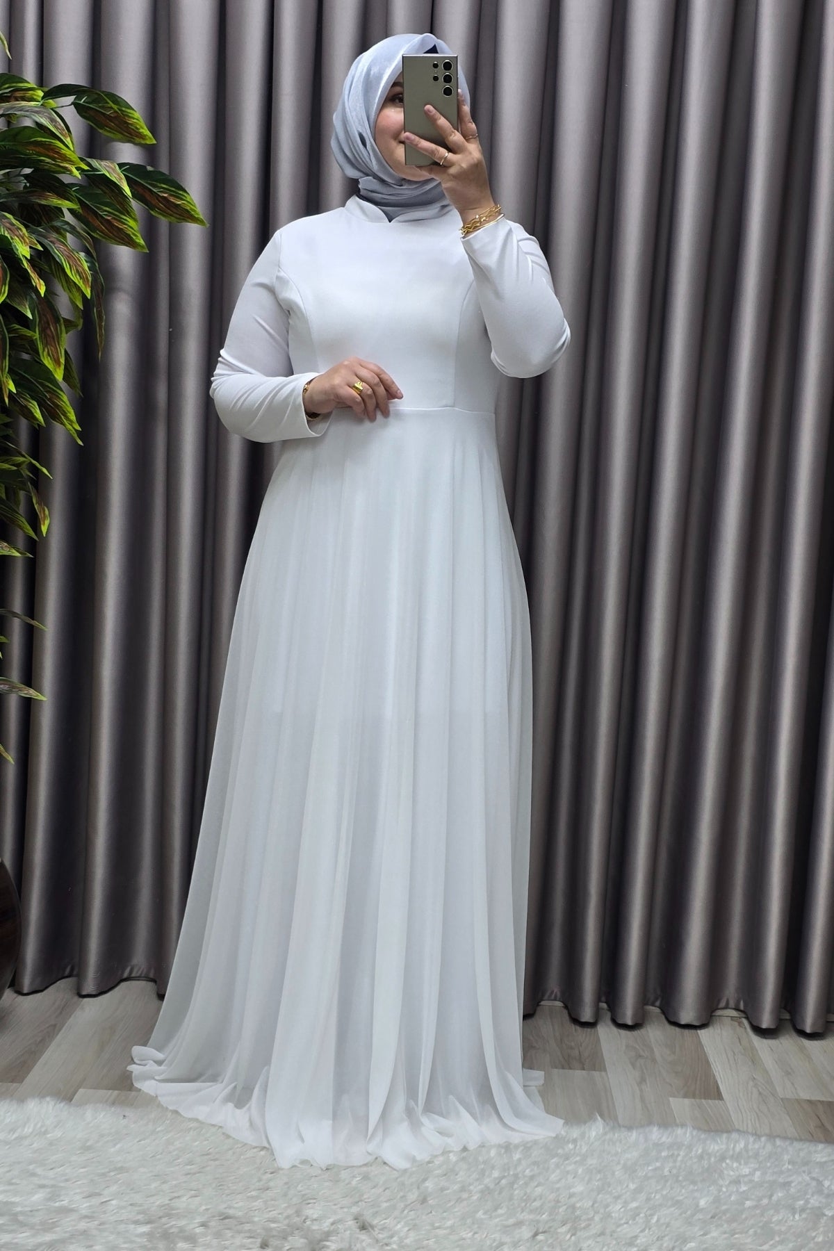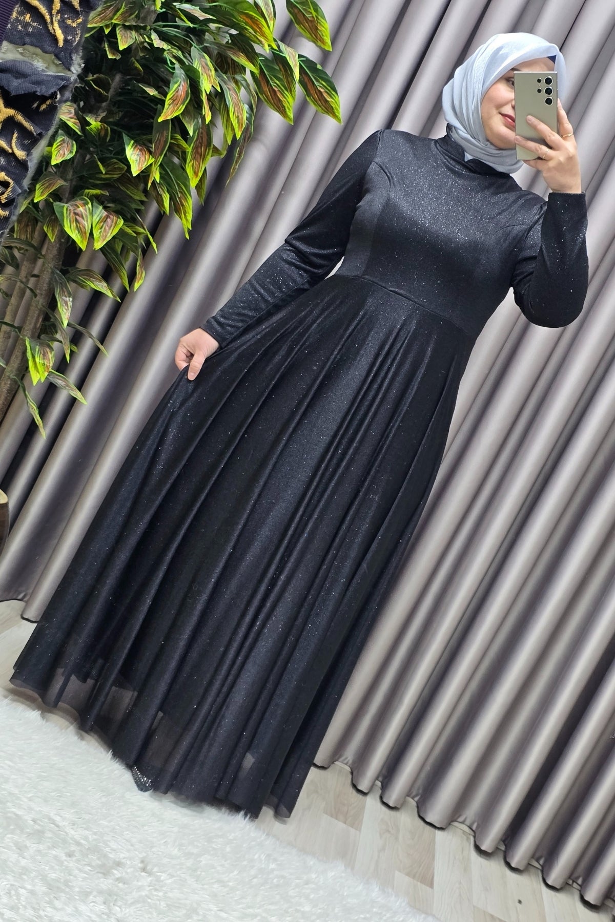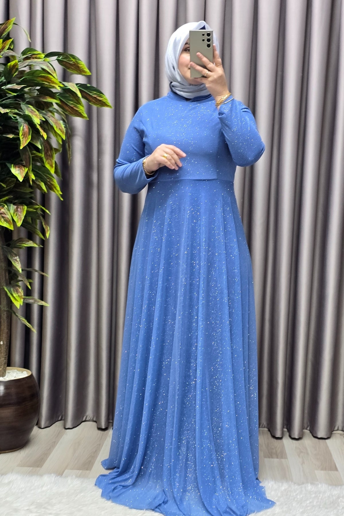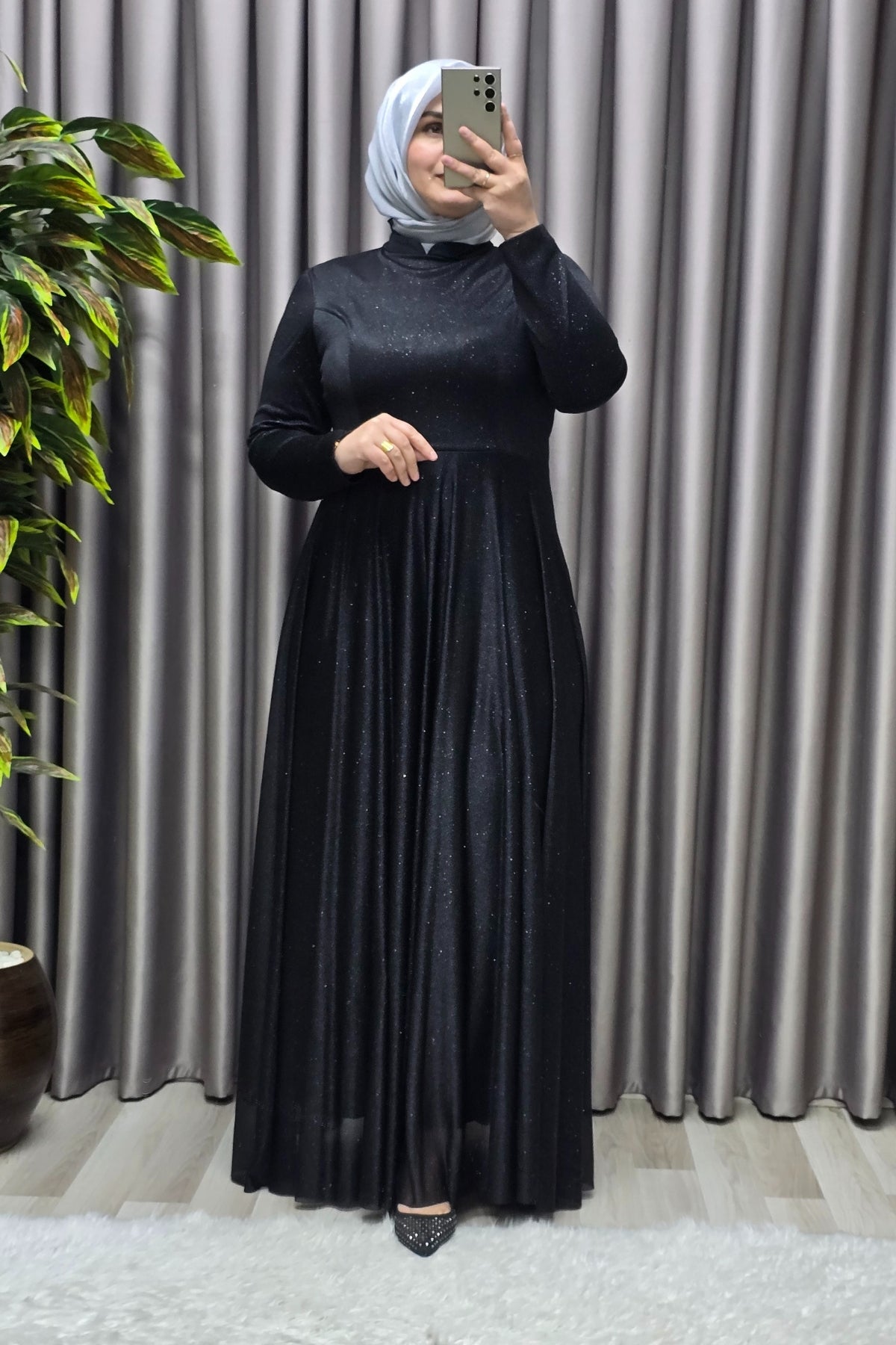 - Şık gece ortamları için ideal olan bu abiye, hakim yakası ile sofistike bir görünüm kazandırır.