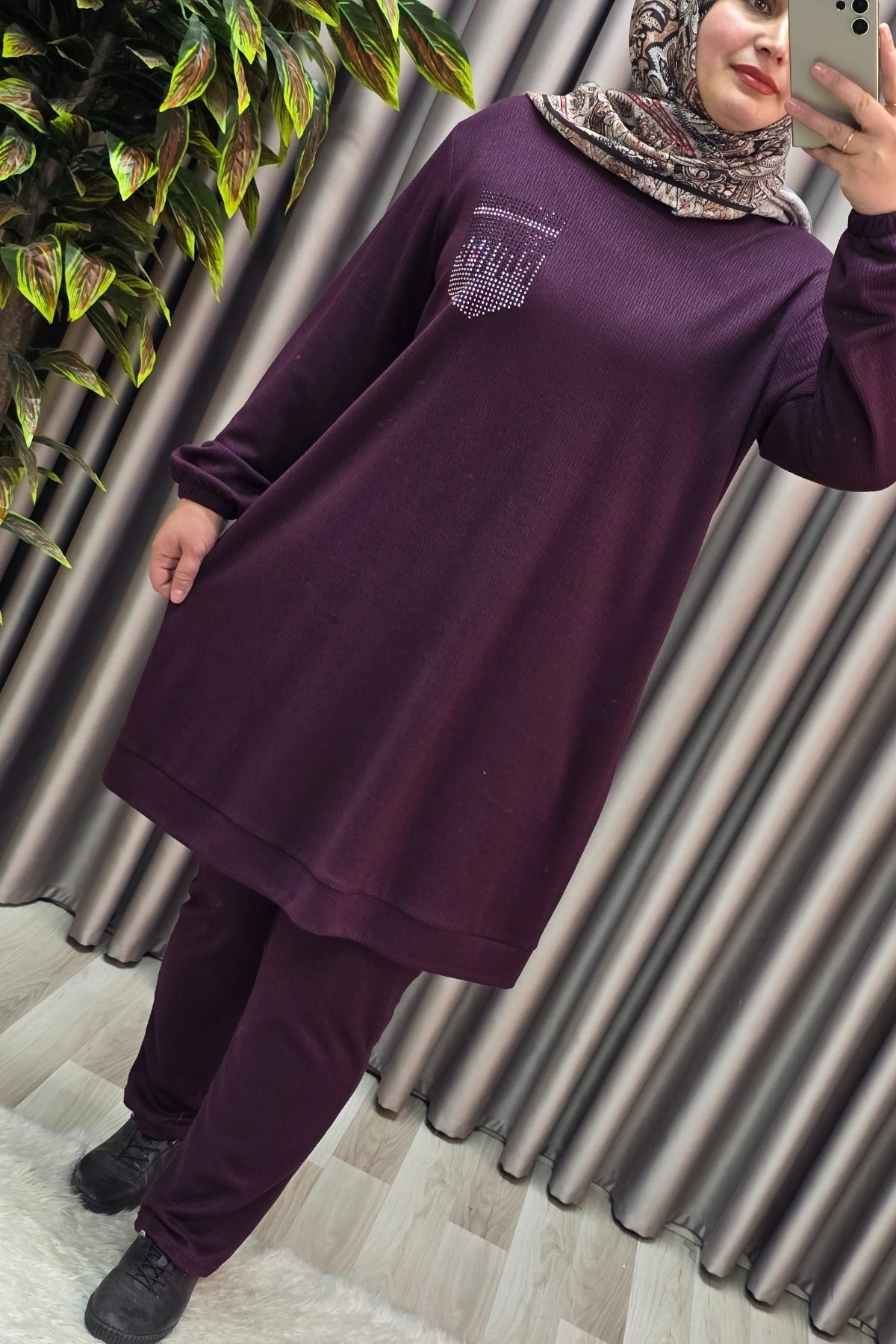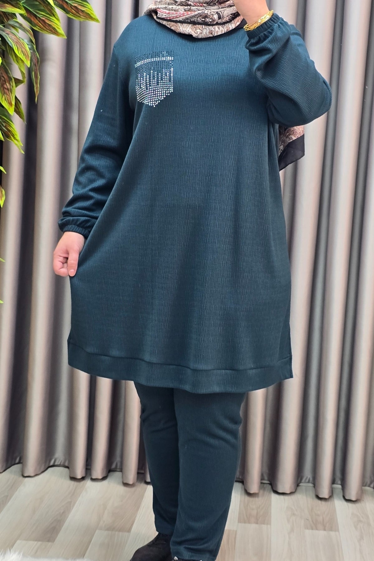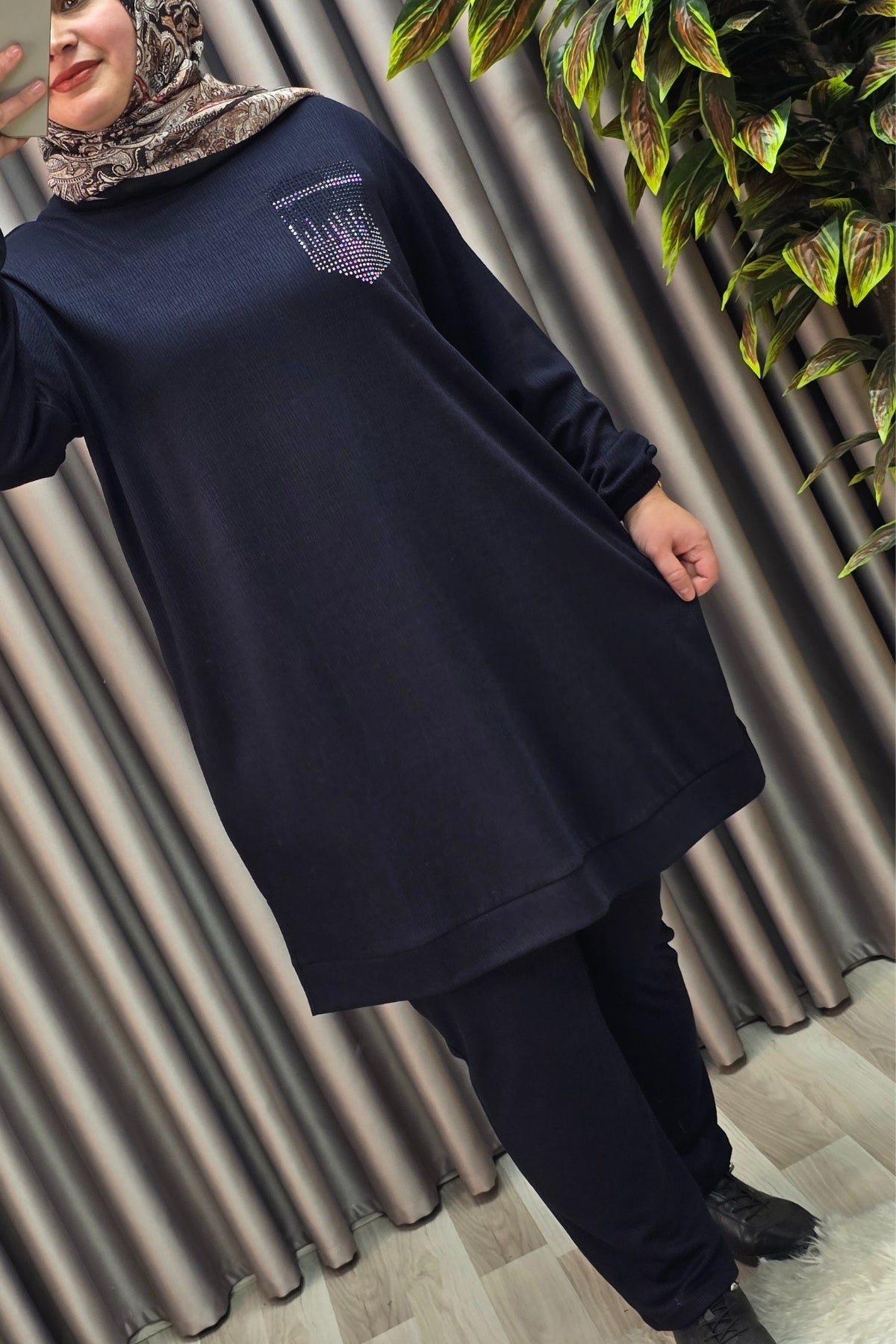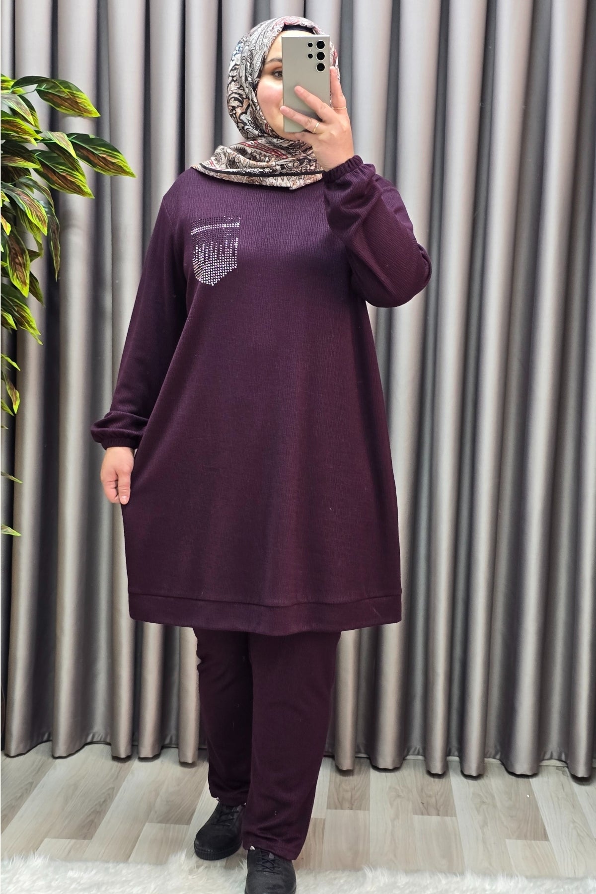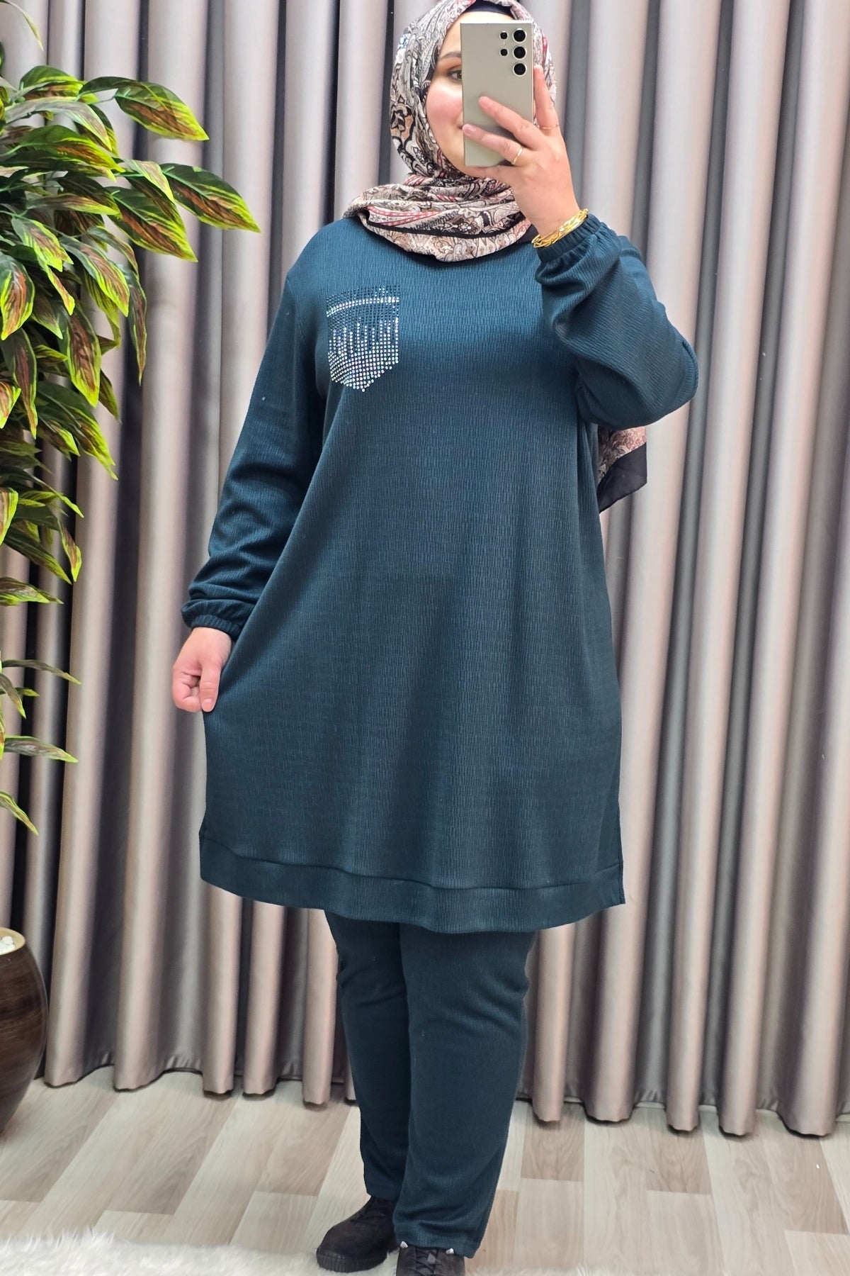 Kadın Tesettür Giyim Büyük Beden Cebi Taş İşlmeli İkili Takım