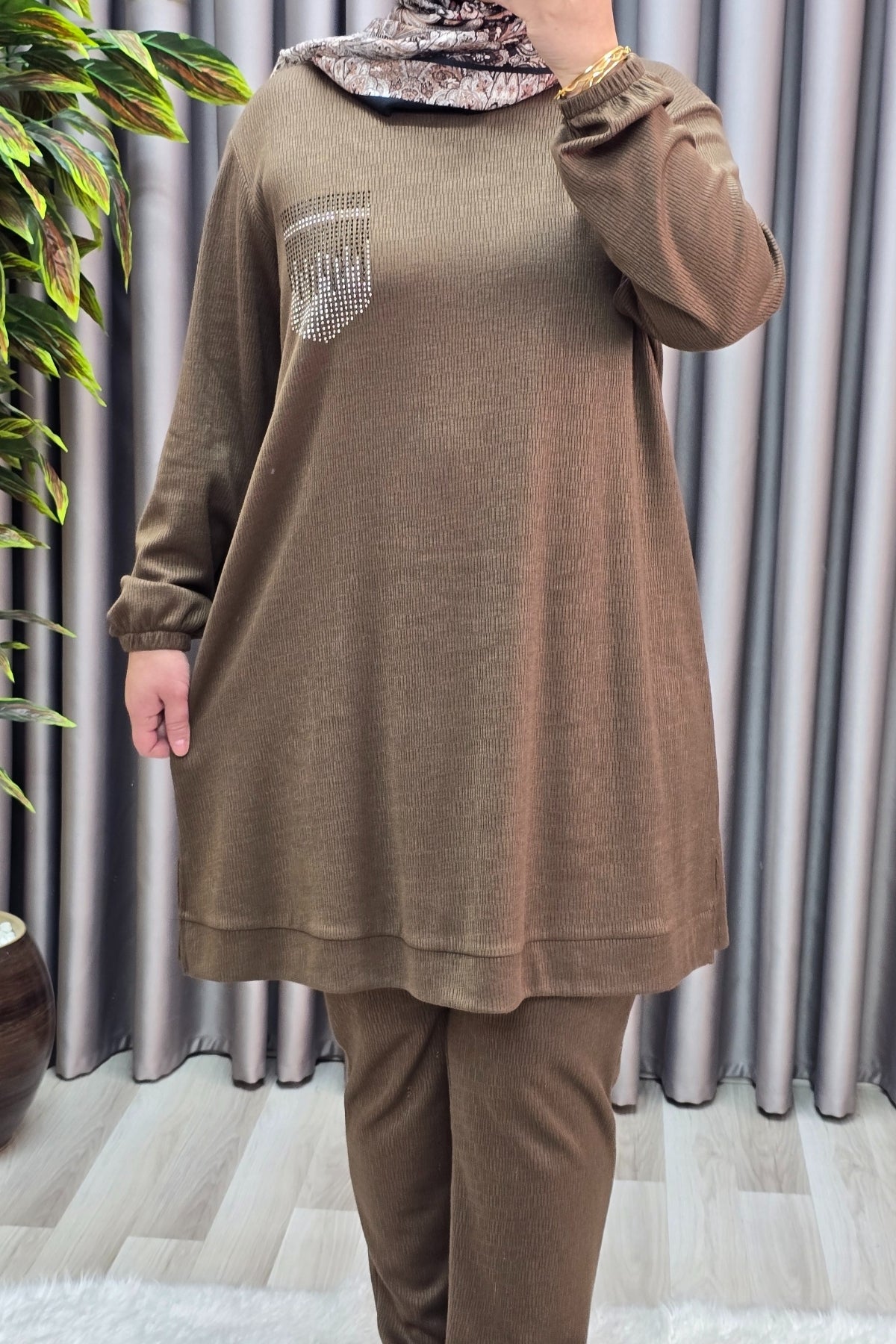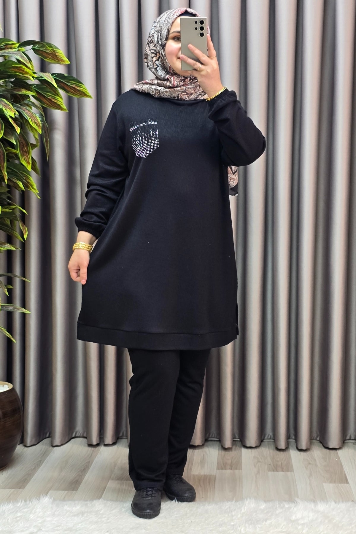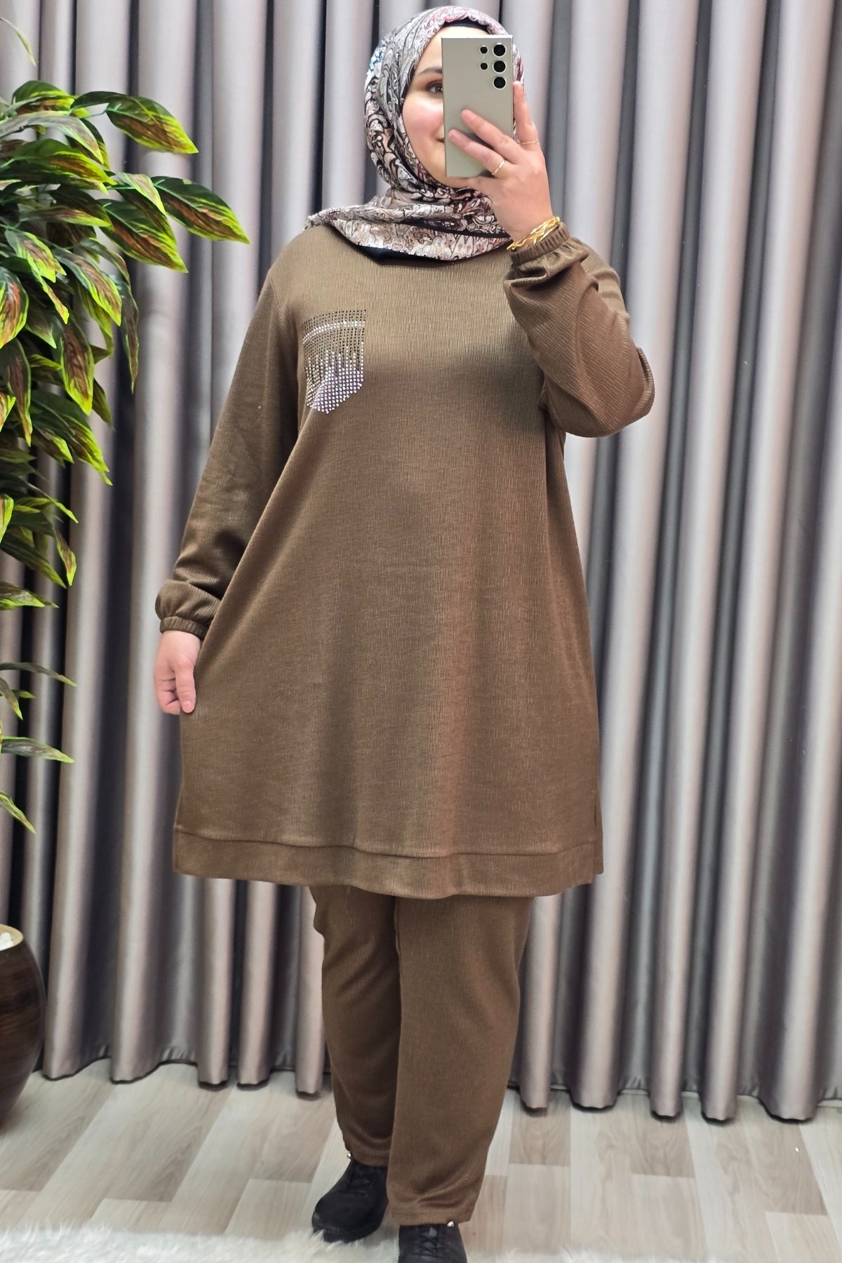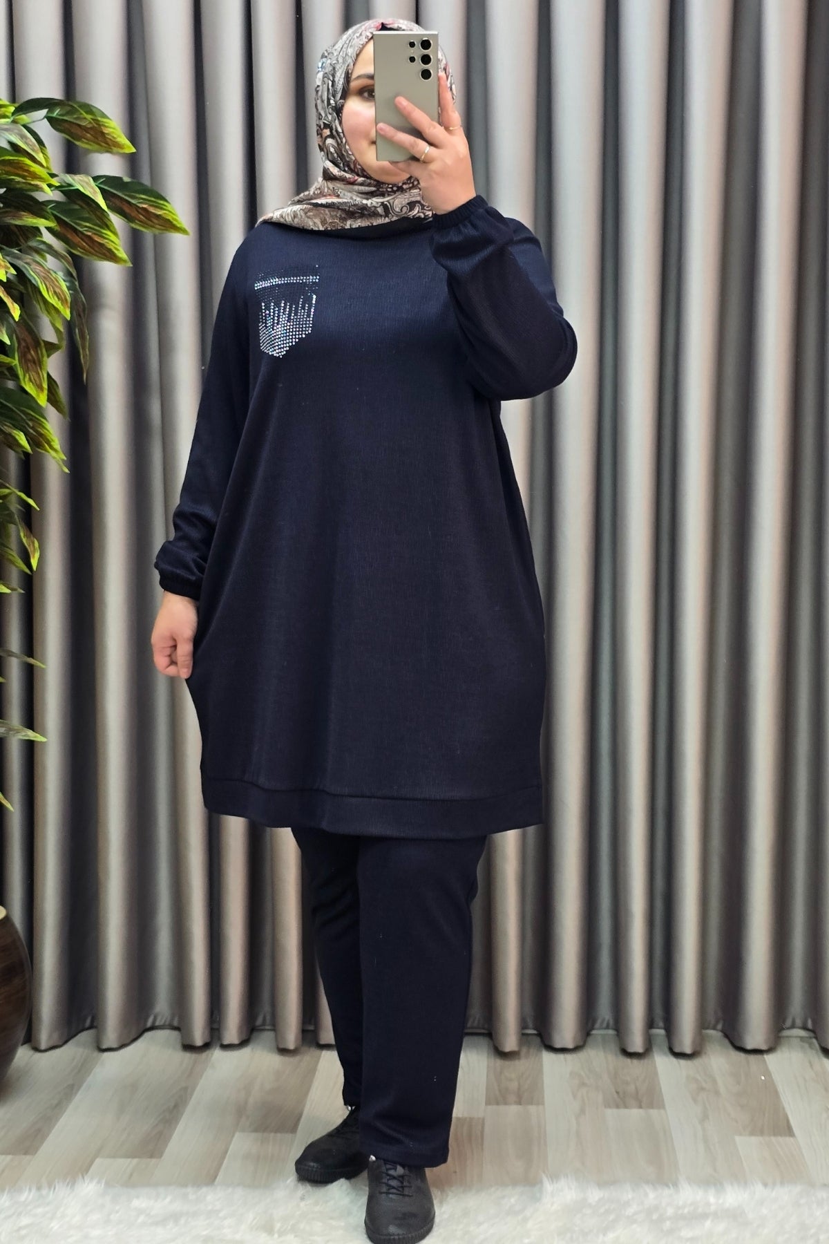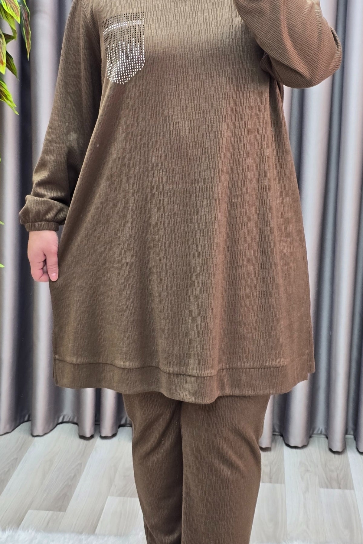 Kadın Tesettür Giyim Büyük Beden Cebi Taş İşlmeli İkili Takım