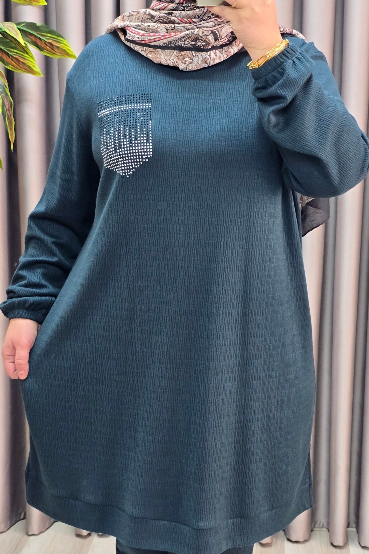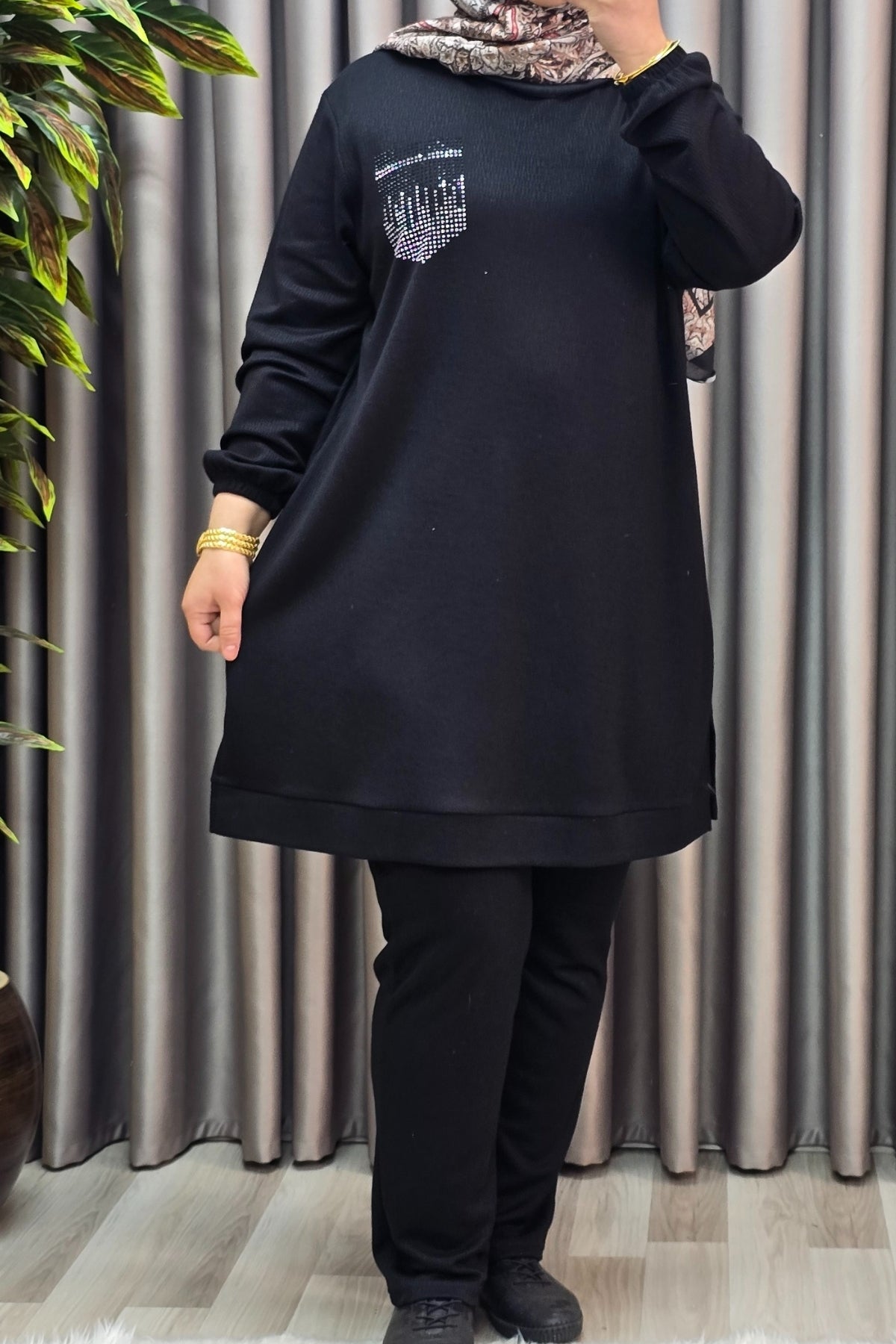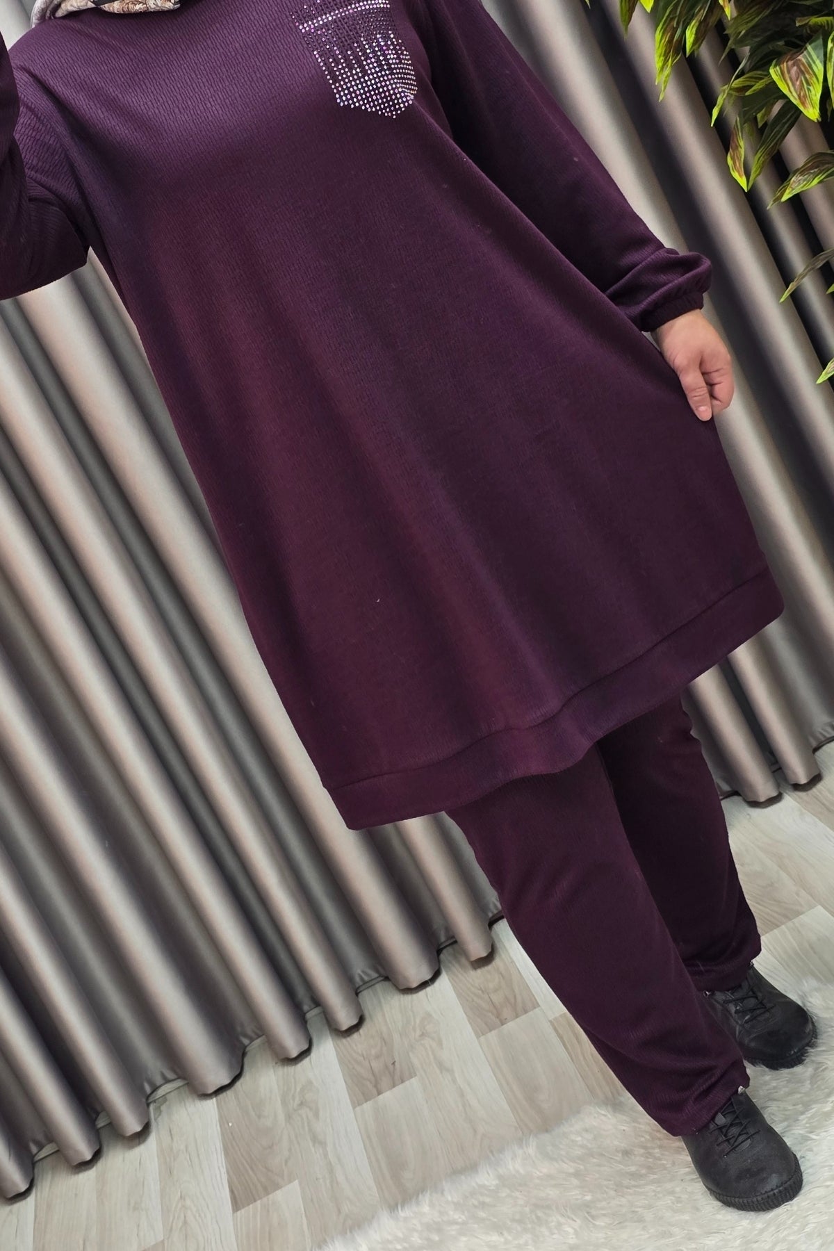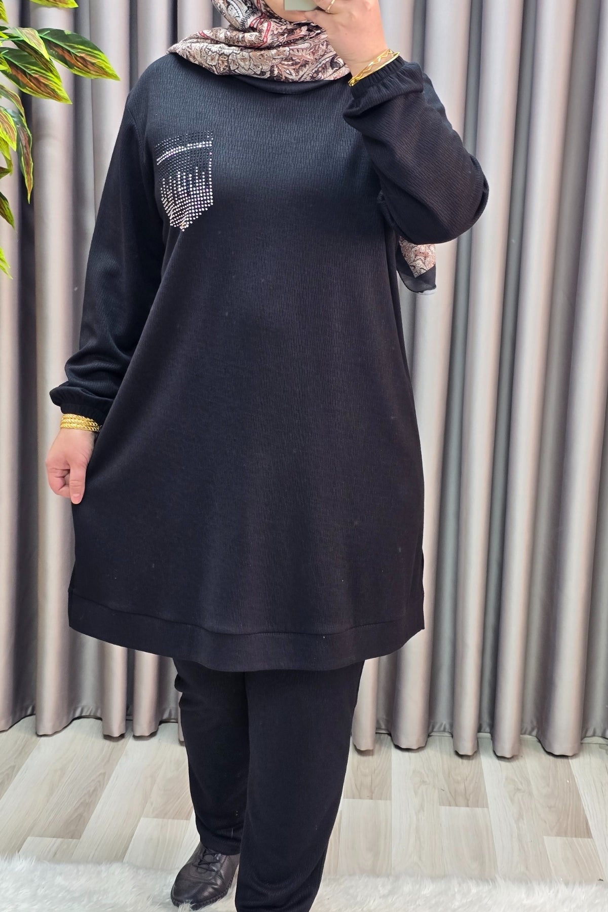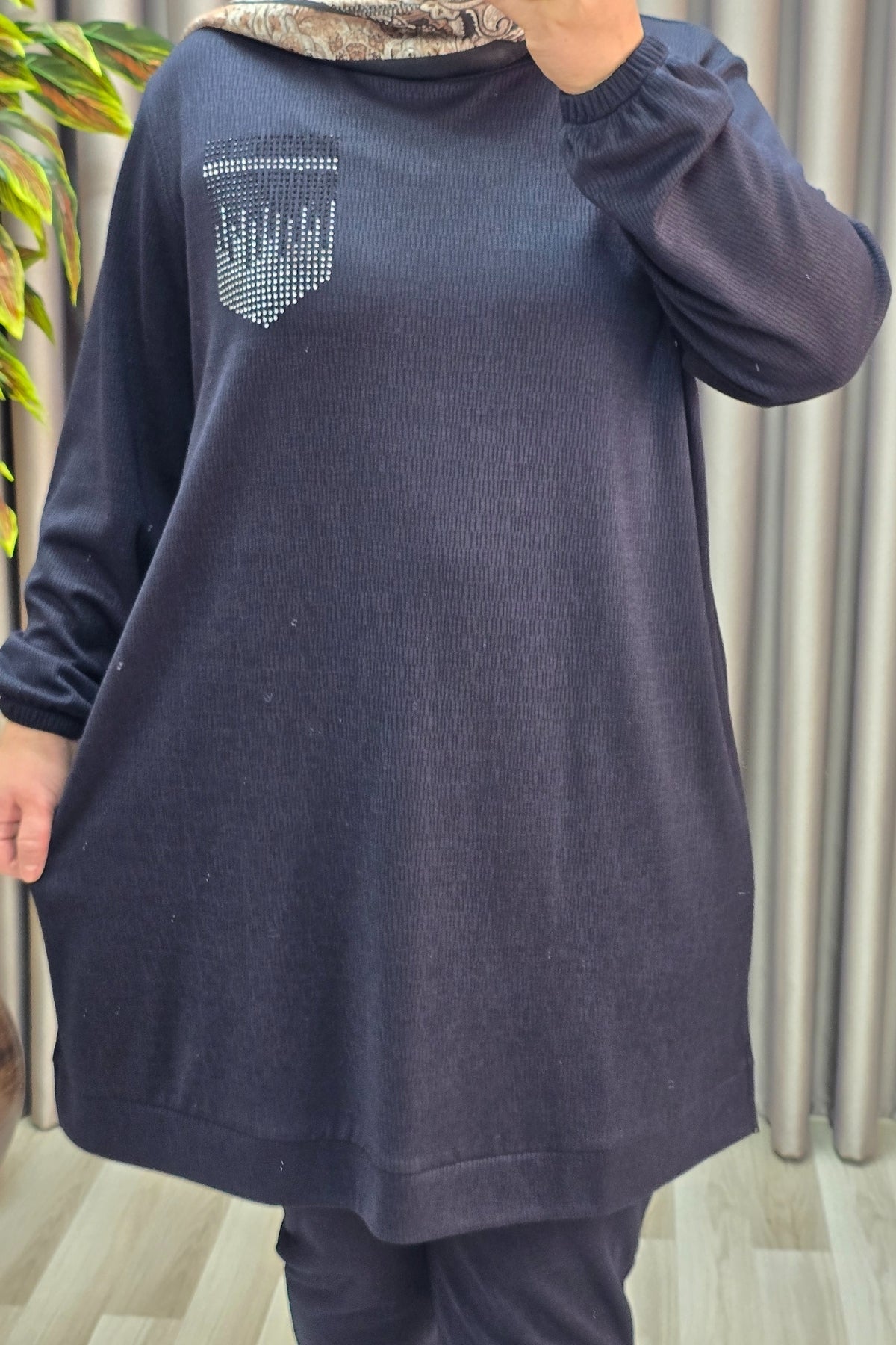 Kadın Tesettür Giyim Büyük Beden Cebi Taş İşlmeli İkili Takım
