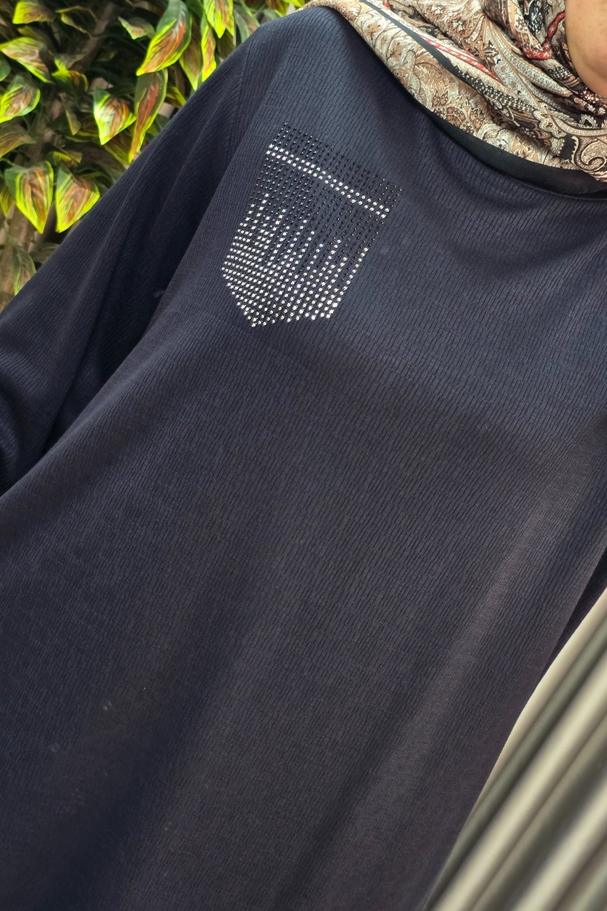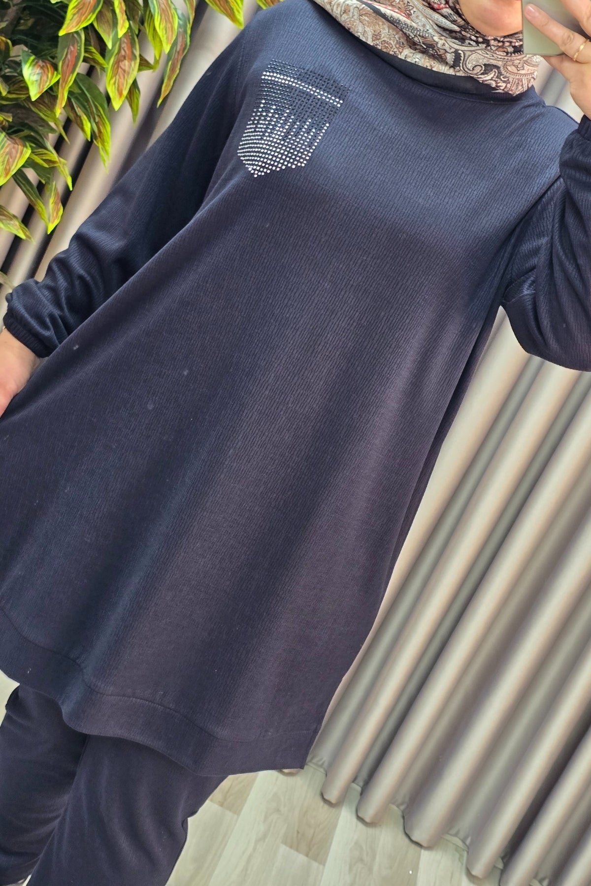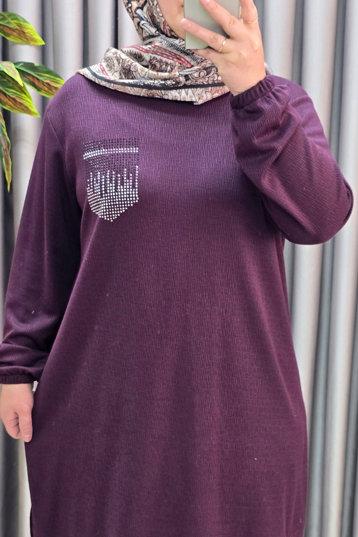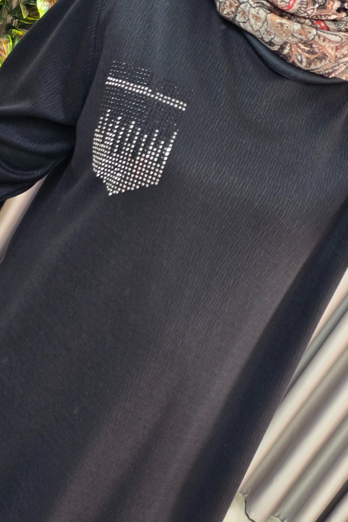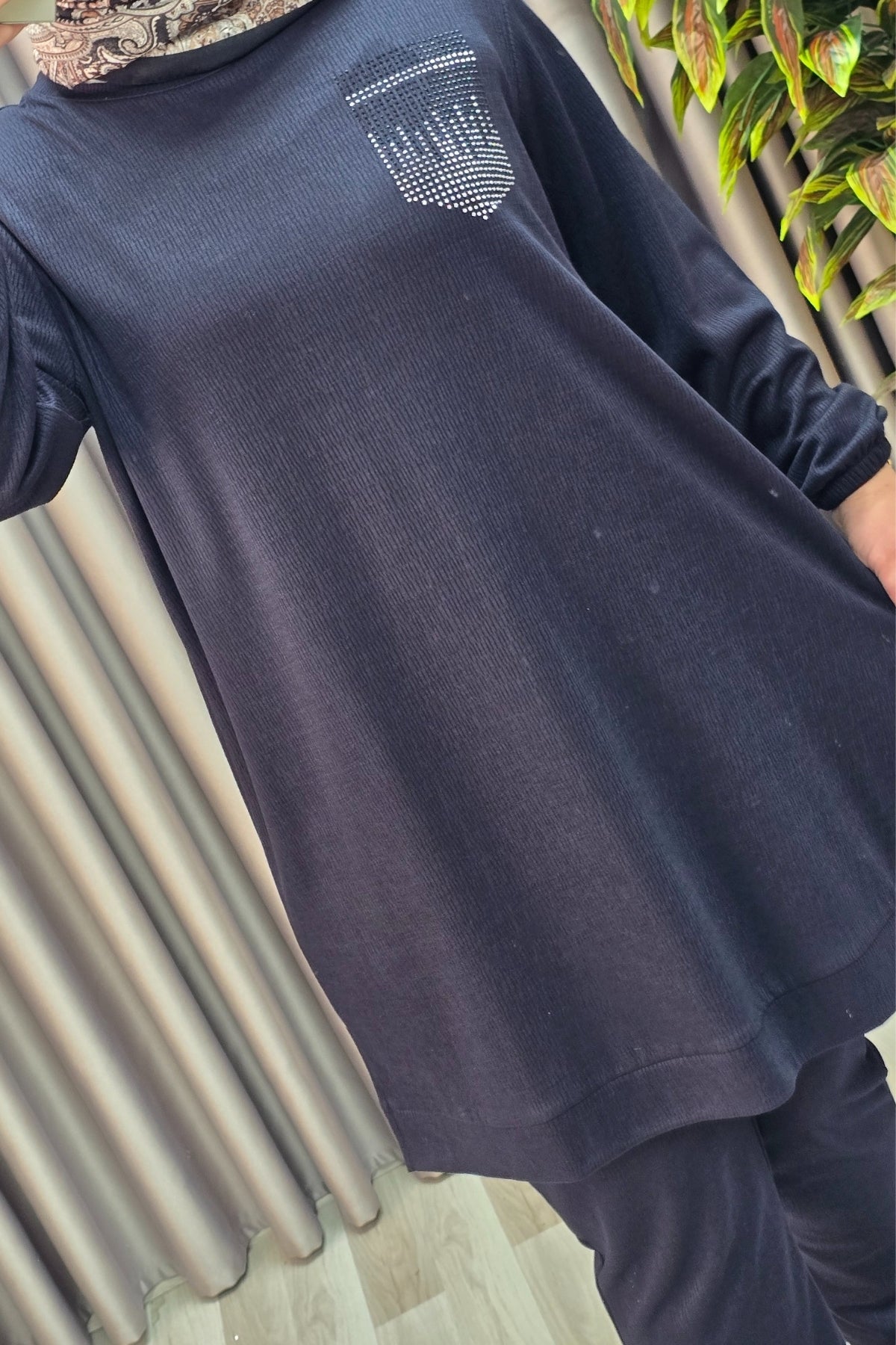 Kadın Tesettür Giyim Büyük Beden Cebi Taş İşlmeli İkili Takım
