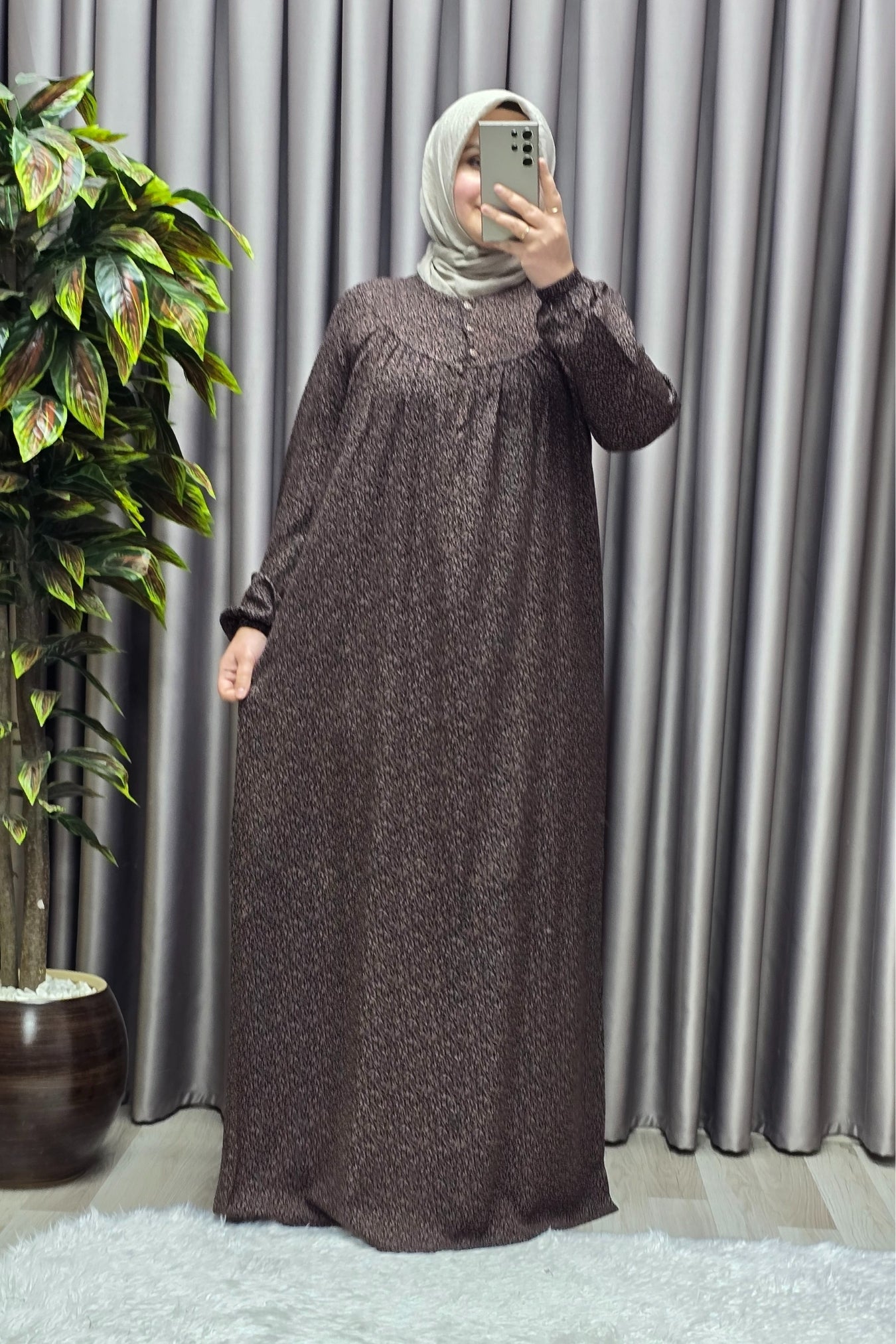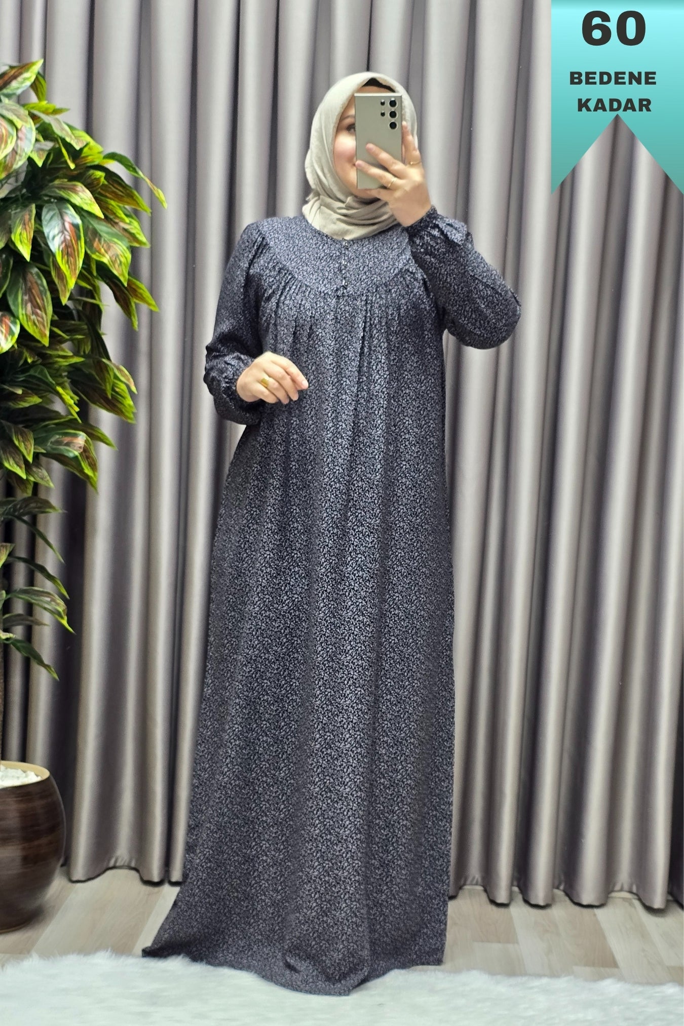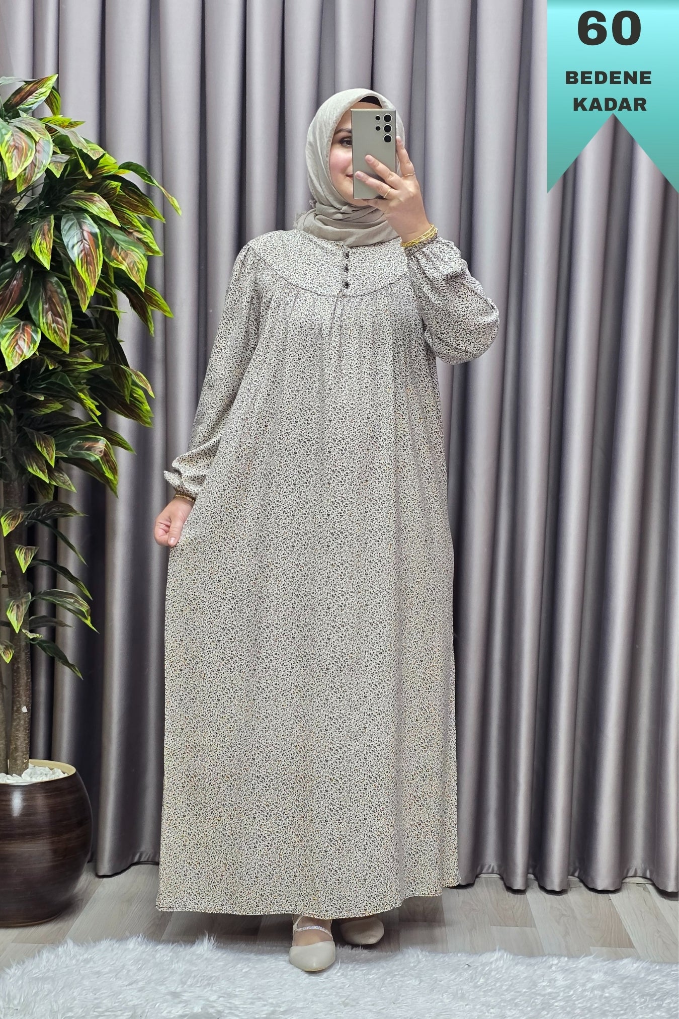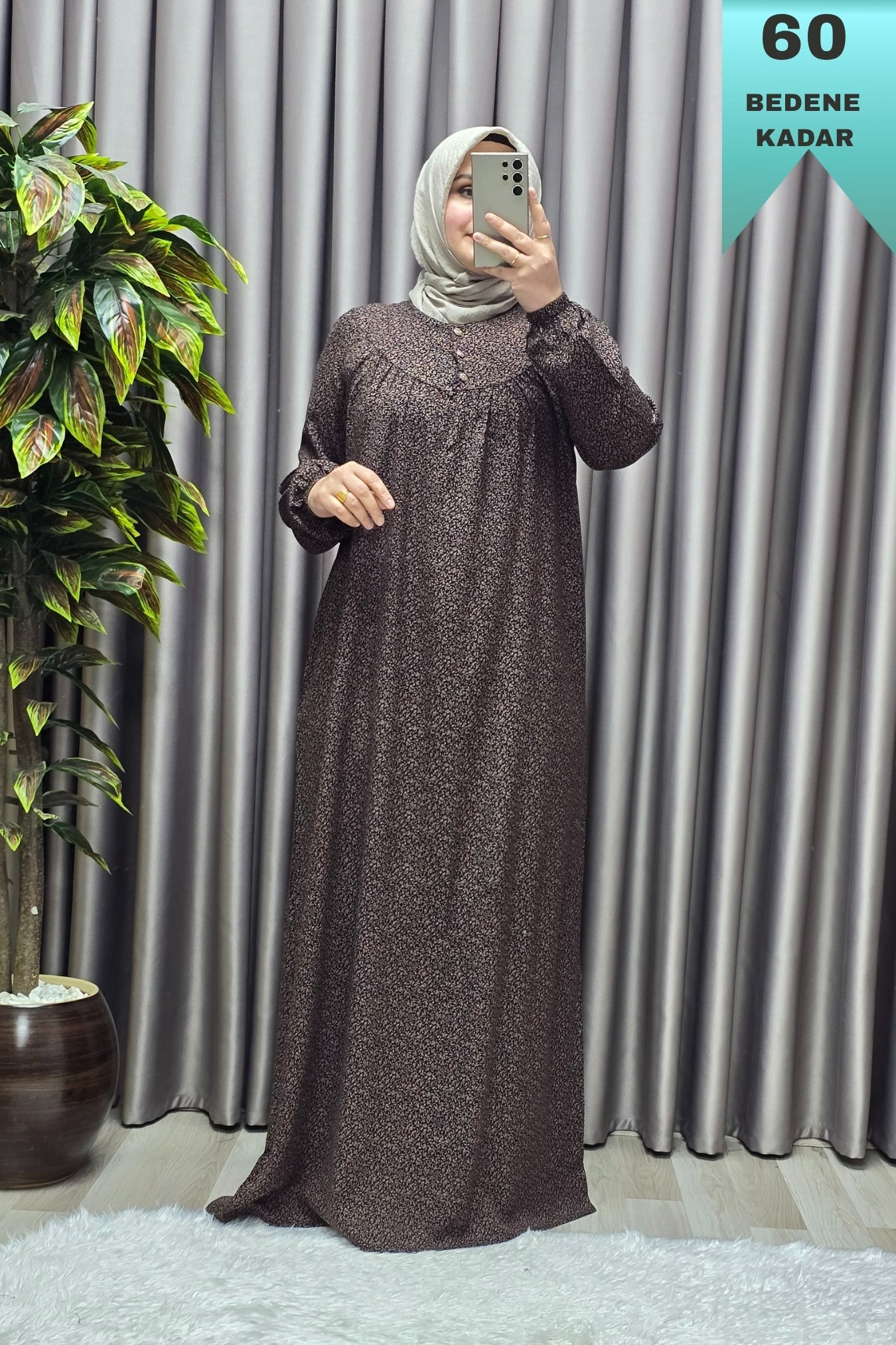 Kadın Tesettür Giyim Büyük Beden Çıtır Desen Tam Robalı Elbise