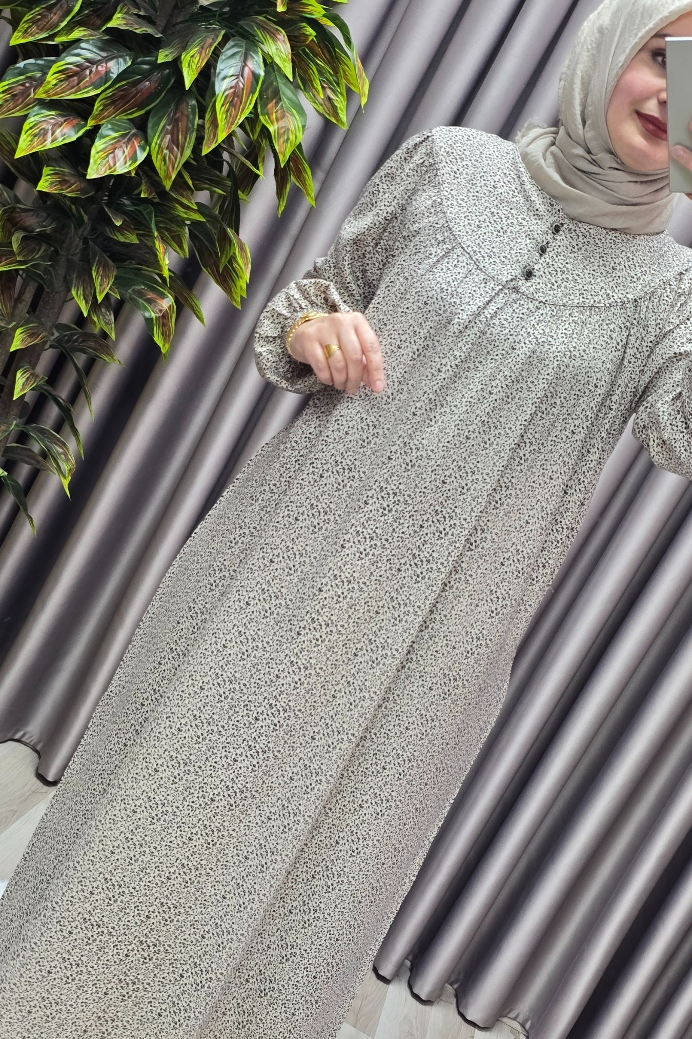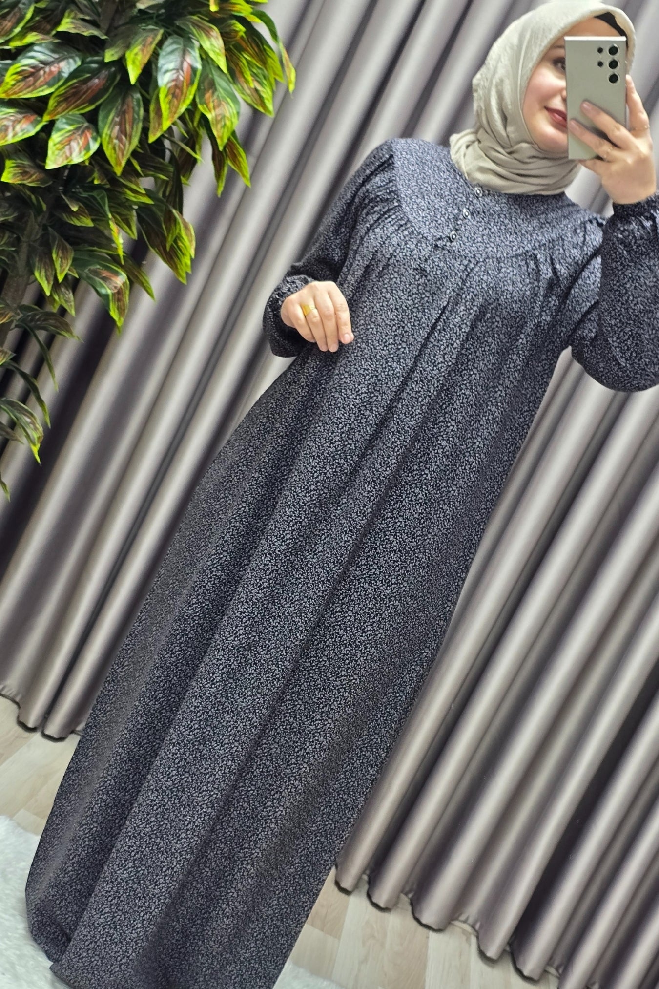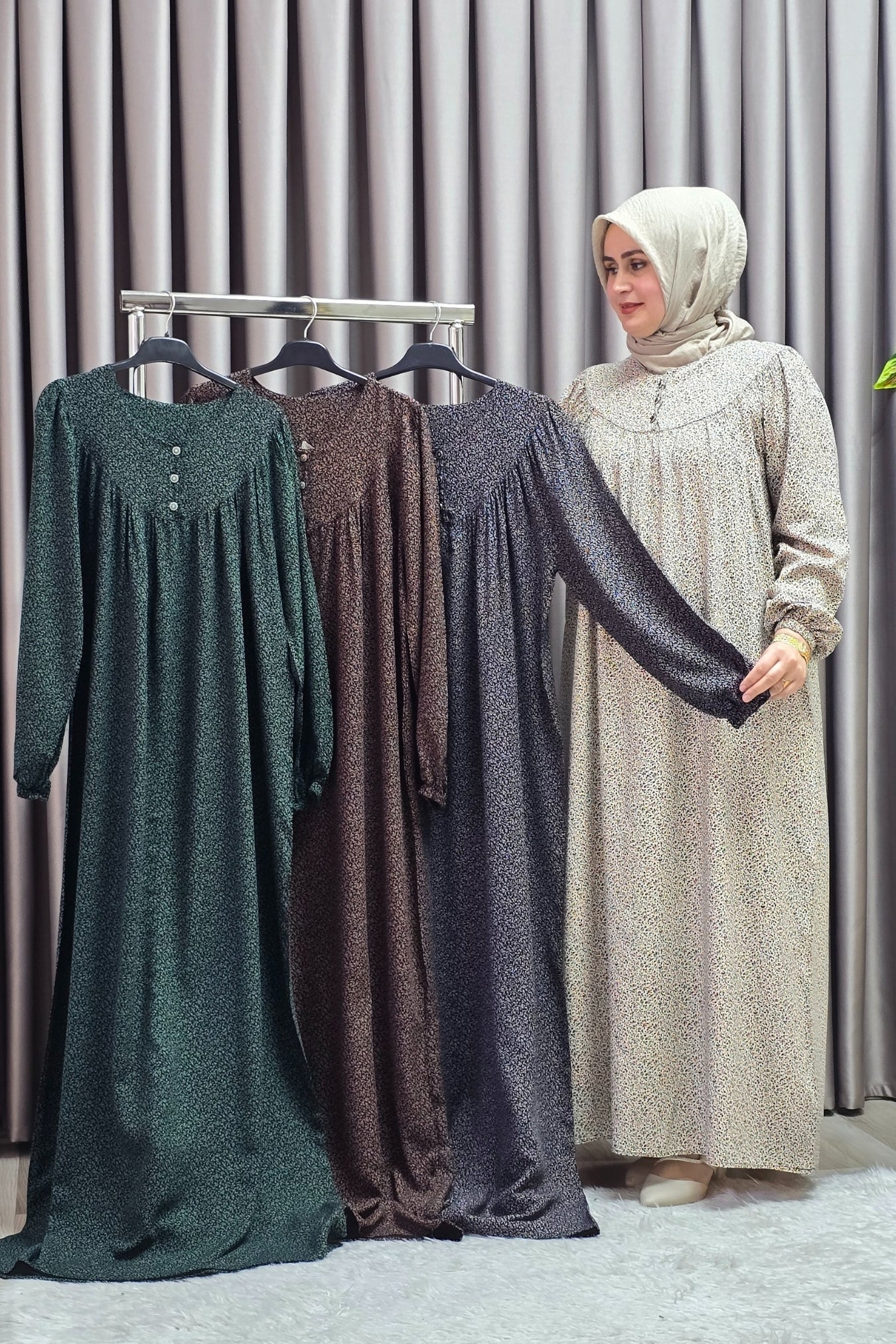 Kadın Tesettür Giyim Büyük Beden Çıtır Desen Tam Robalı Elbise