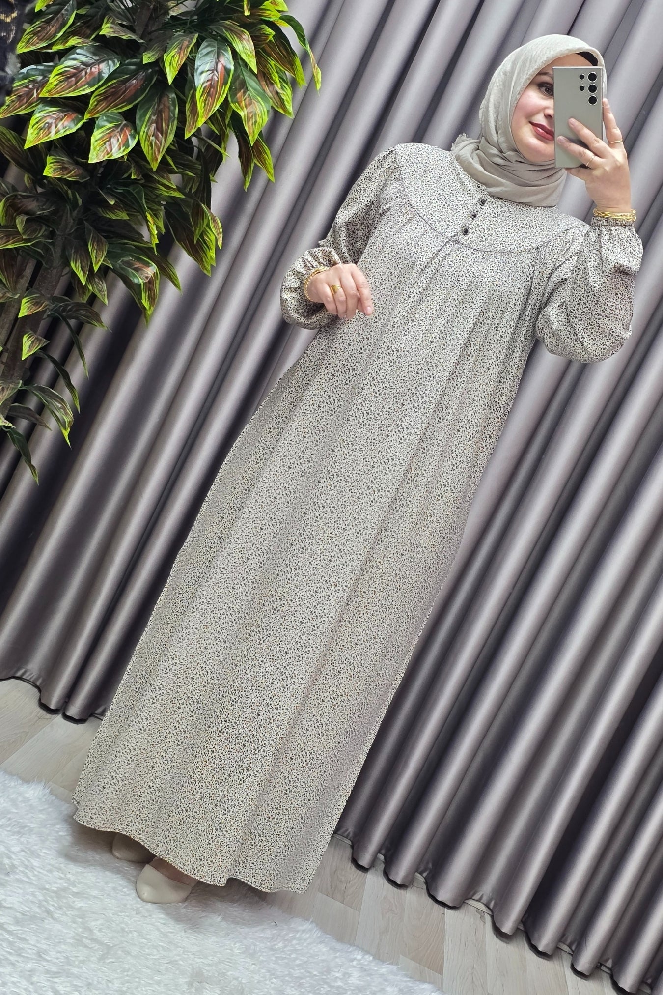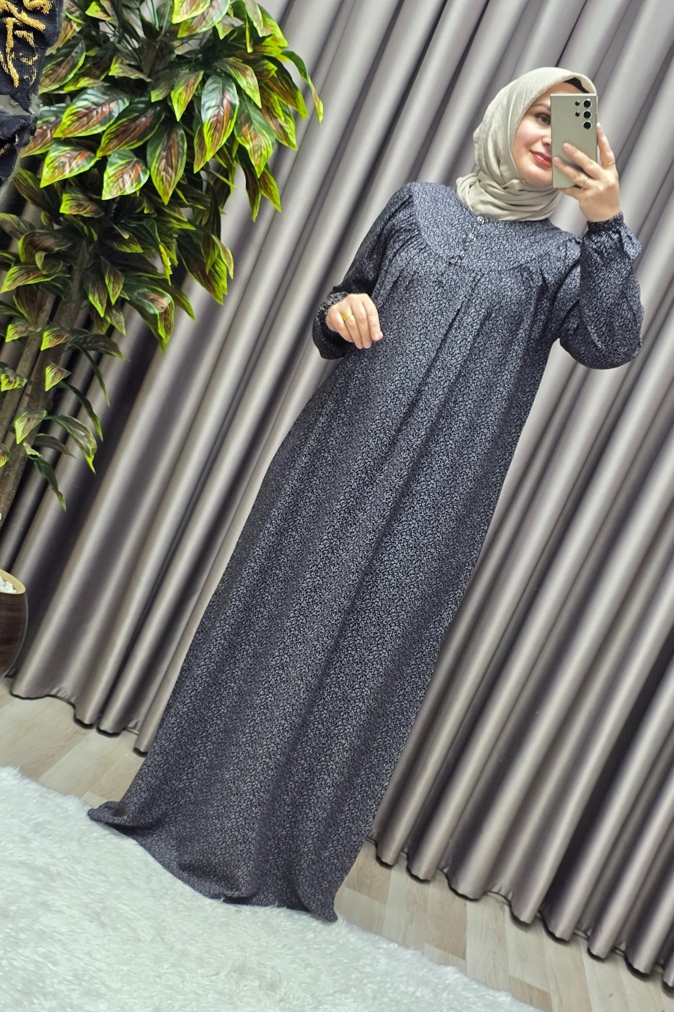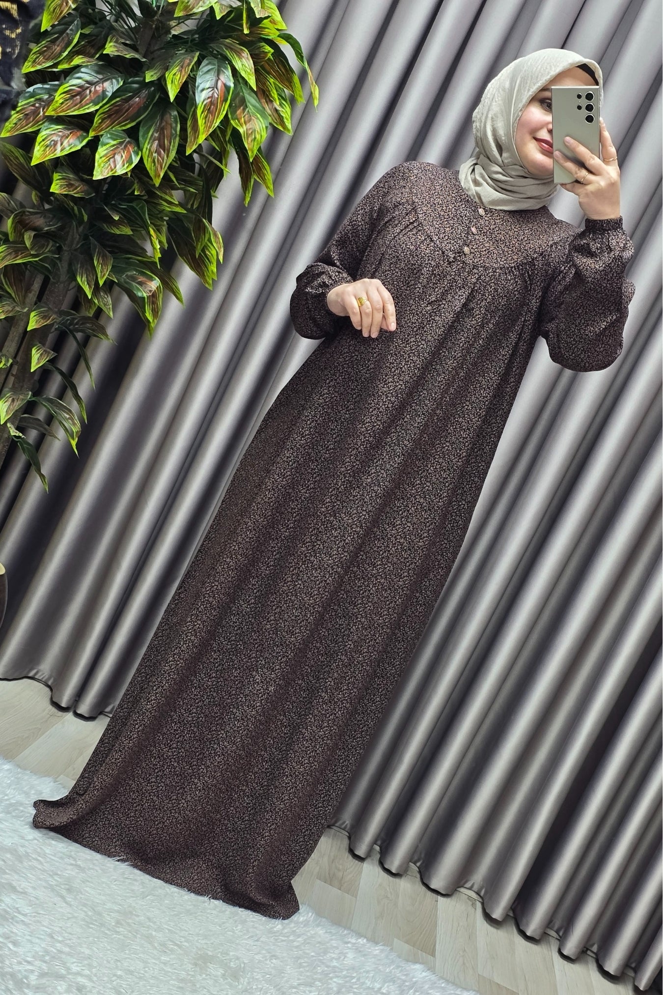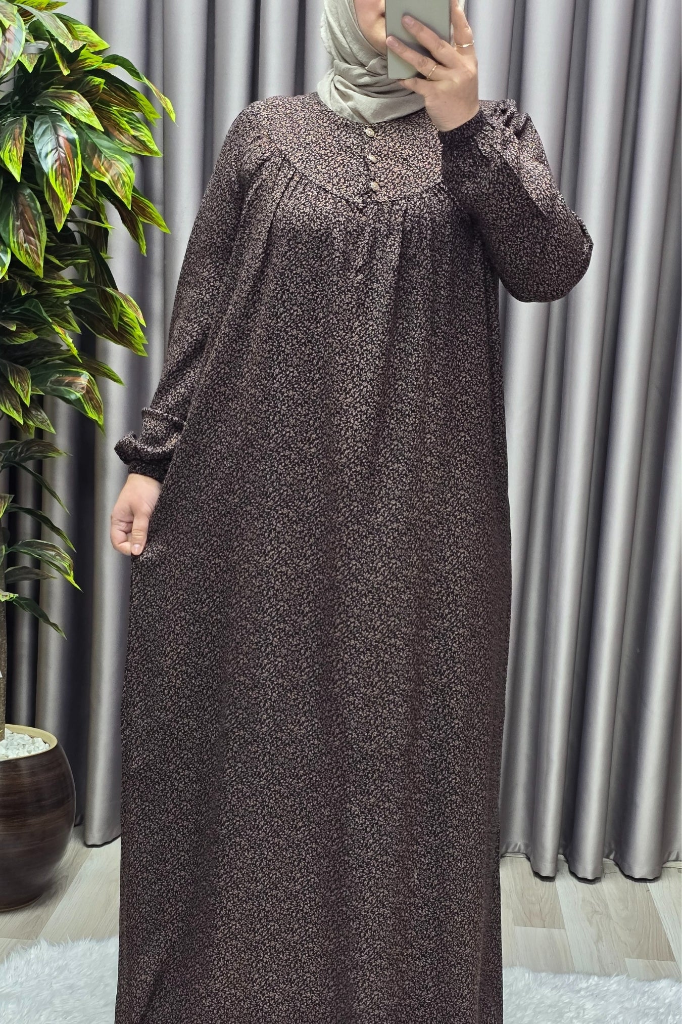 Kadın Tesettür Giyim Büyük Beden Çıtır Desen Tam Robalı Elbise