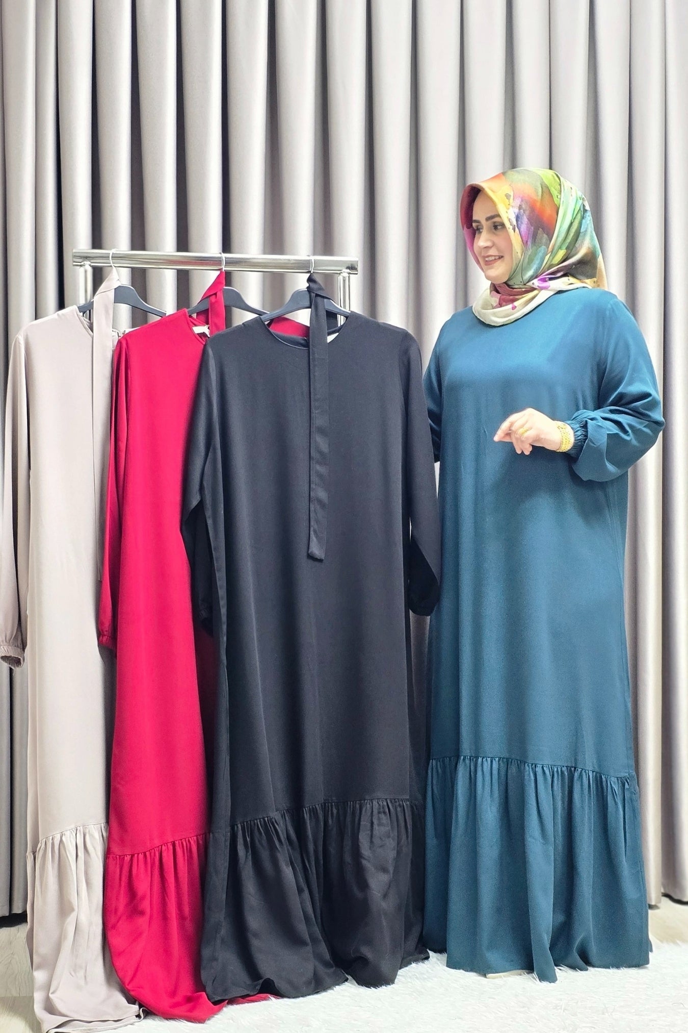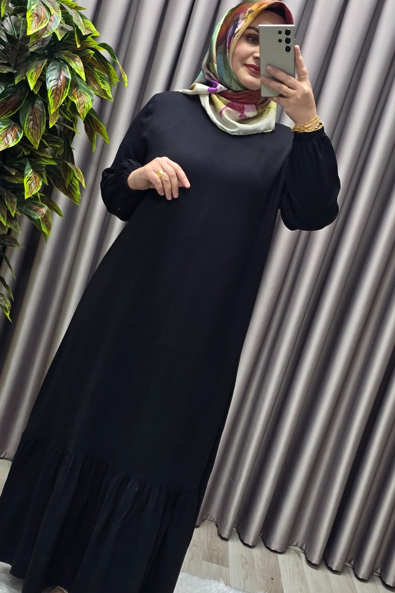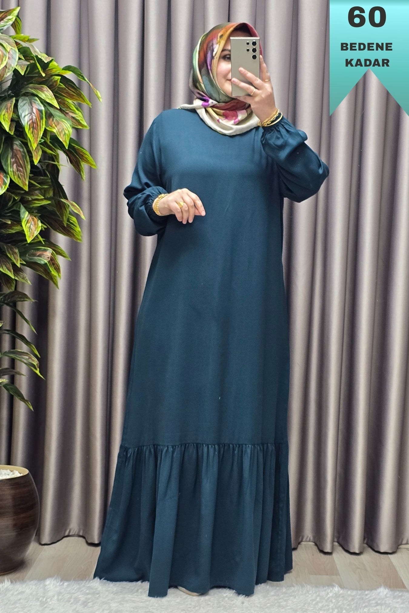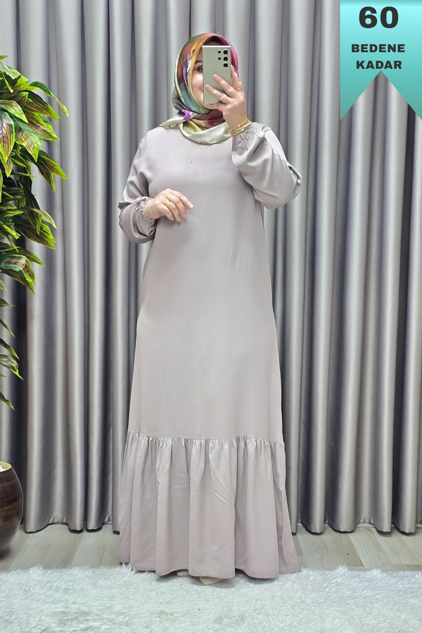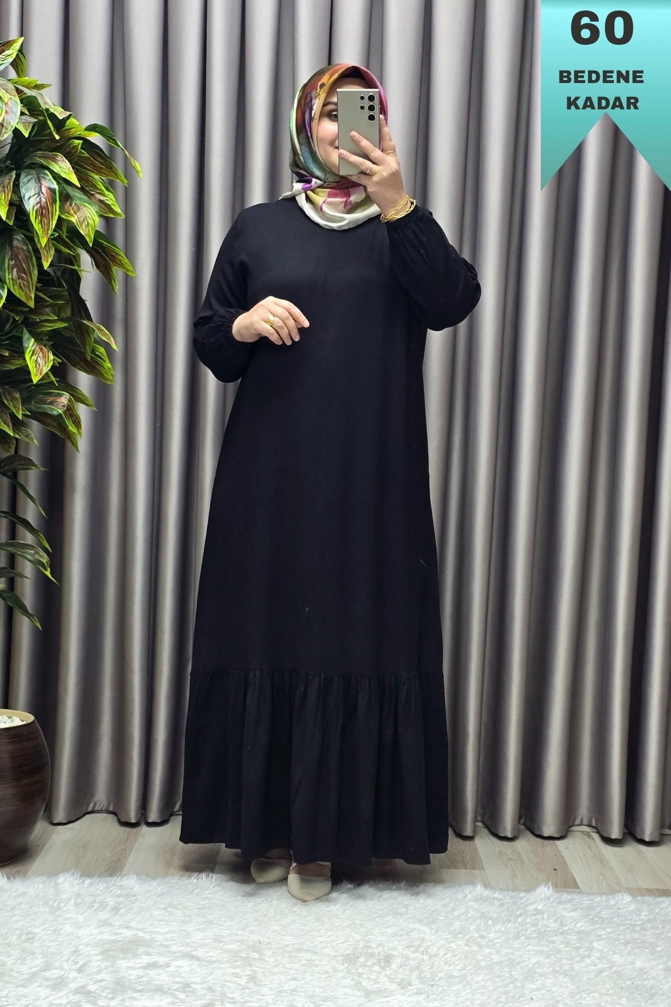 Kadın Tesettür Giyim Büyük Beden Düz Fırfırlı Elbise