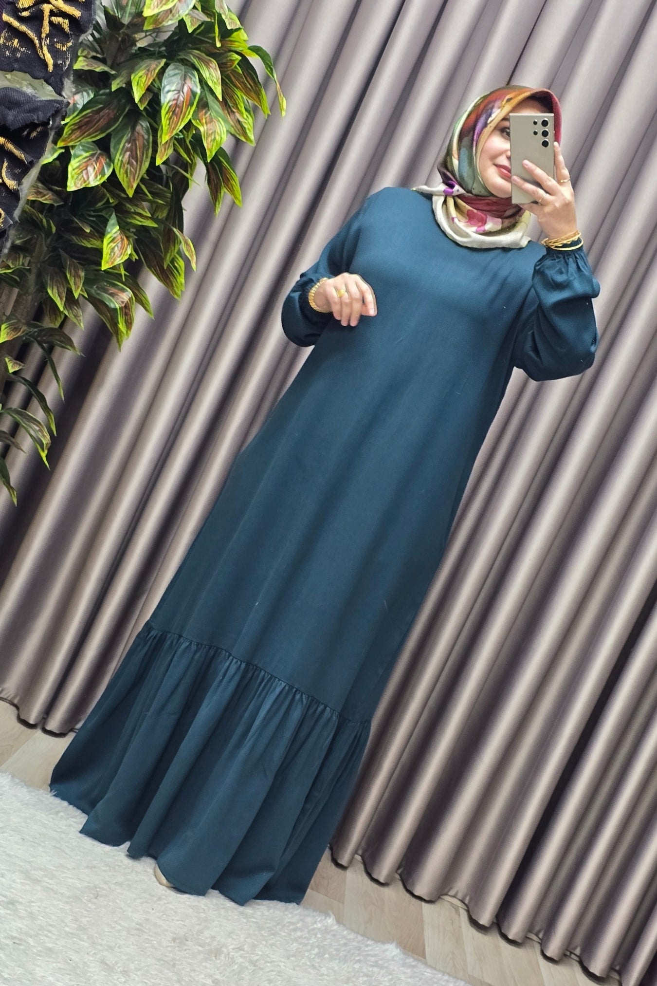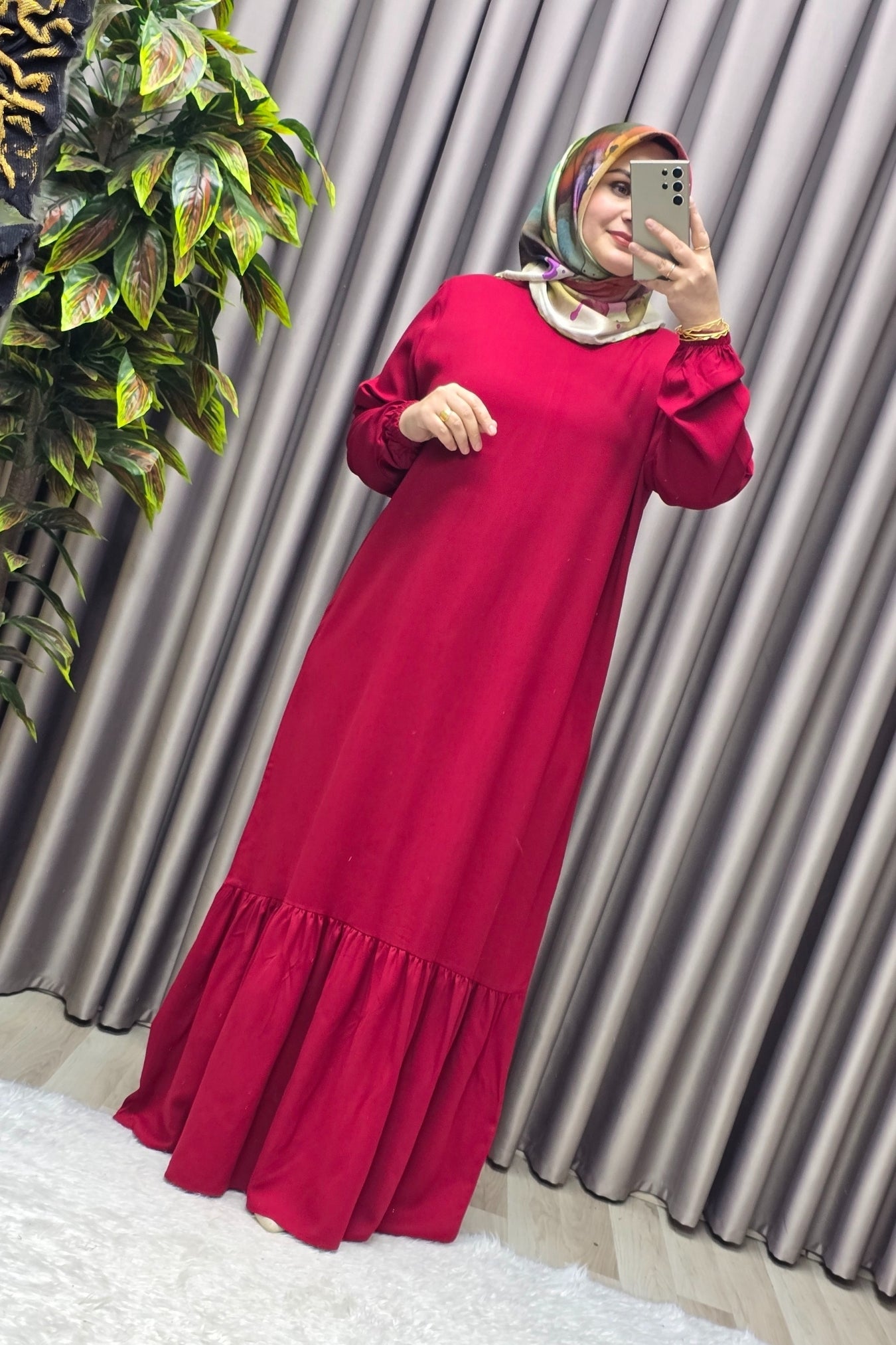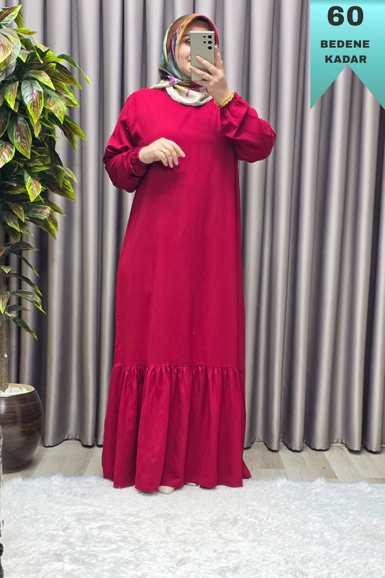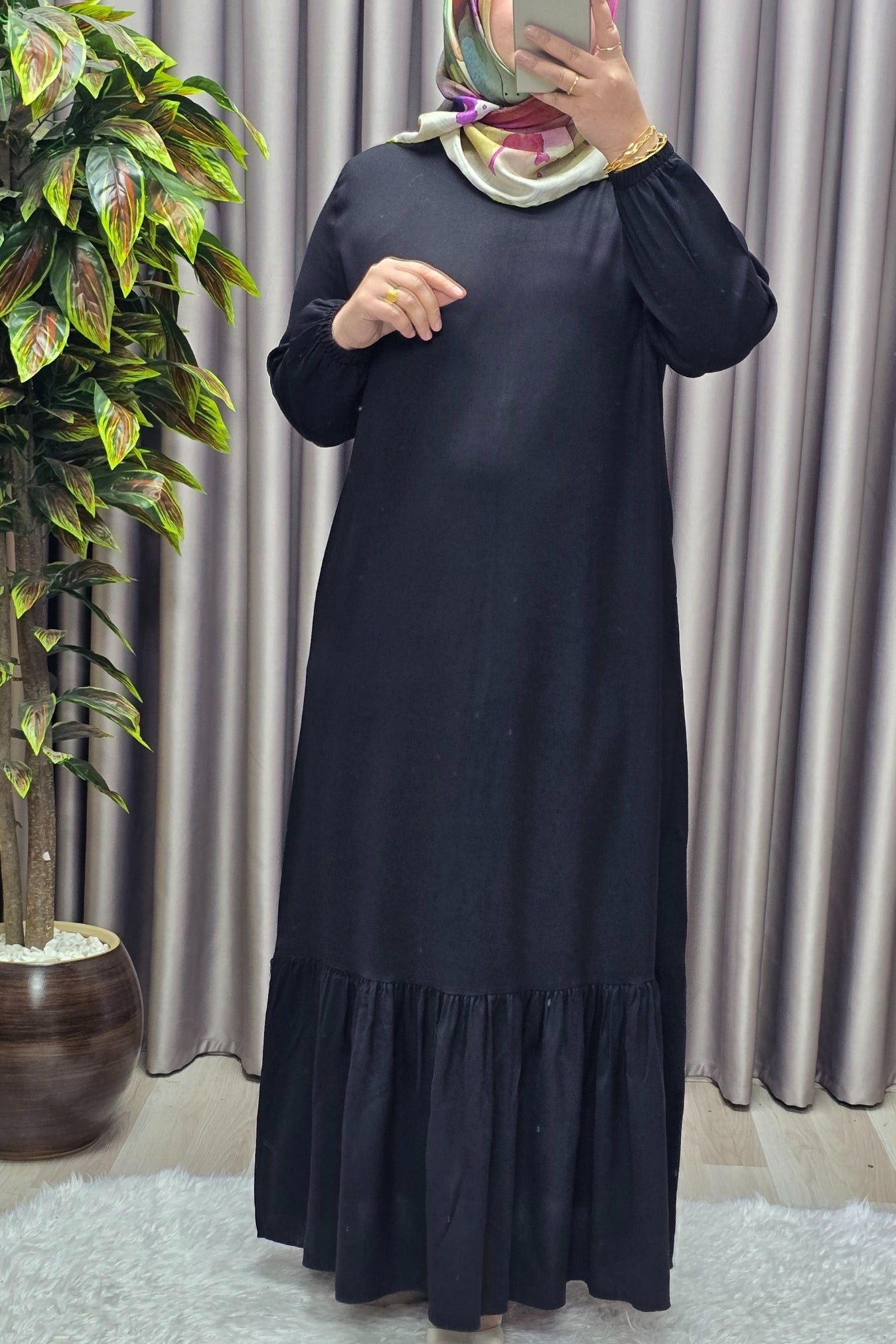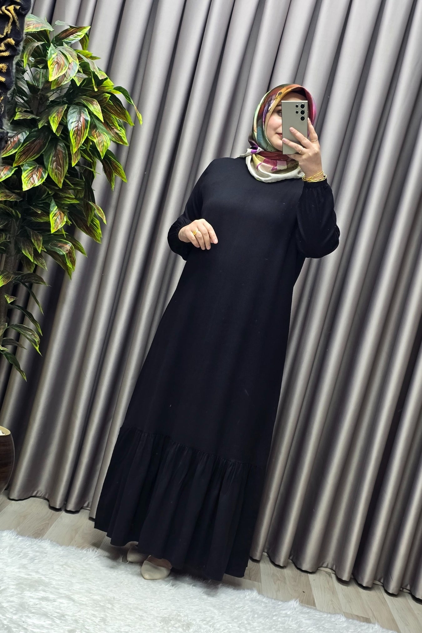 Kadın Tesettür Giyim Büyük Beden Düz Fırfırlı Elbise
