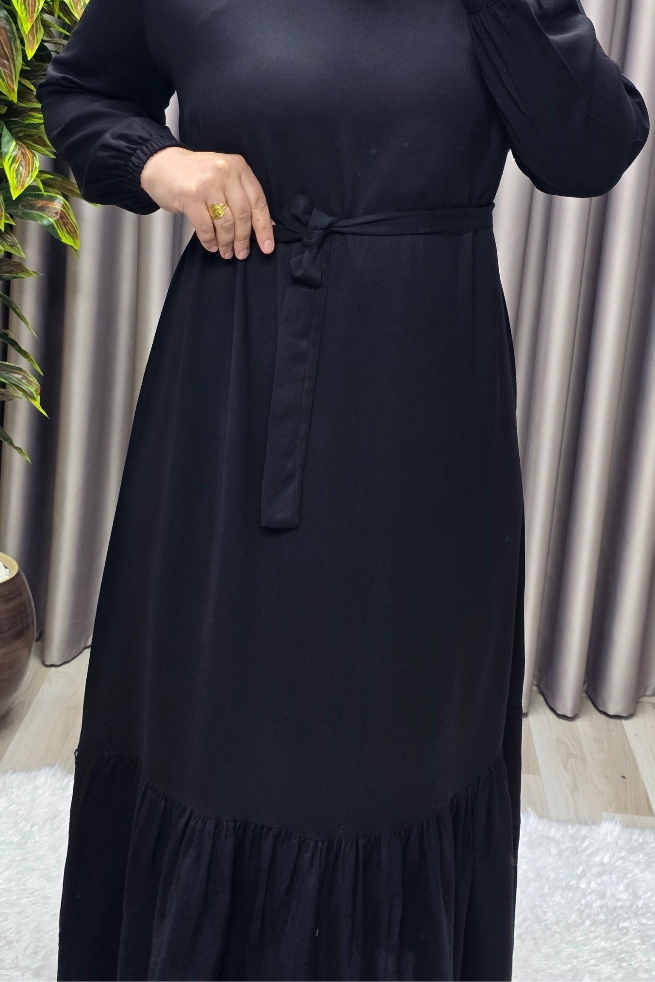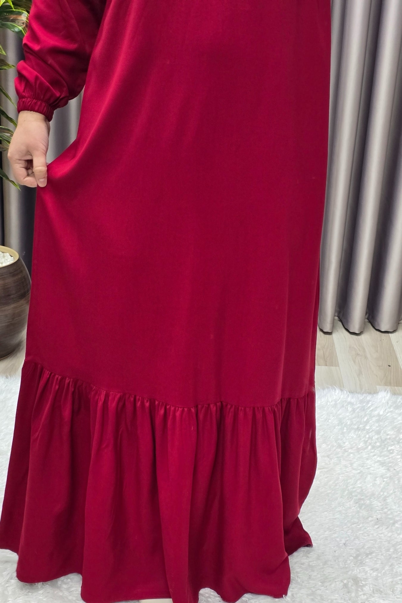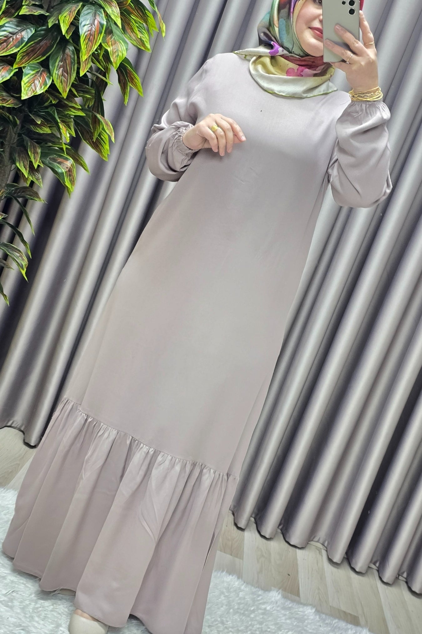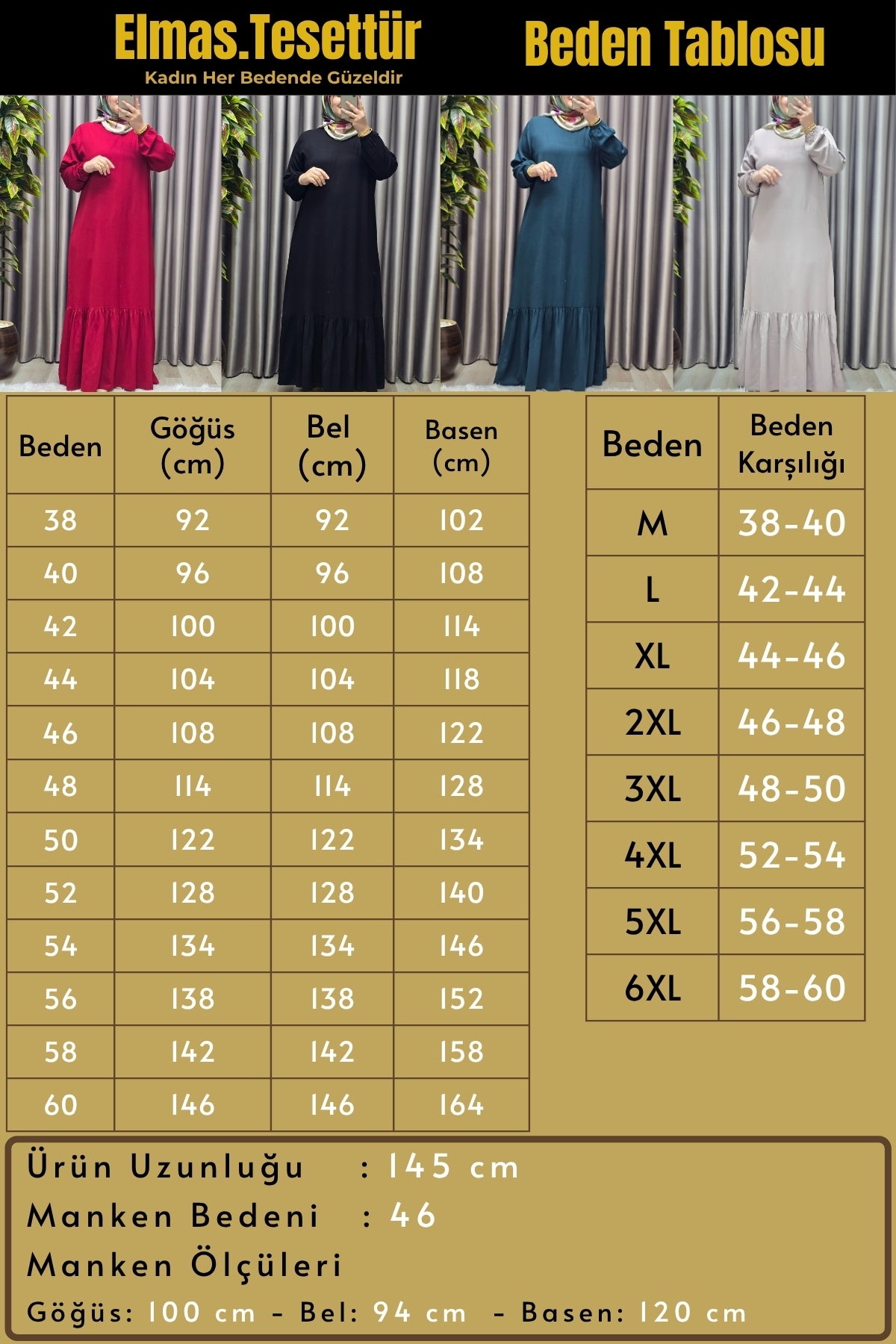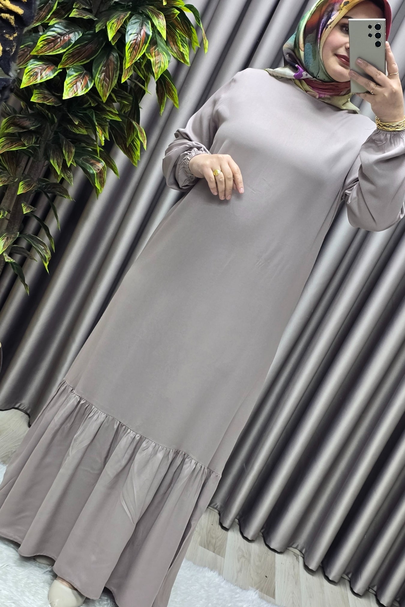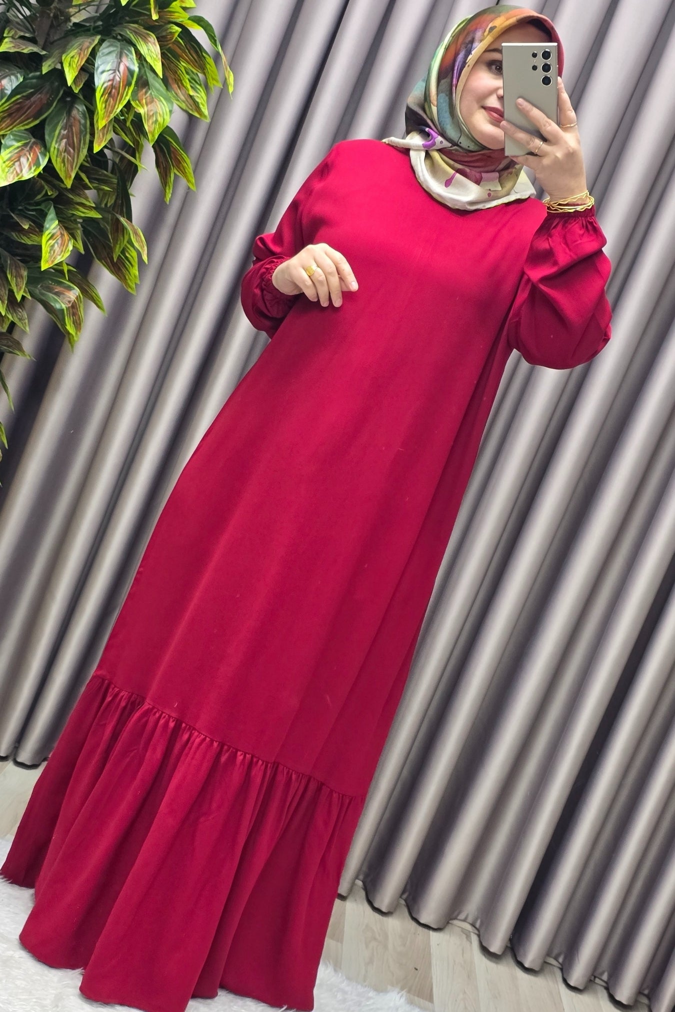 Kadın Tesettür Giyim Büyük Beden Düz Fırfırlı Elbise