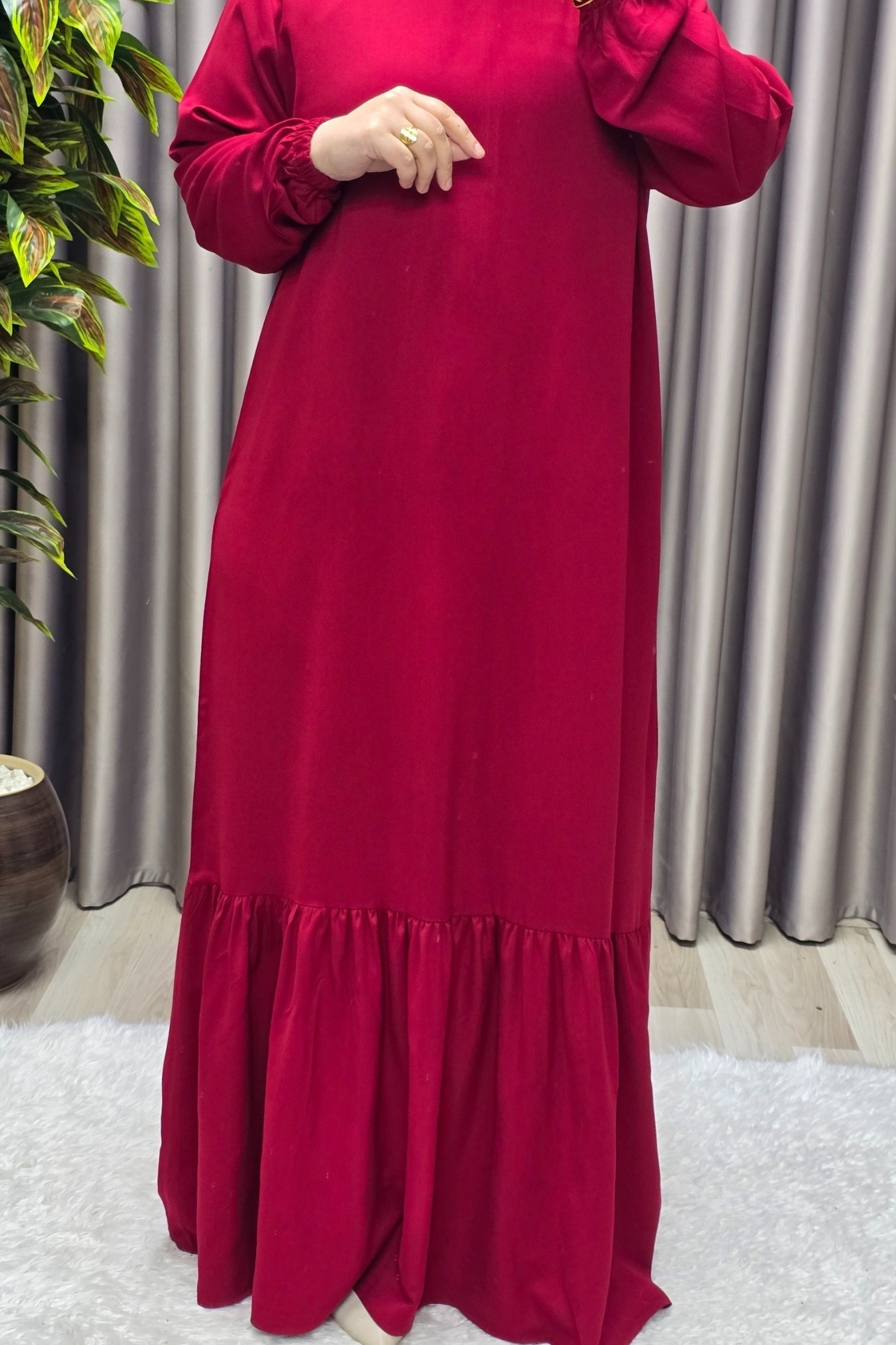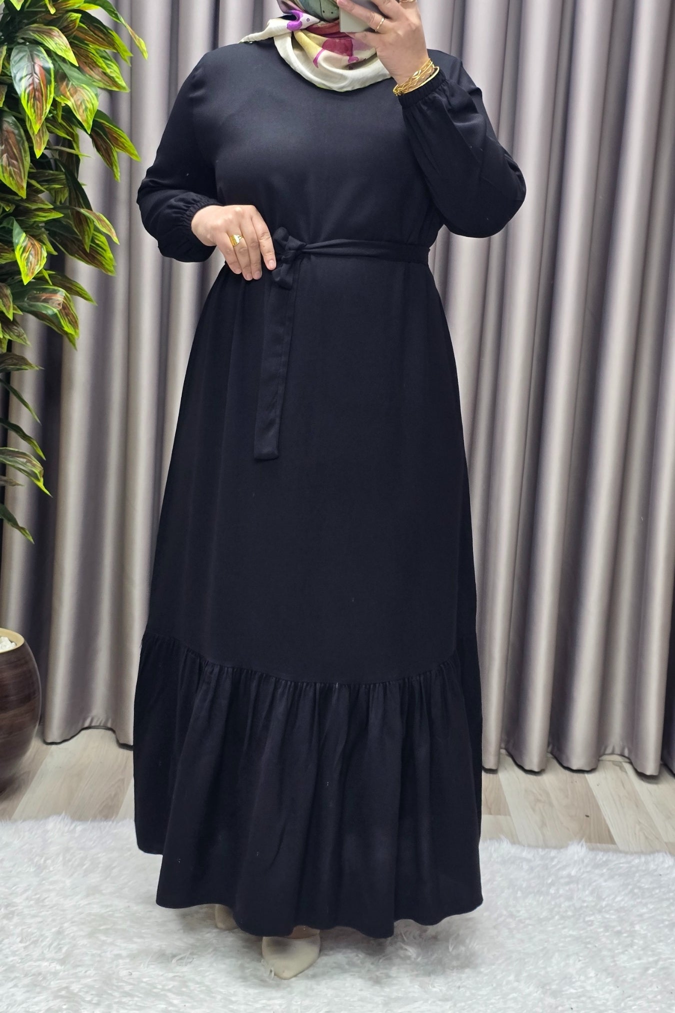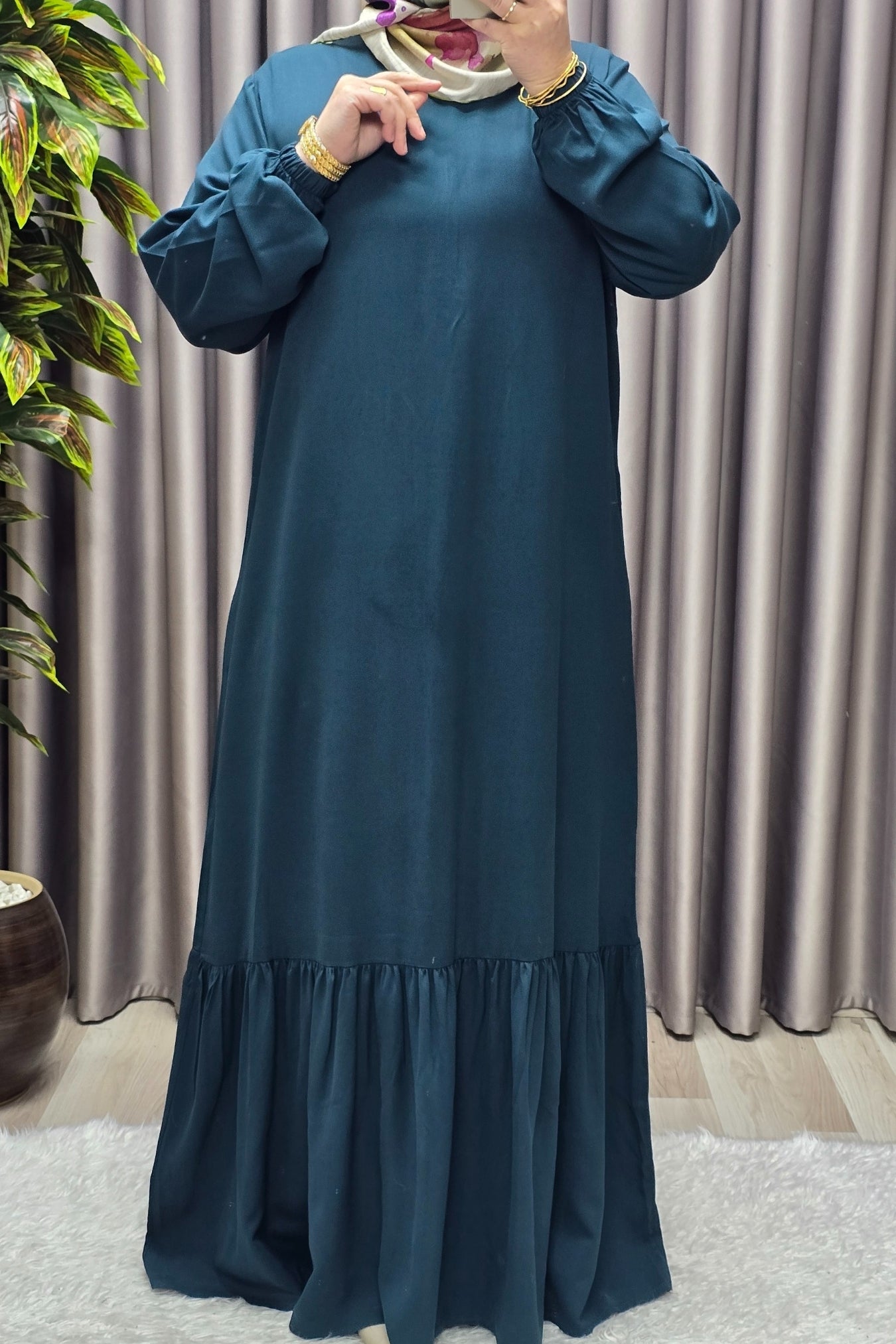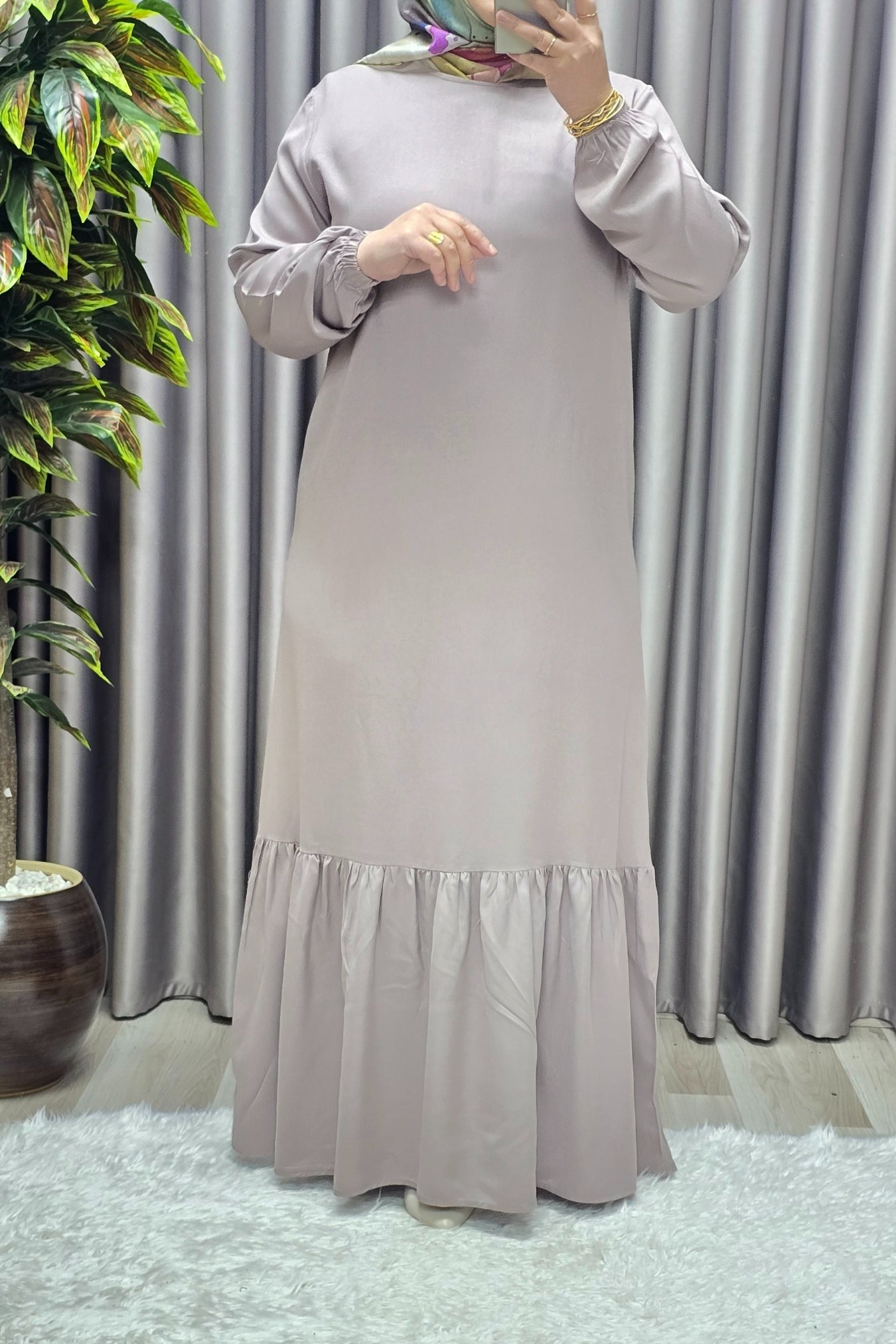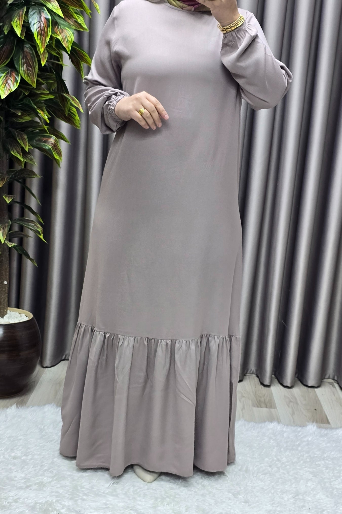 Kadın Tesettür Giyim Büyük Beden Düz Fırfırlı Elbise