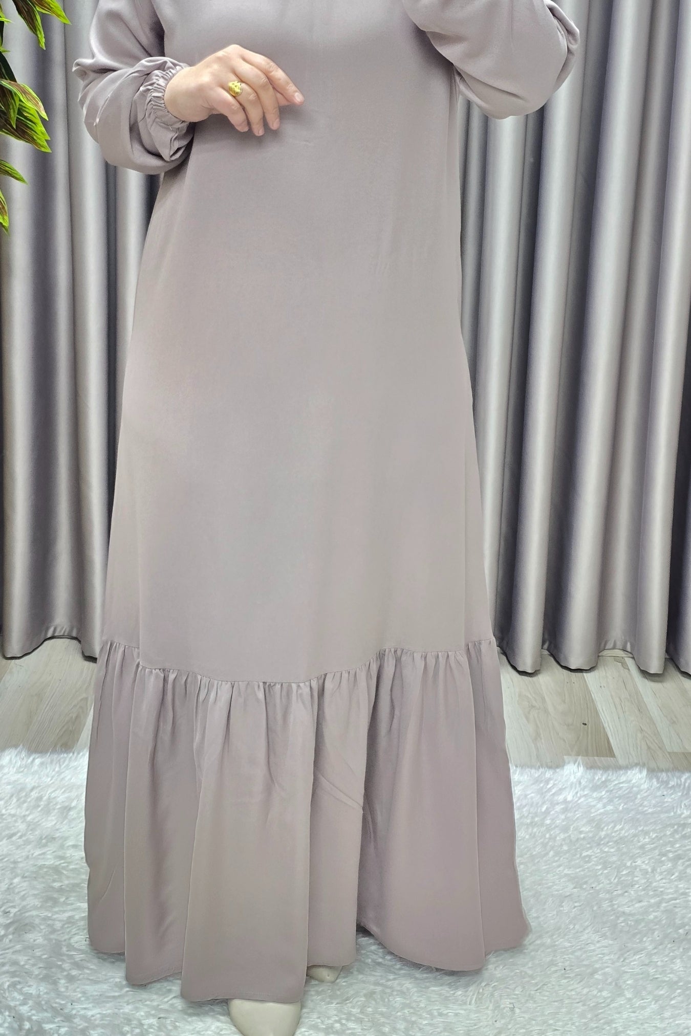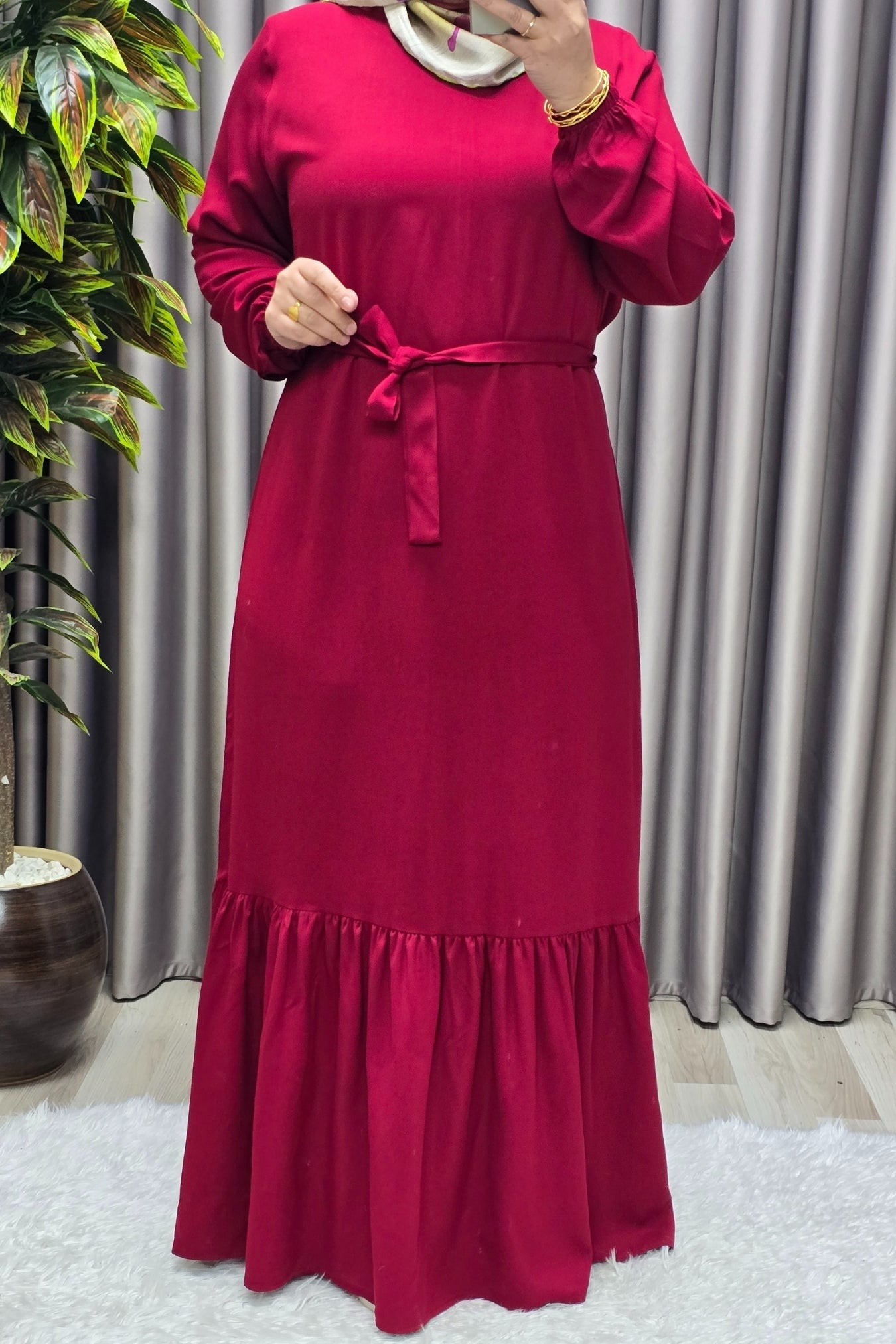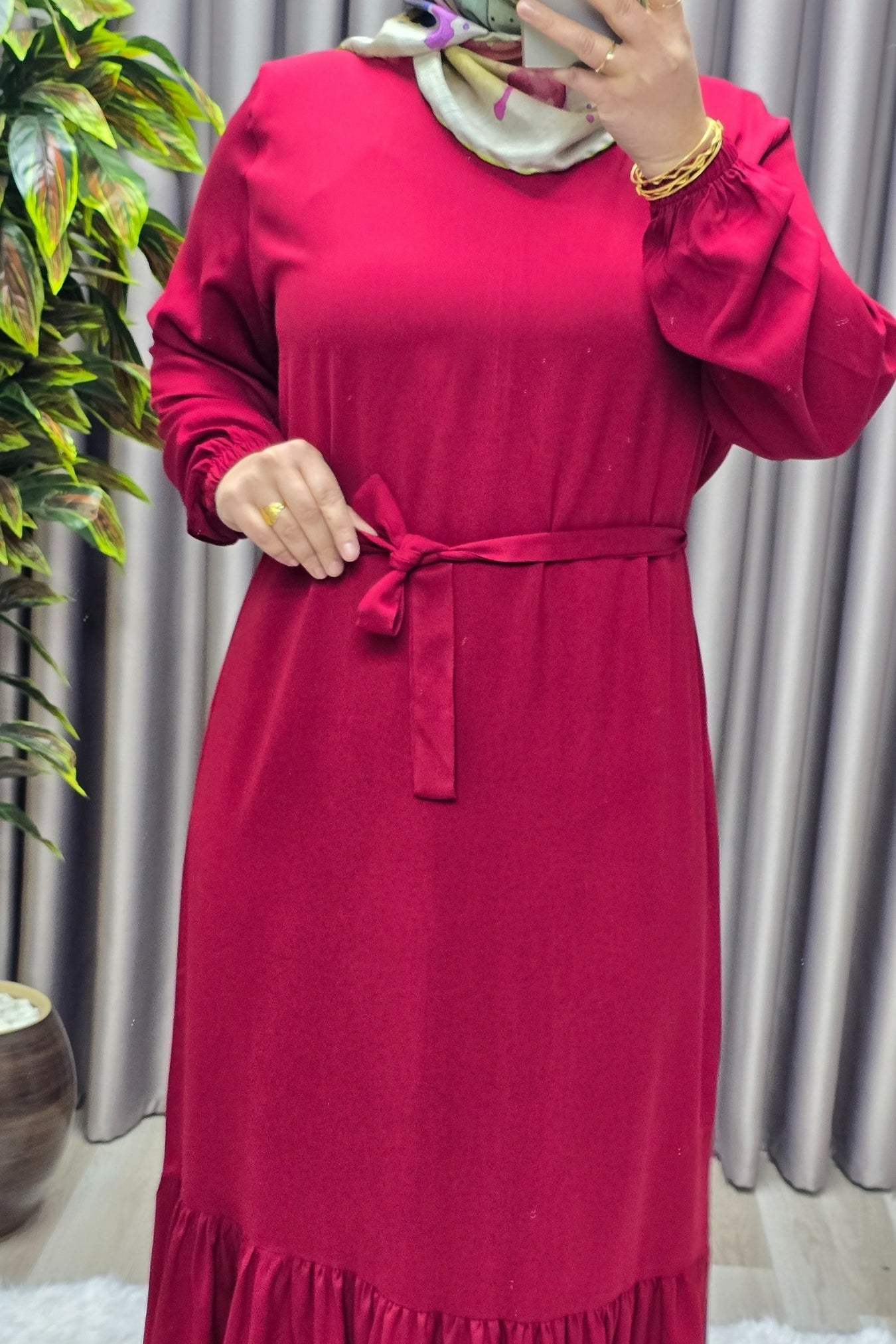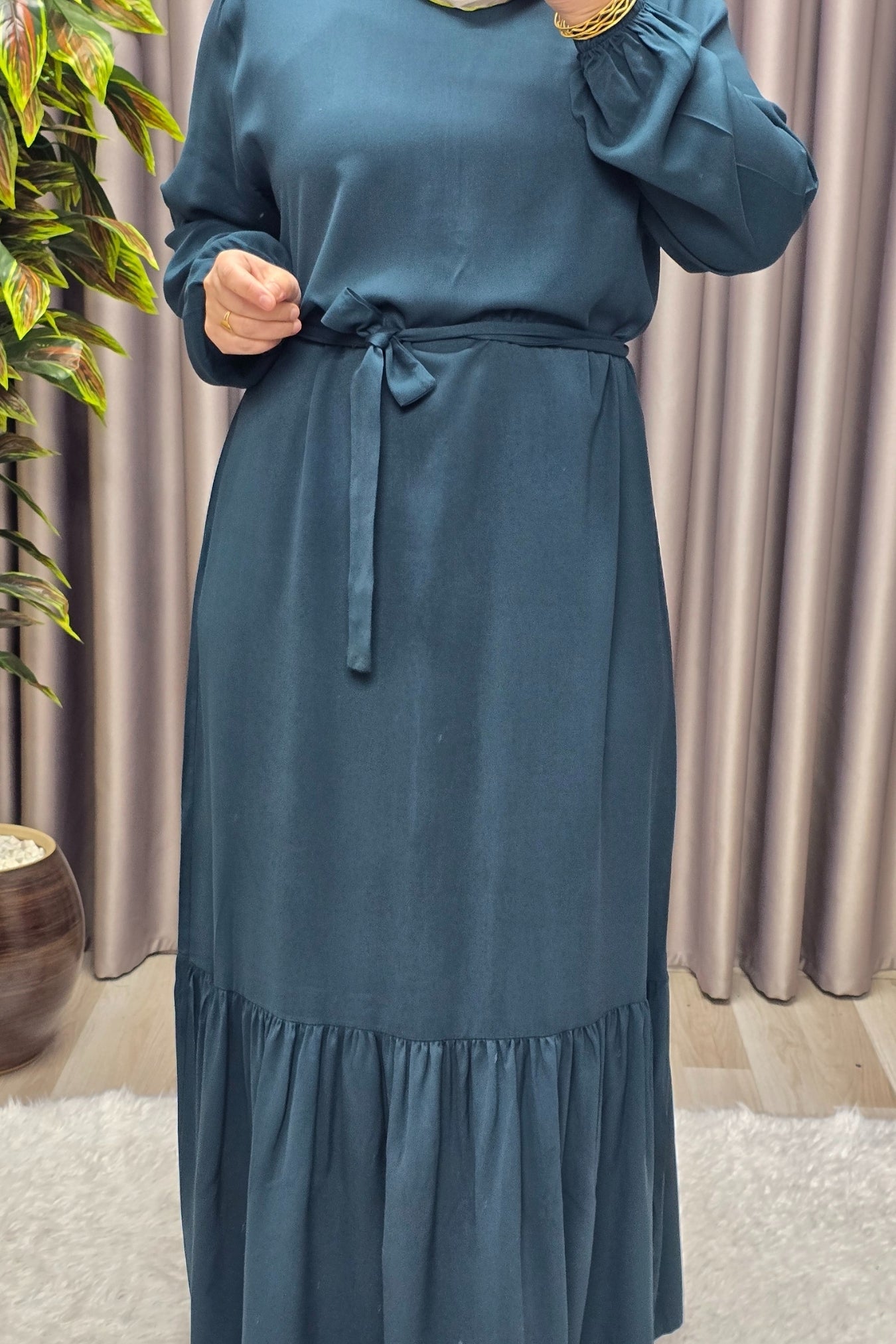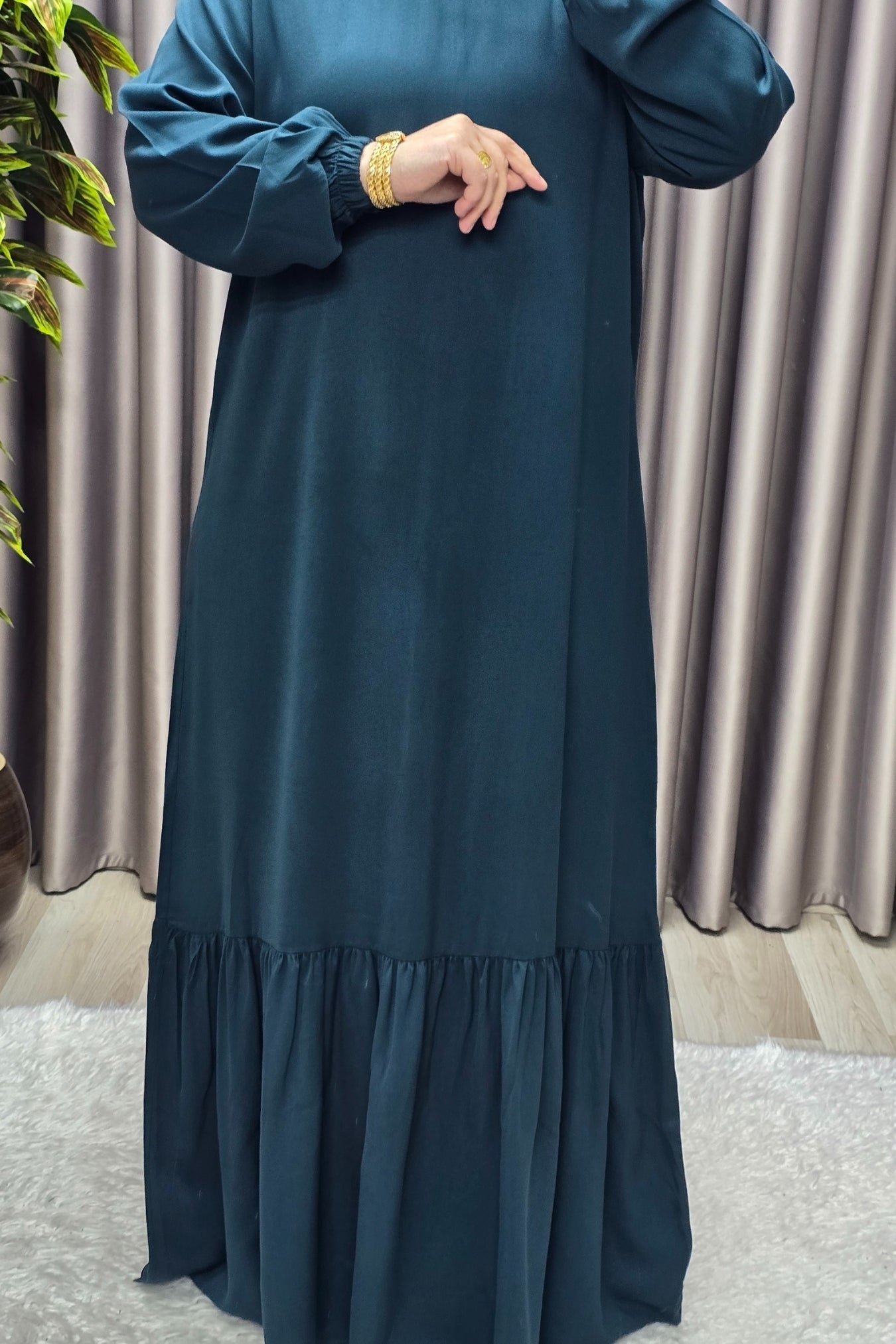 Kadın Tesettür Giyim Büyük Beden Düz Fırfırlı Elbise