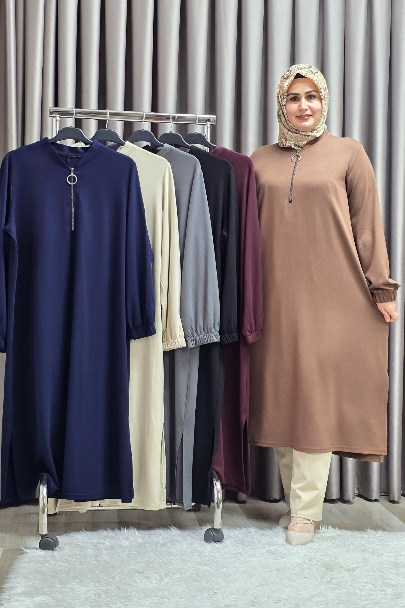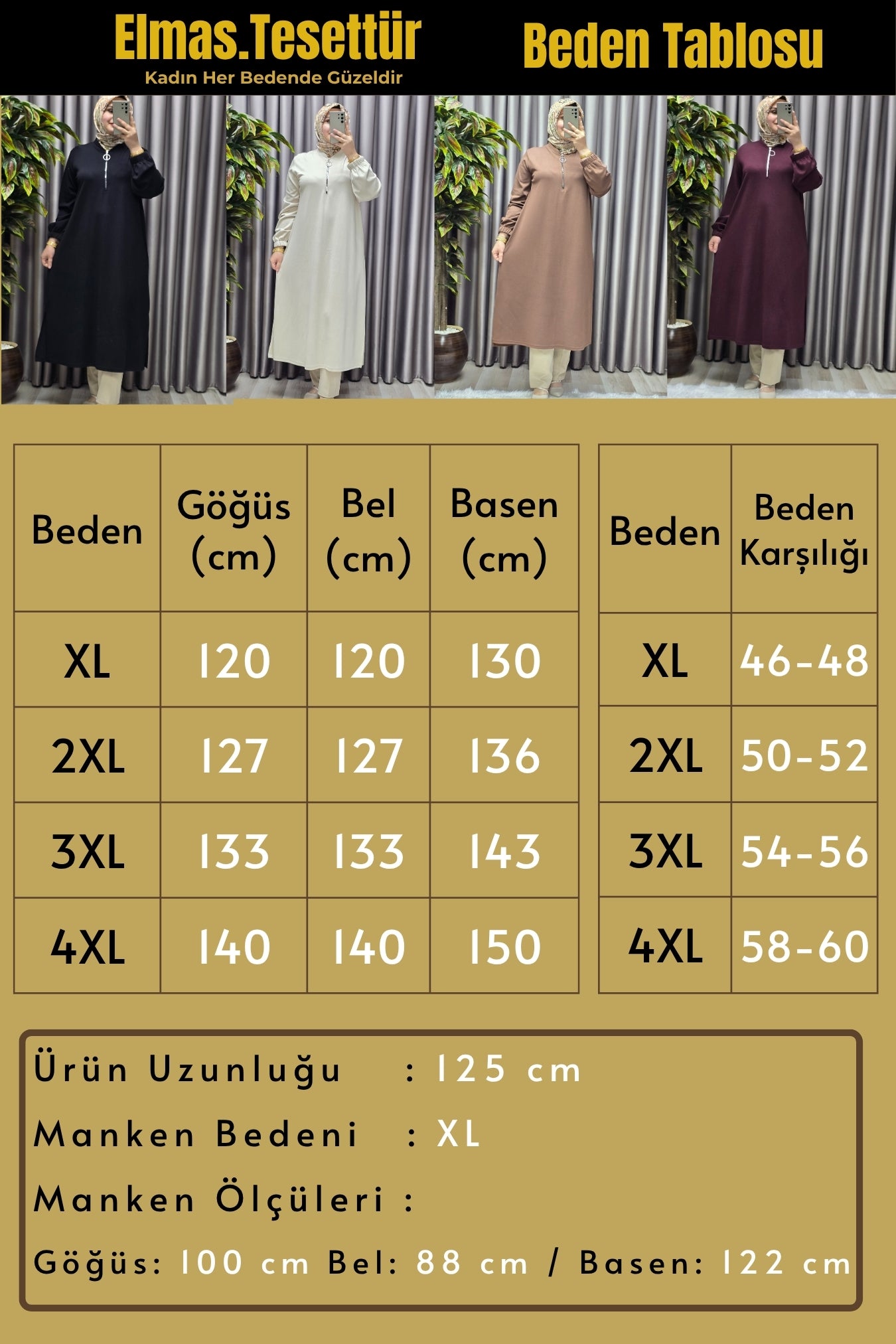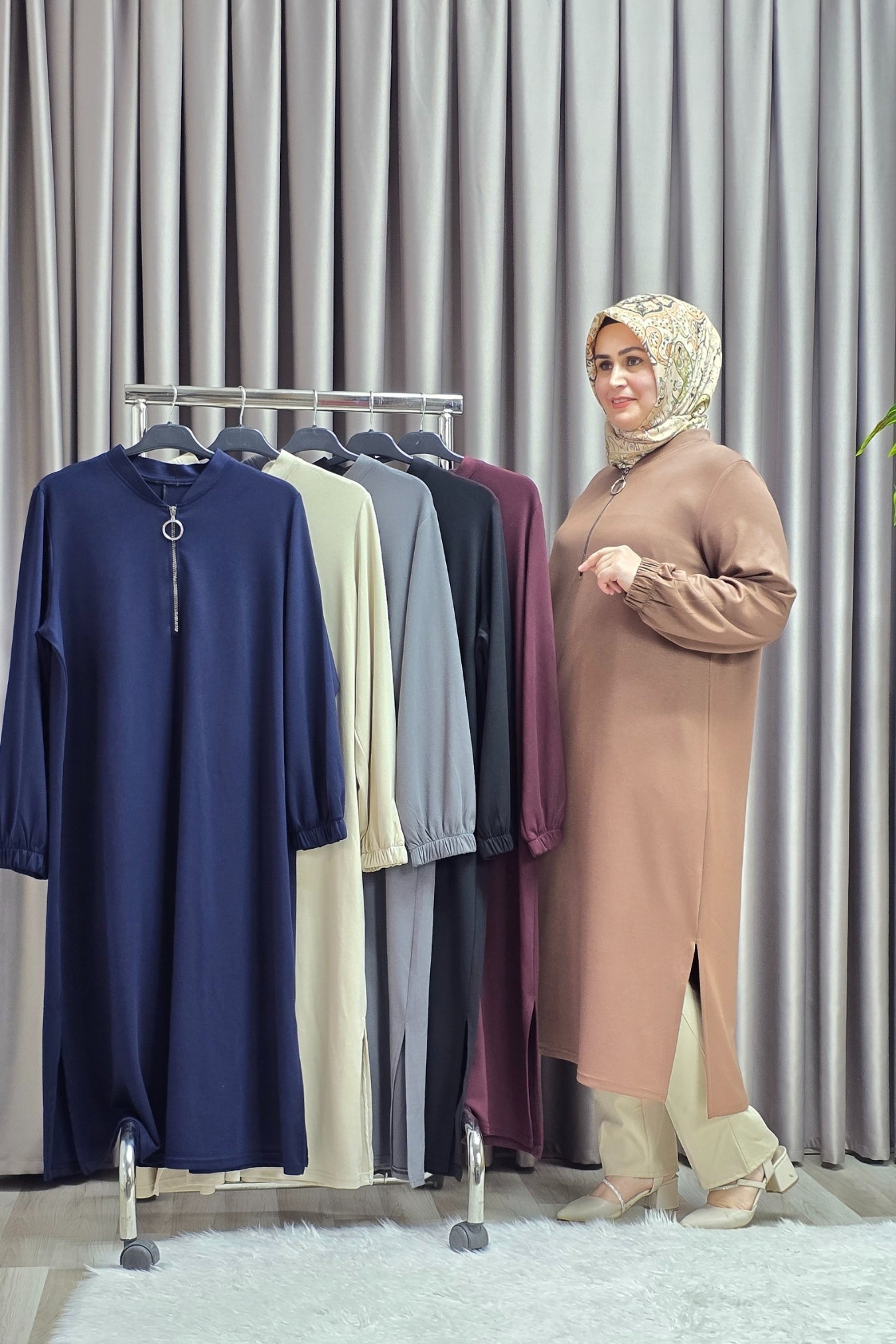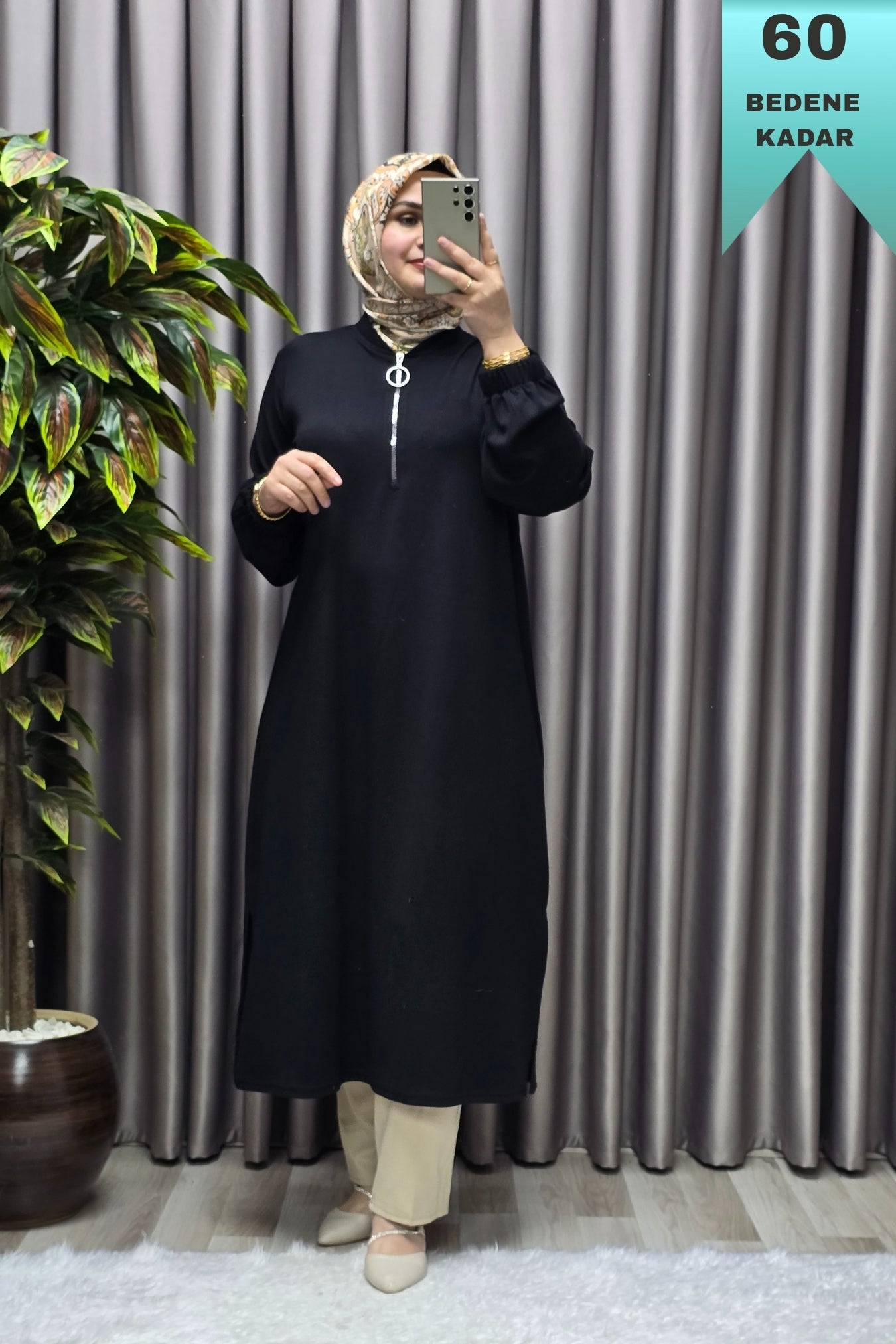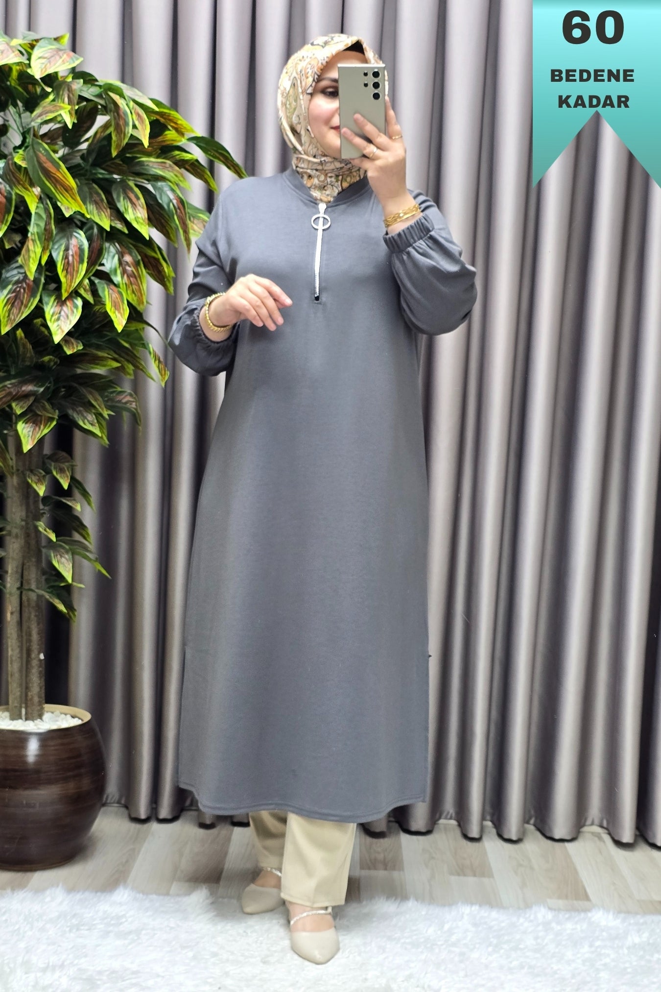 Kadın Tesettür Giyim Büyük Beden Fermuarlı Jumbo Uzun Tunik