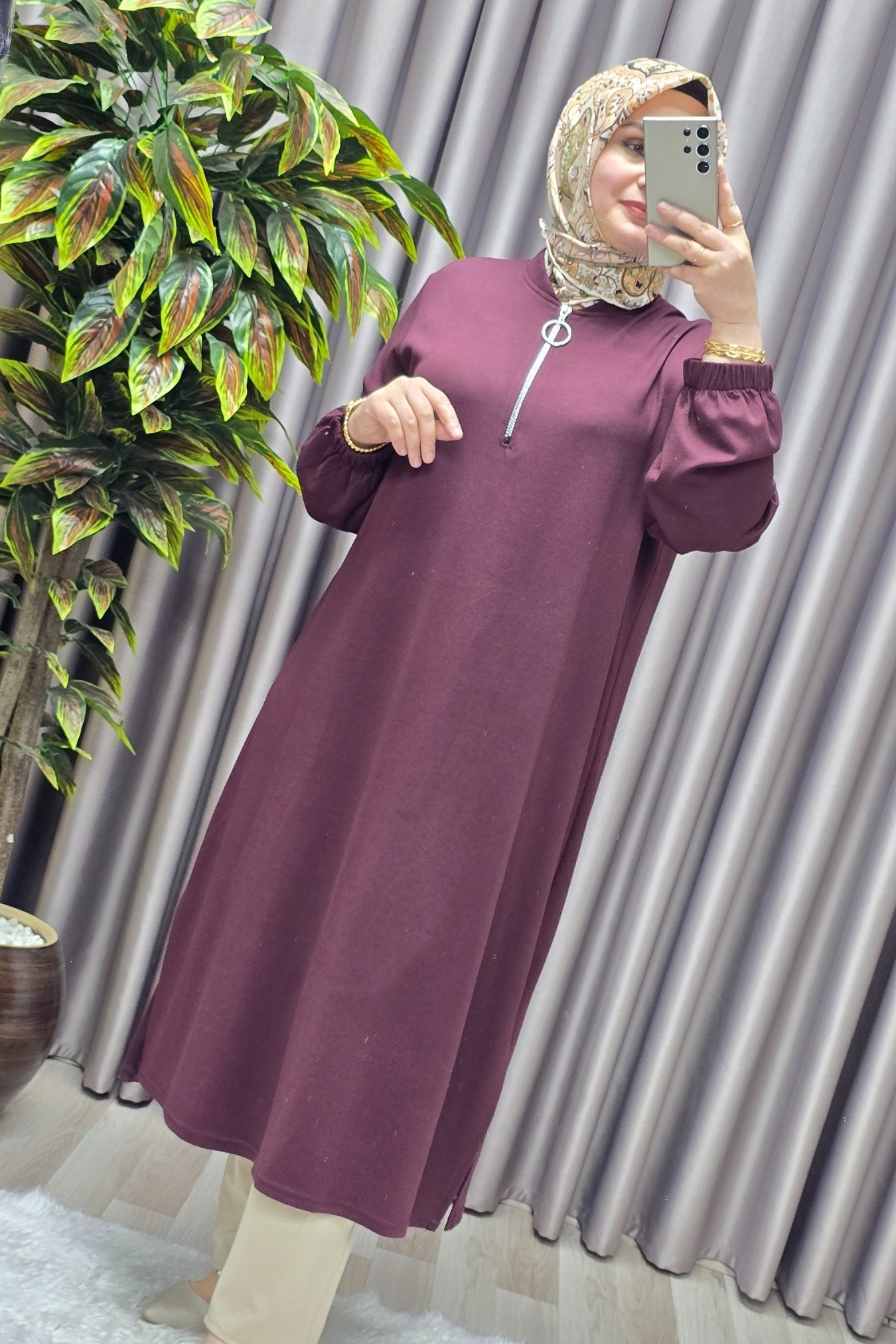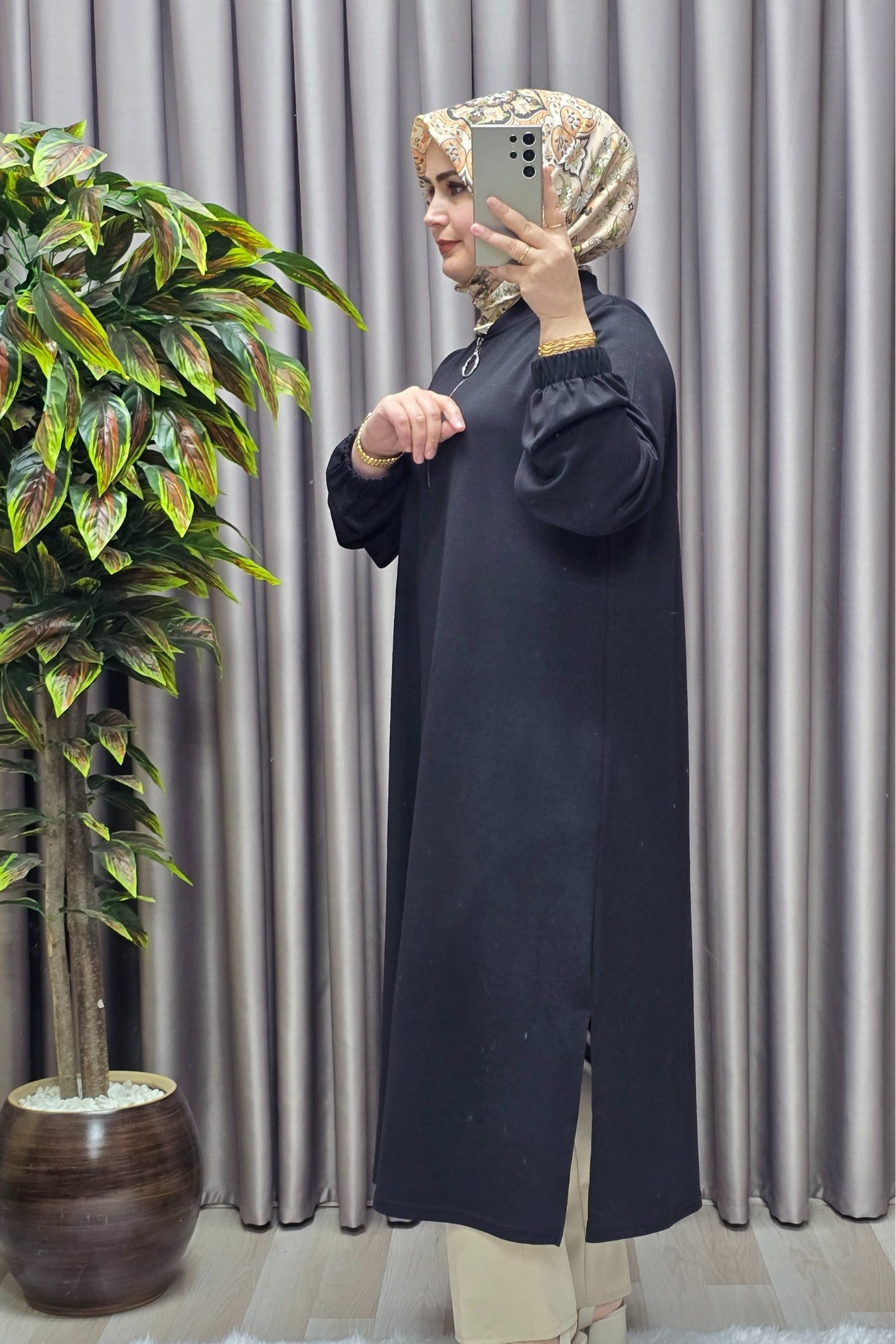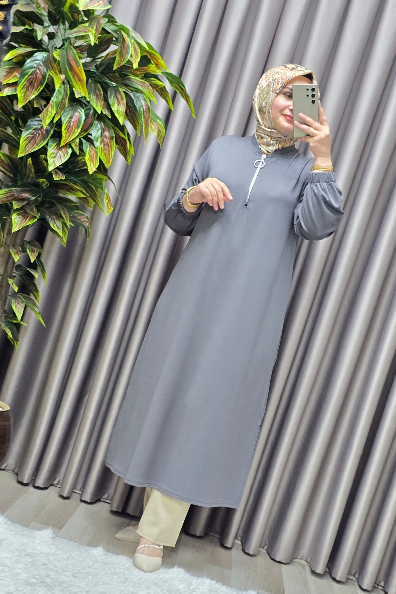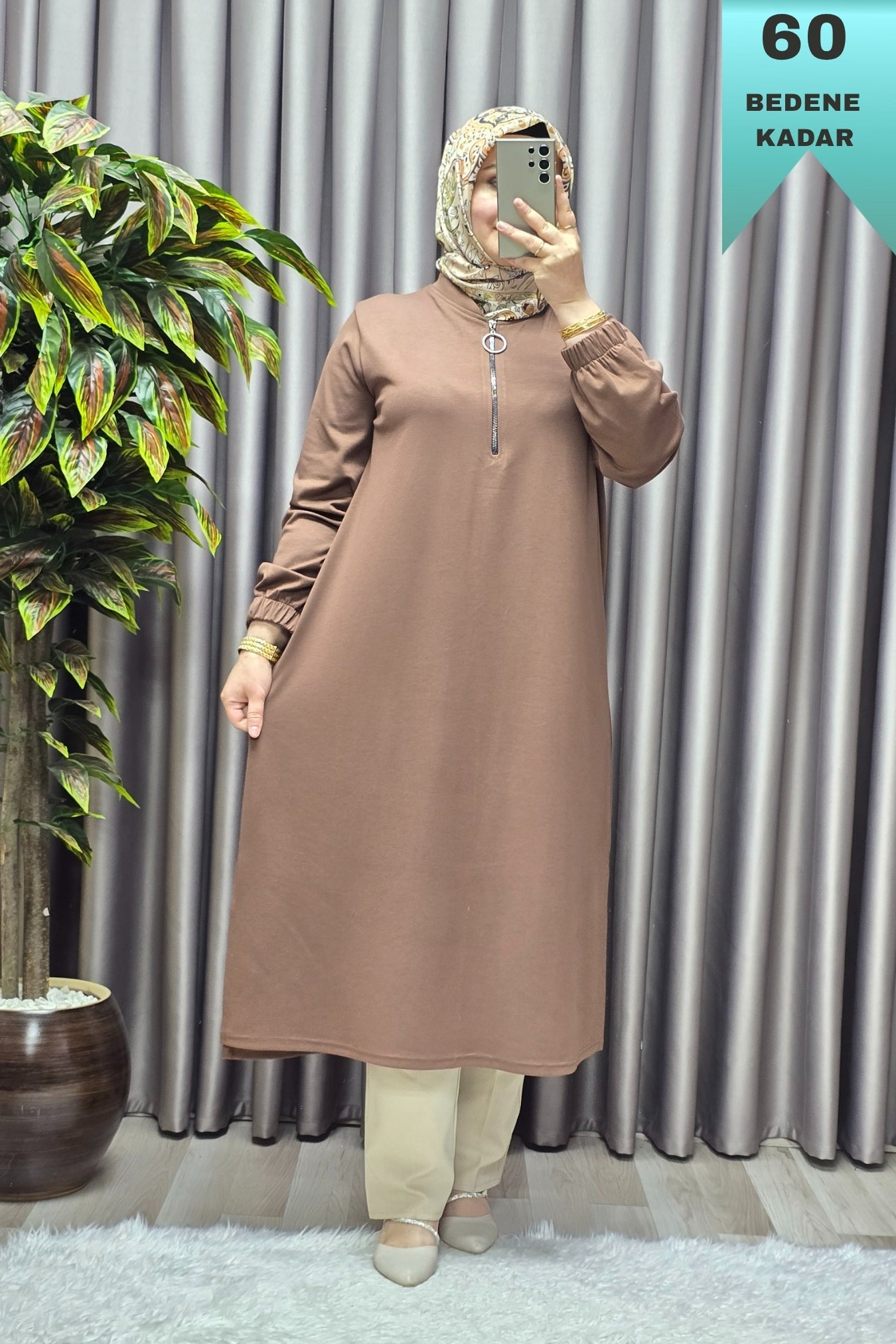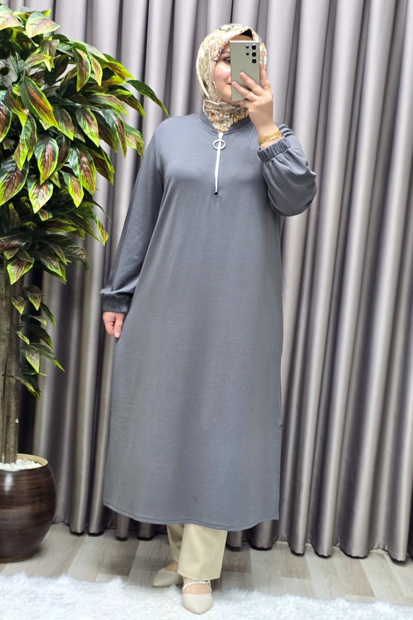 Kadın Tesettür Giyim Büyük Beden Fermuarlı Jumbo Uzun Tunik