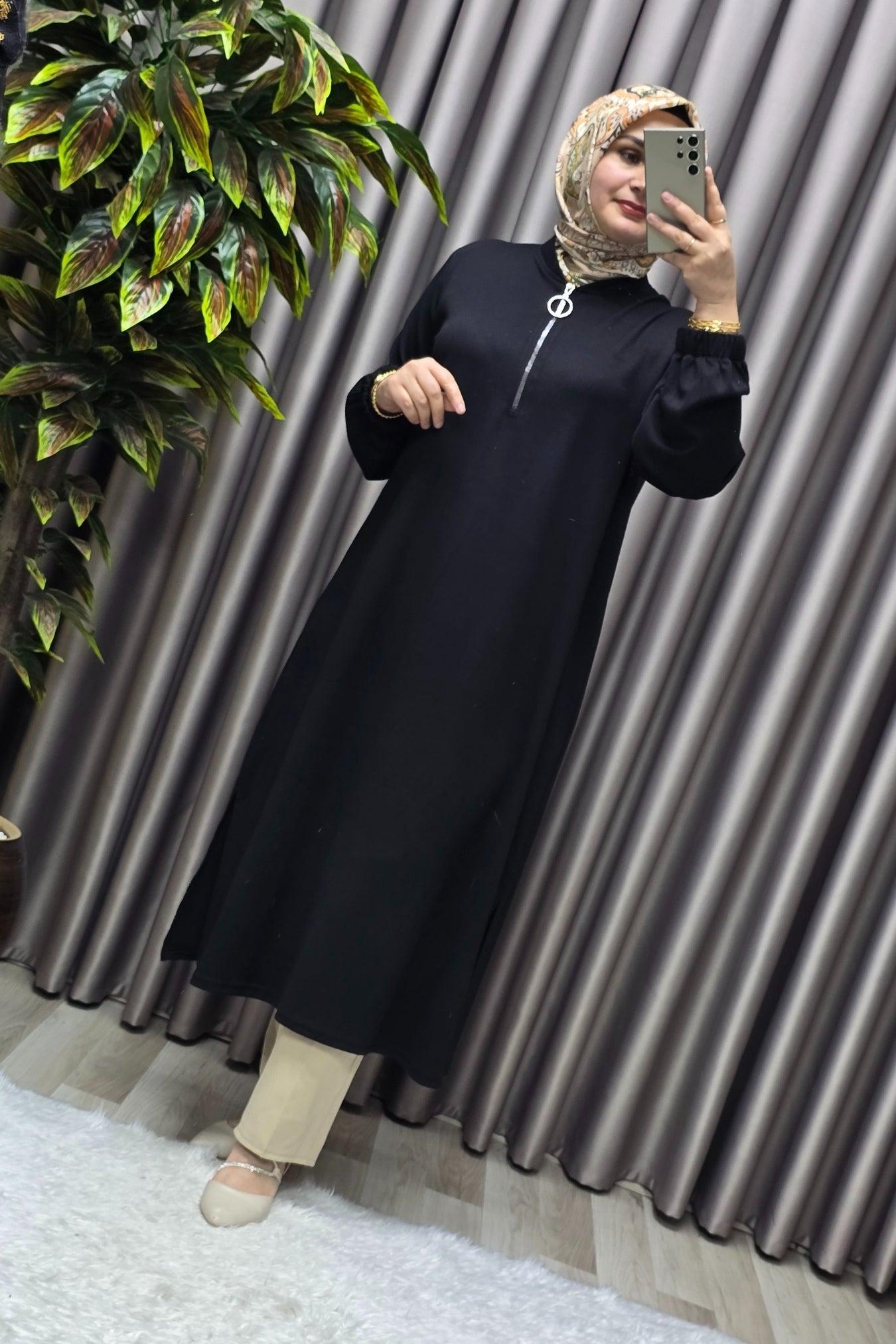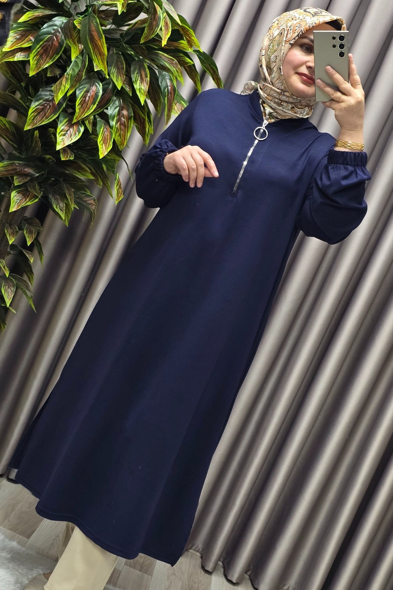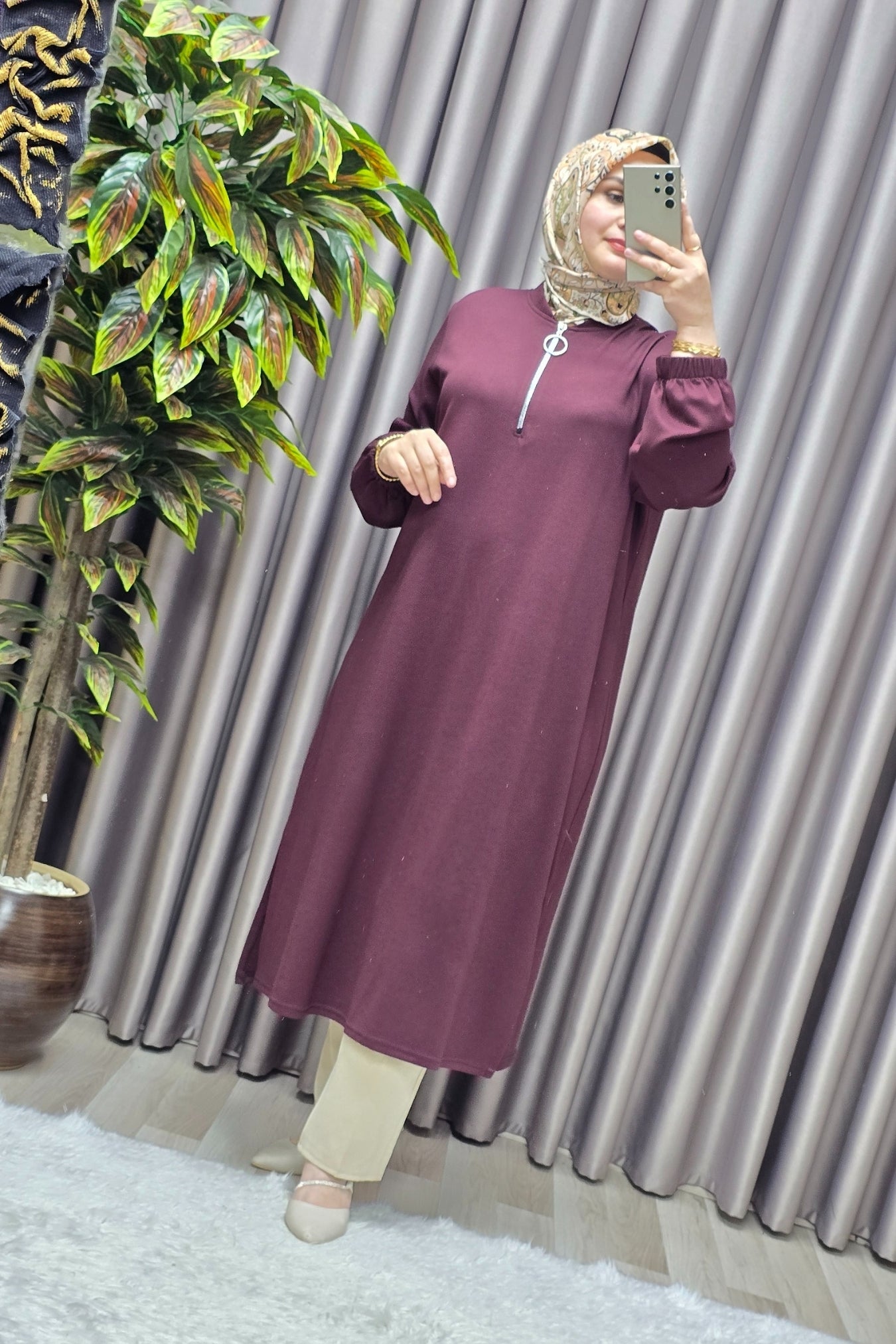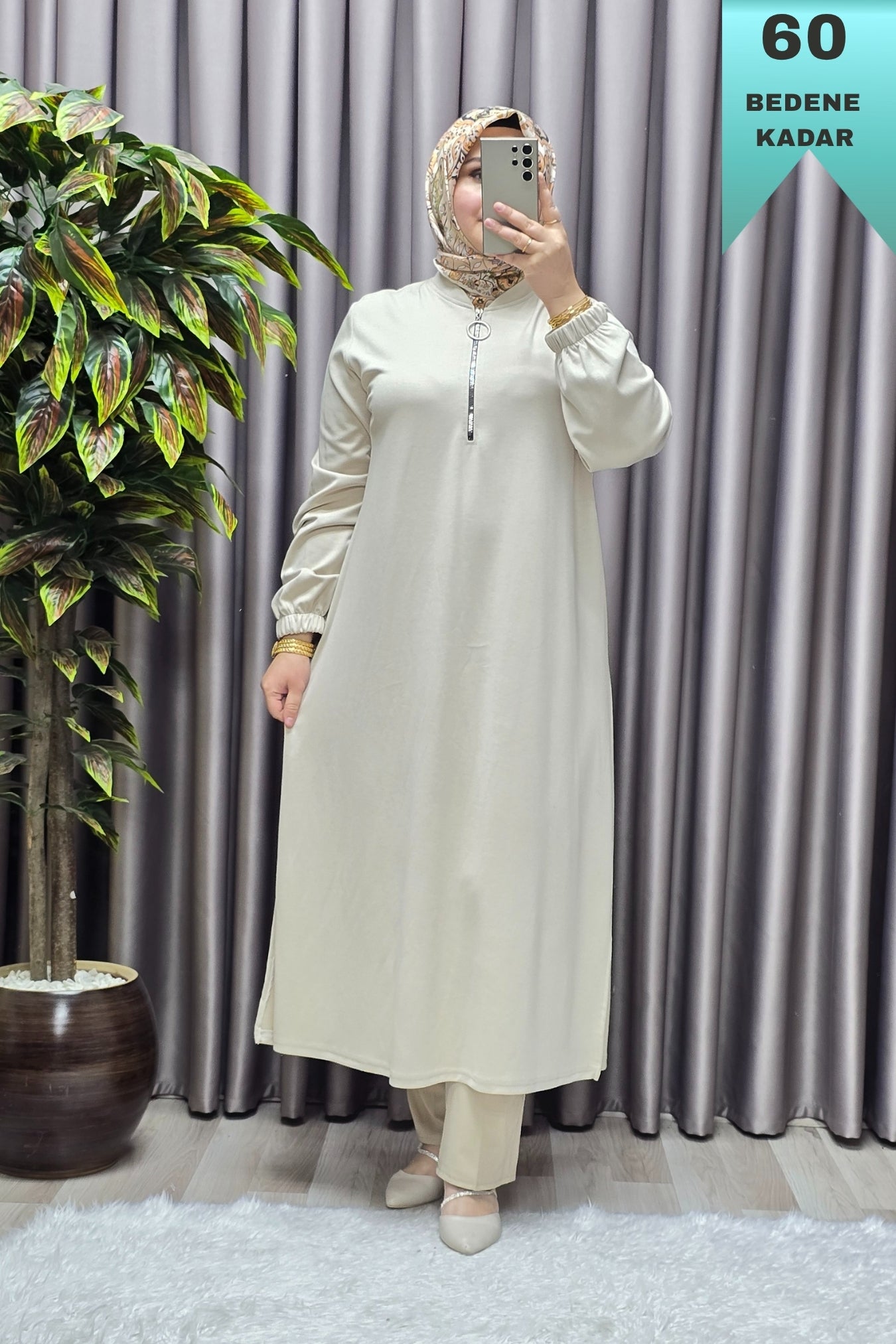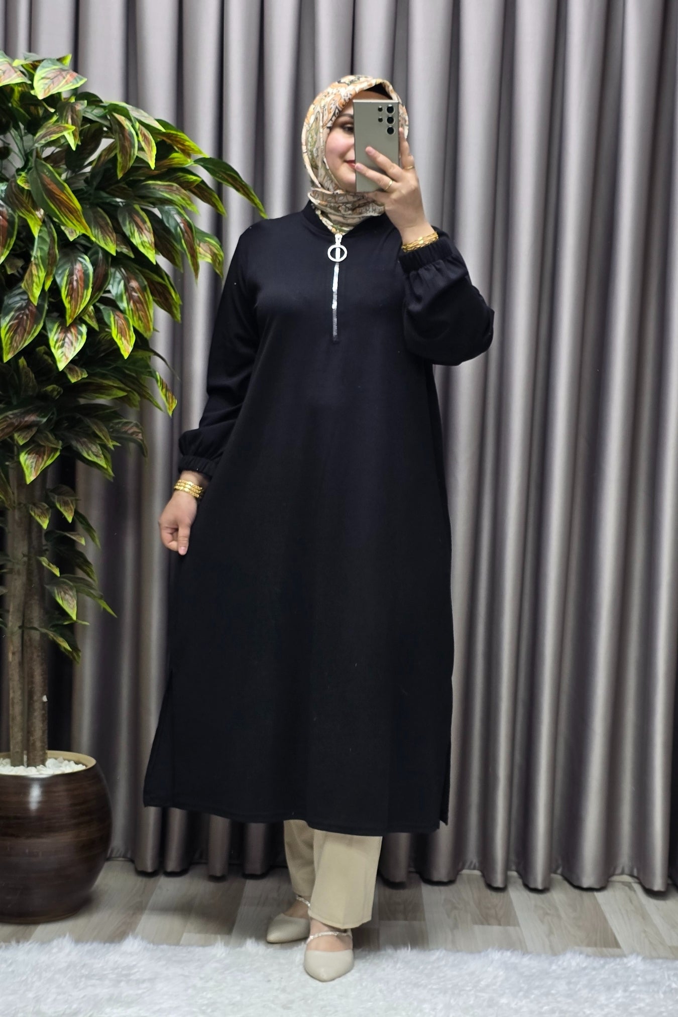 Kadın Tesettür Giyim Büyük Beden Fermuarlı Jumbo Uzun Tunik