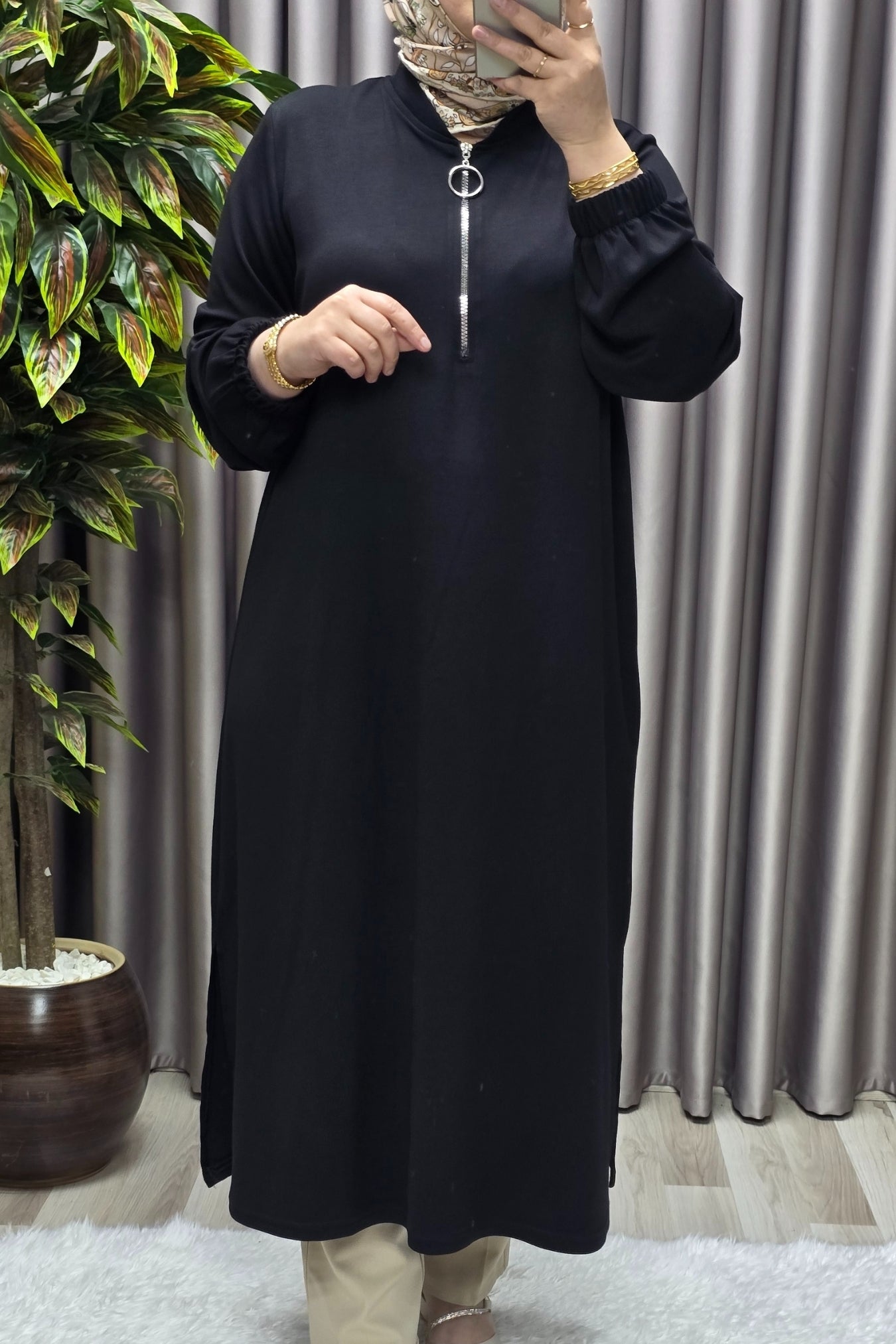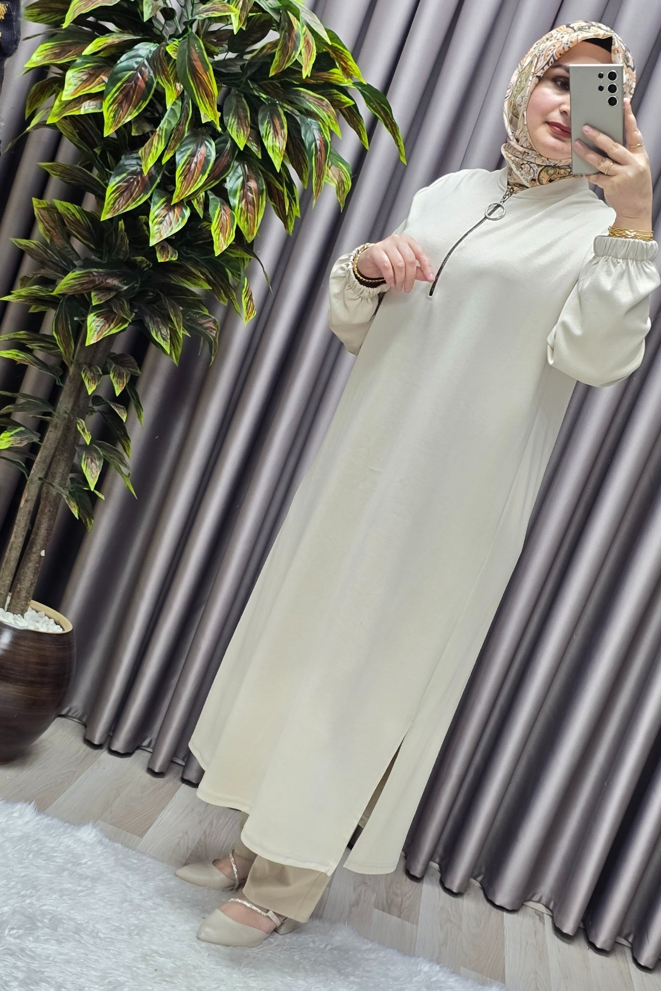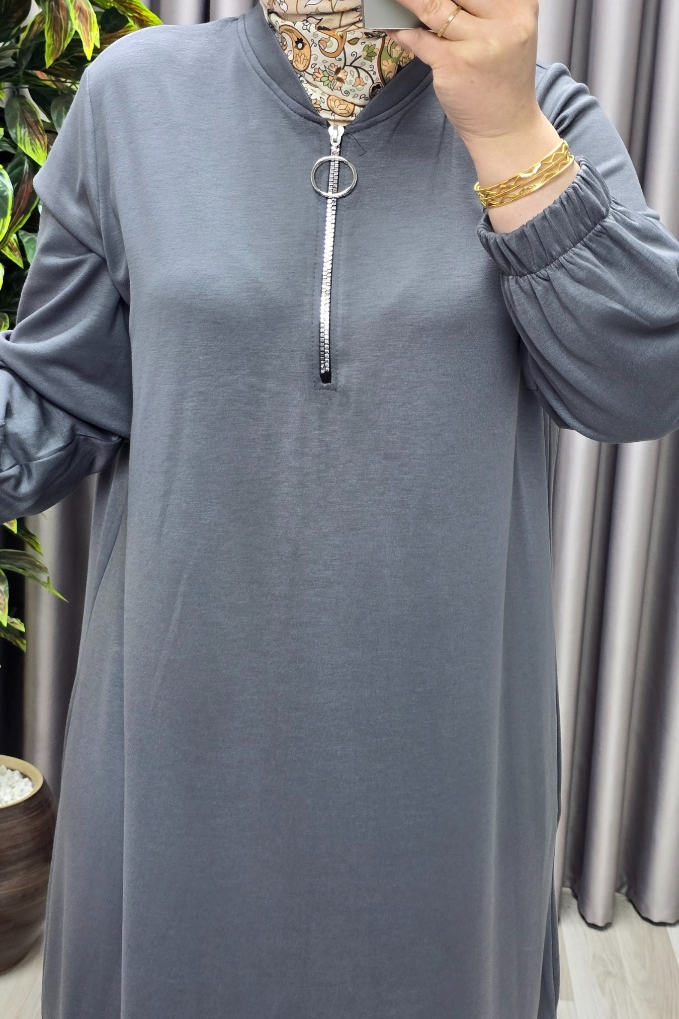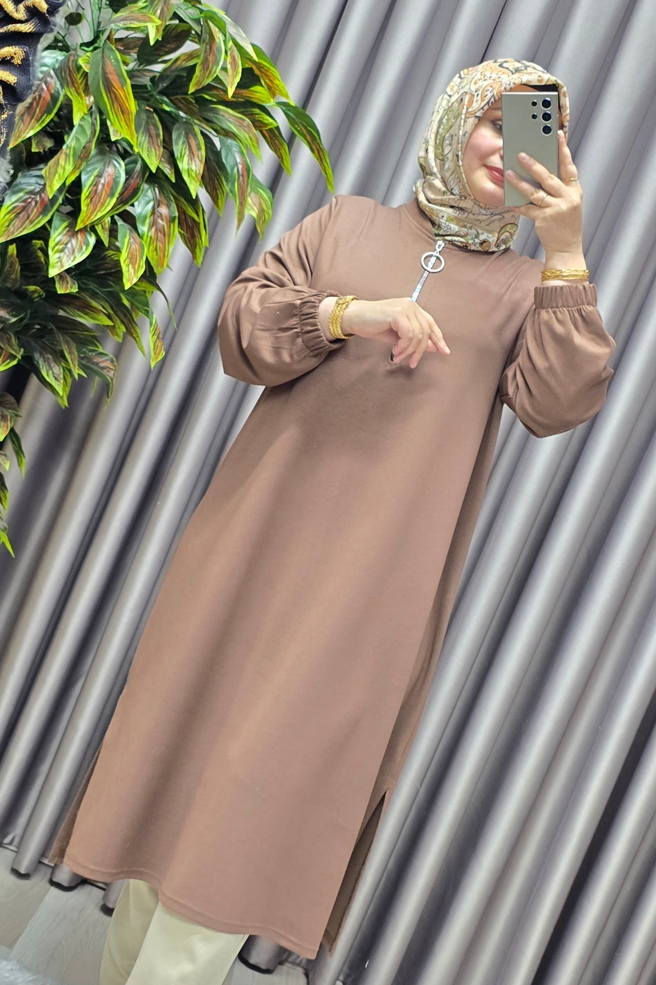 Kadın Tesettür Giyim Büyük Beden Fermuarlı Jumbo Uzun Tunik