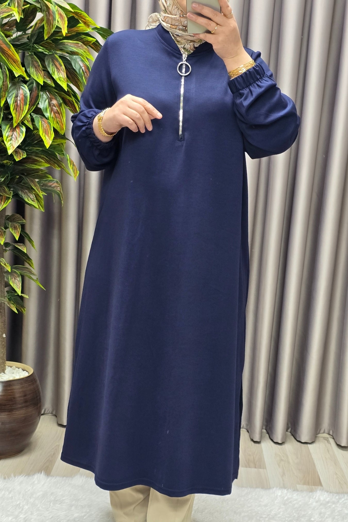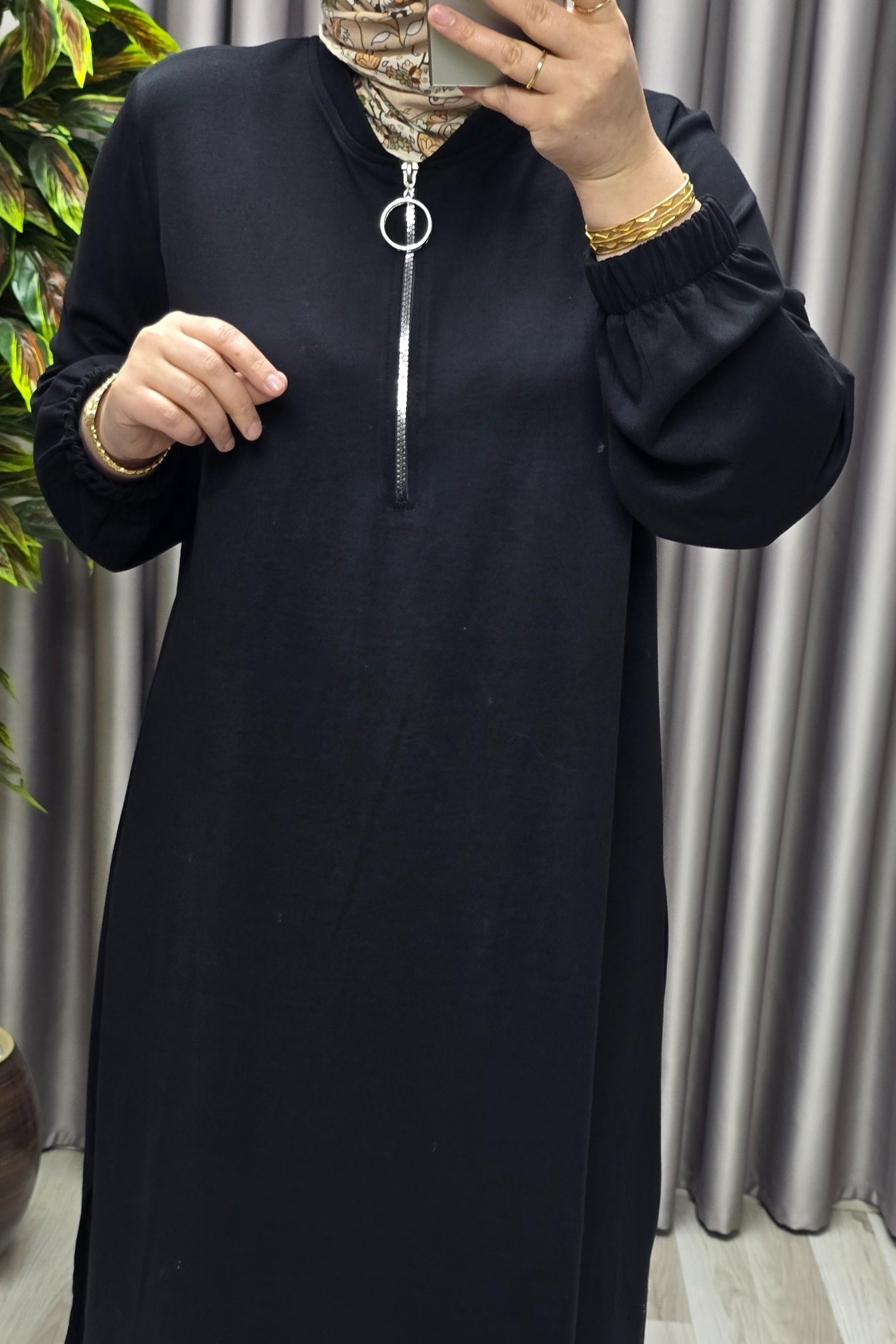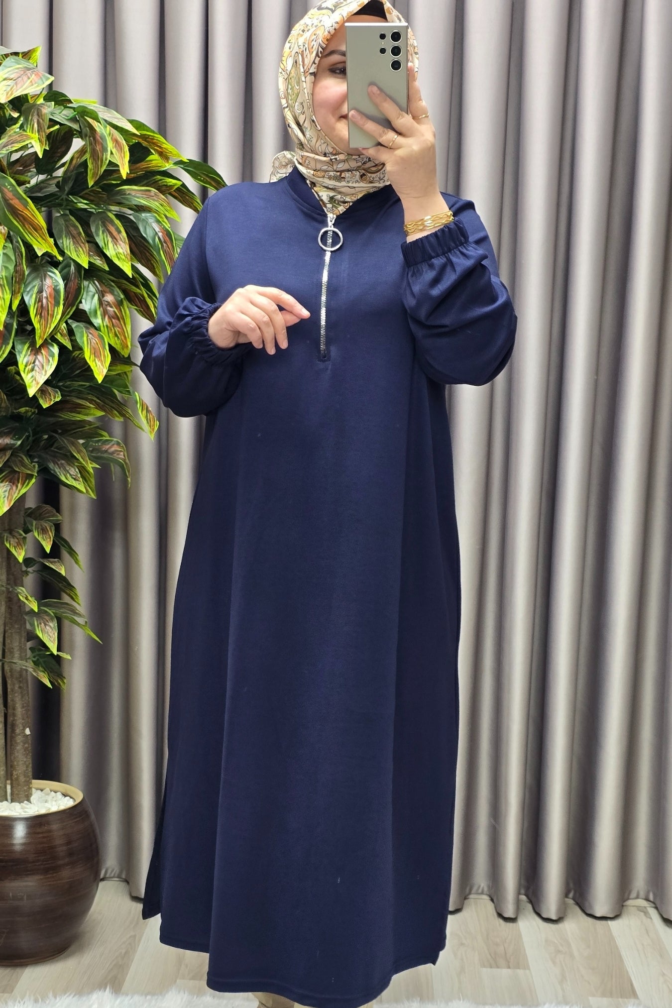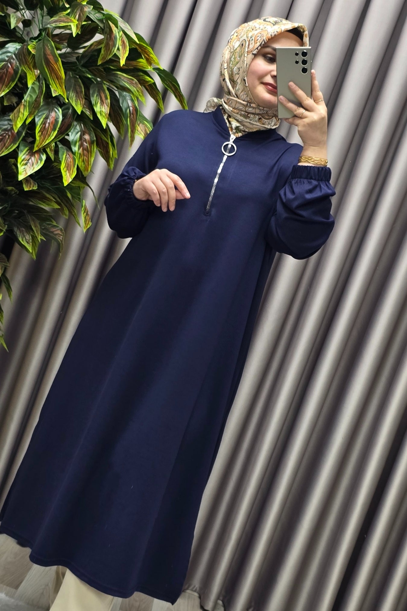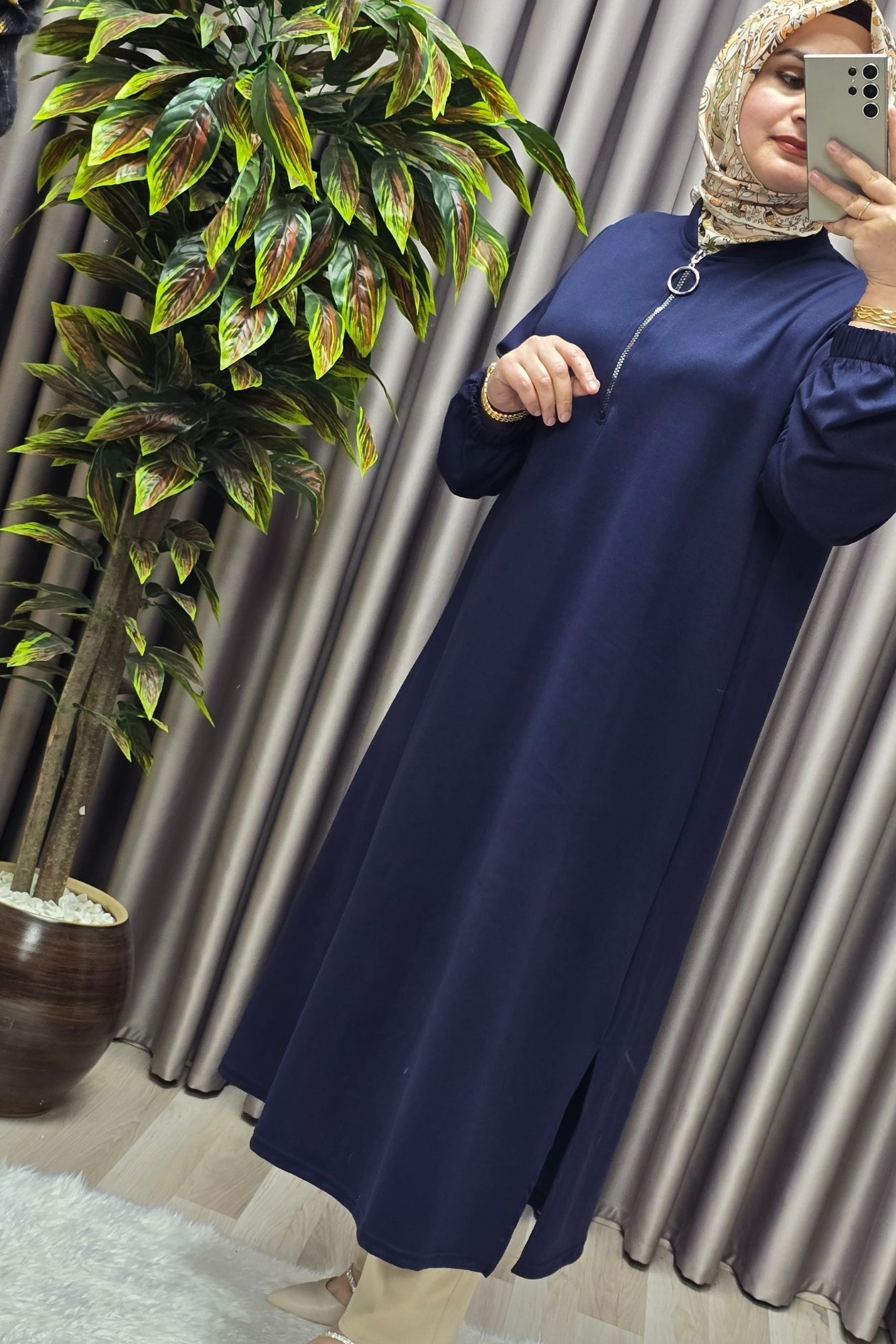 Kadın Tesettür Giyim Büyük Beden Fermuarlı Jumbo Uzun Tunik