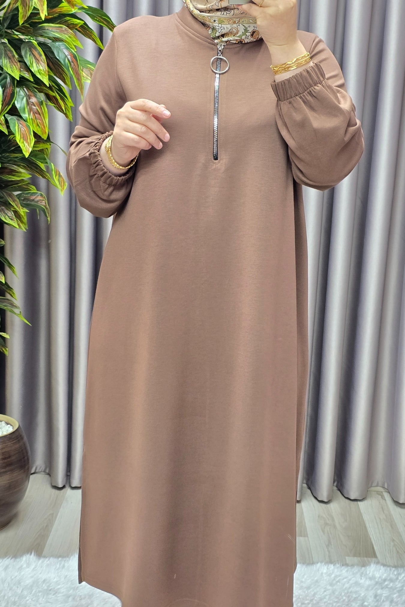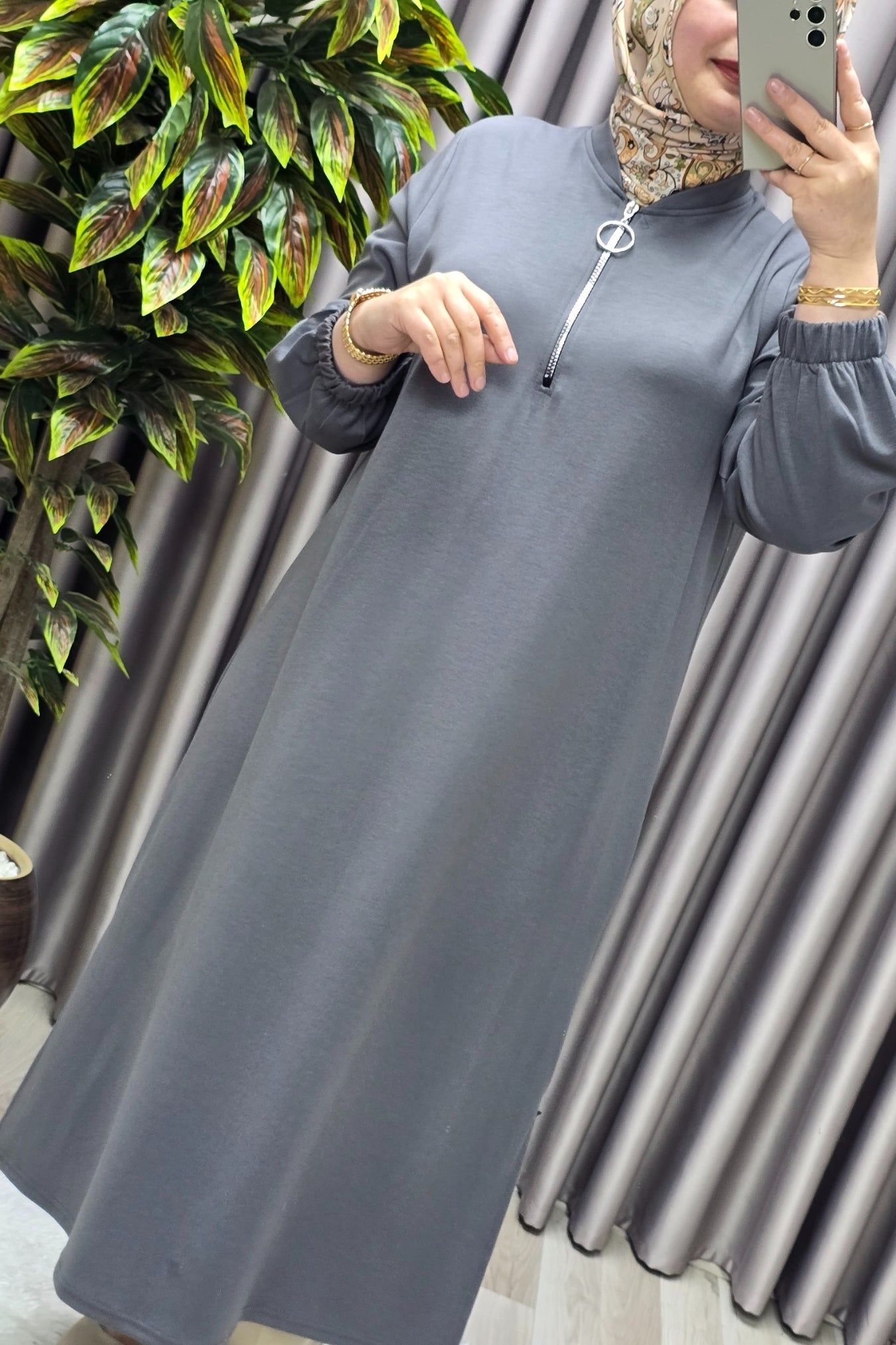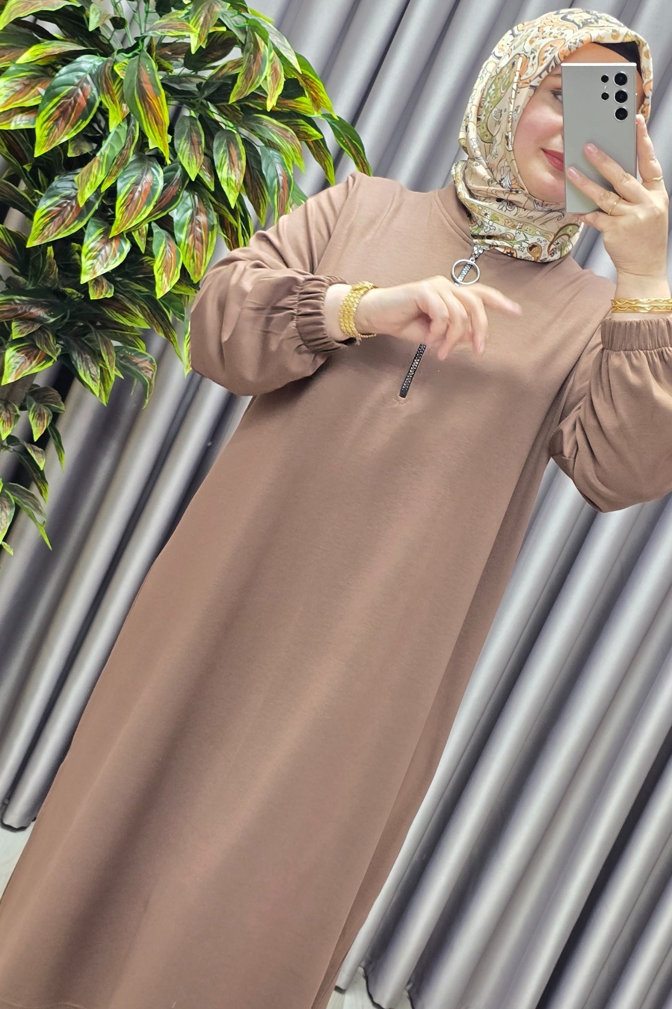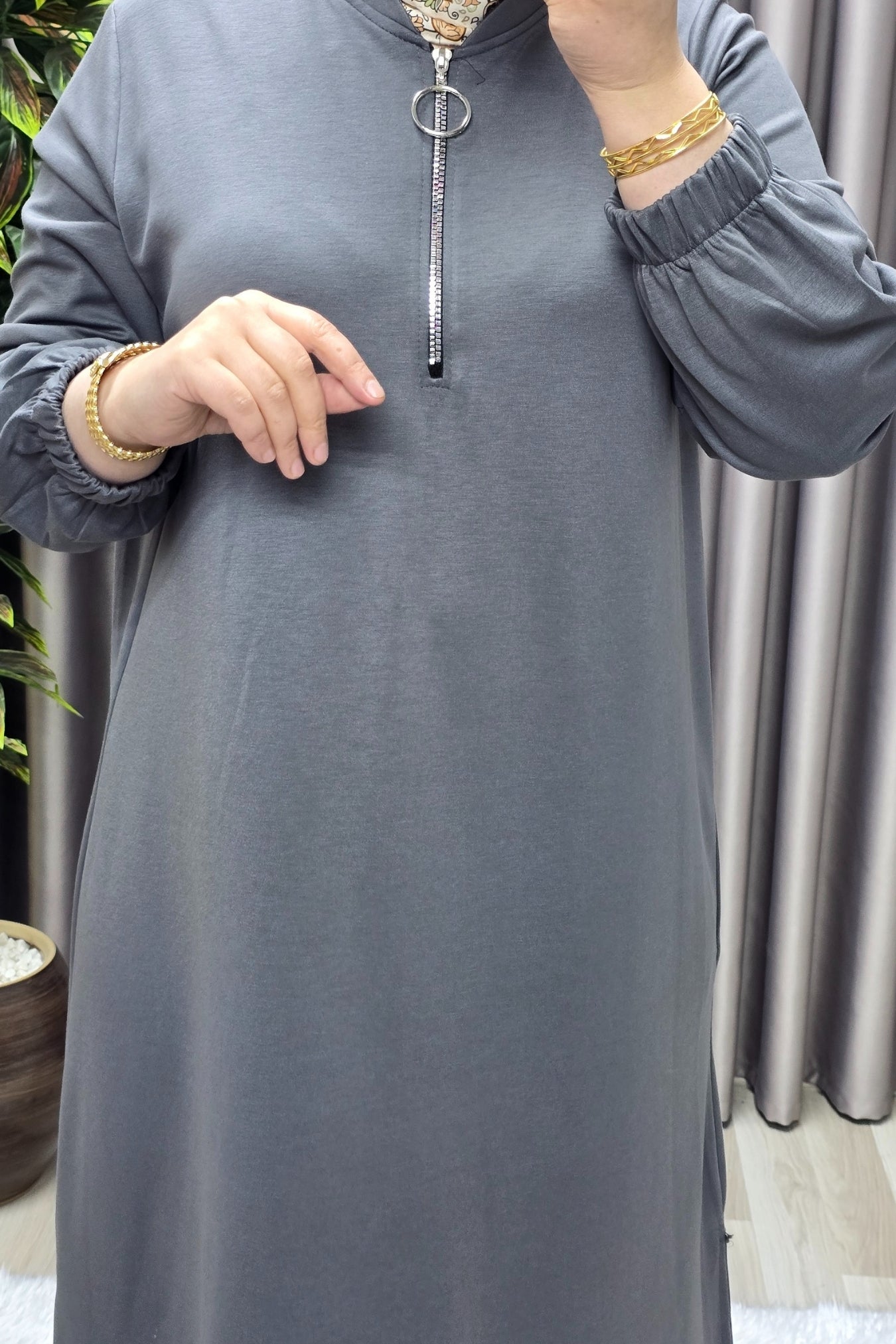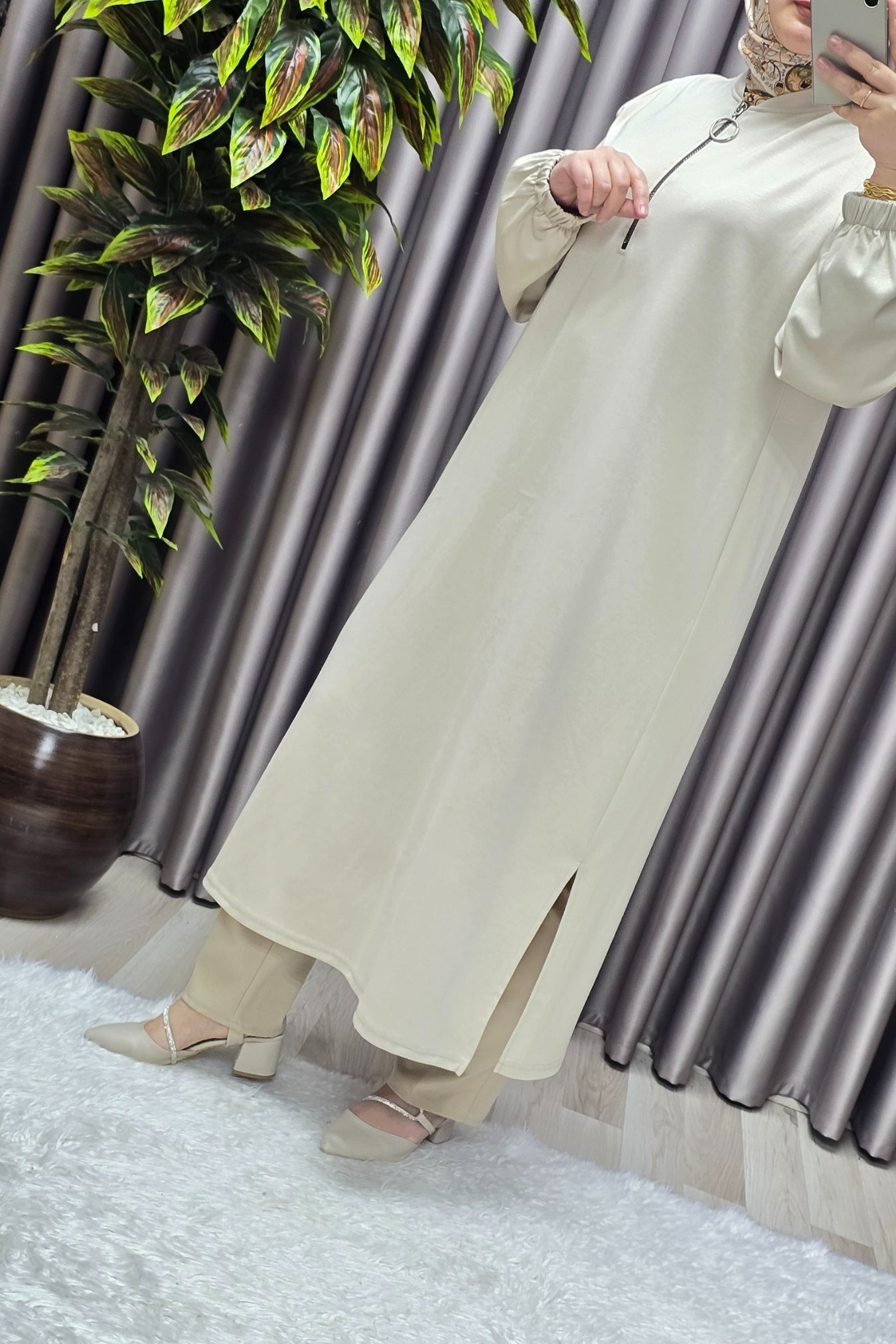 Kadın Tesettür Giyim Büyük Beden Fermuarlı Jumbo Uzun Tunik